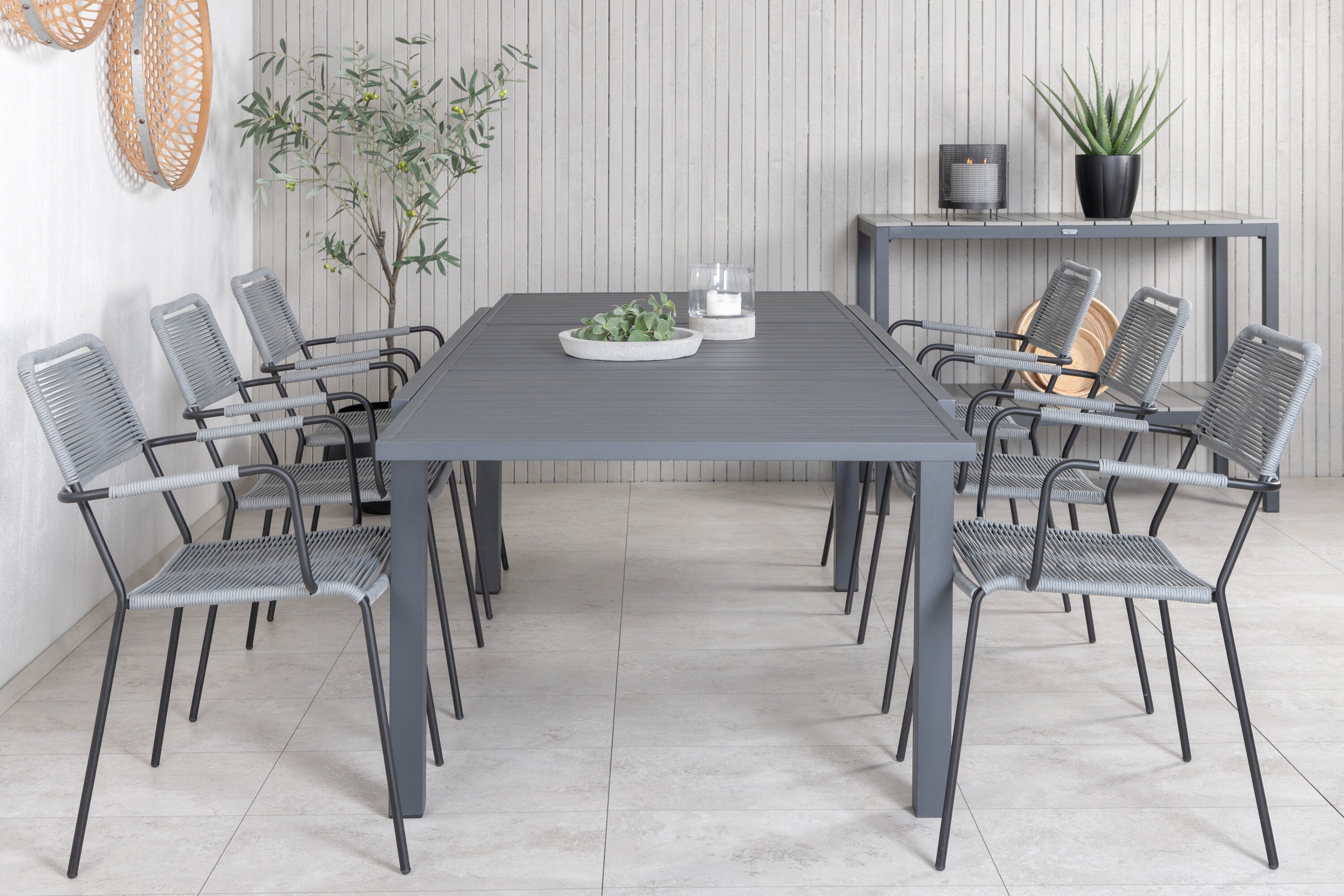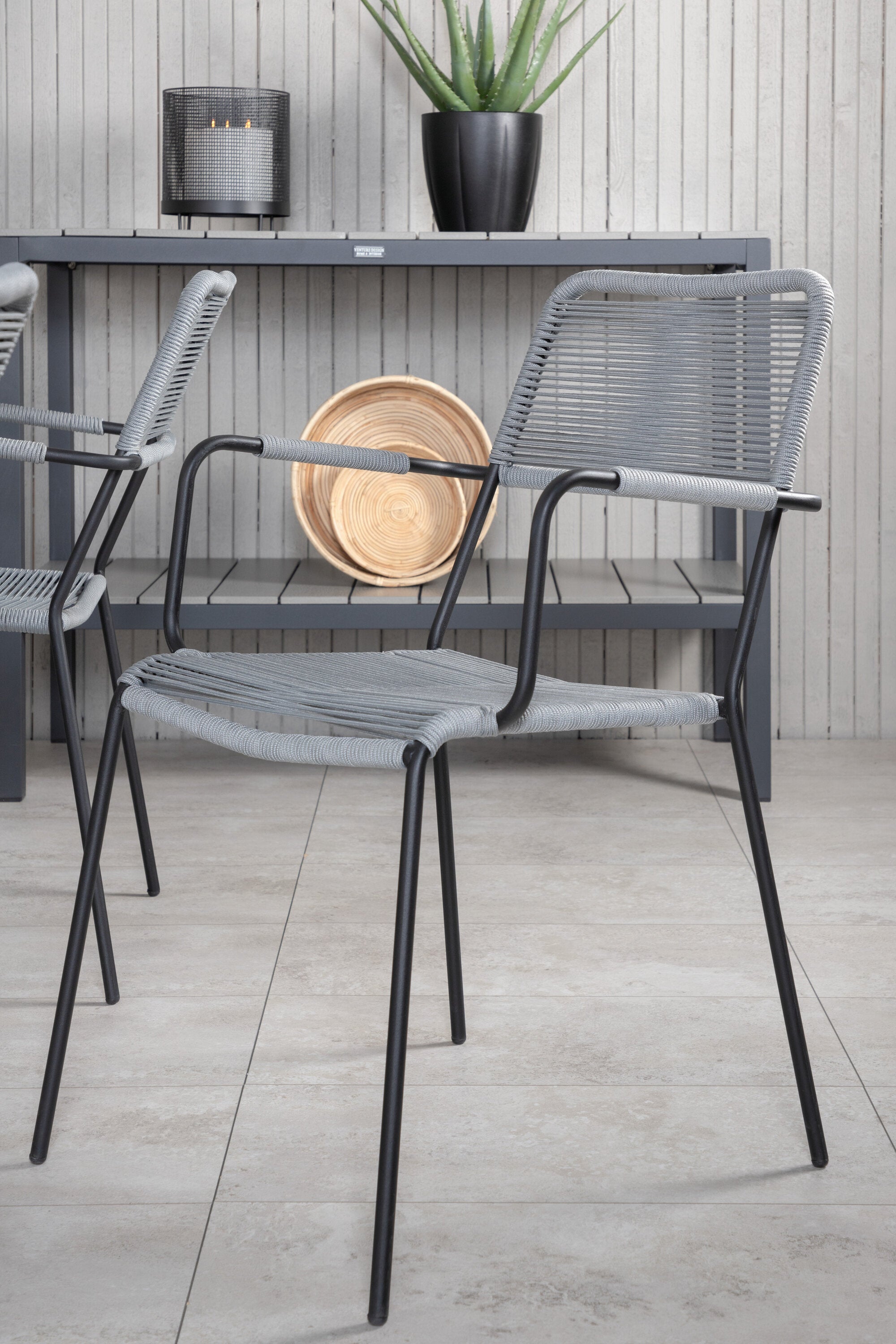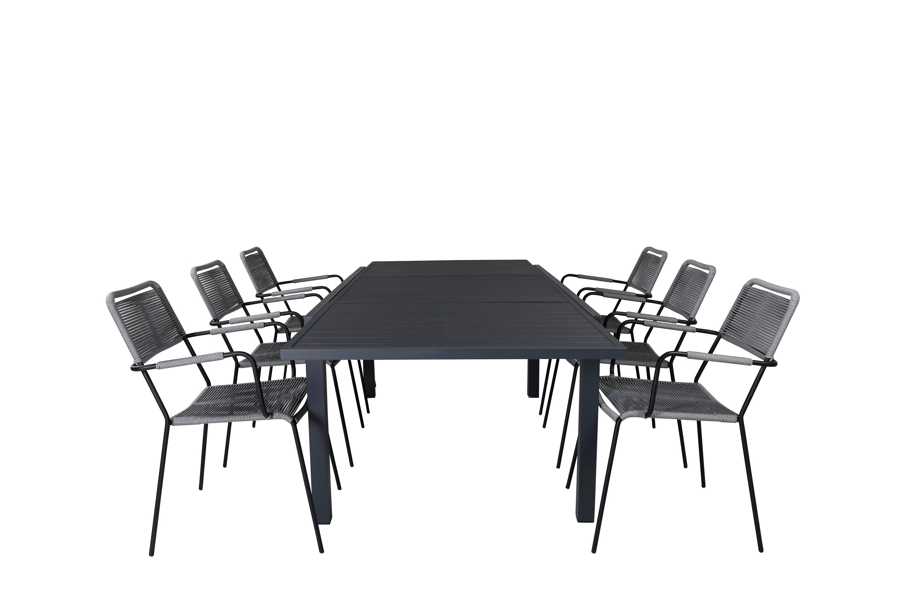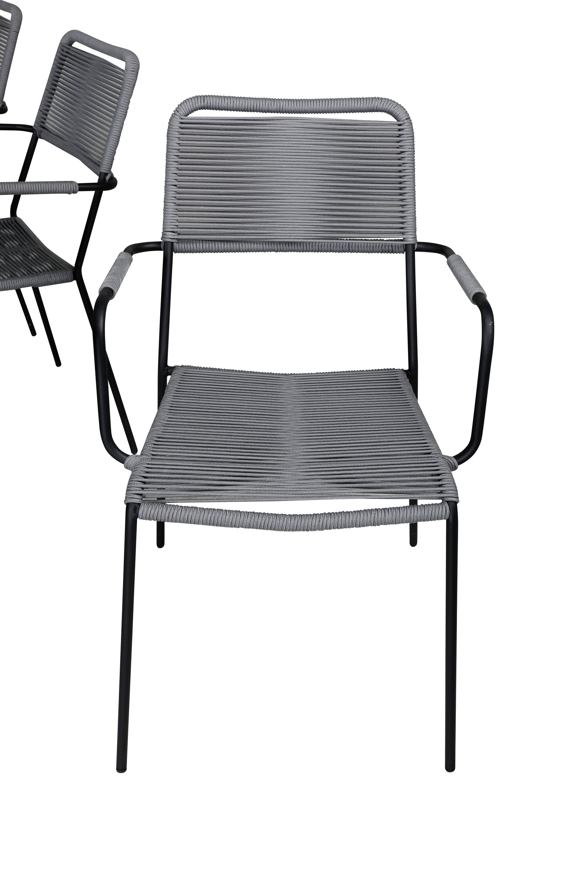 Stůl Marbella 160/240 - Černá/Černá+Křeslo Lindos - Černá Alu / Šedé lano_6