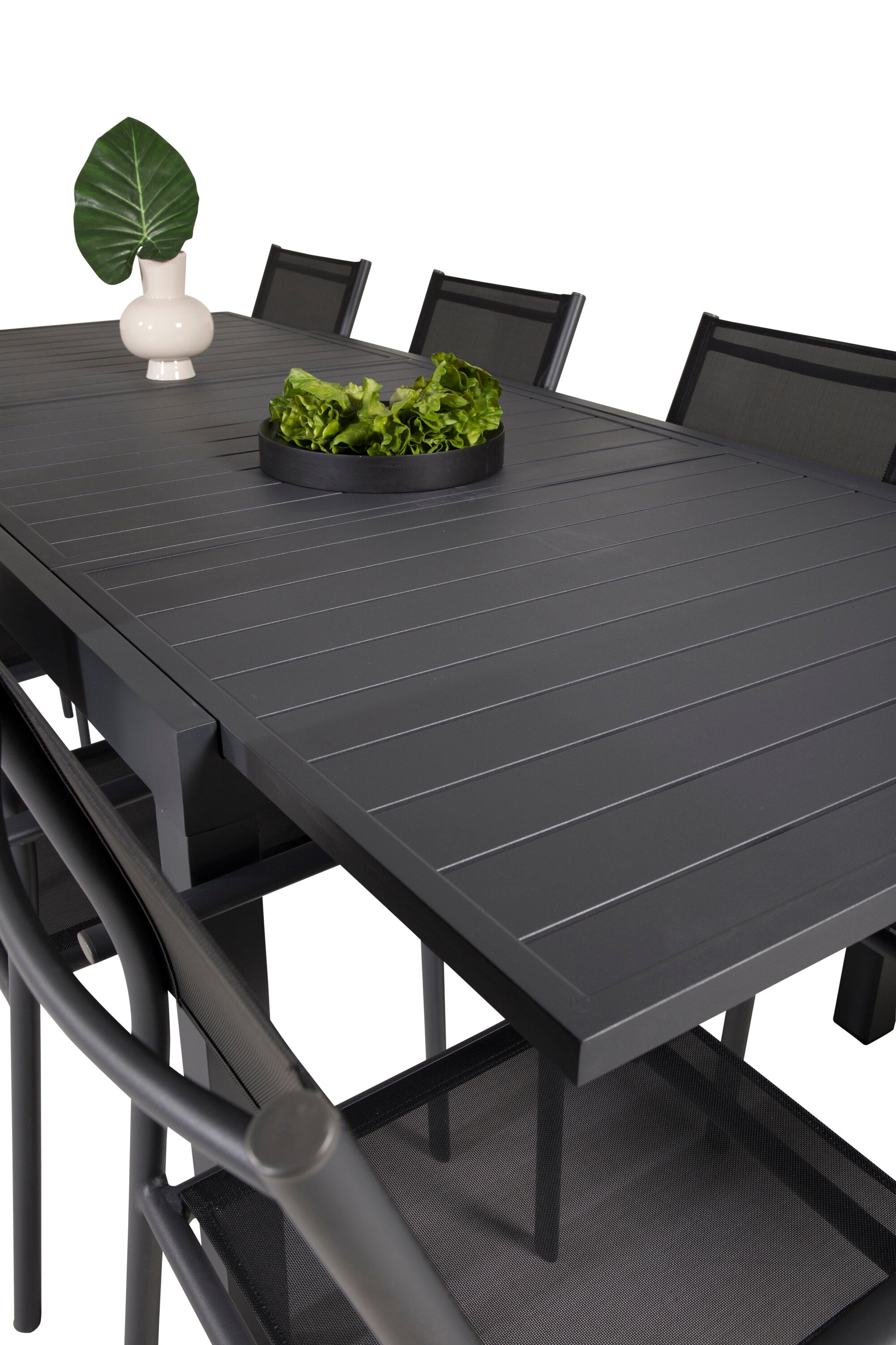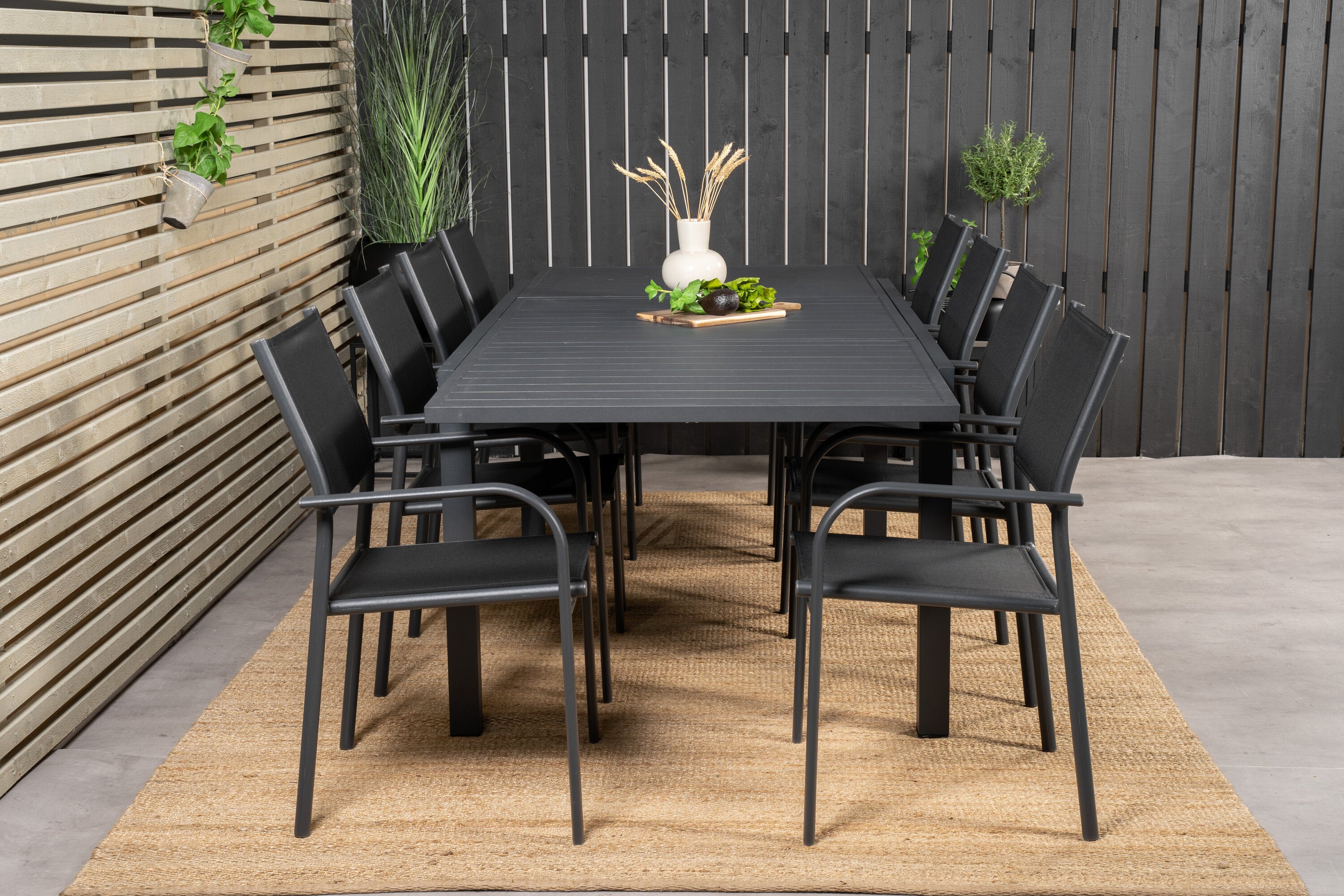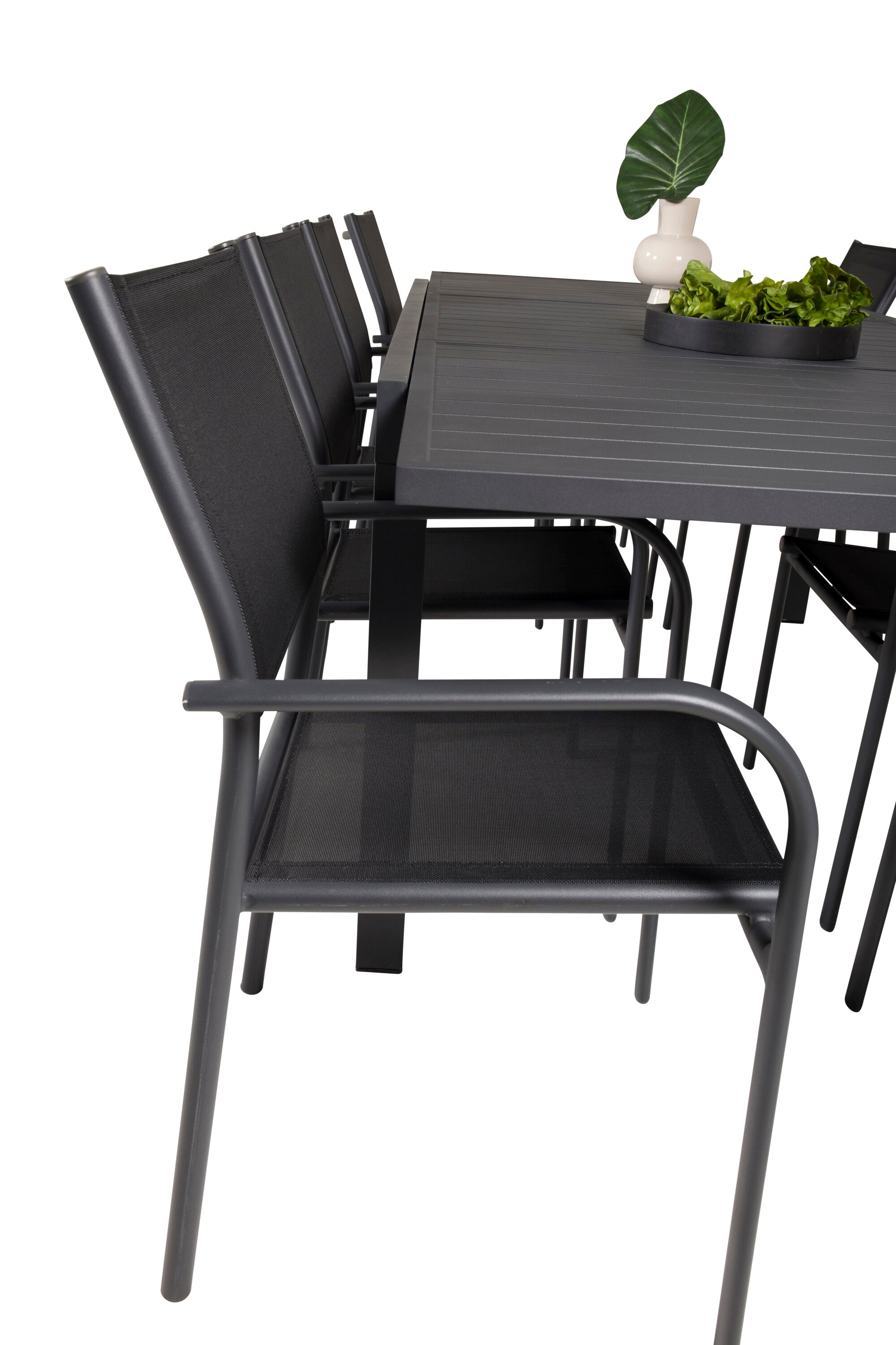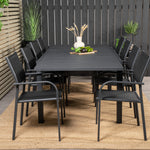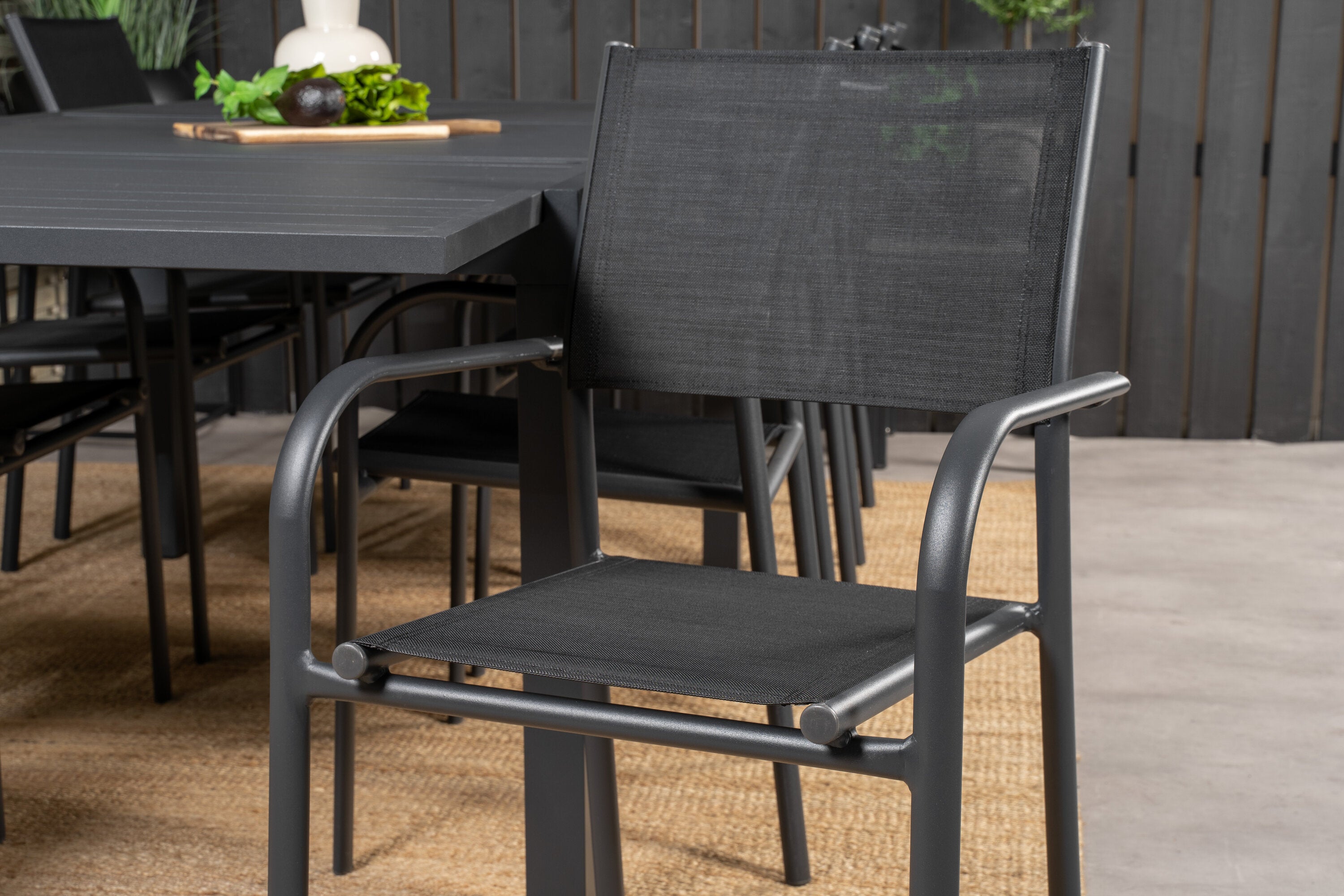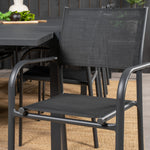 Stůl Marbella 160/240 - černá/černá - křeslo Santorini (stohovatelné) - černá alu / černá textilie 8