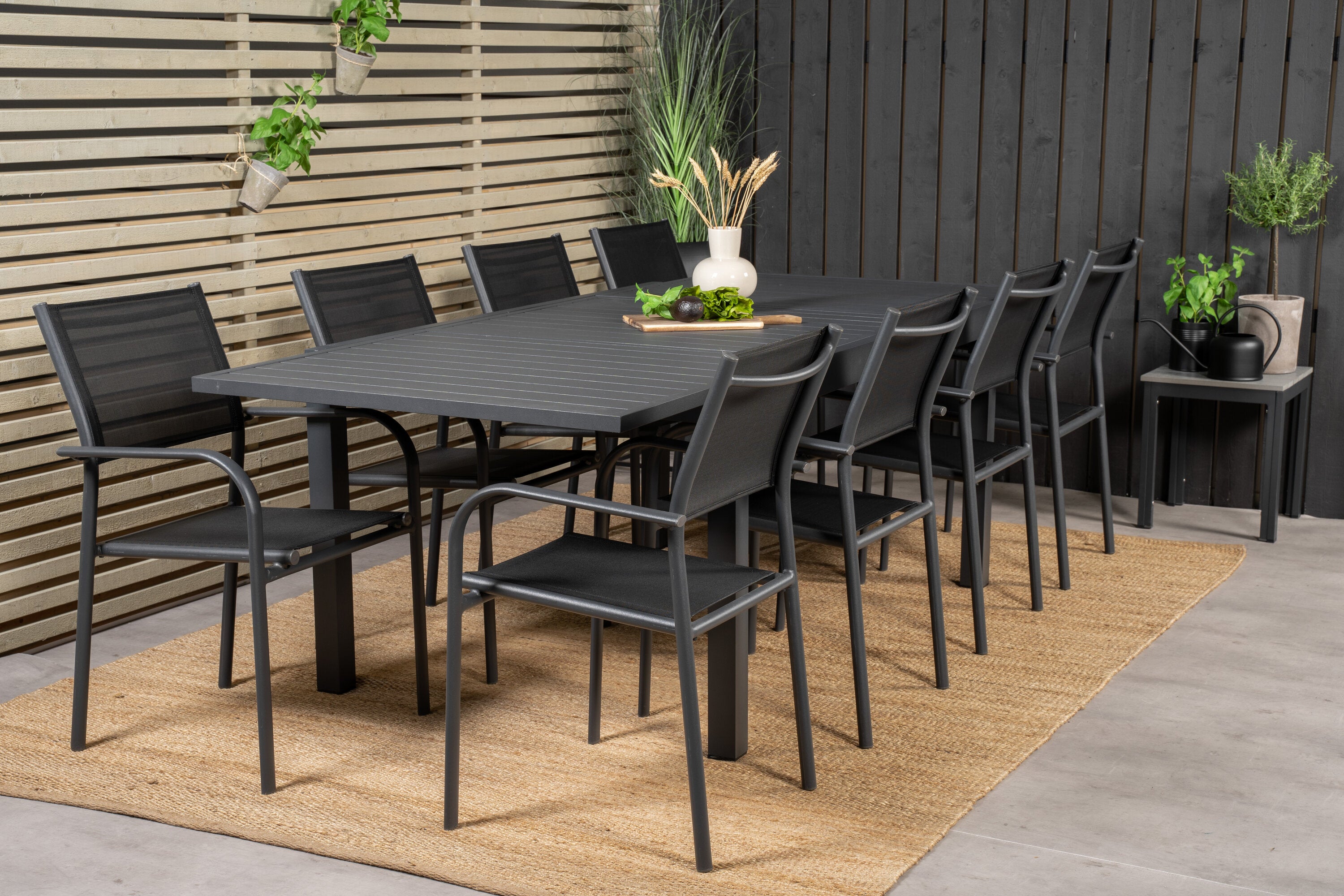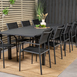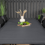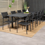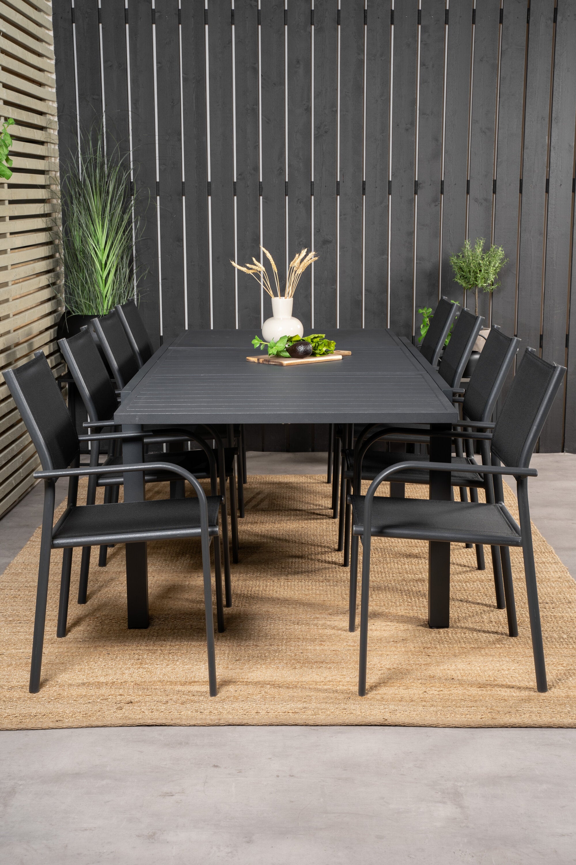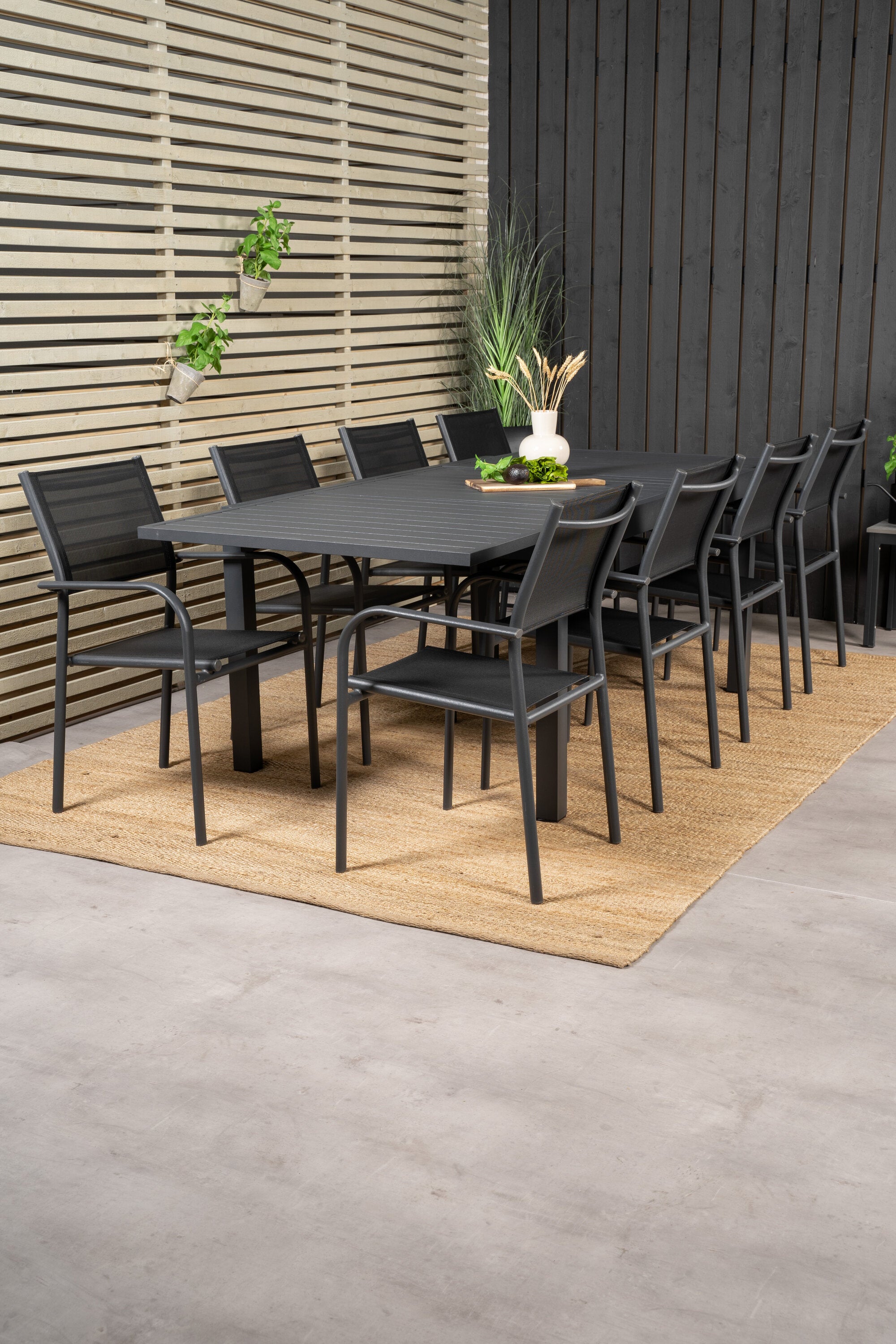 Stůl Marbella 160/240 - černá/černá - křeslo Santorini (stohovatelné) - černá alu / černá textilie 8
