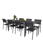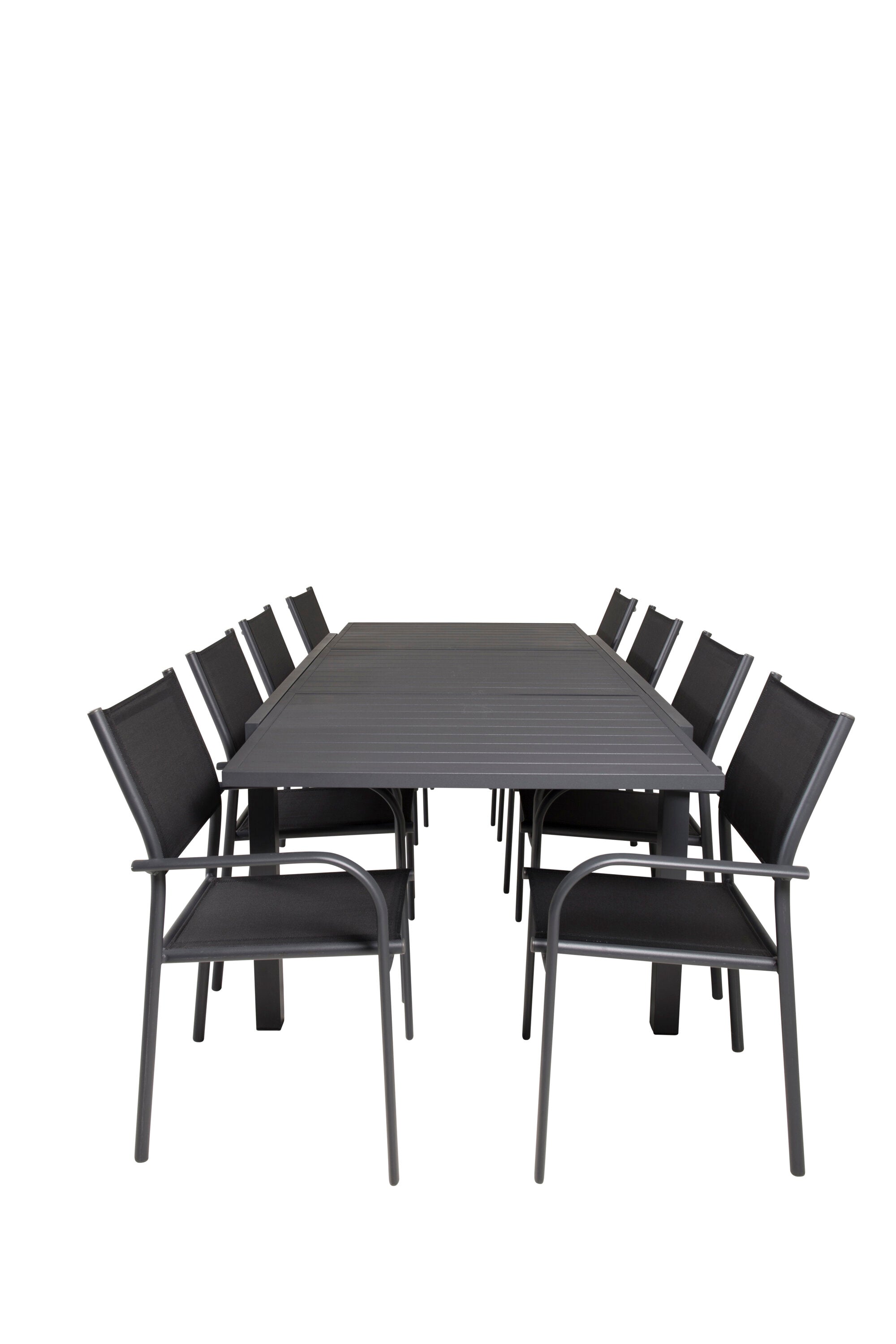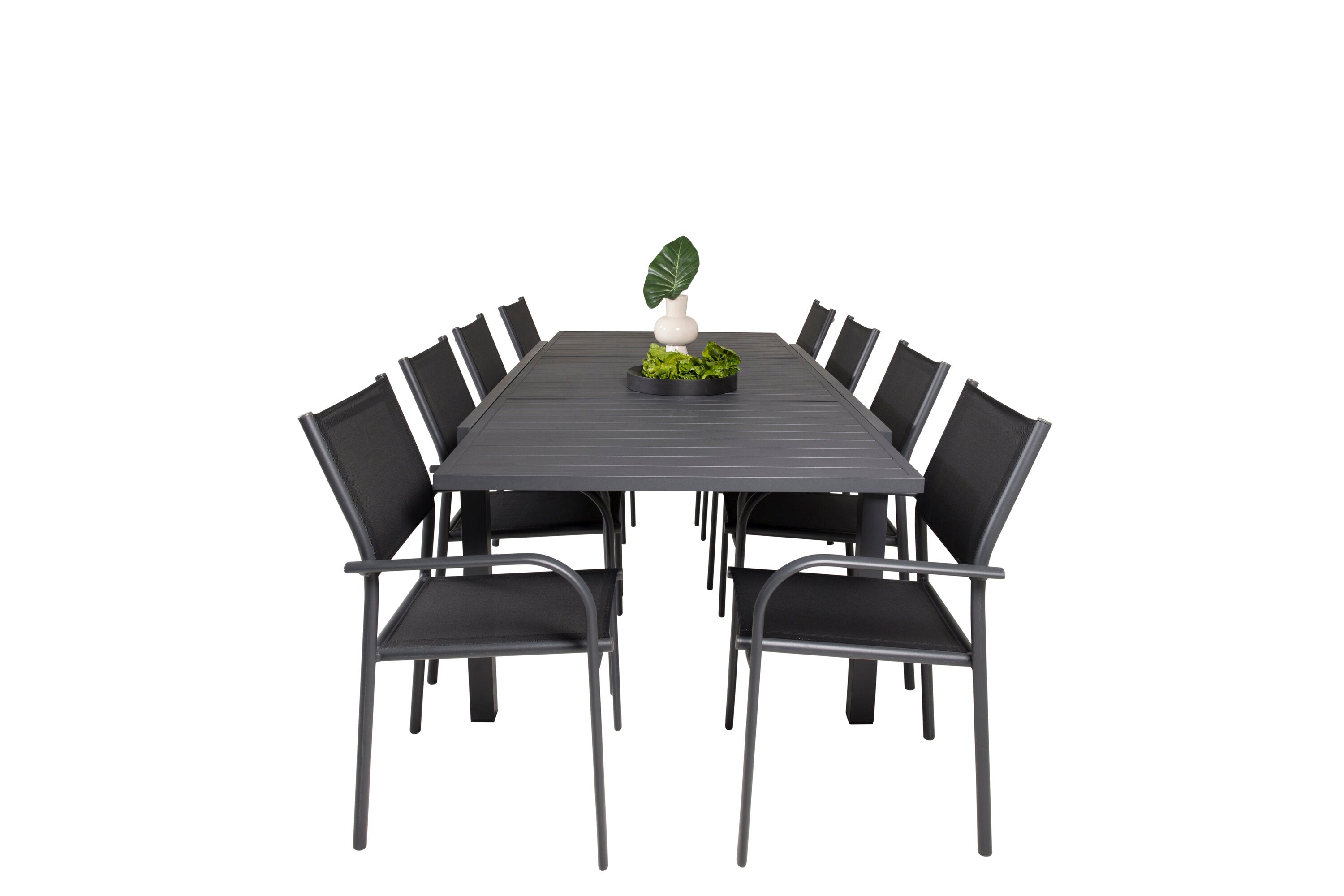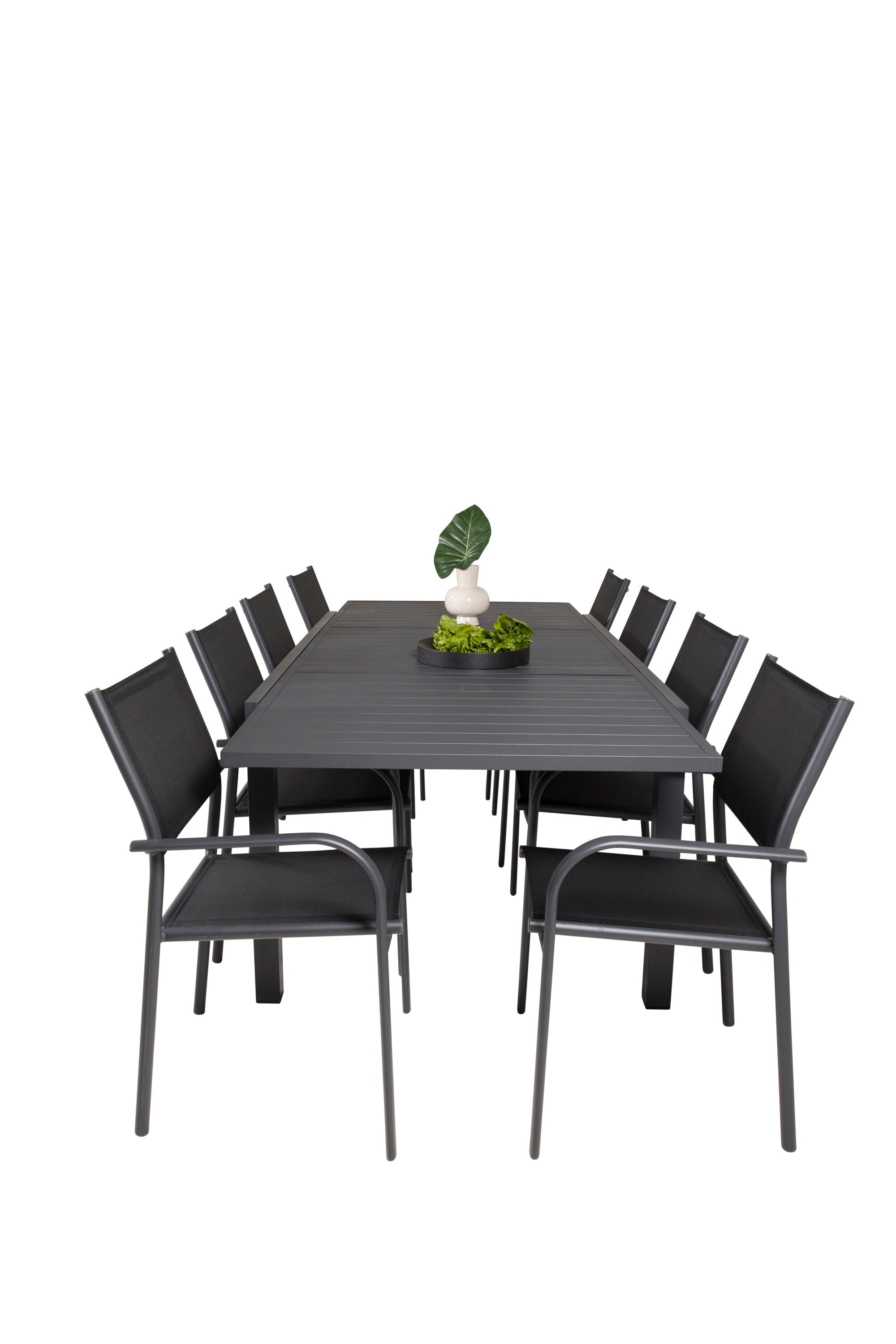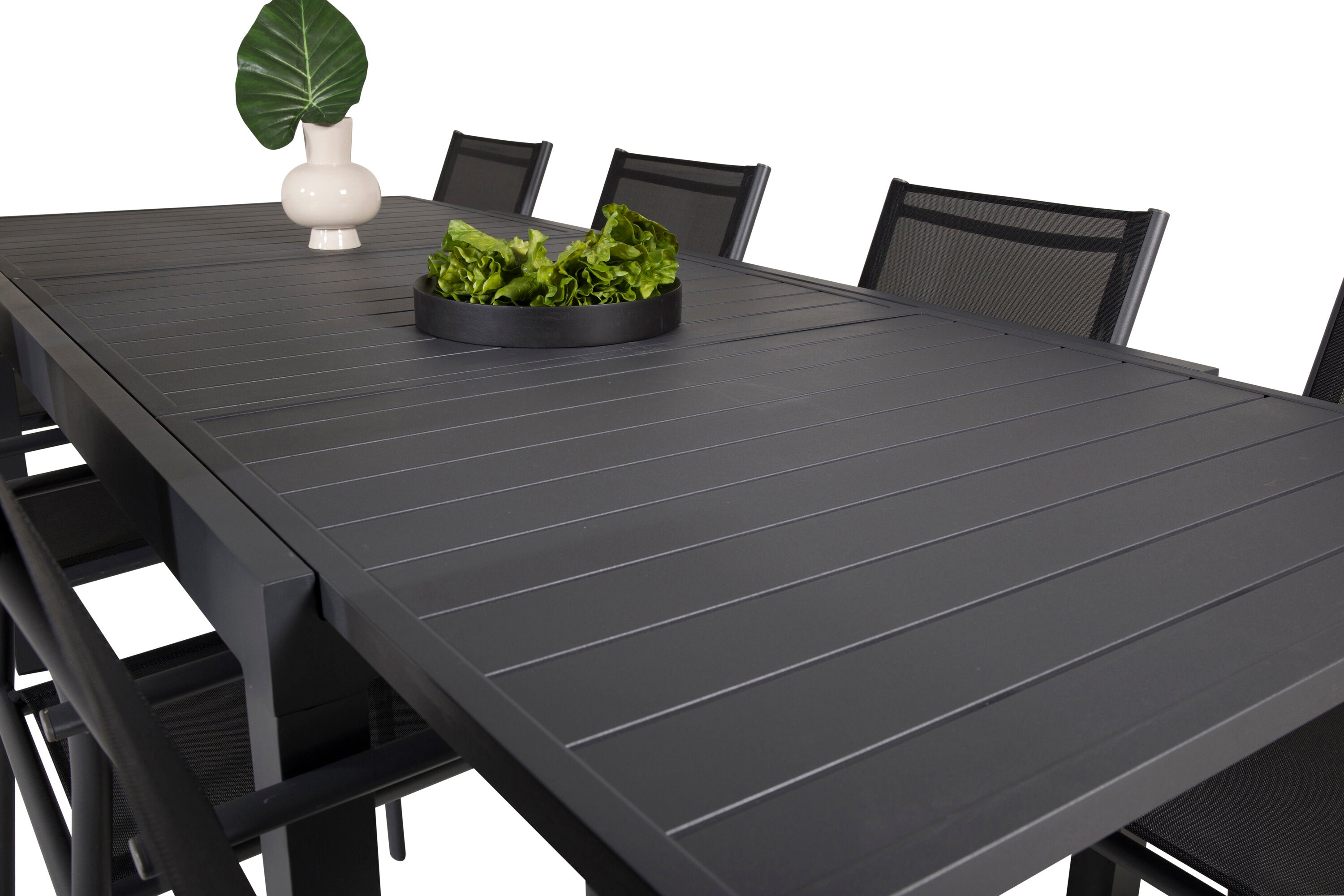 Stůl Marbella 160/240 - černá/černá - křeslo Santorini (stohovatelné) - černá alu / černá textilie 8