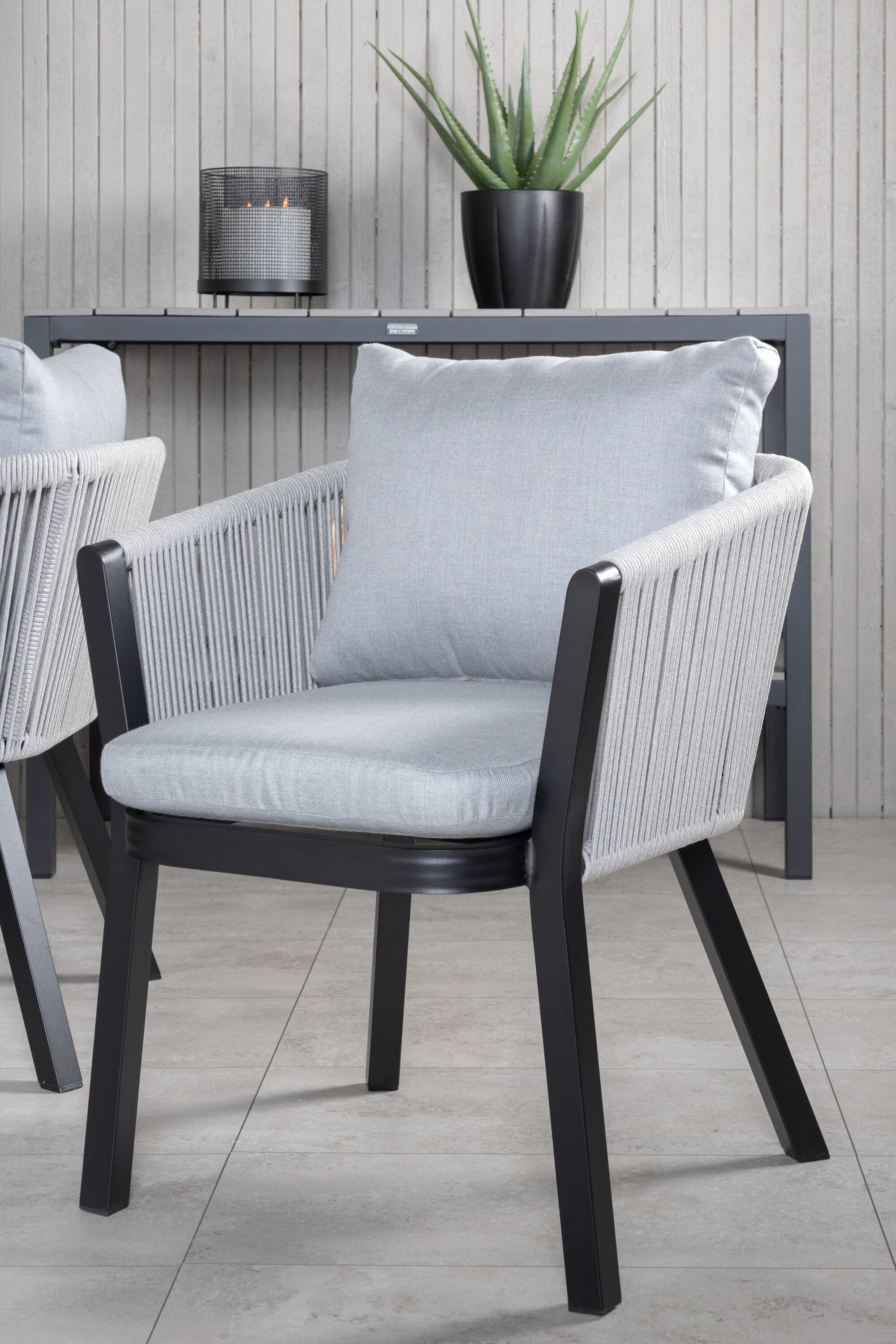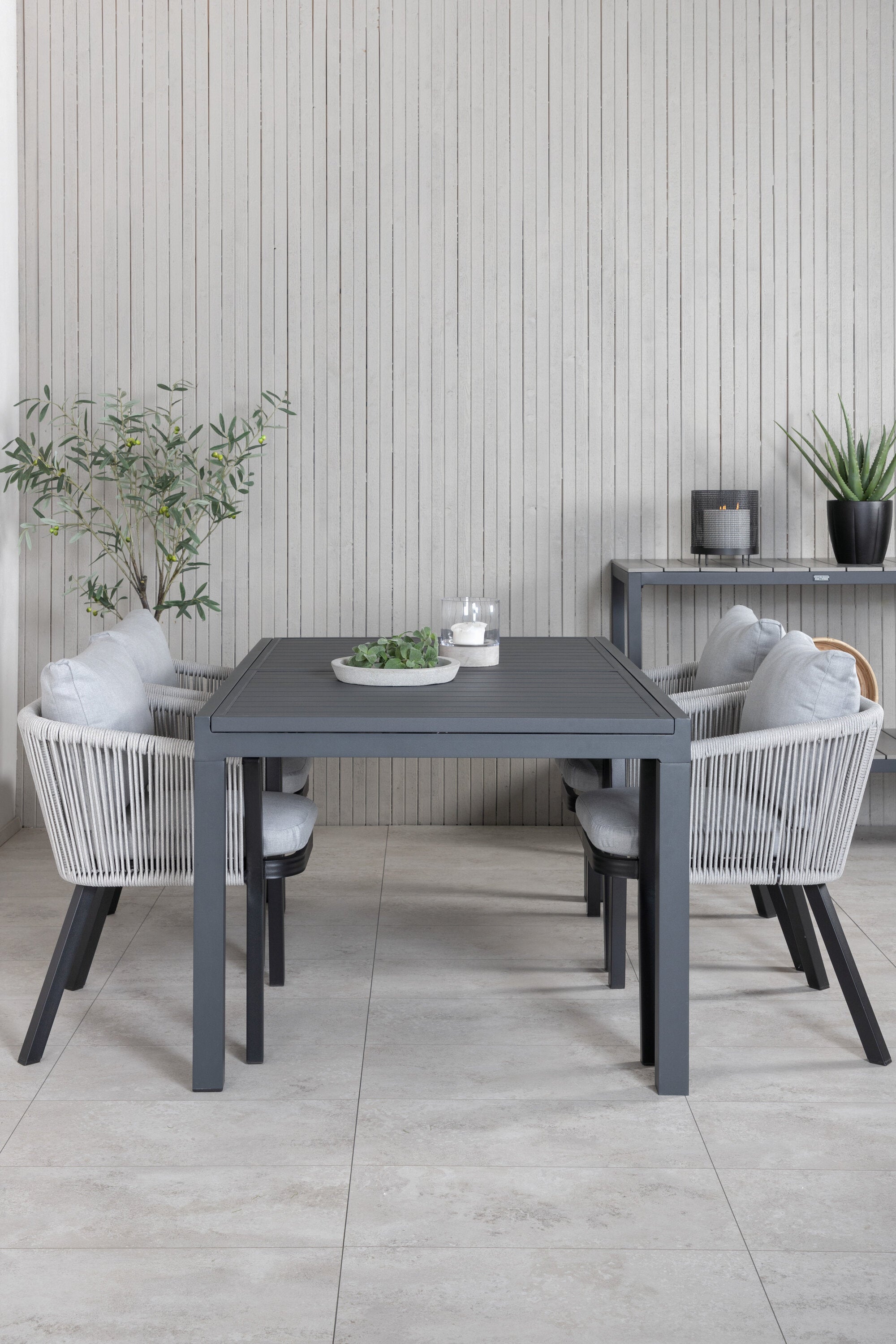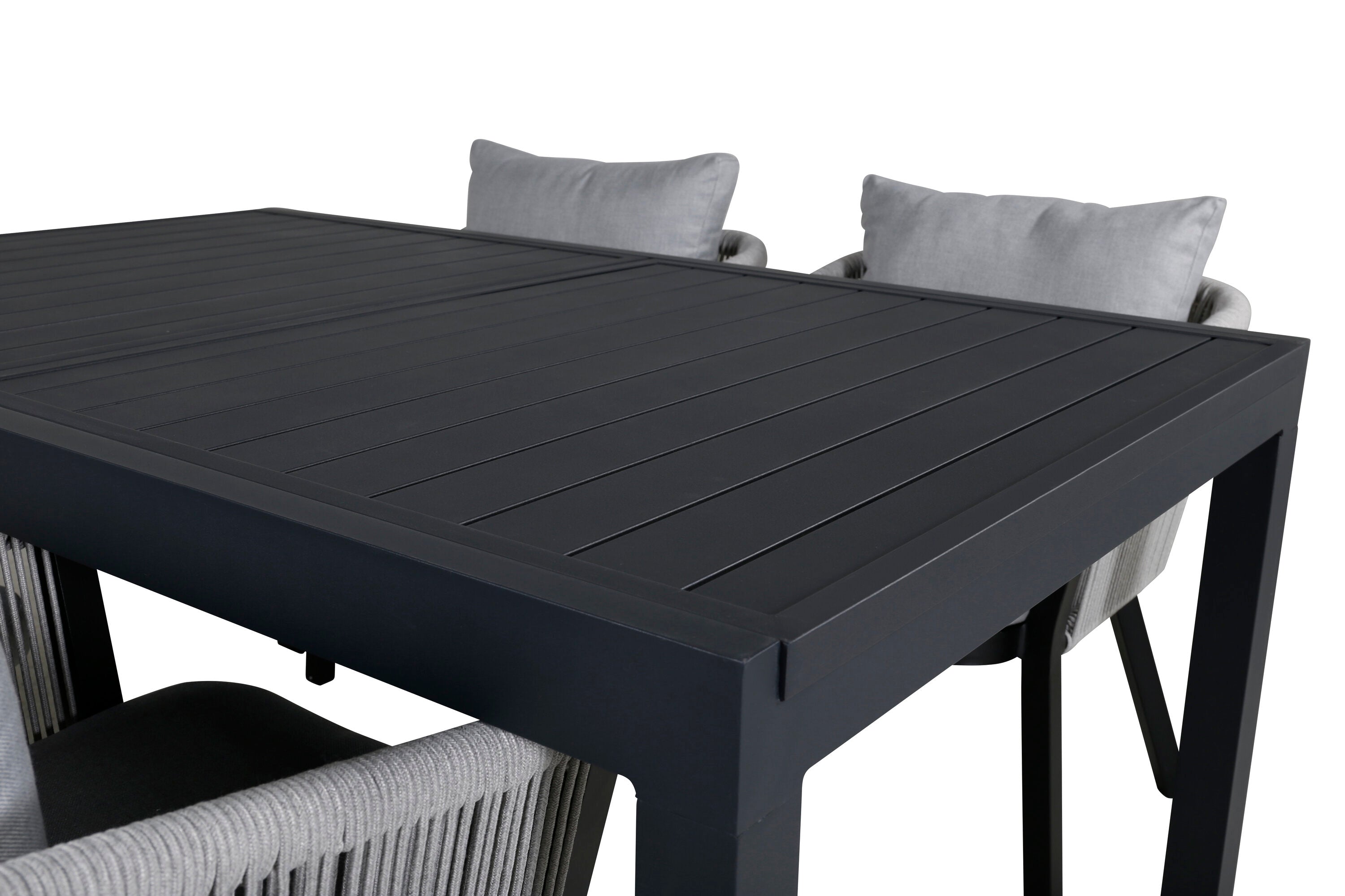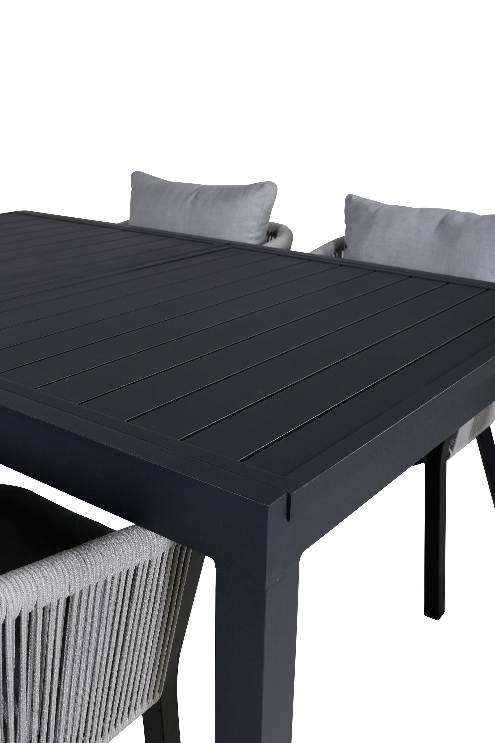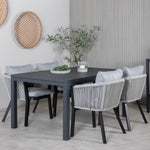 Stůl Marbella 160/240 - Černá/Černá+Virya Jídelní židle - ČERNÁ Alu / Šedý polštář _4