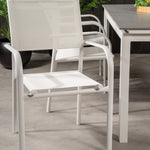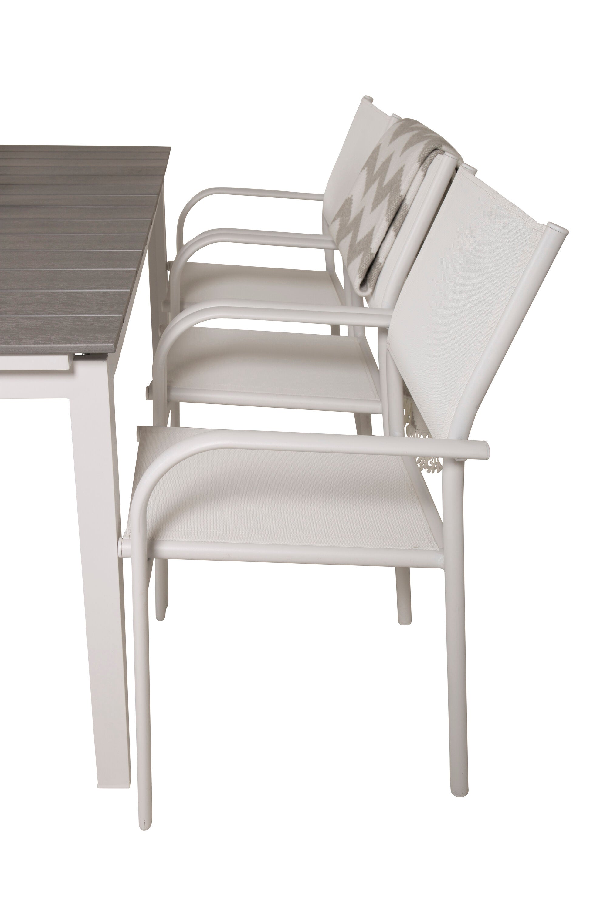 Stůl úrovní 160/240 - Bílá/Šedá - Křeslo Santorini (stohovatelné) - Bílá Alu / Bílá textilie 6