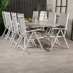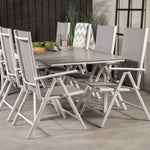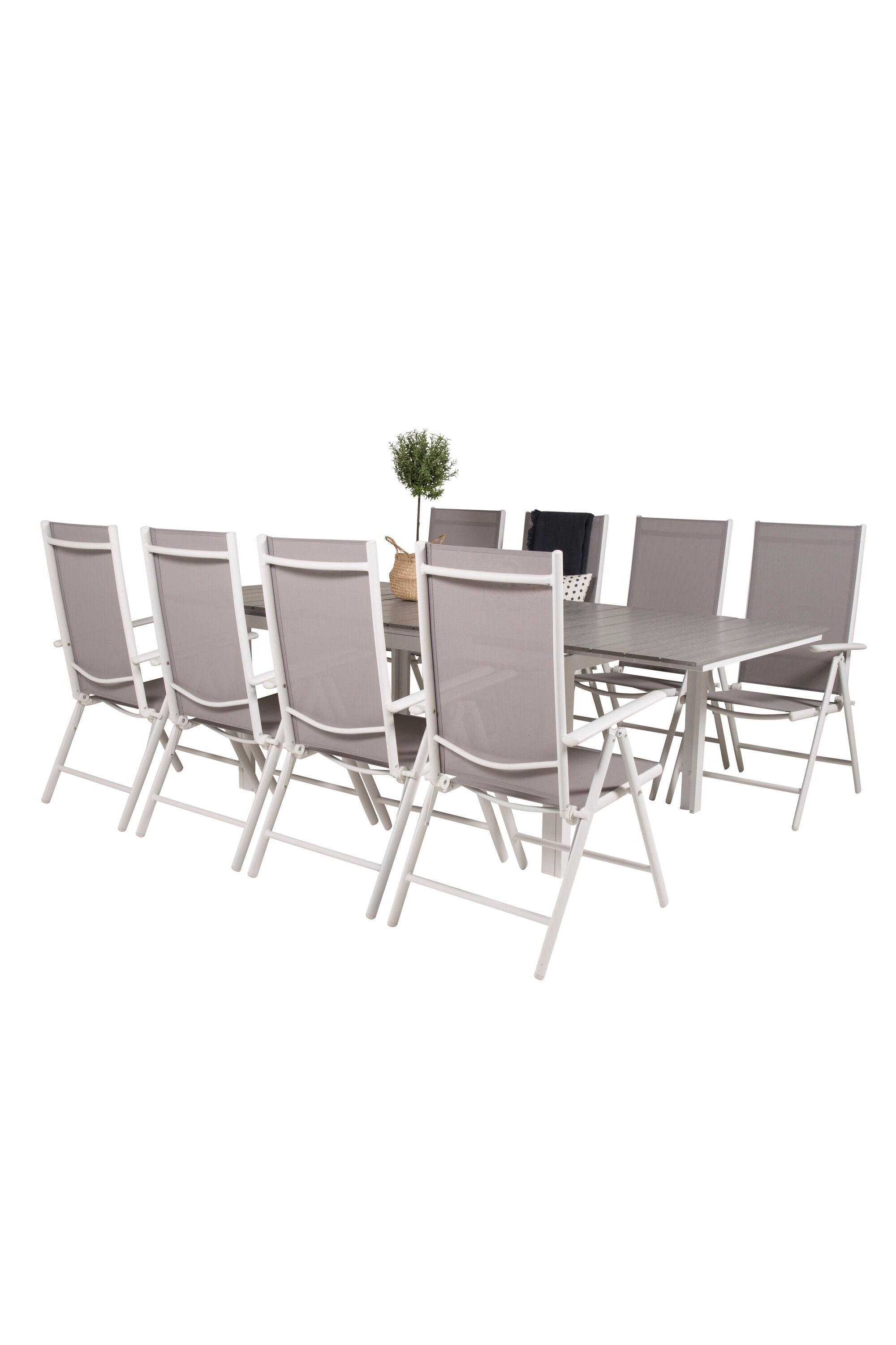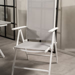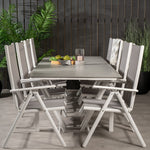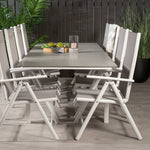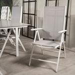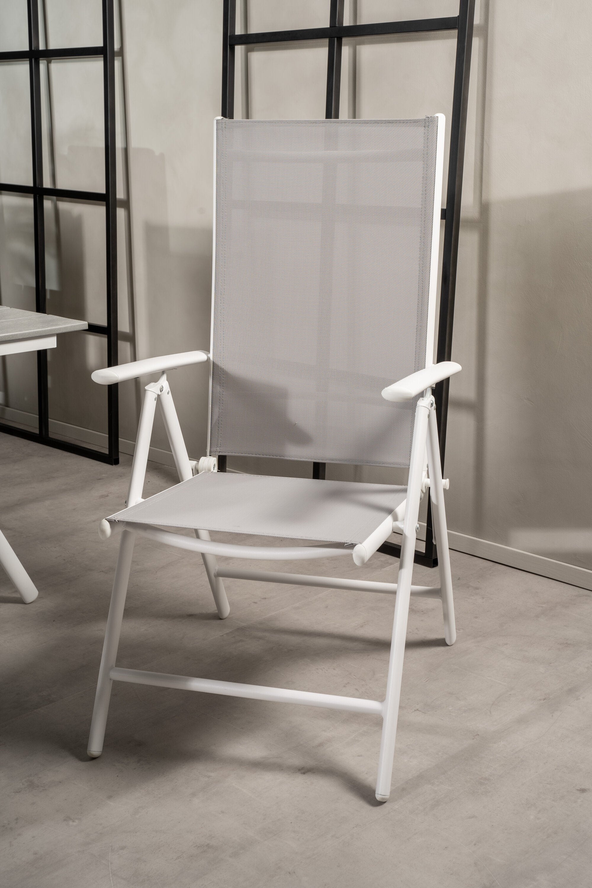 Módní skupina jídel, která se skvěle hodí na terasu! Jídelní stůl Levels v klasickém stylu, zde spolu s našimi moderními jídelními židlemi lom se sklopným opěradlem. Nechte svou terasu ozdobit touto poutavou skupinou jídel a užijte si pozdní letní večery!