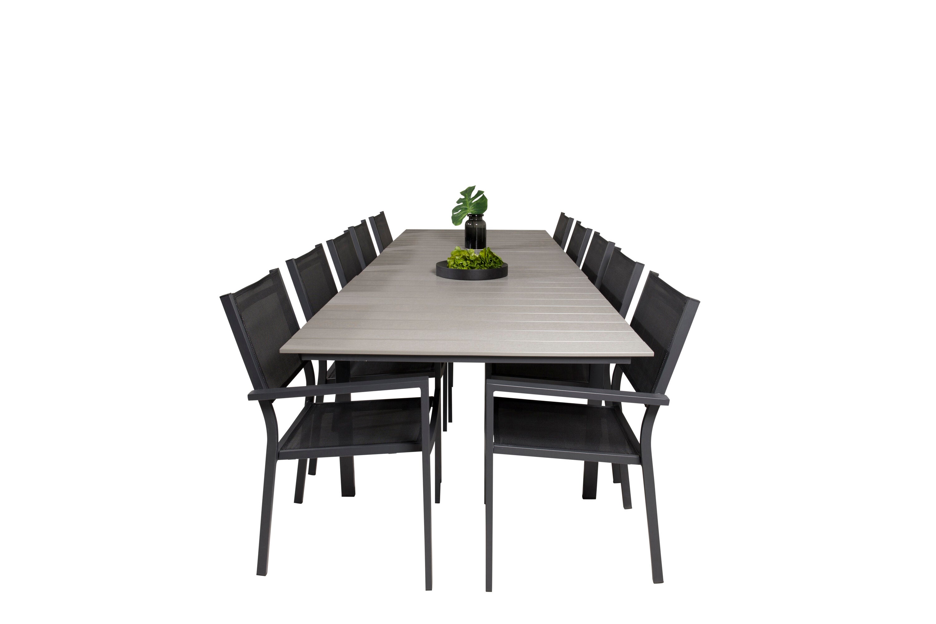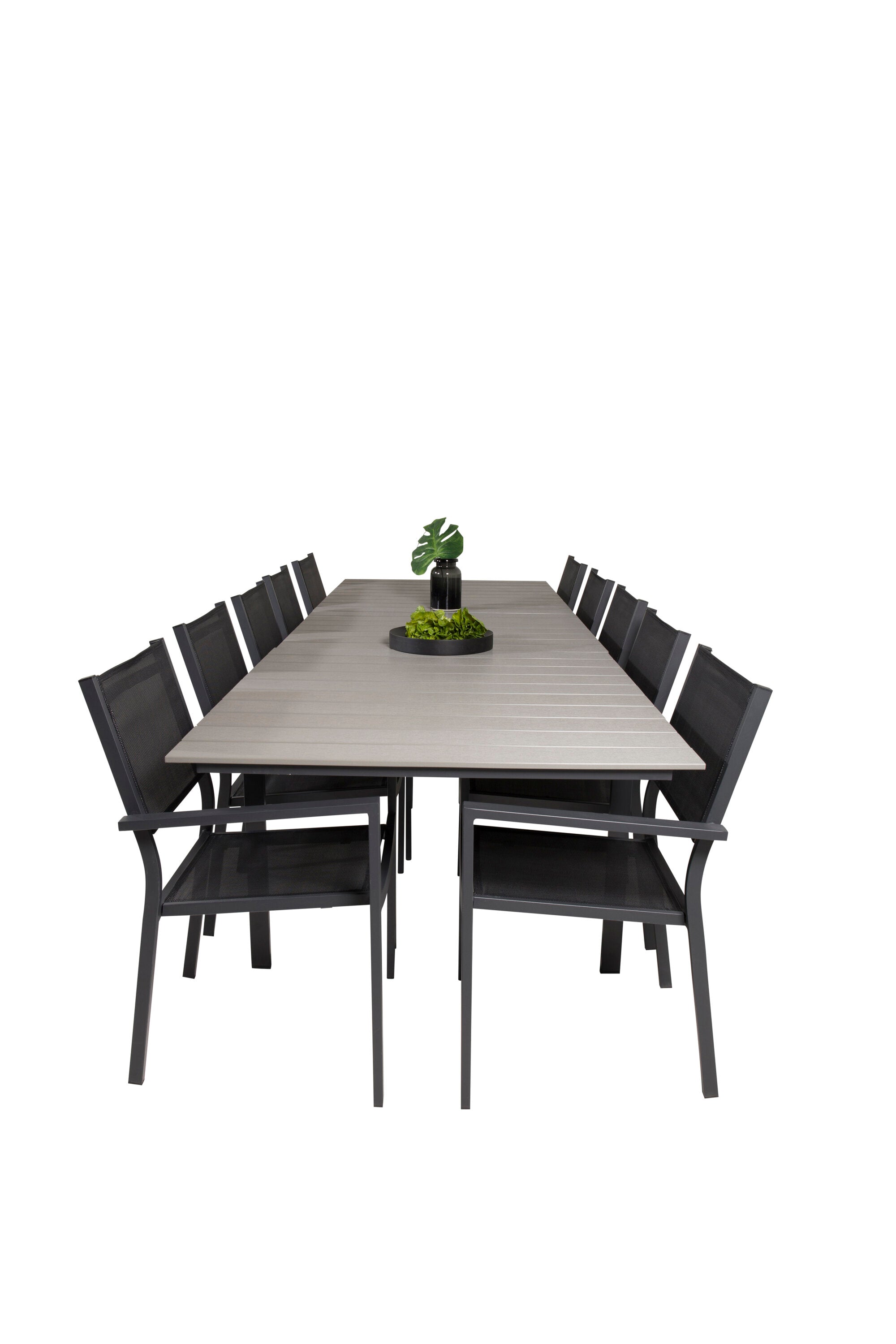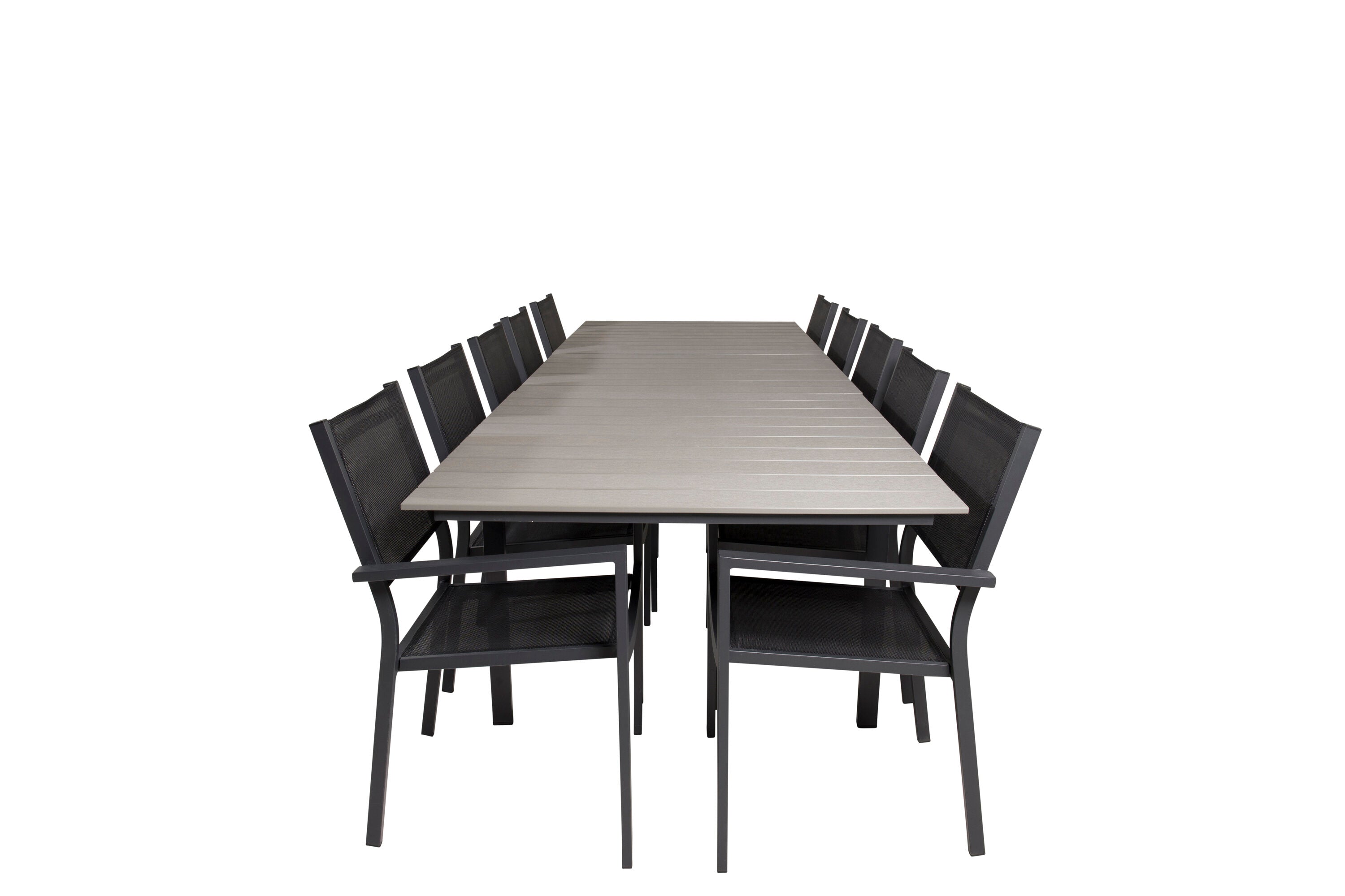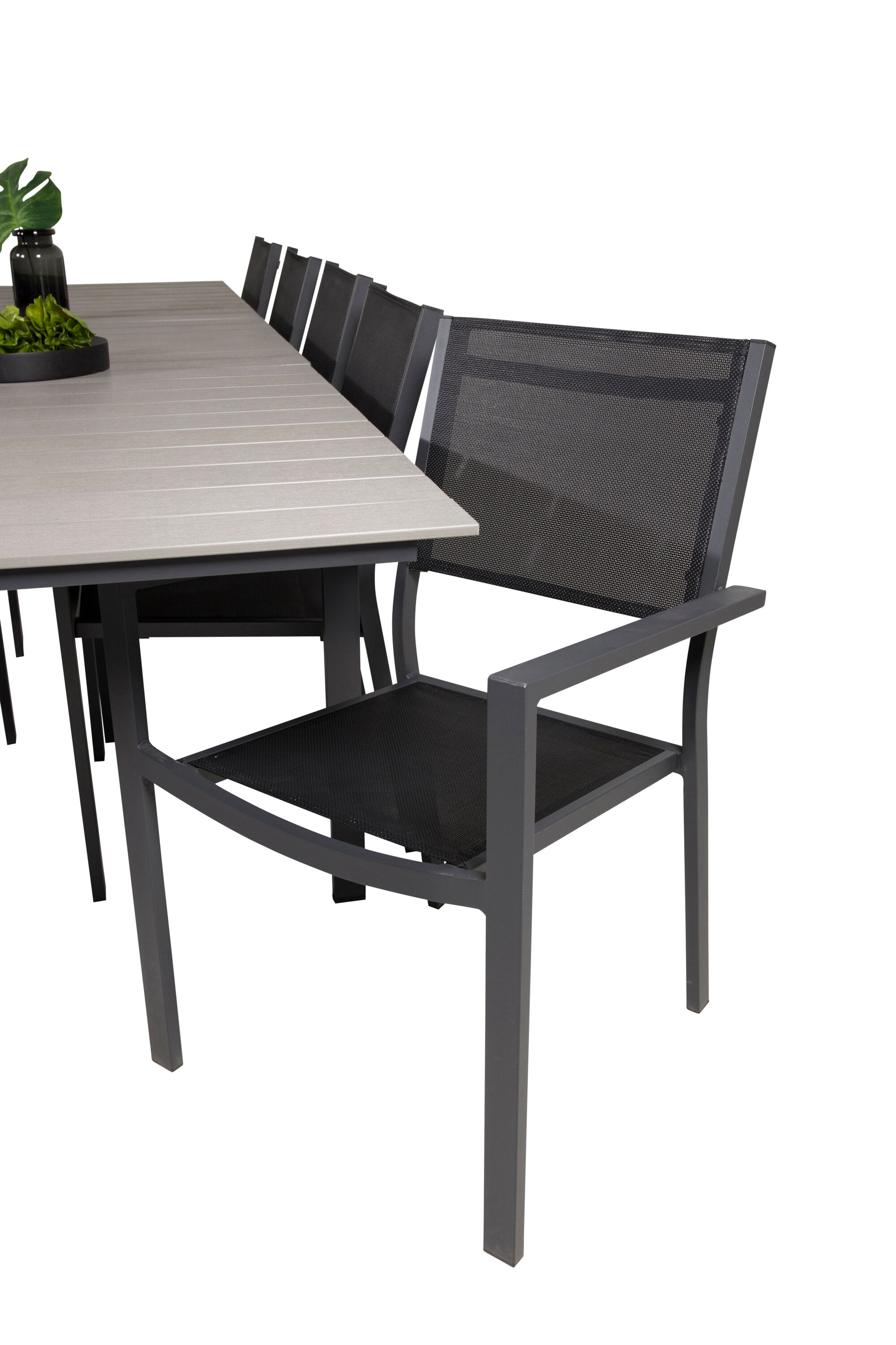 Stůl úrovní 229/310 – černá/šedá – stohovací židle Copacabana – černá/černá 10