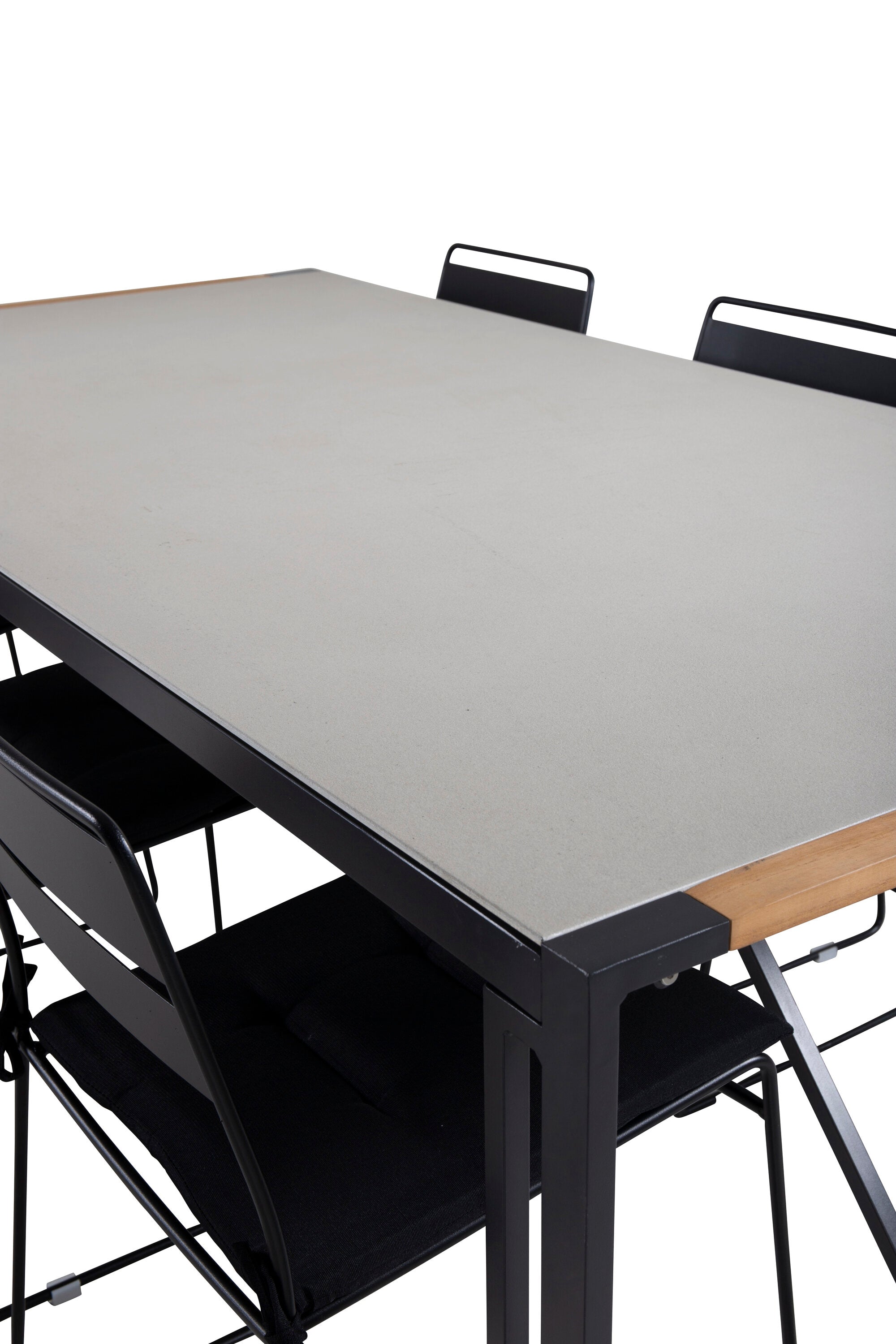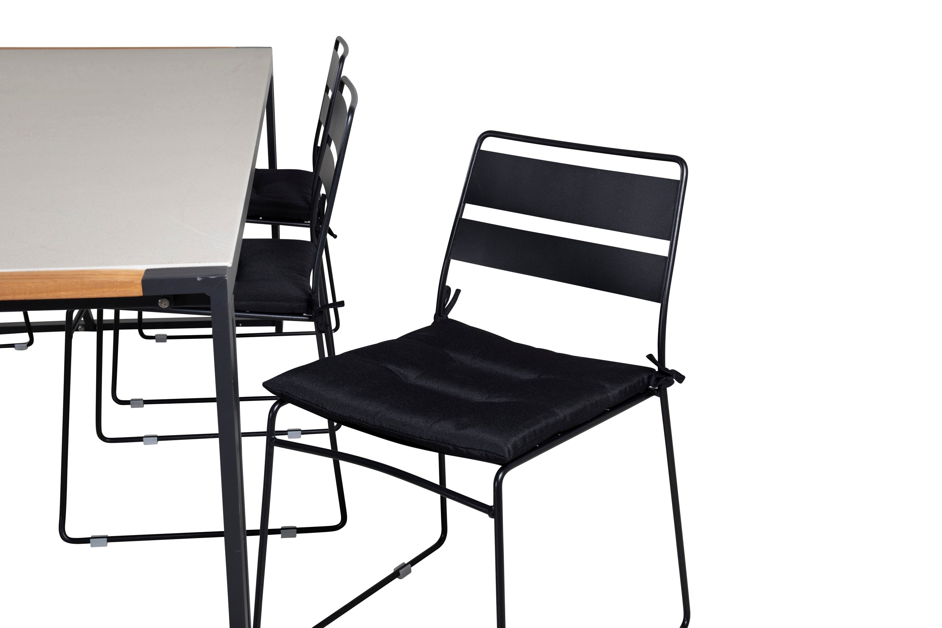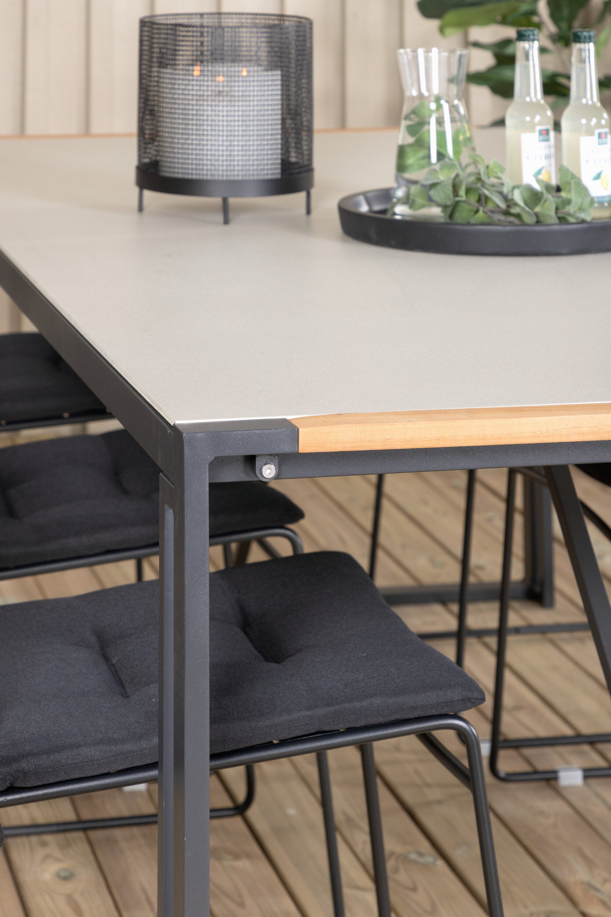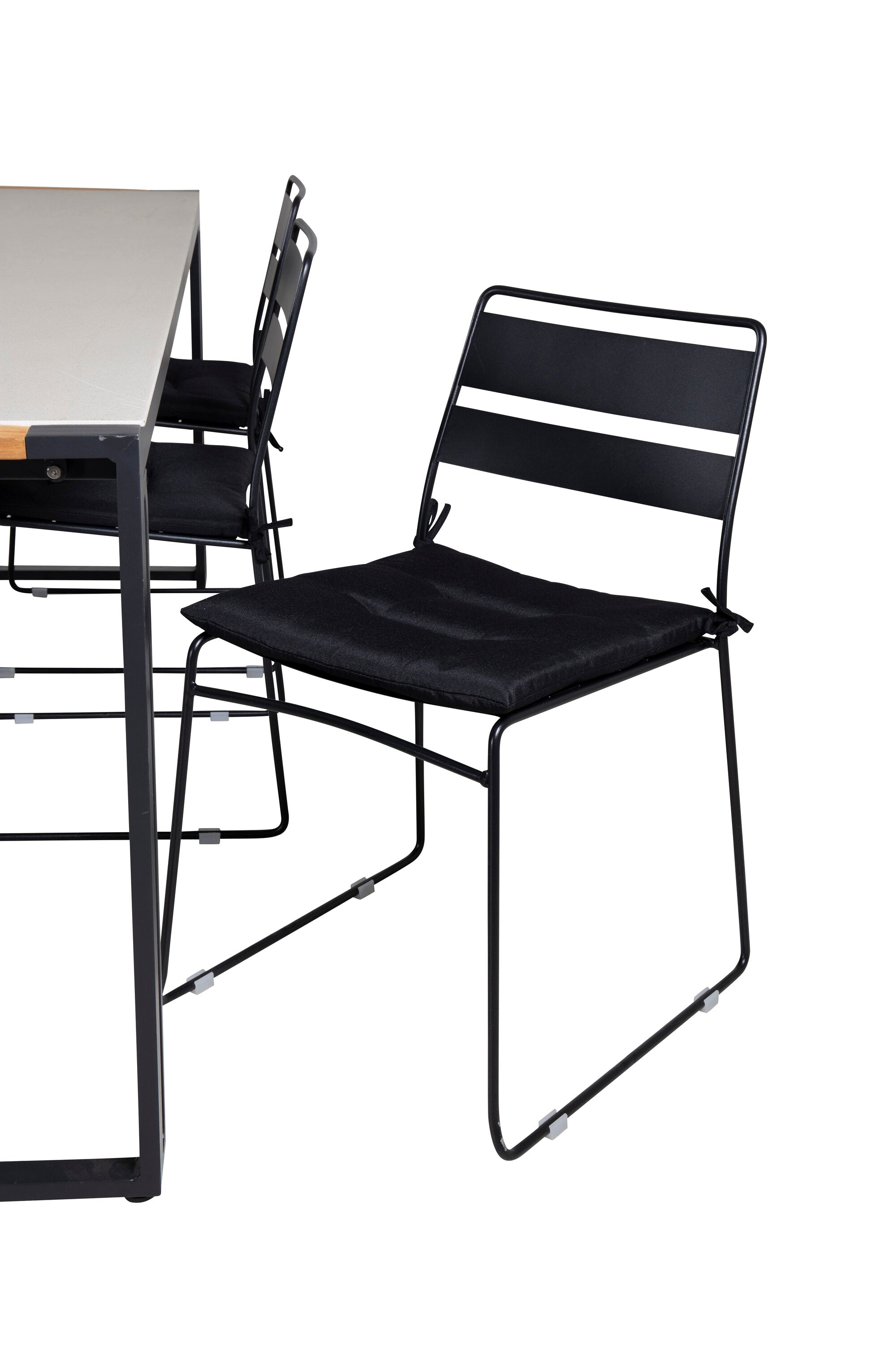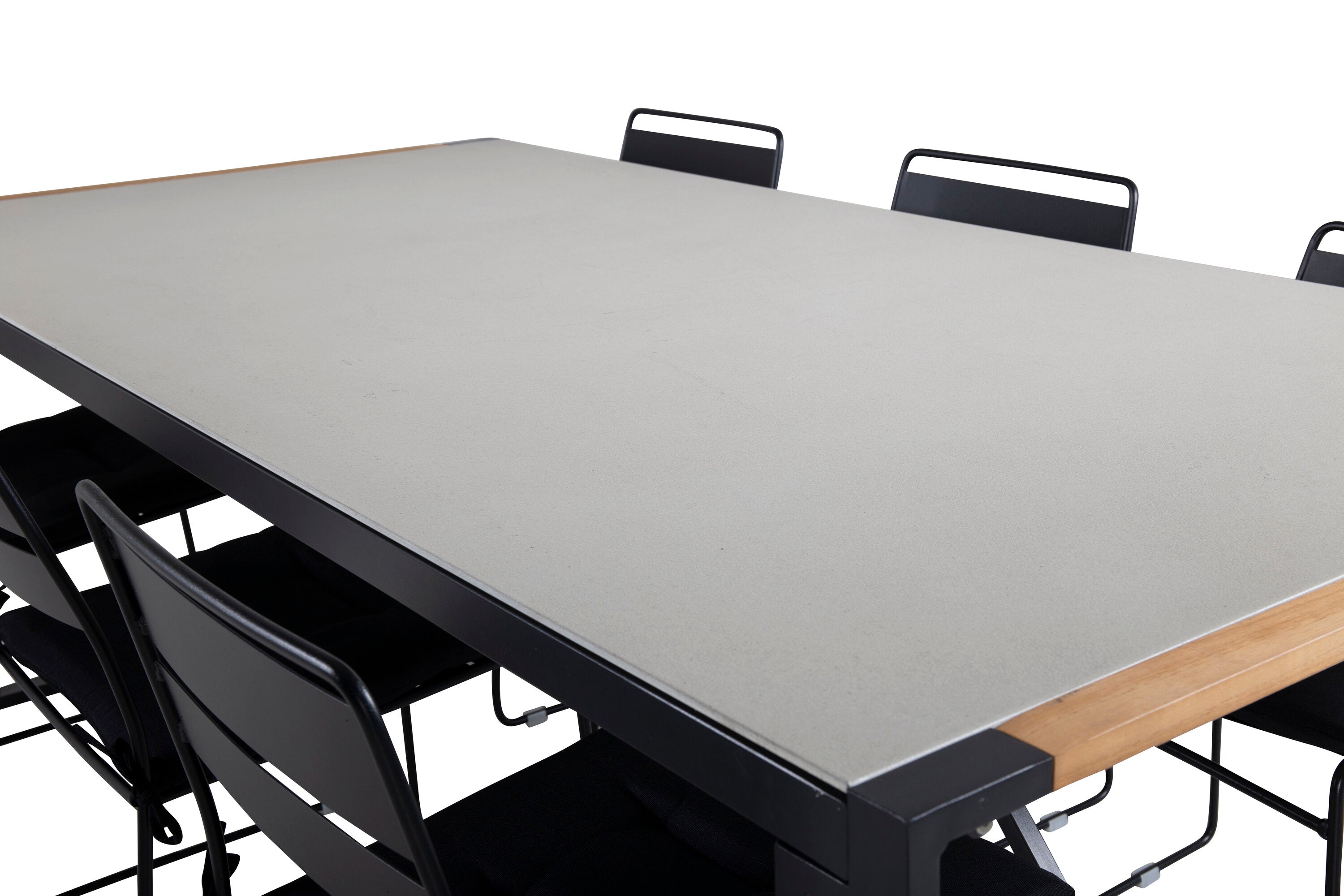 Texas Jídelní stůl 200*100 - Černá Alu / Teak / Šedý kámen ve spreji+Lina Jídelní židle - Black_6