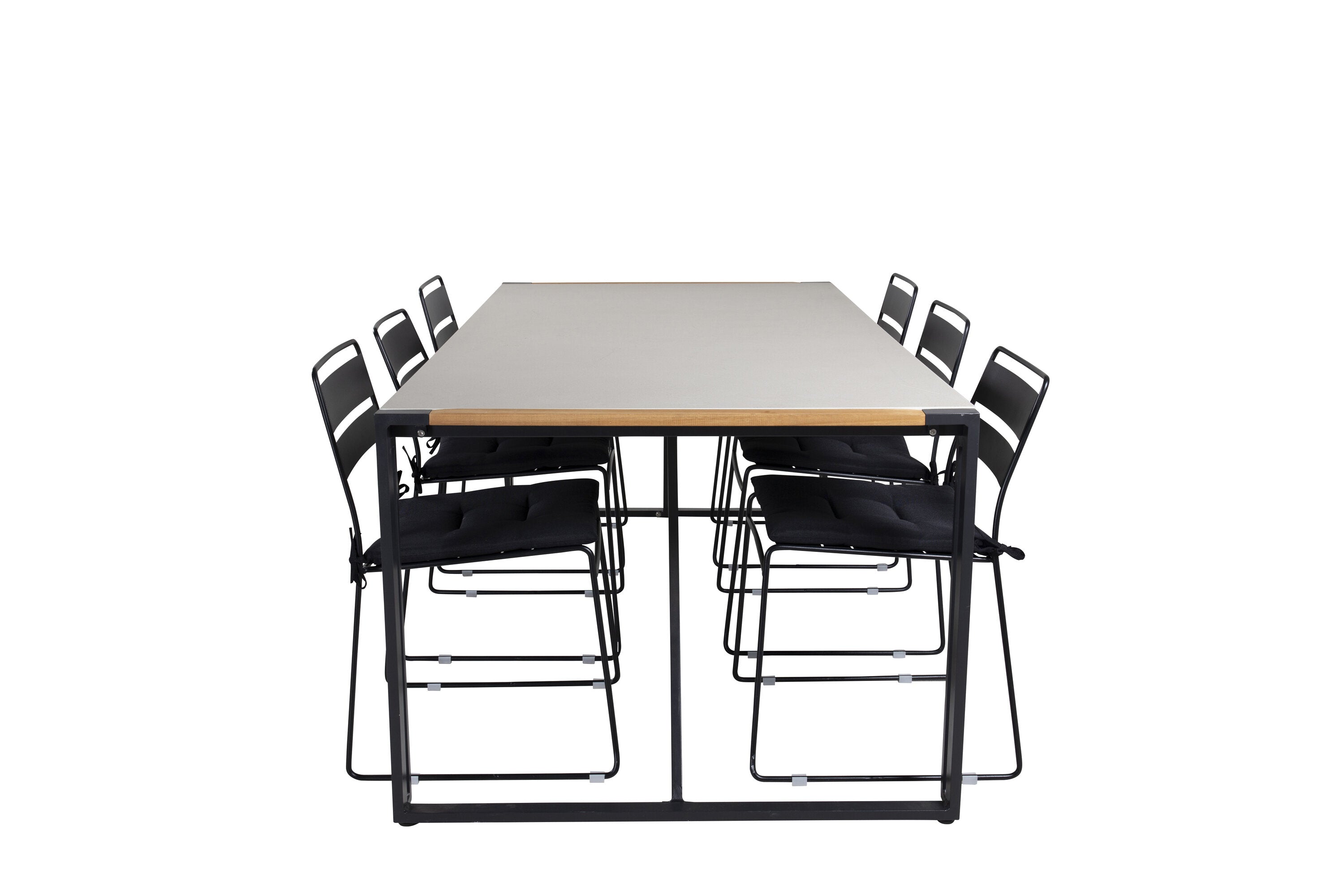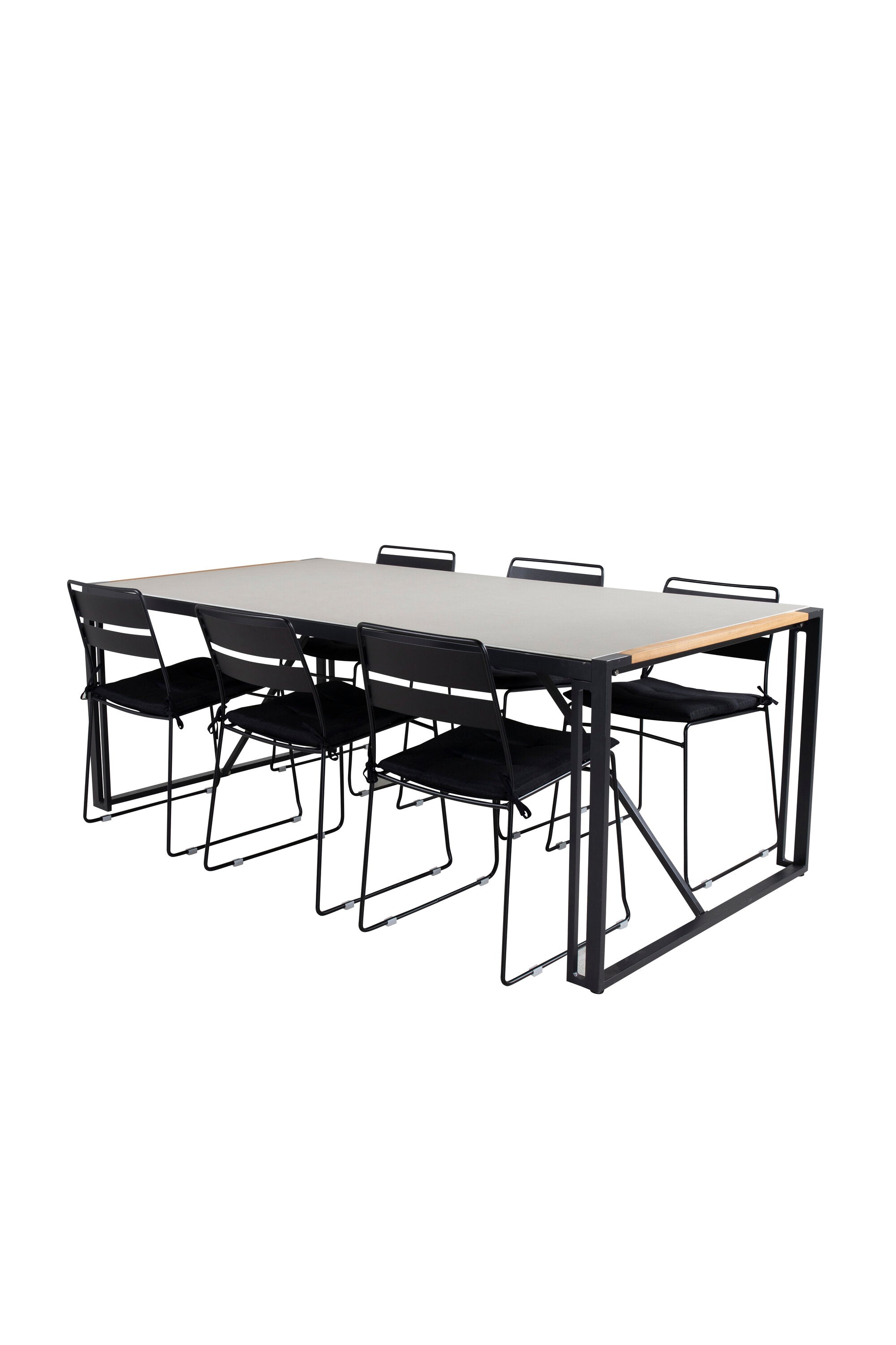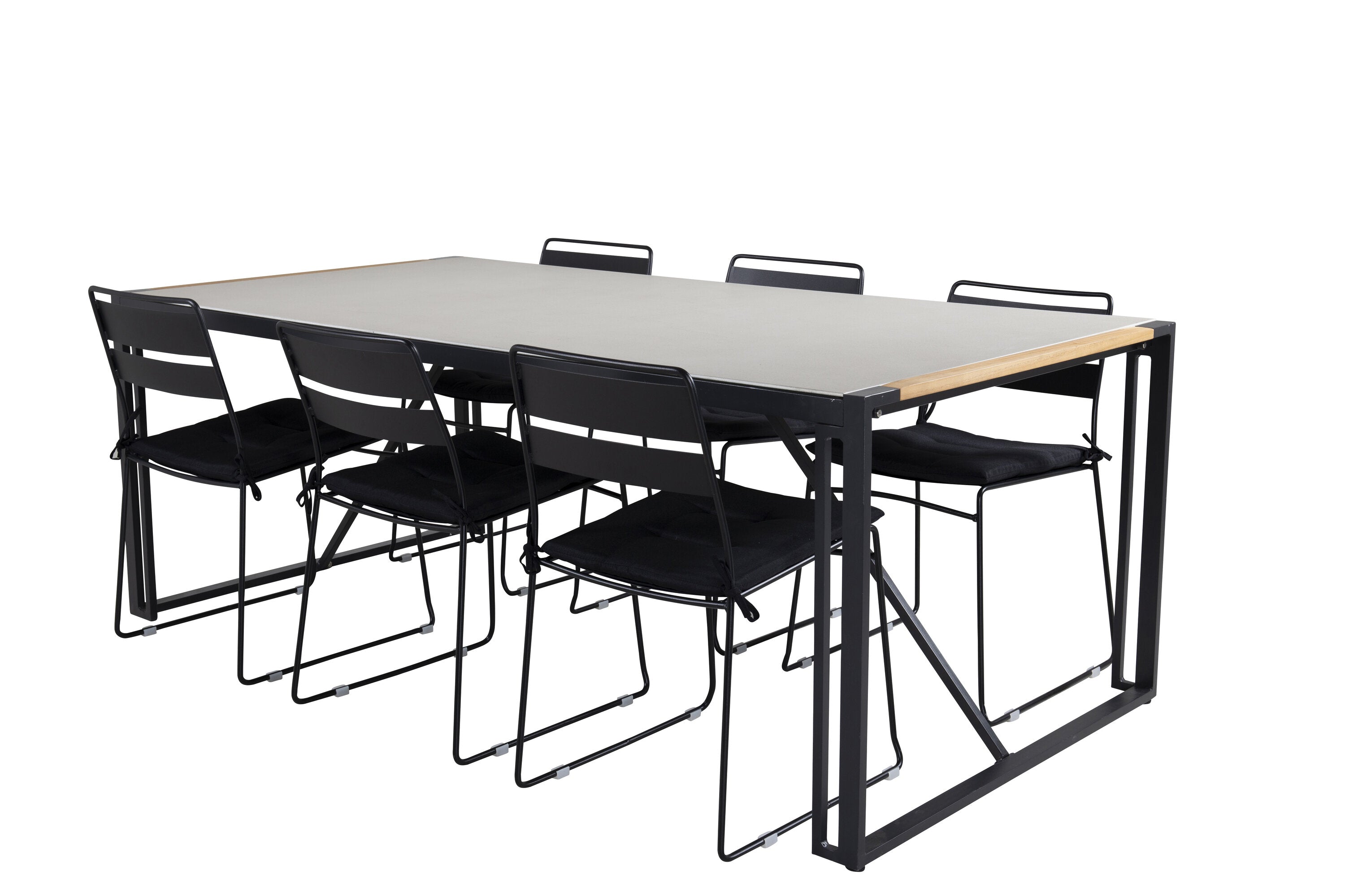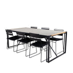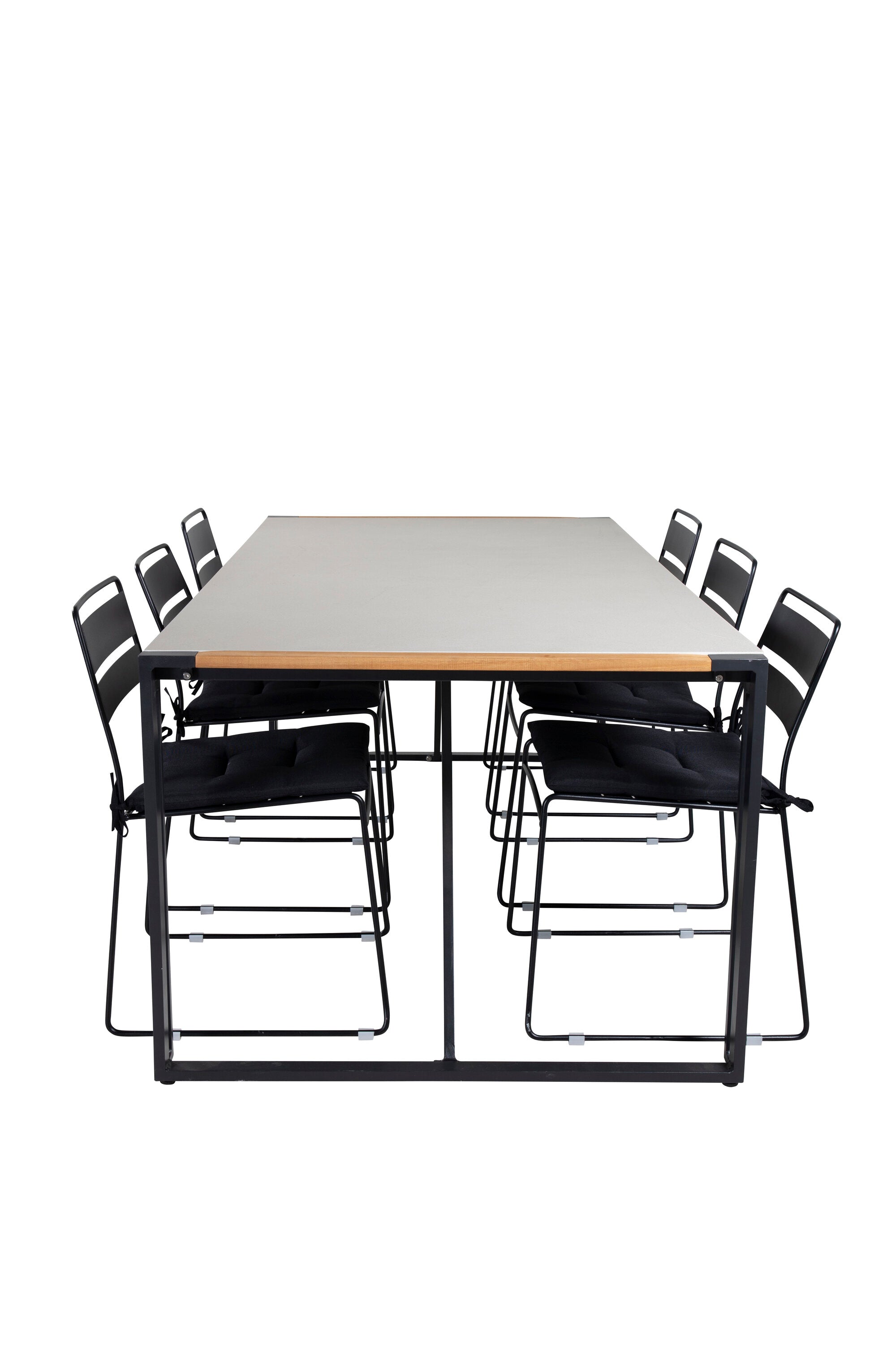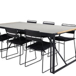 Texas Jídelní stůl 200*100 - Černá Alu / Teak / Šedý kámen ve spreji+Lina Jídelní židle - Black_6
