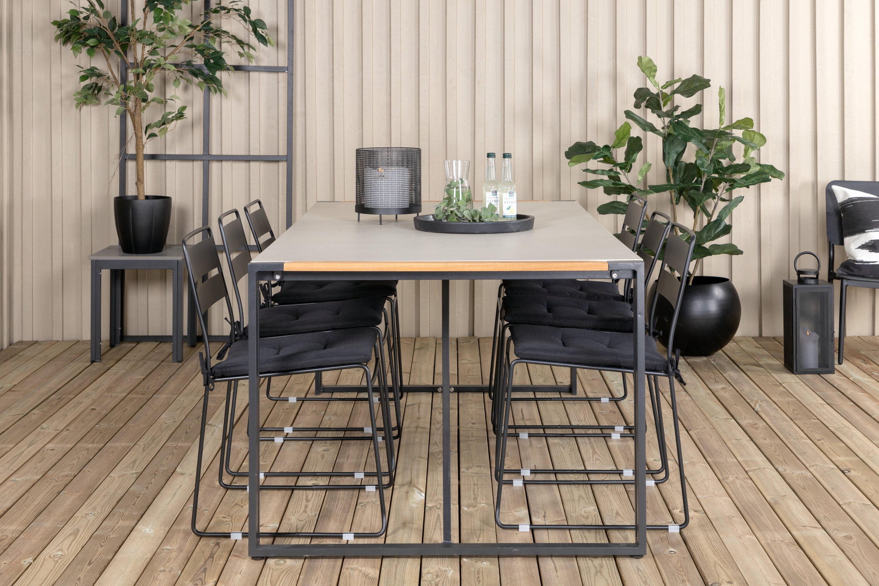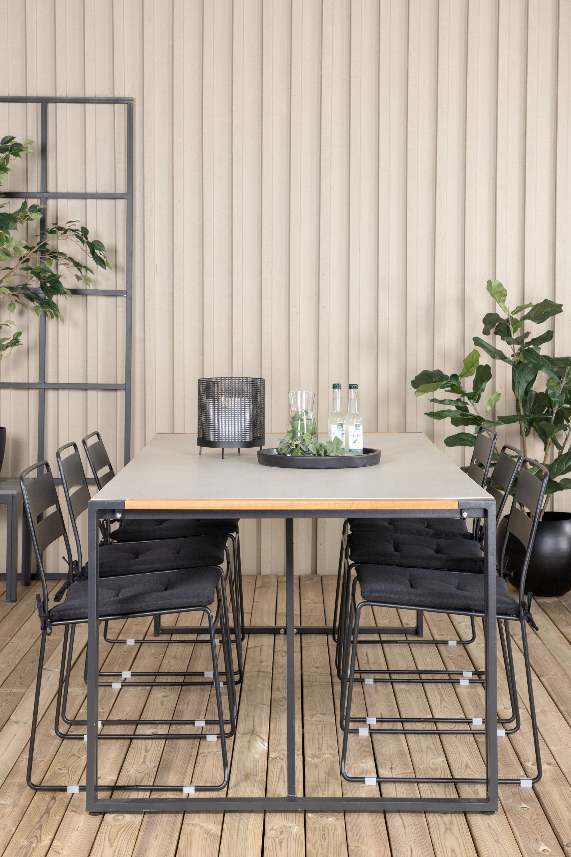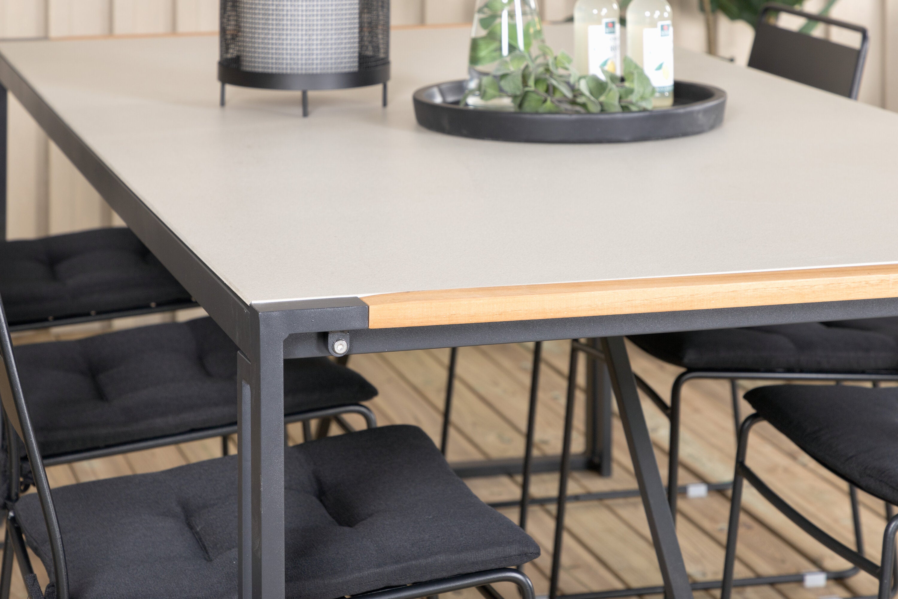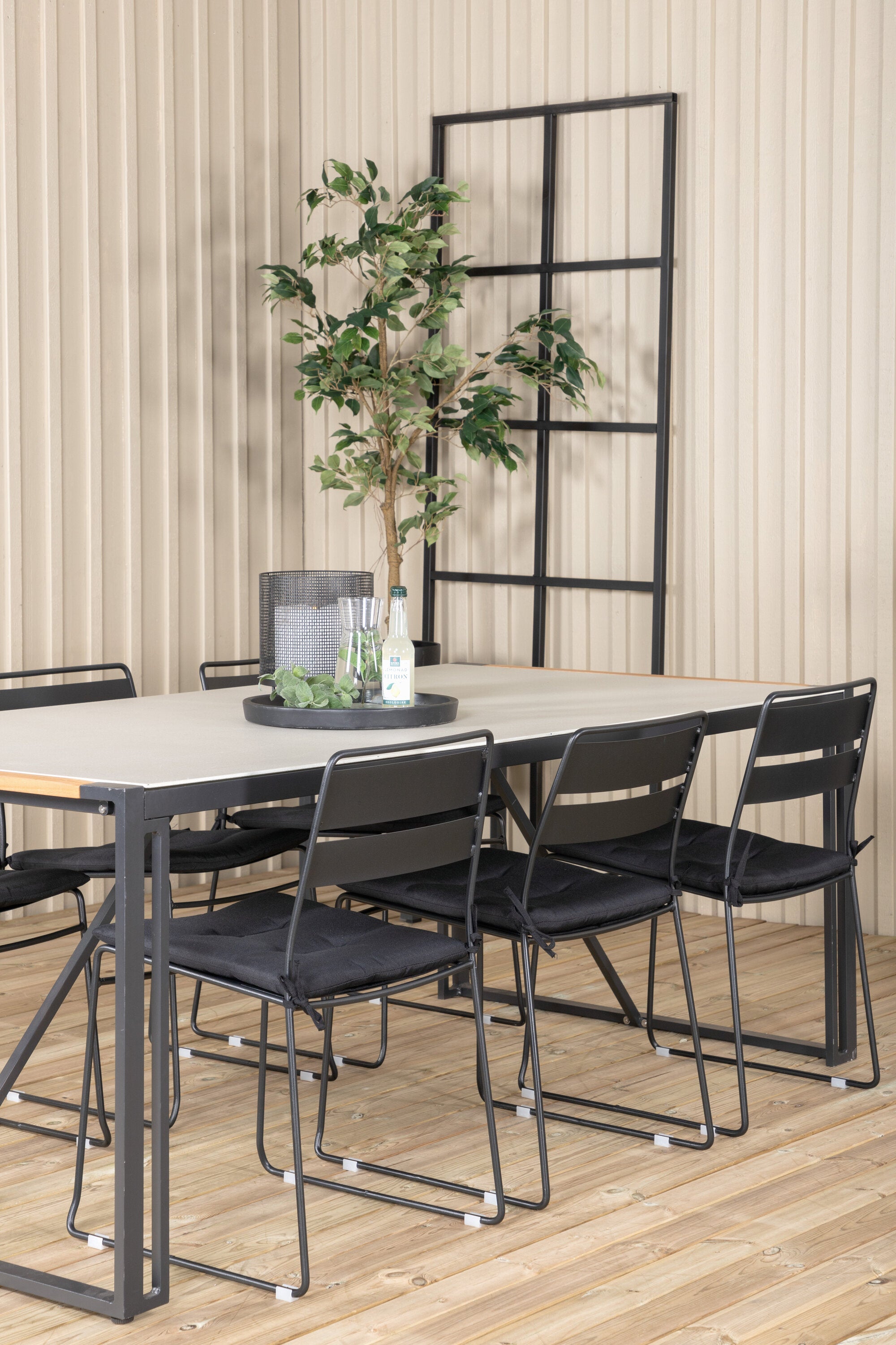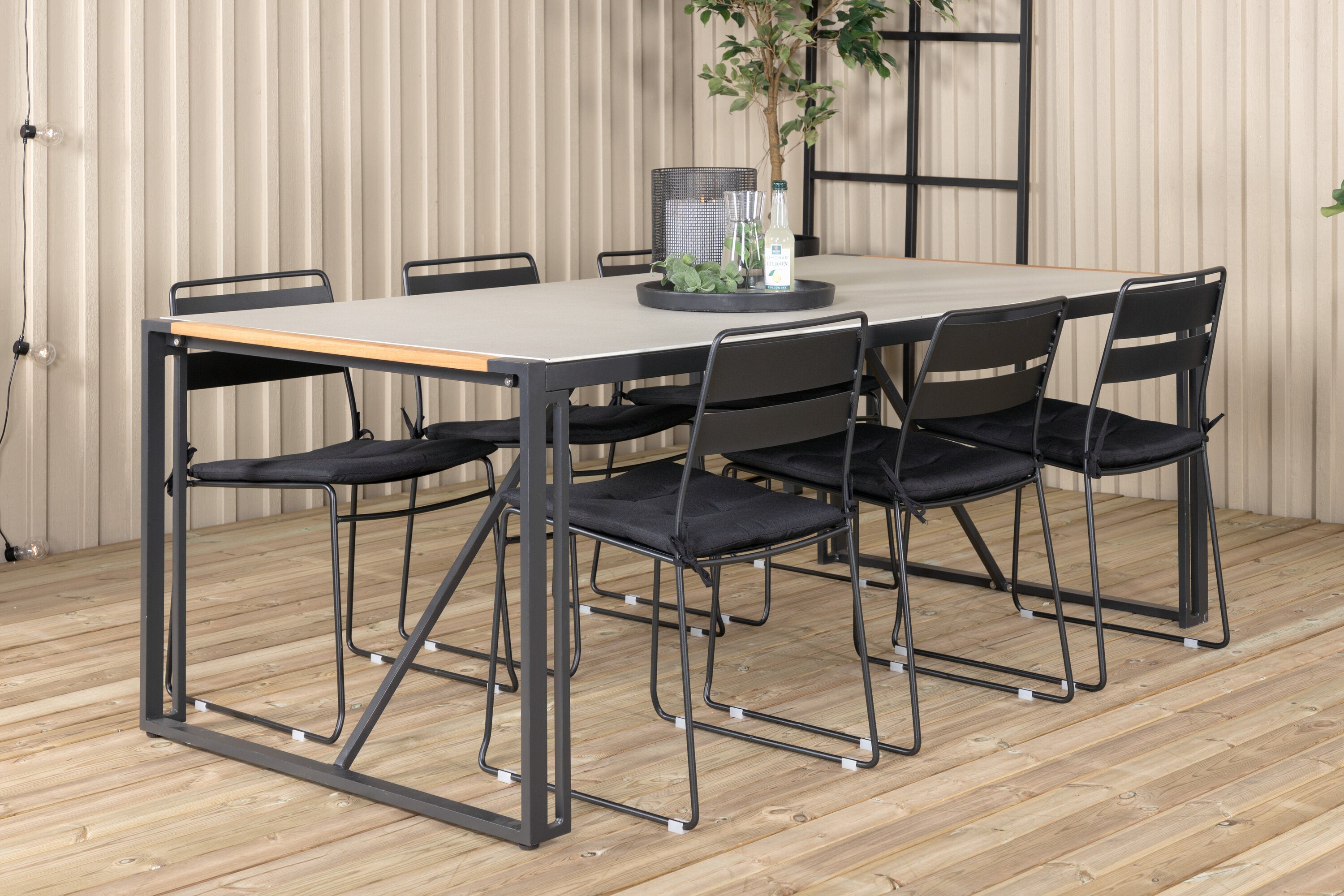 Texas Jídelní stůl 200*100 - Černá Alu / Teak / Šedý kámen ve spreji+Lina Jídelní židle - Black_6