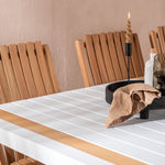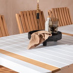 Vytvořte elegantní poutač, který zaujme – tato skupina potravin je poutavá i trvanlivá! Jídelní stůl Togo má vkusnou verzi s obdélníkovou deskou stolu v bílé a teakové barvě dřeva a bílým hliníkovým podvozkem. Díky lahodným teakovým detailům na desce stolu se stůl skvěle hodí k jídelním židlím ze série Ghana. Židle jsou skládací a vyrobené z vkusného teaku v žebrovaném provedení, které působí velmi moderním dojmem. Nechť je čas zde vrcholem dne!