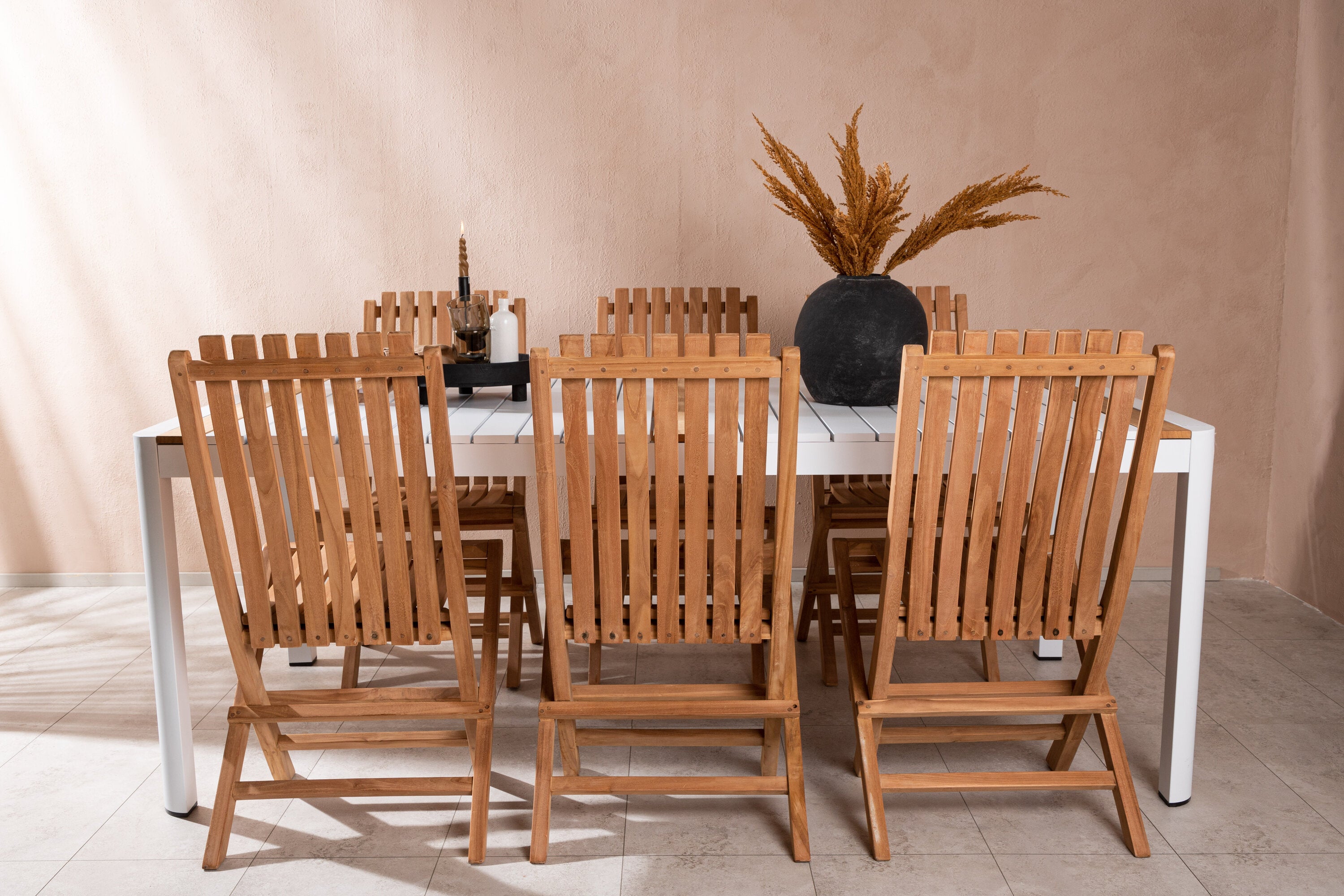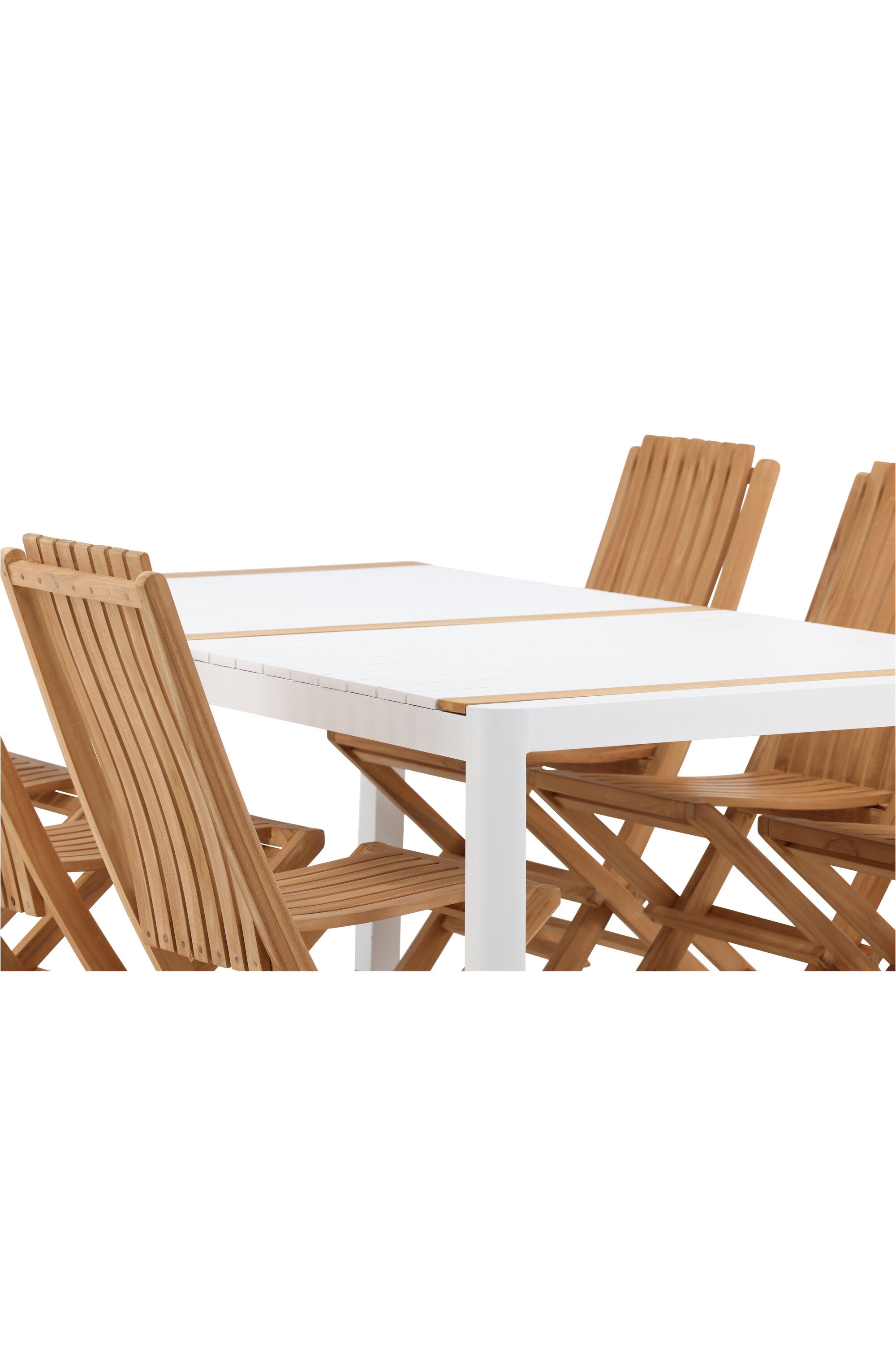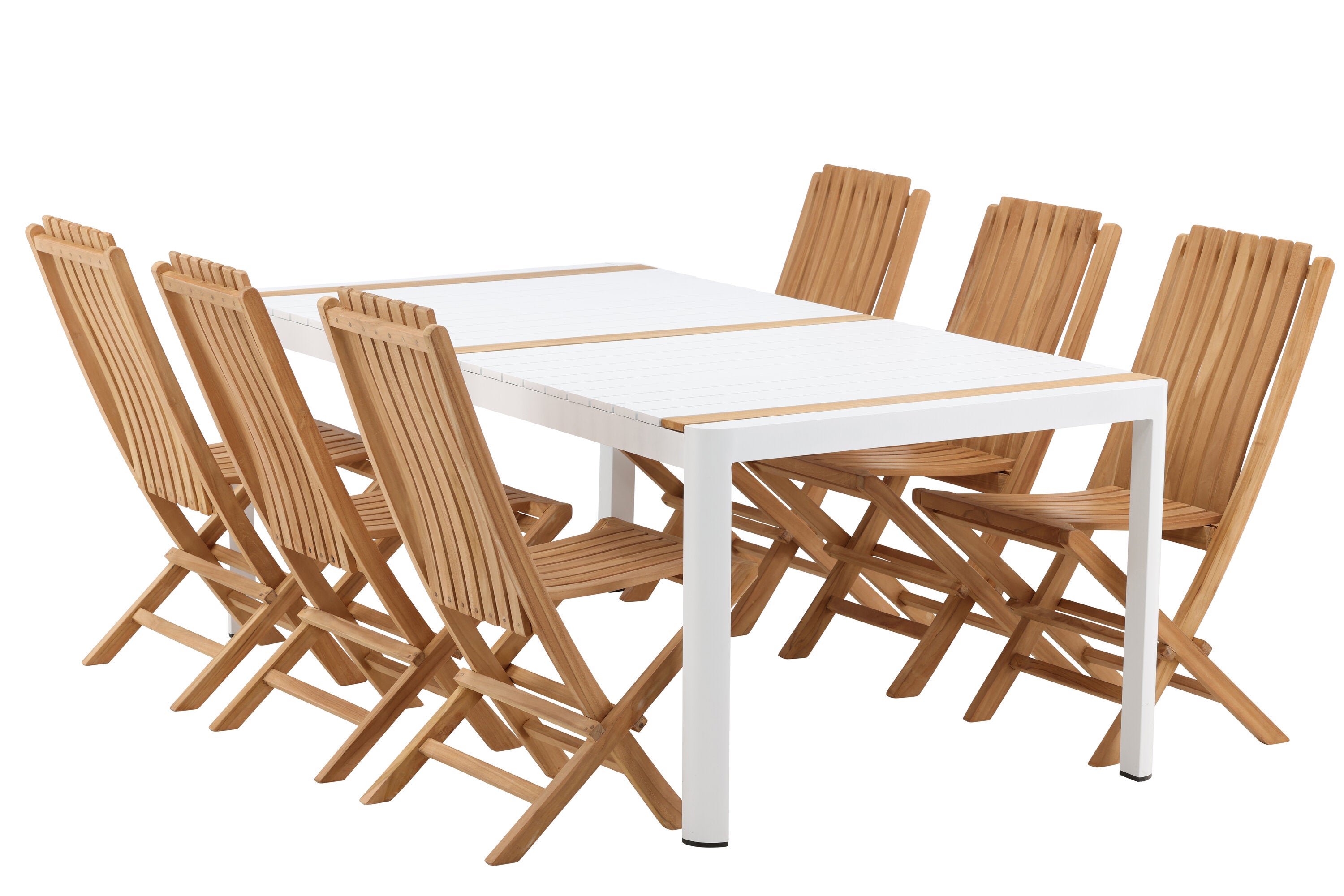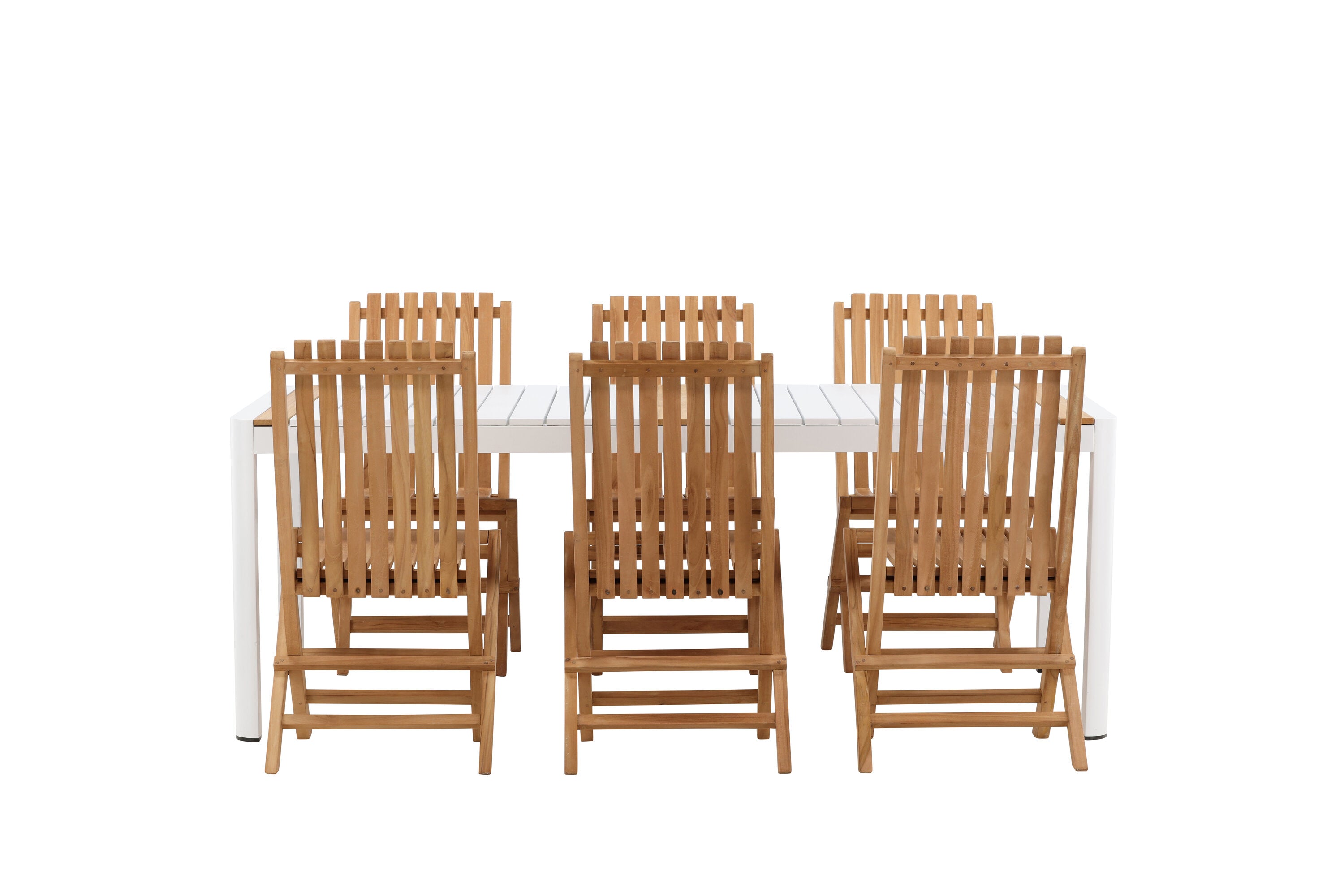 Togo - Jídelní stůl - Bílá / Teak - Allu / Teak - 200*100 _1+ Ghana - Skládací židle - Natural - Teak - _6