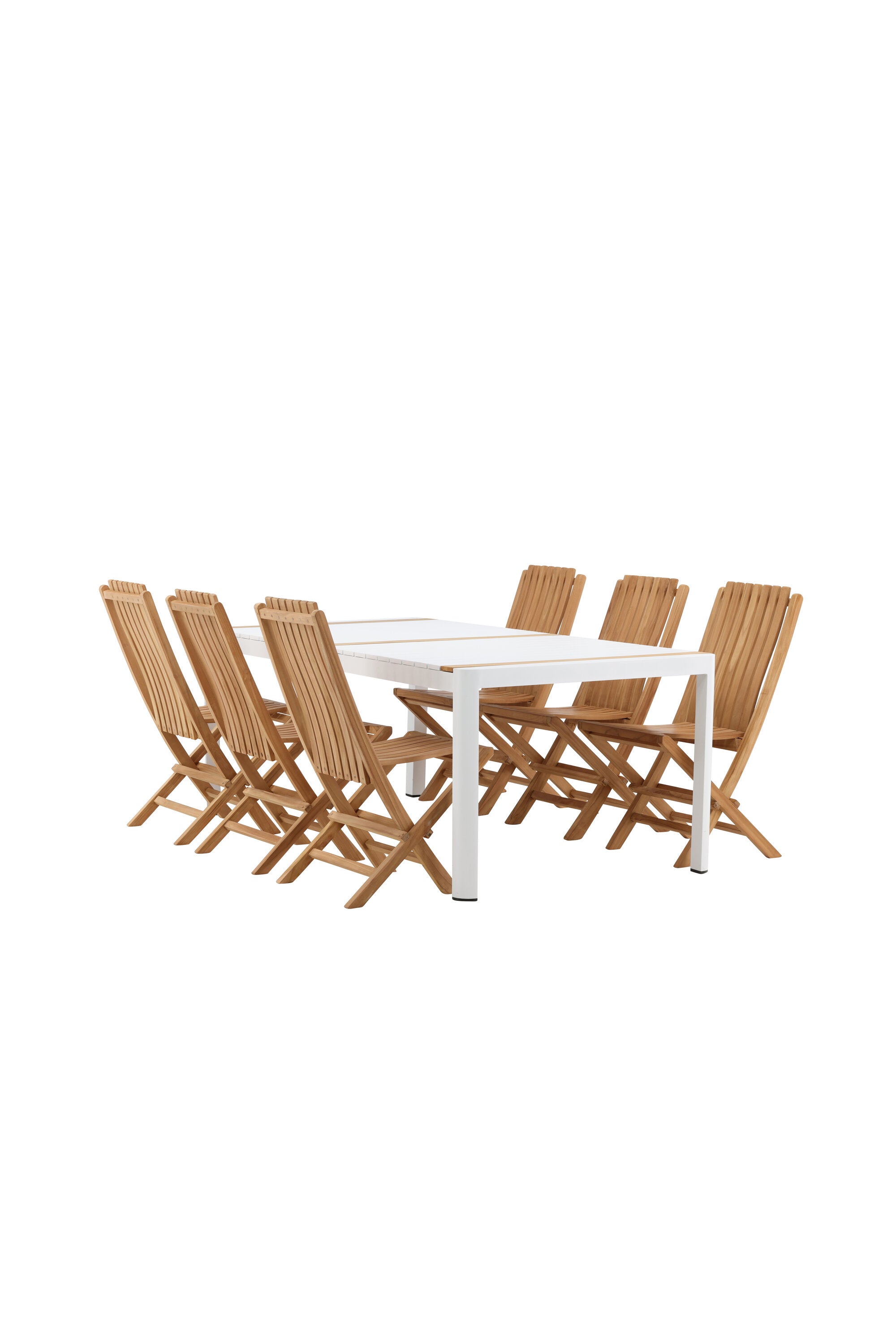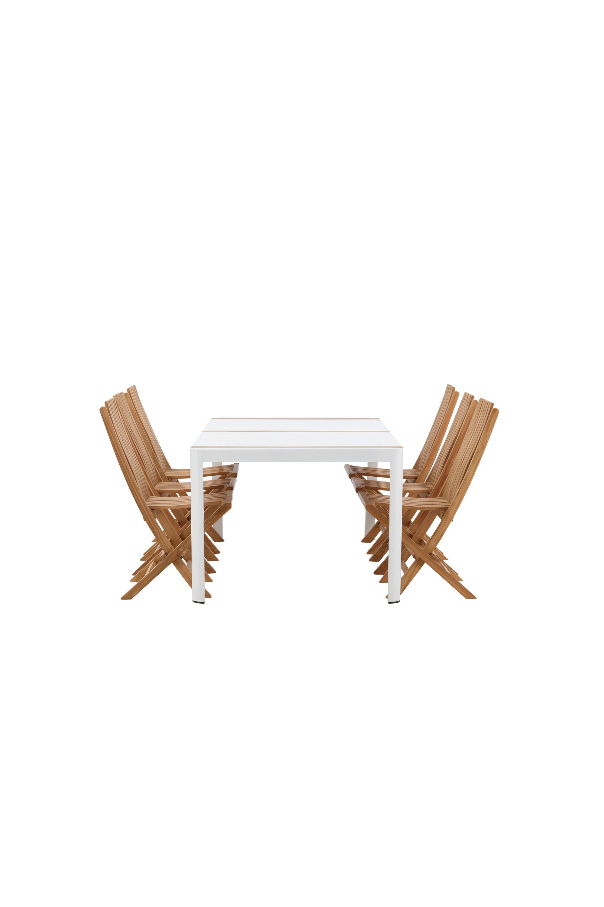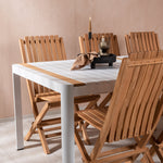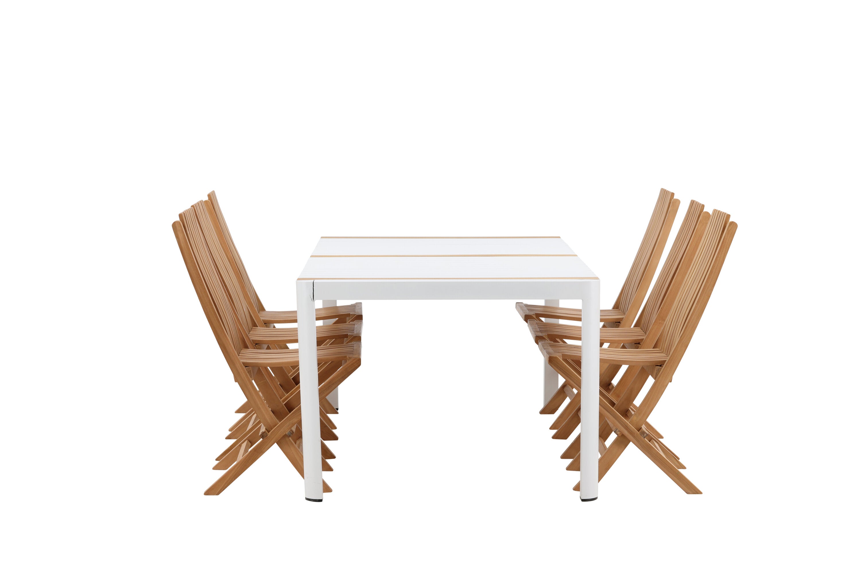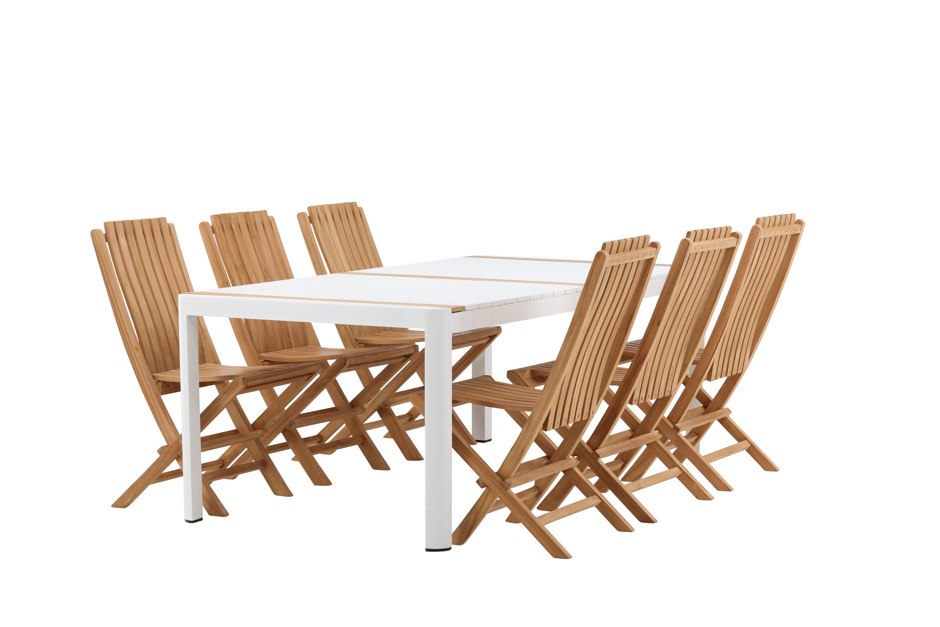 Togo - Jídelní stůl - Bílá / Teak - Allu / Teak - 200*100 _1+ Ghana - Skládací židle - Natural - Teak - _6