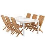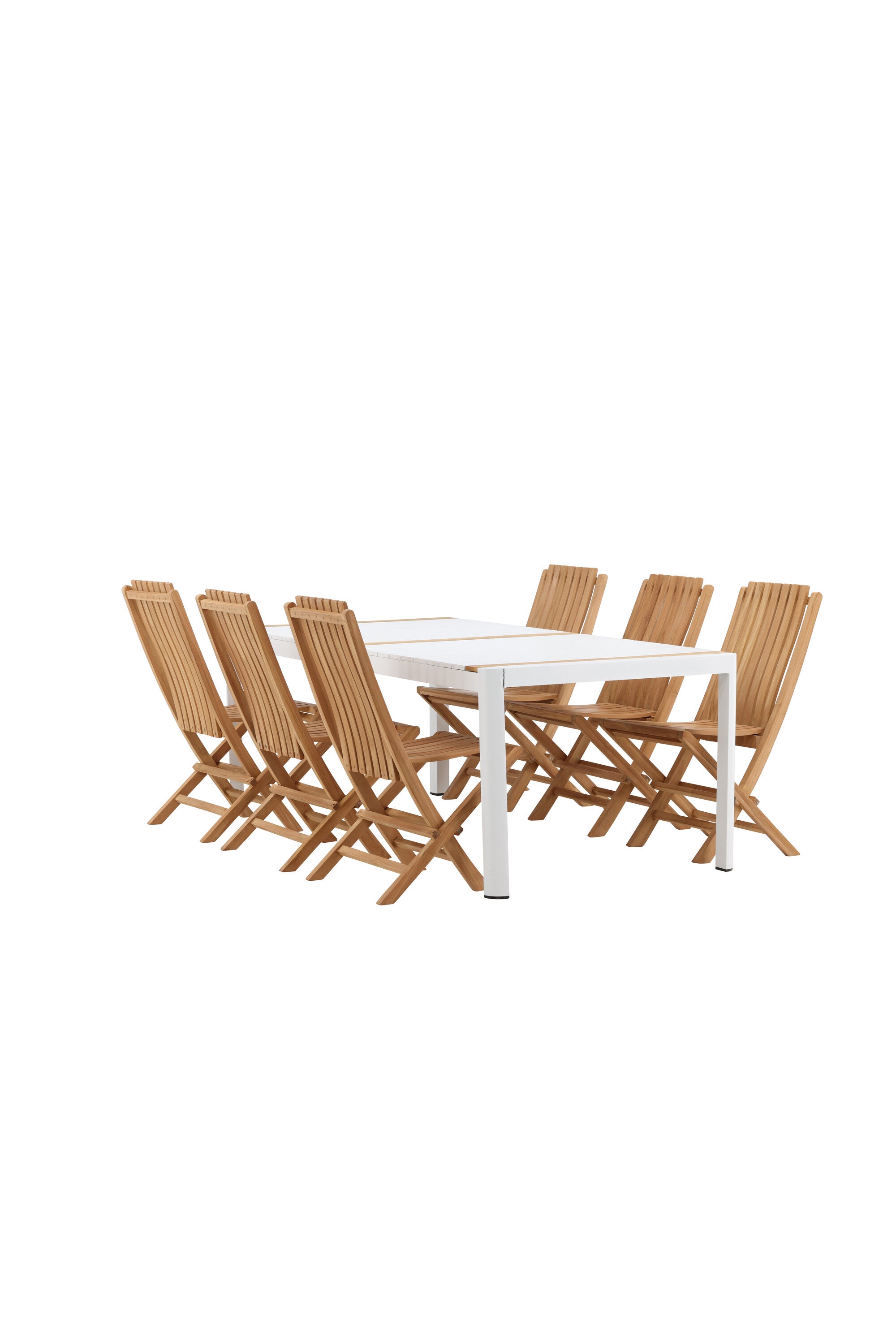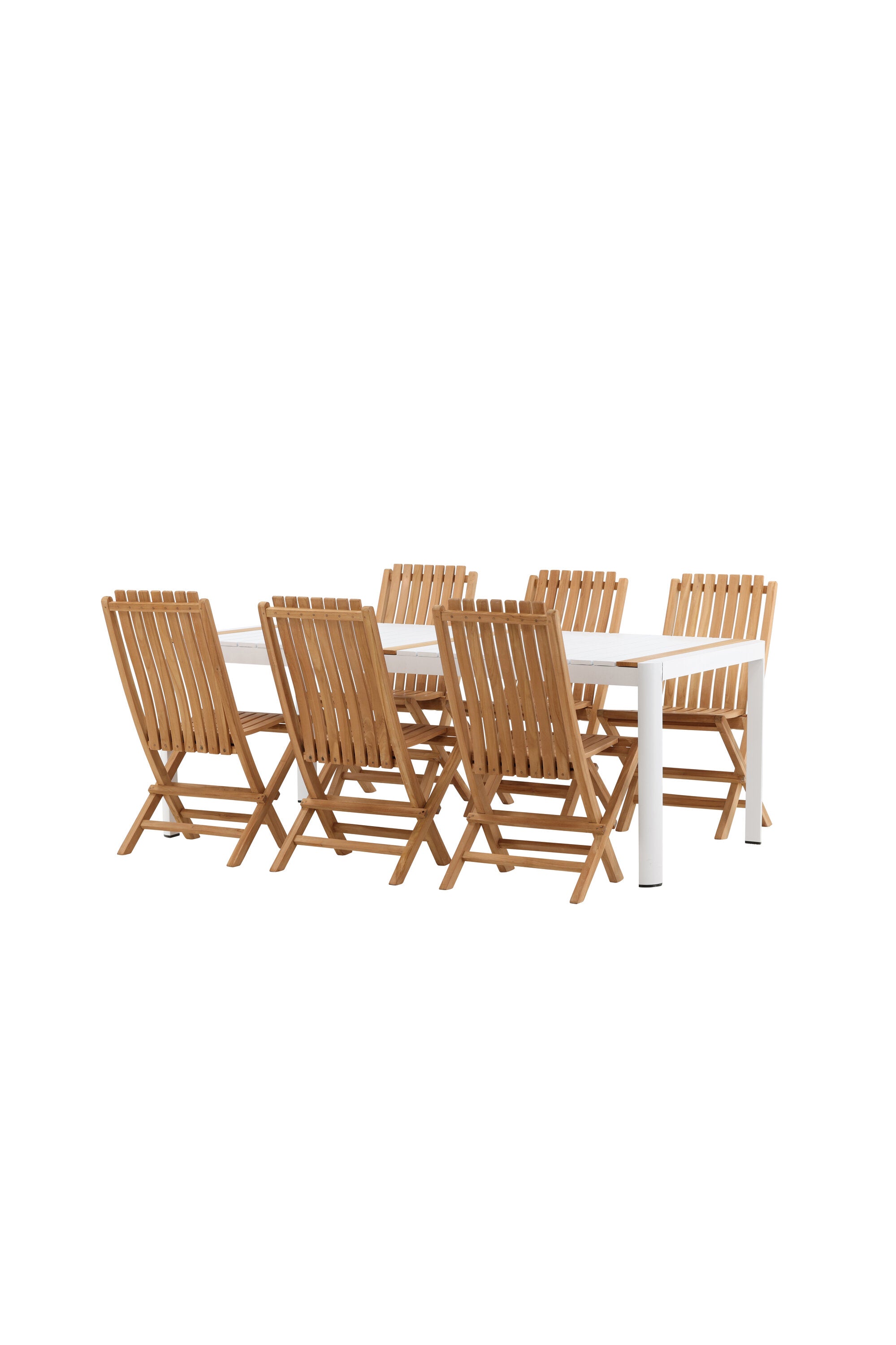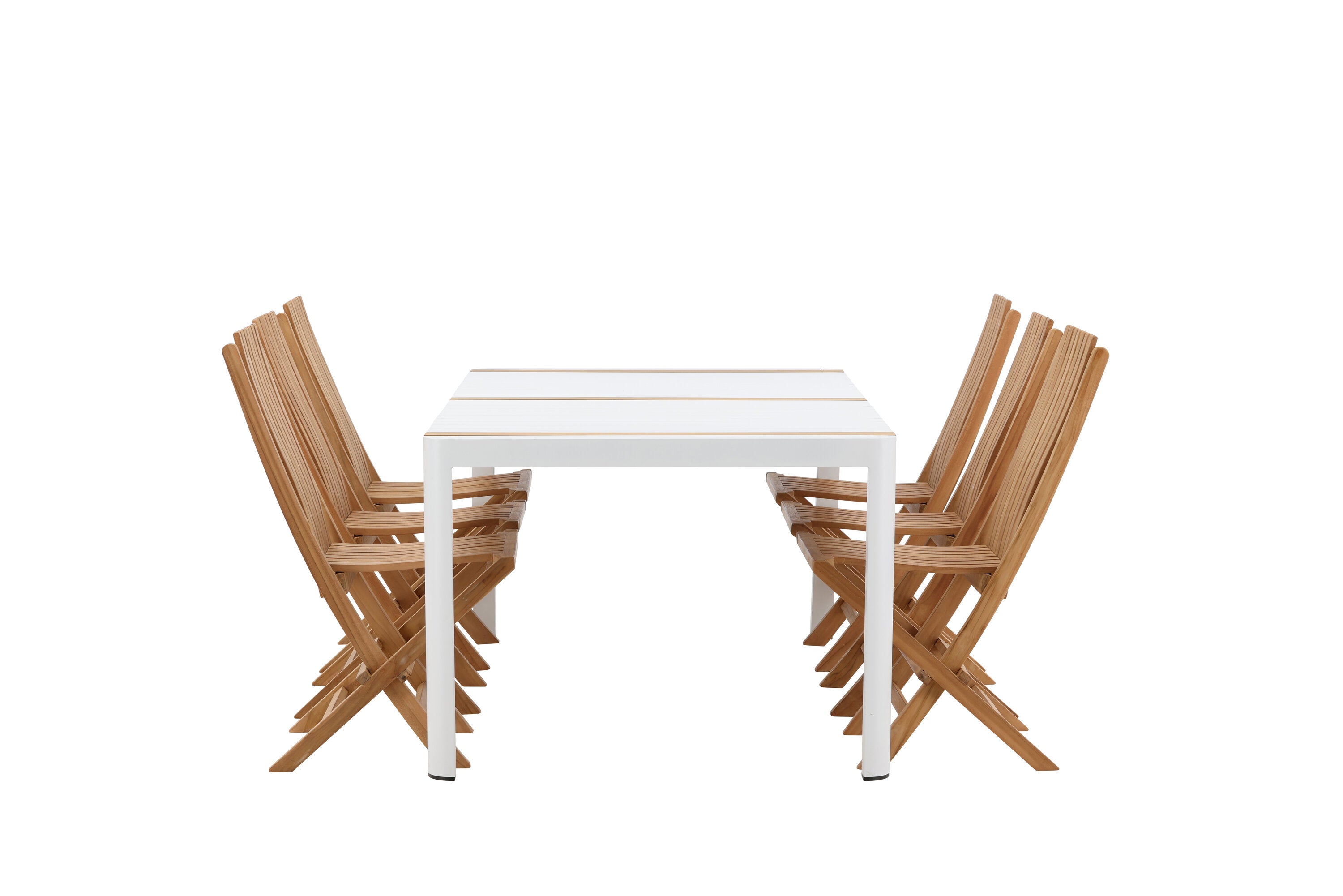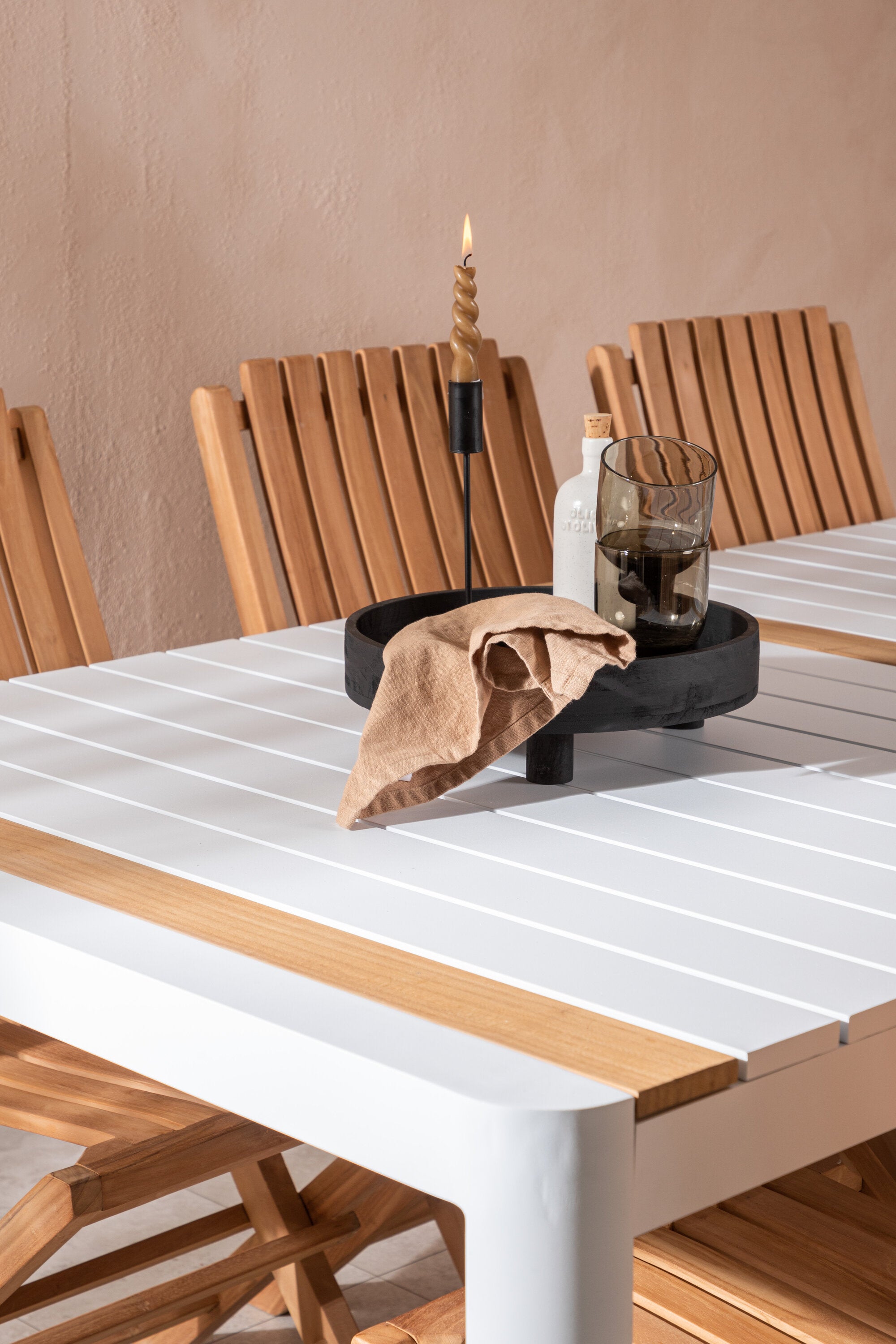 Togo - Jídelní stůl - Bílá / Teak - Allu / Teak - 200*100 _1+ Ghana - Skládací židle - Natural - Teak - _6