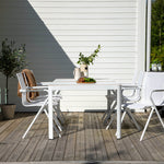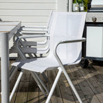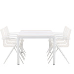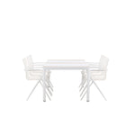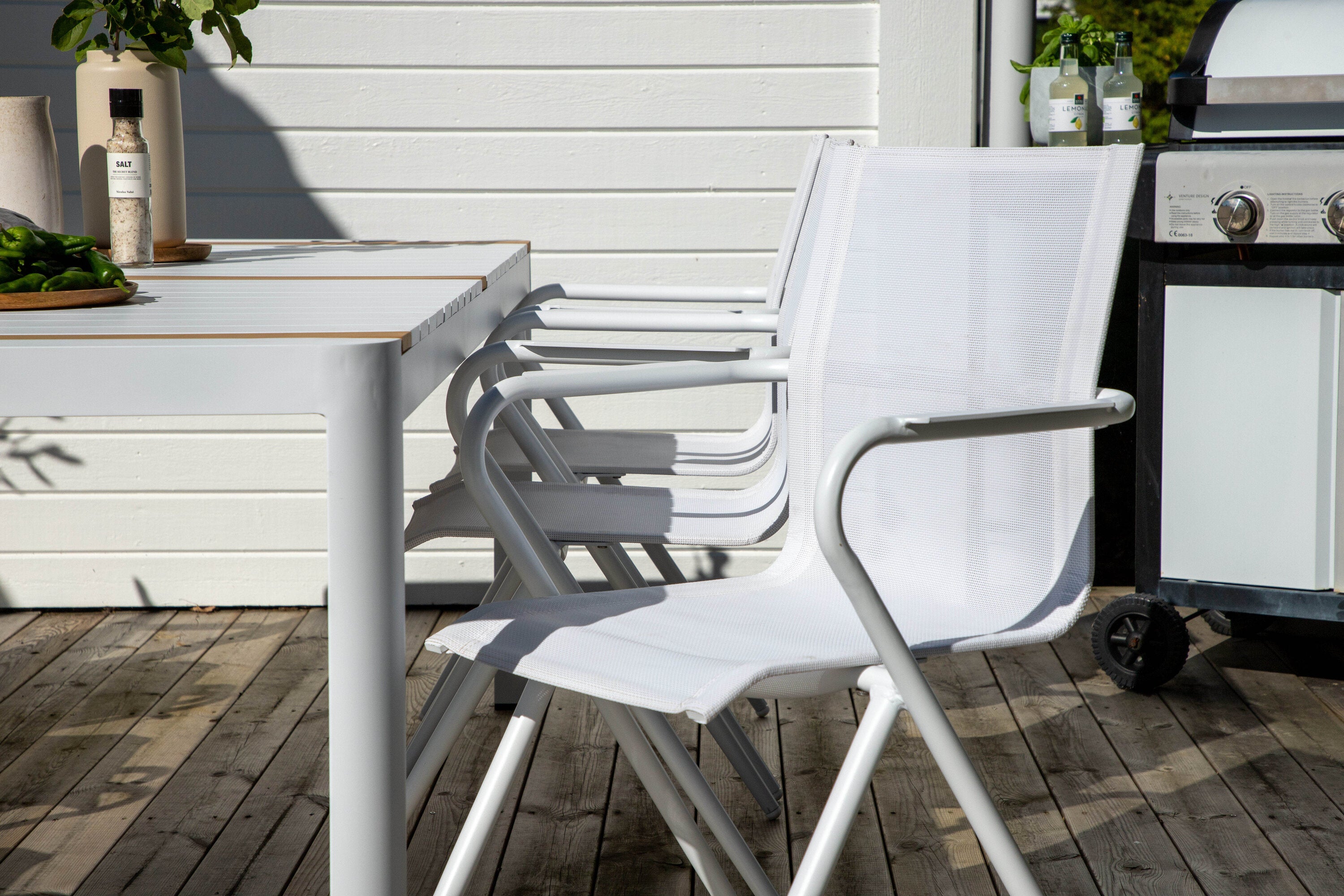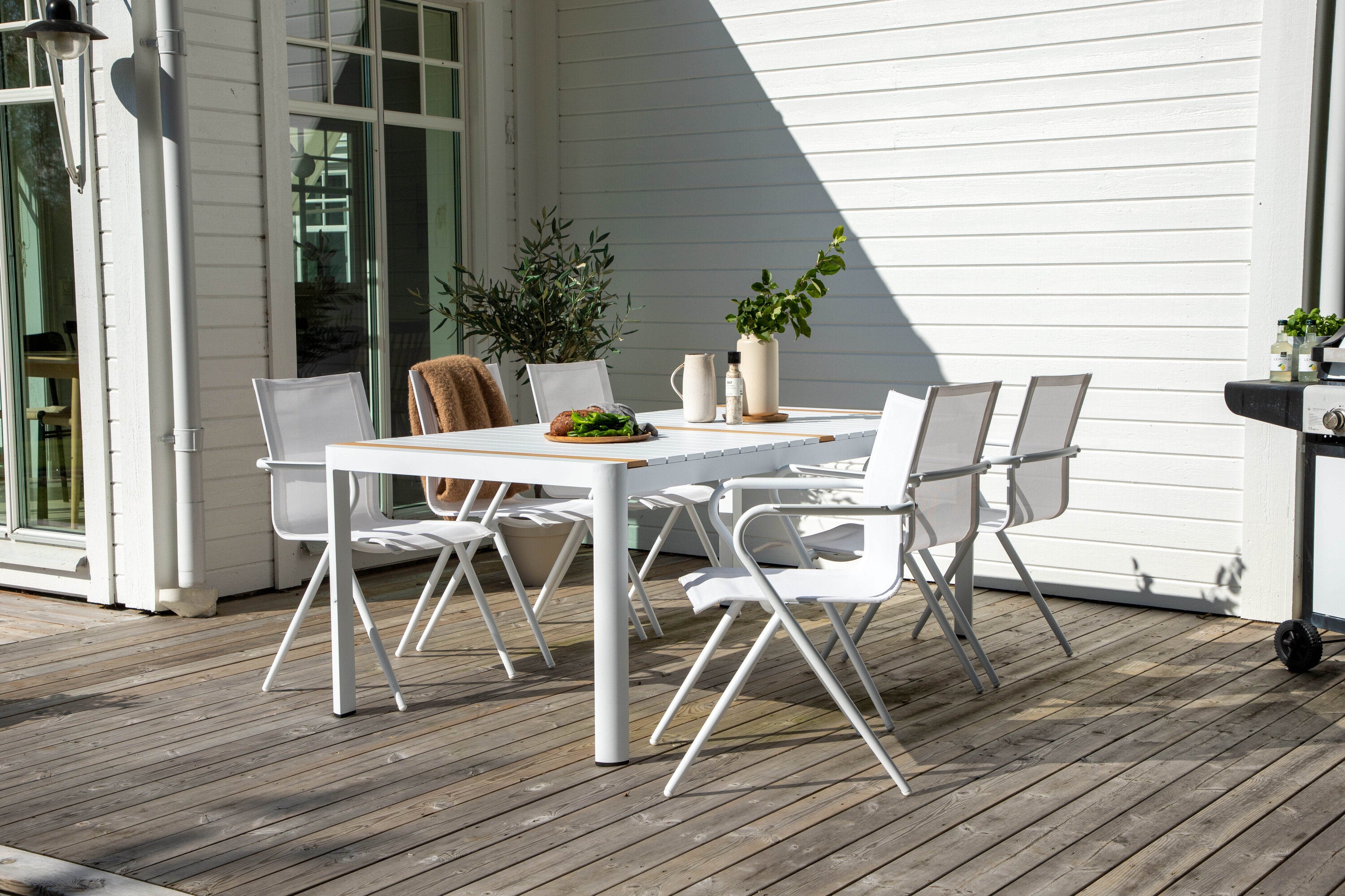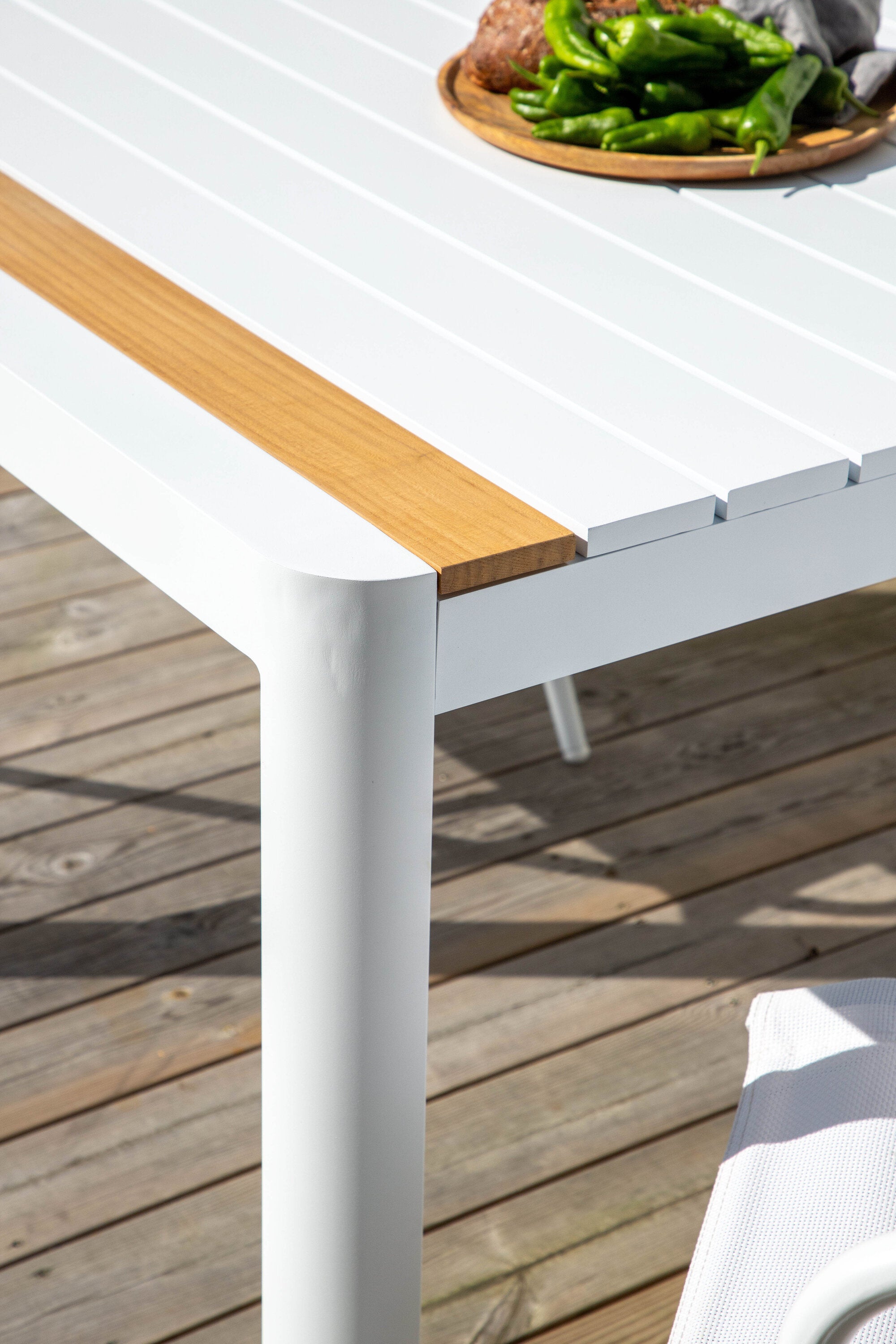 Vytvořte poutač, který zaujme – tato skupina potravin je poutavá i trvanlivá! Jídelní stůl Togo má vkusnou verzi s obdélníkovou deskou stolu v bílé a teakové barvě dřeva a bílým hliníkovým podvozkem. Rozměry: 200x100 cm. Zde v luxusní kombinaci s našimi oblíbenými jídelními židlemi ze série Alina. Židle mají lehce rozšířené nohy z bílého hliníku a pohodlný sedák z odolného textilního materiálu. Nechť je čas zde vrcholem dne!