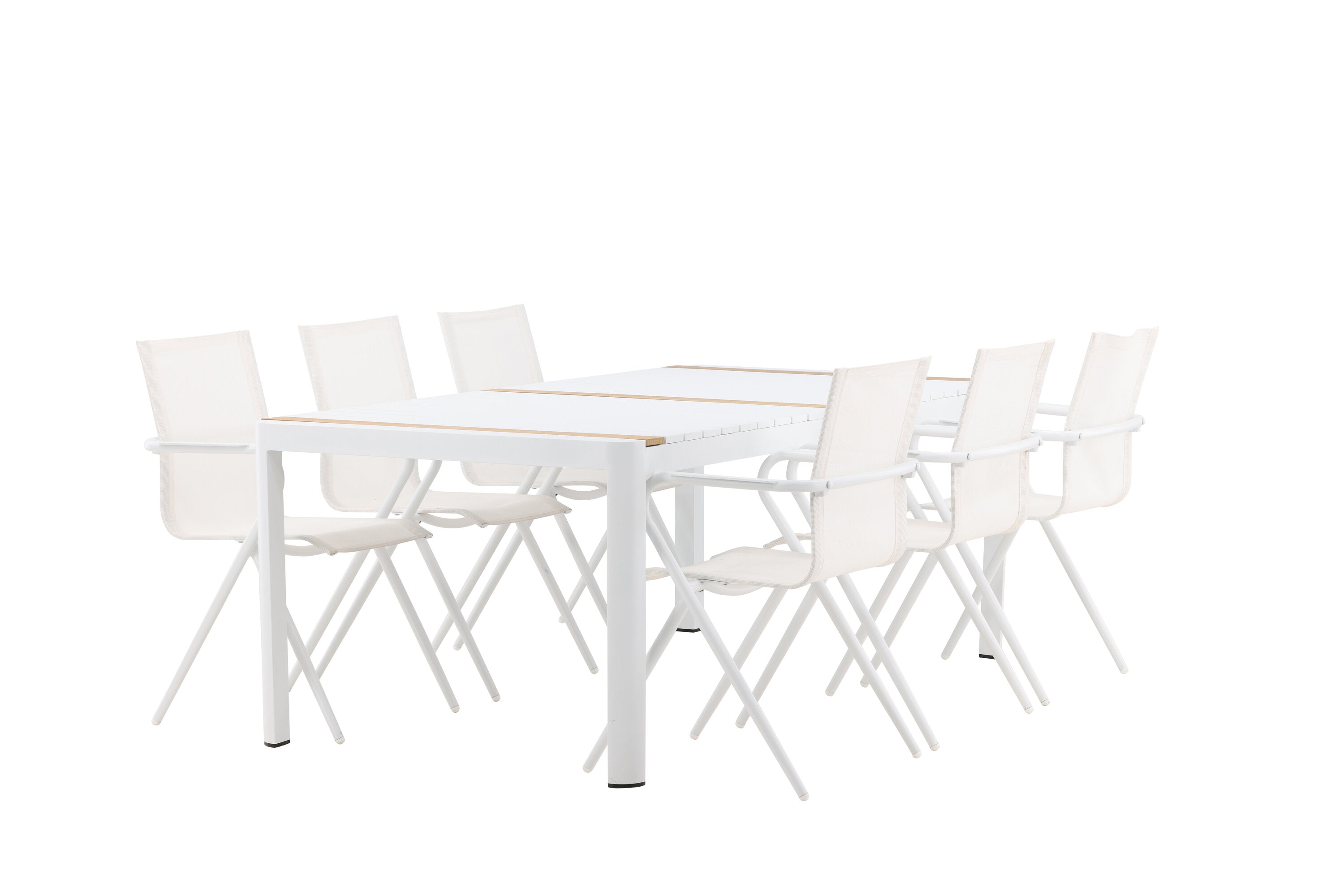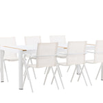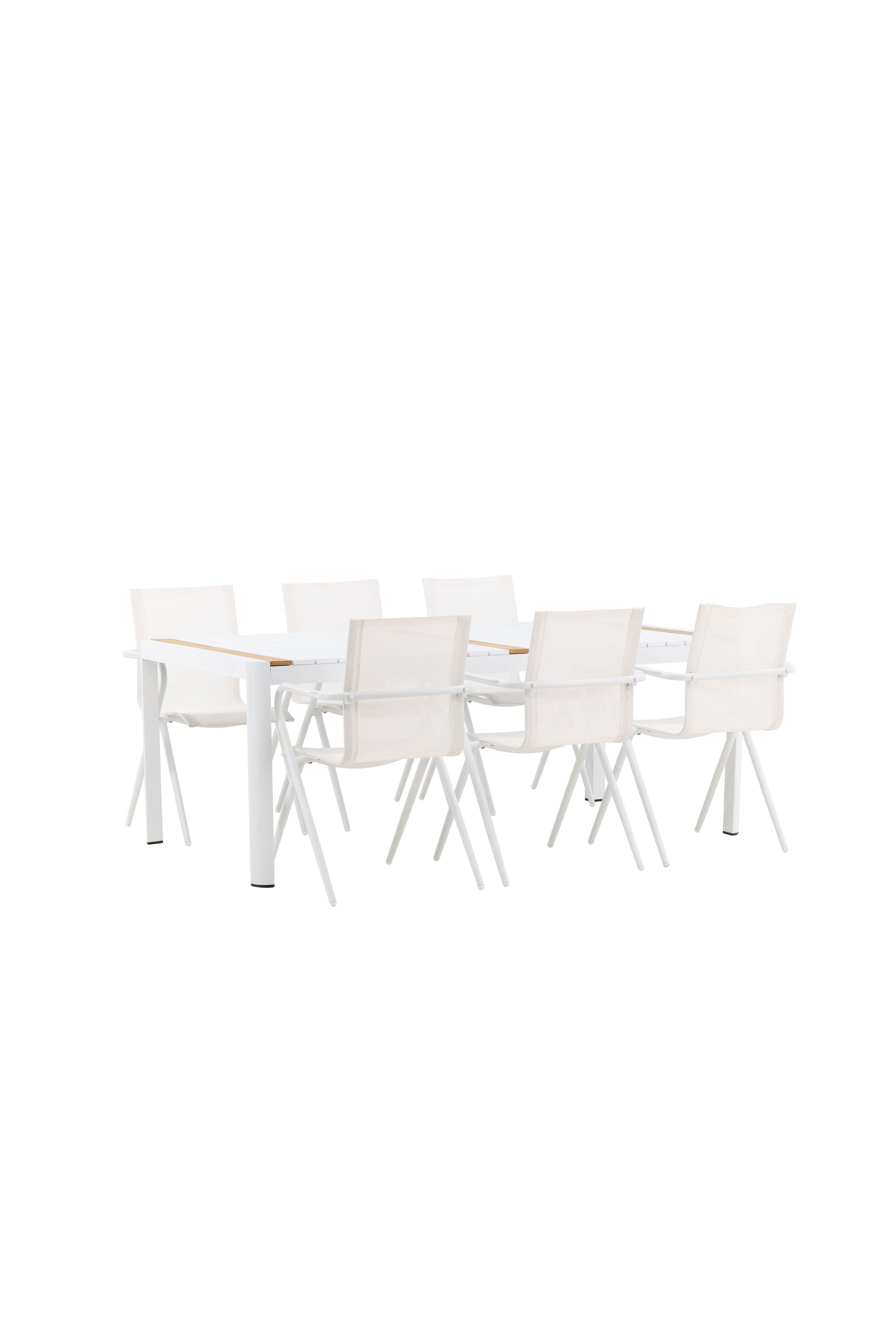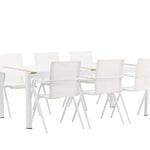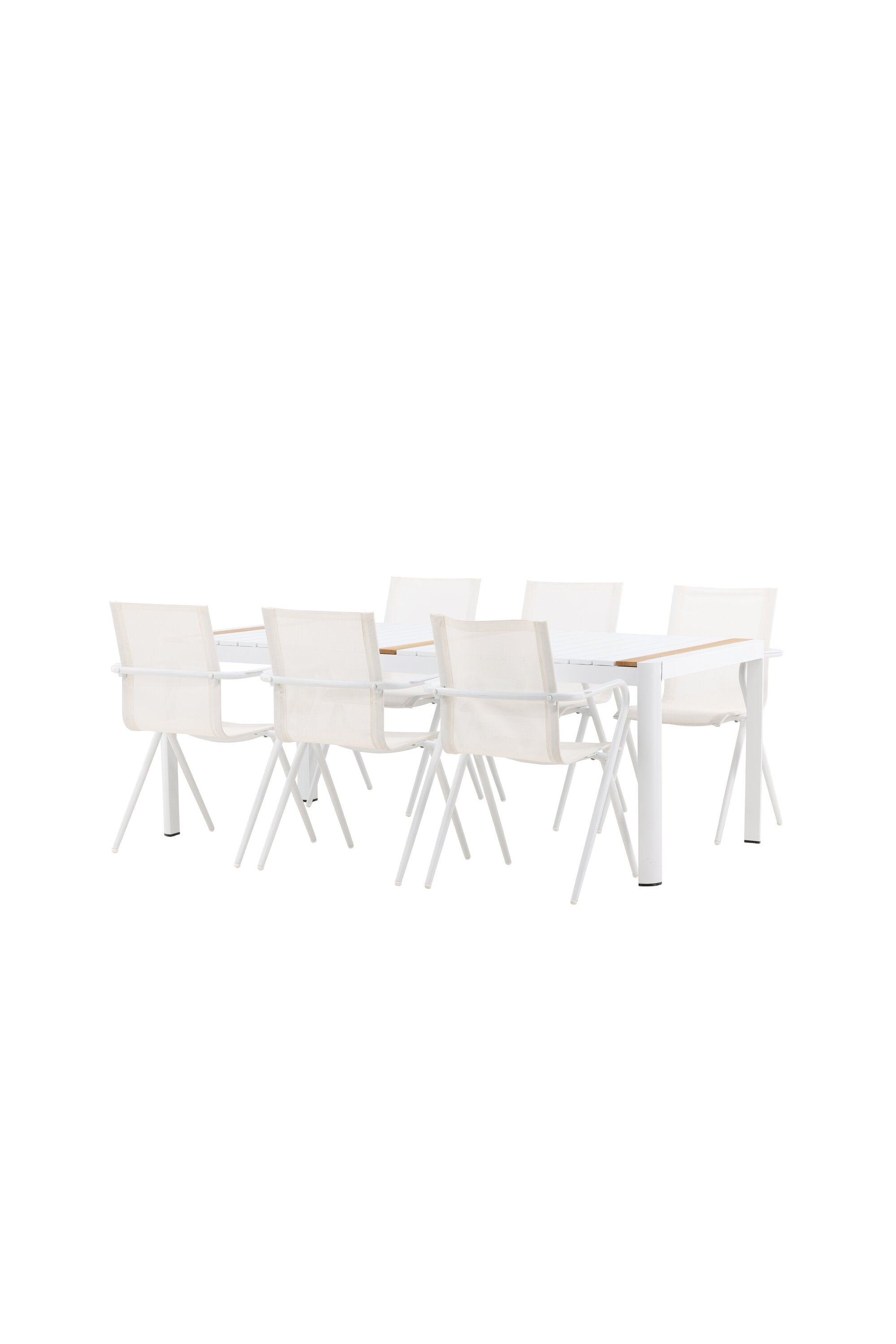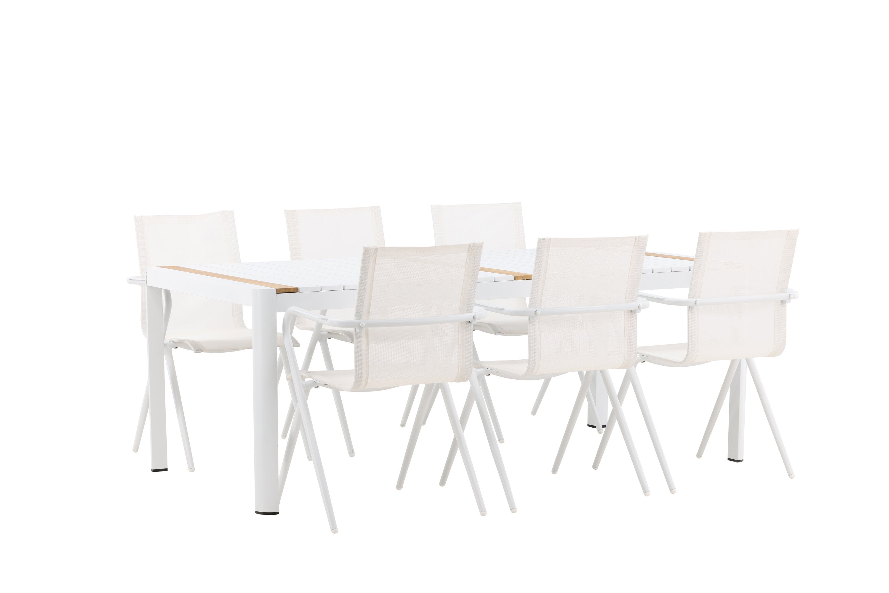 Togo - Jídelní stůl - Bílá / Teak - Allu / Teak - 200*100 _1+ Jídelní židle Alina - bílá Alu / Bílá textilie _6
