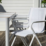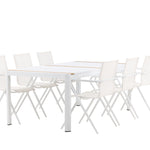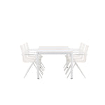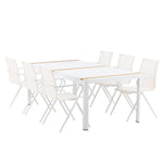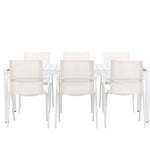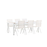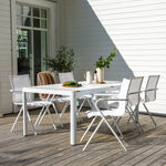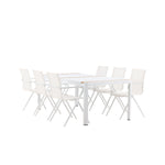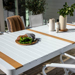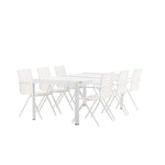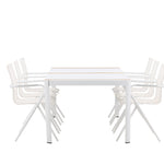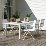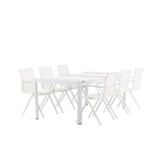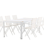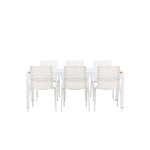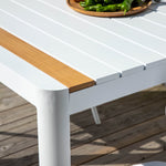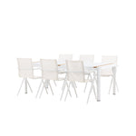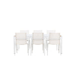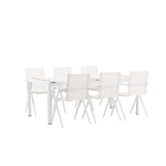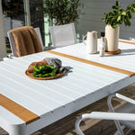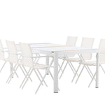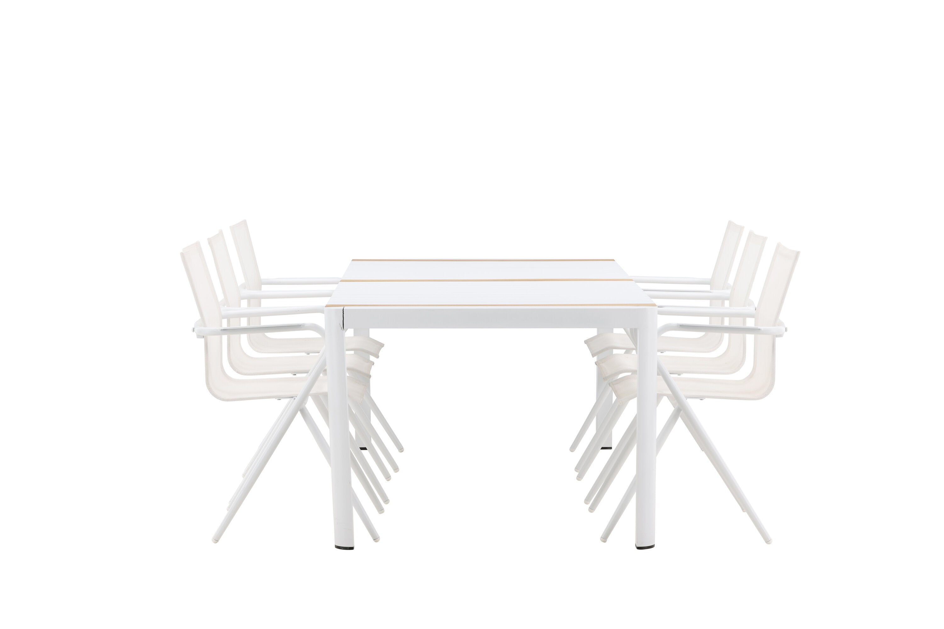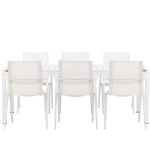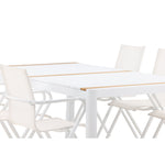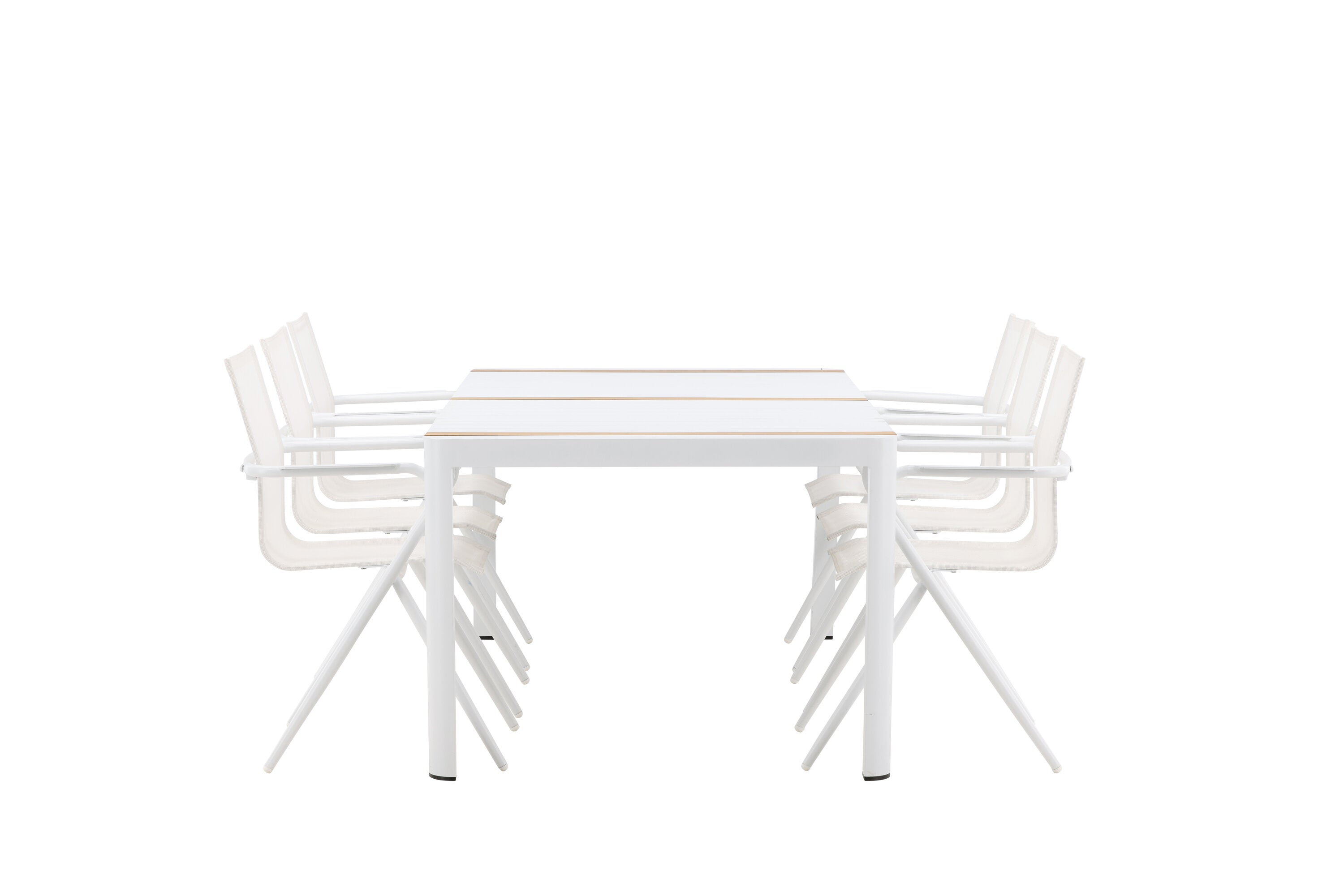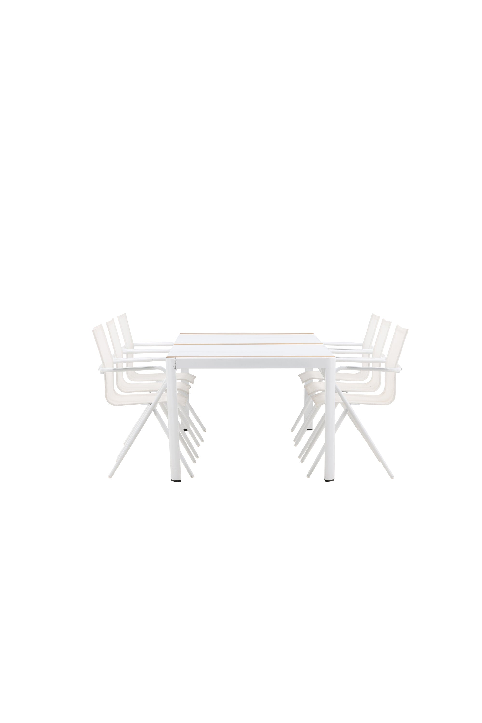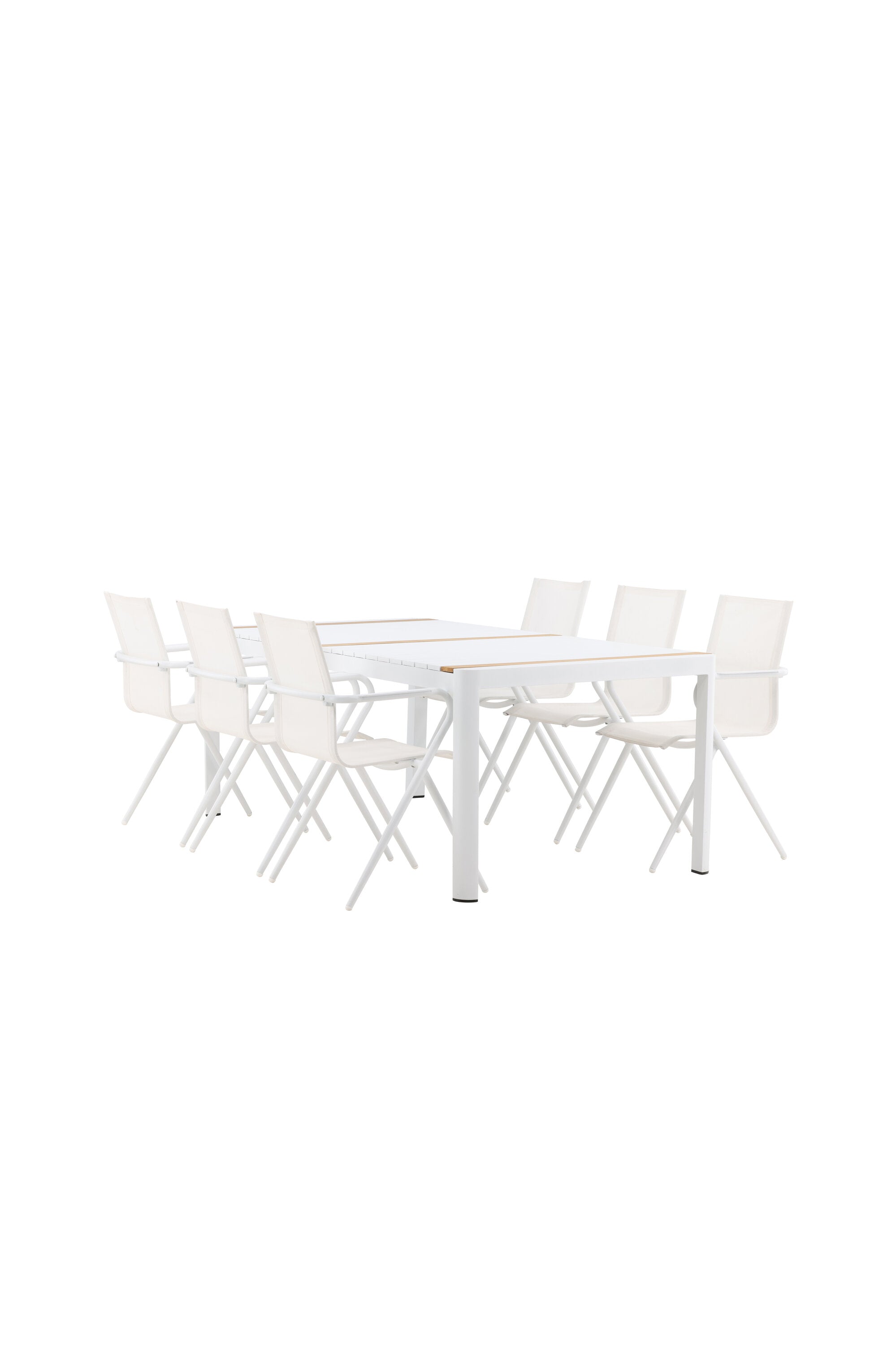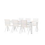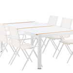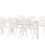 Togo - Jídelní stůl - Bílá / Teak - Allu / Teak - 200*100 _1+ Jídelní židle Alina - bílá Alu / Bílá textilie _6