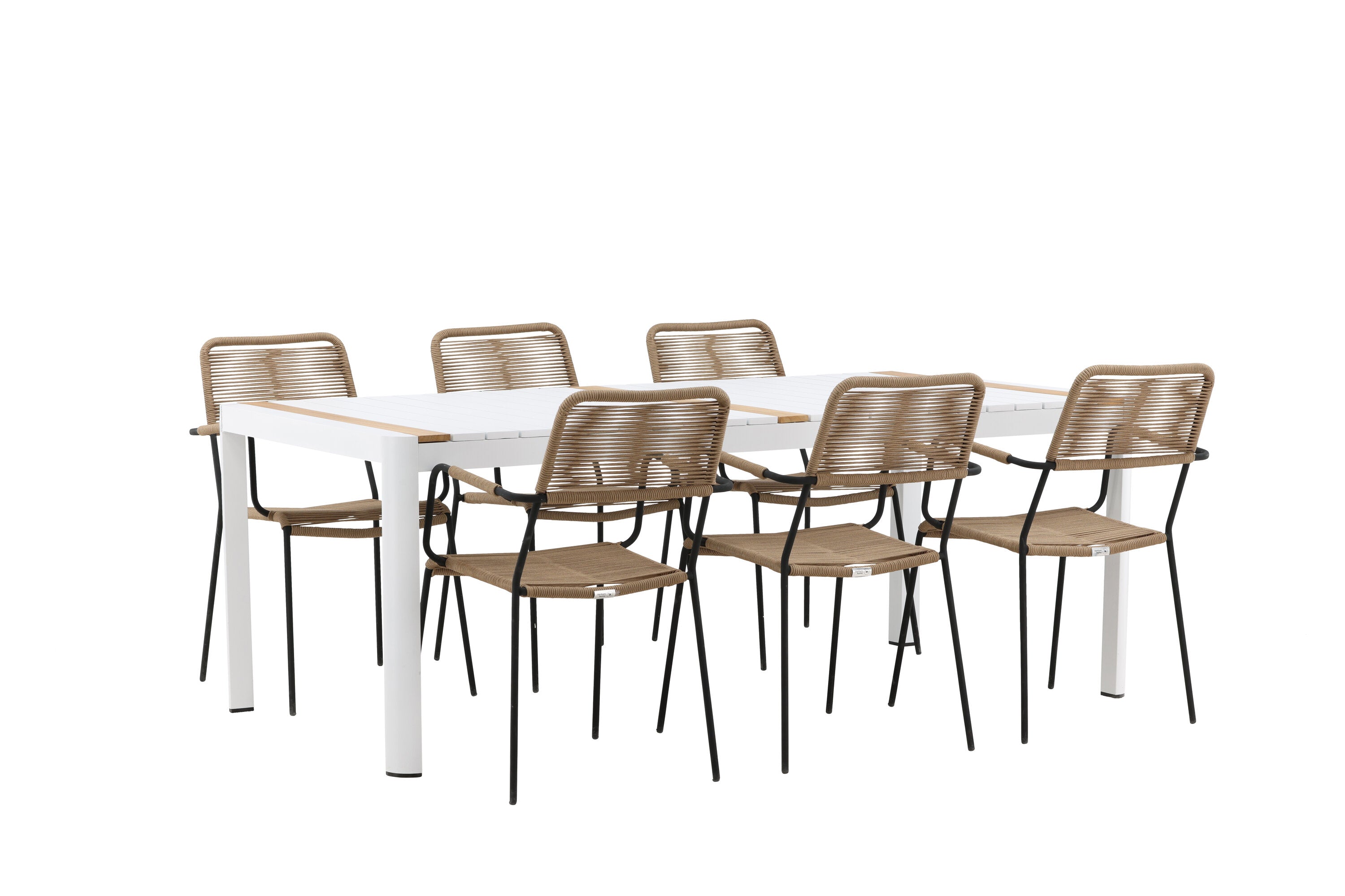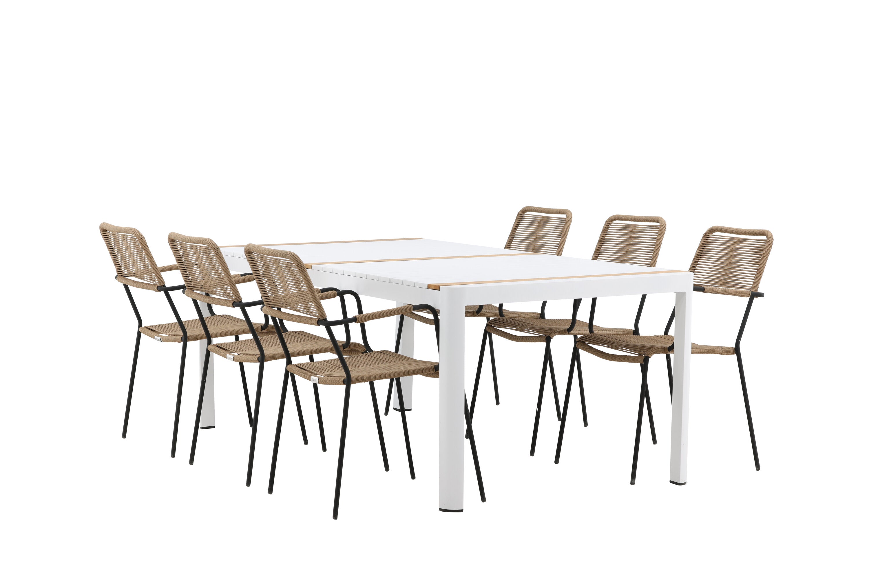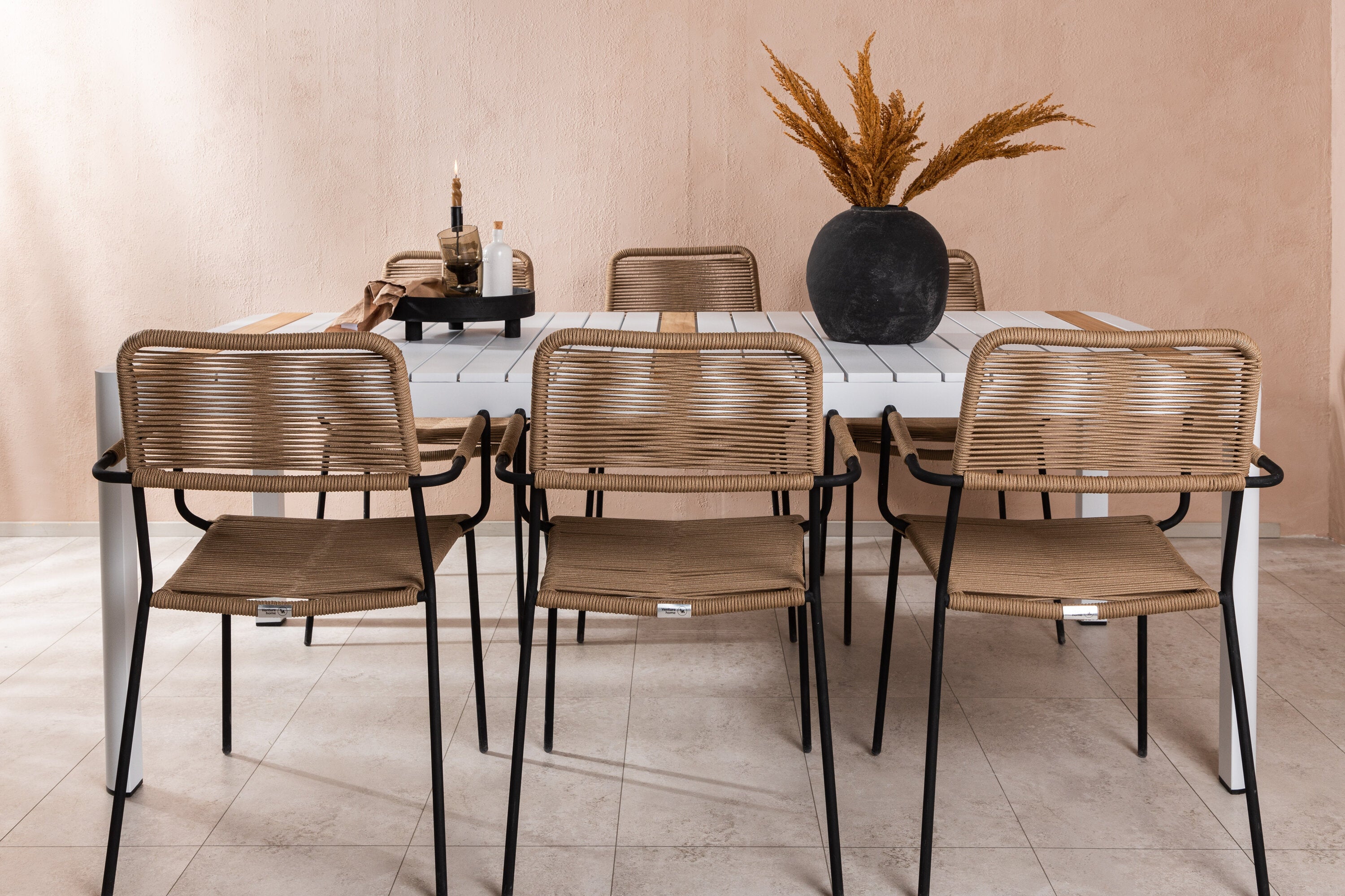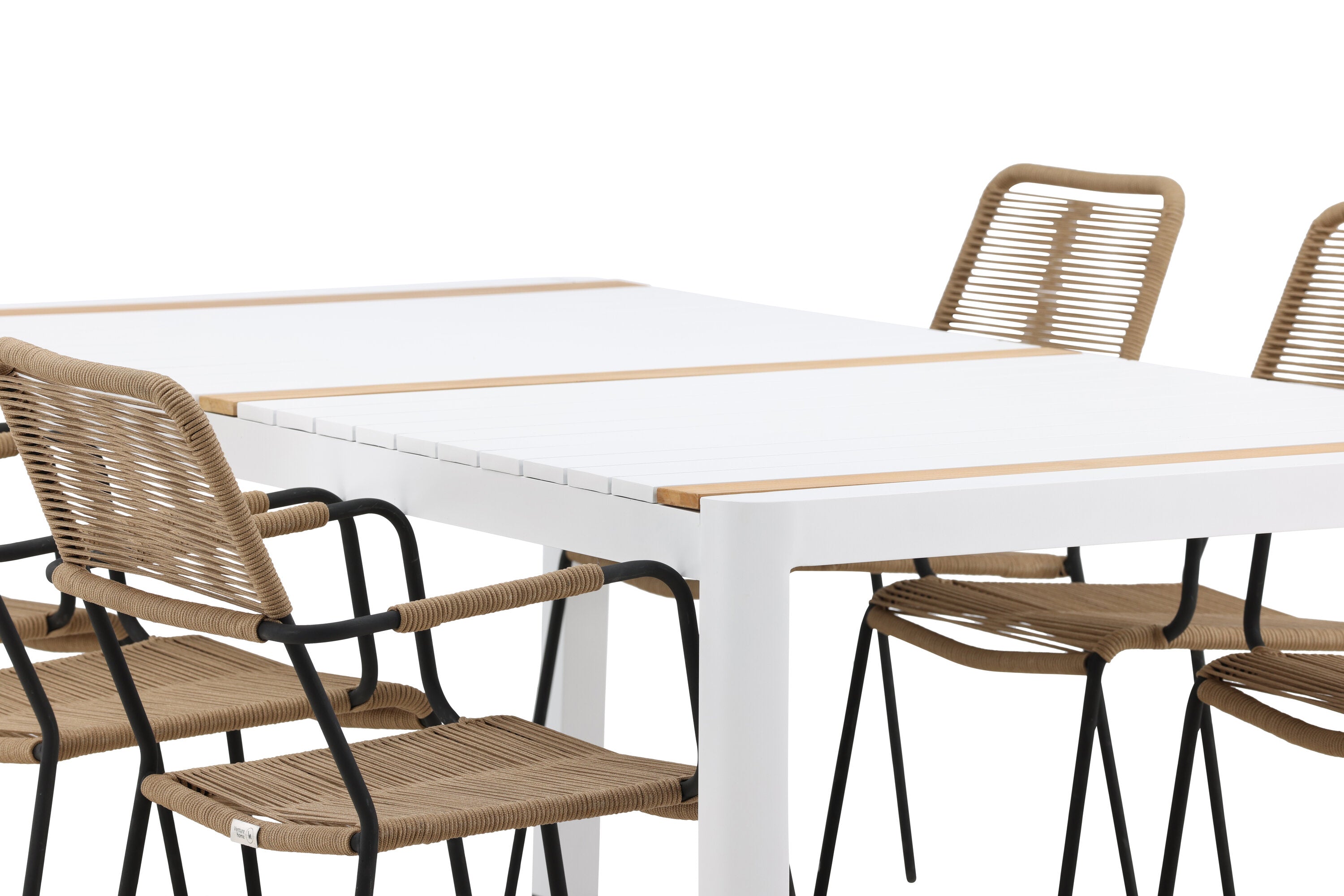 Togo - Jídelní stůl - Bílá / Teak - Allu / Teak - 200*100 _1+ Lindos - Křeslo - Black Alu / Latte Latte _6