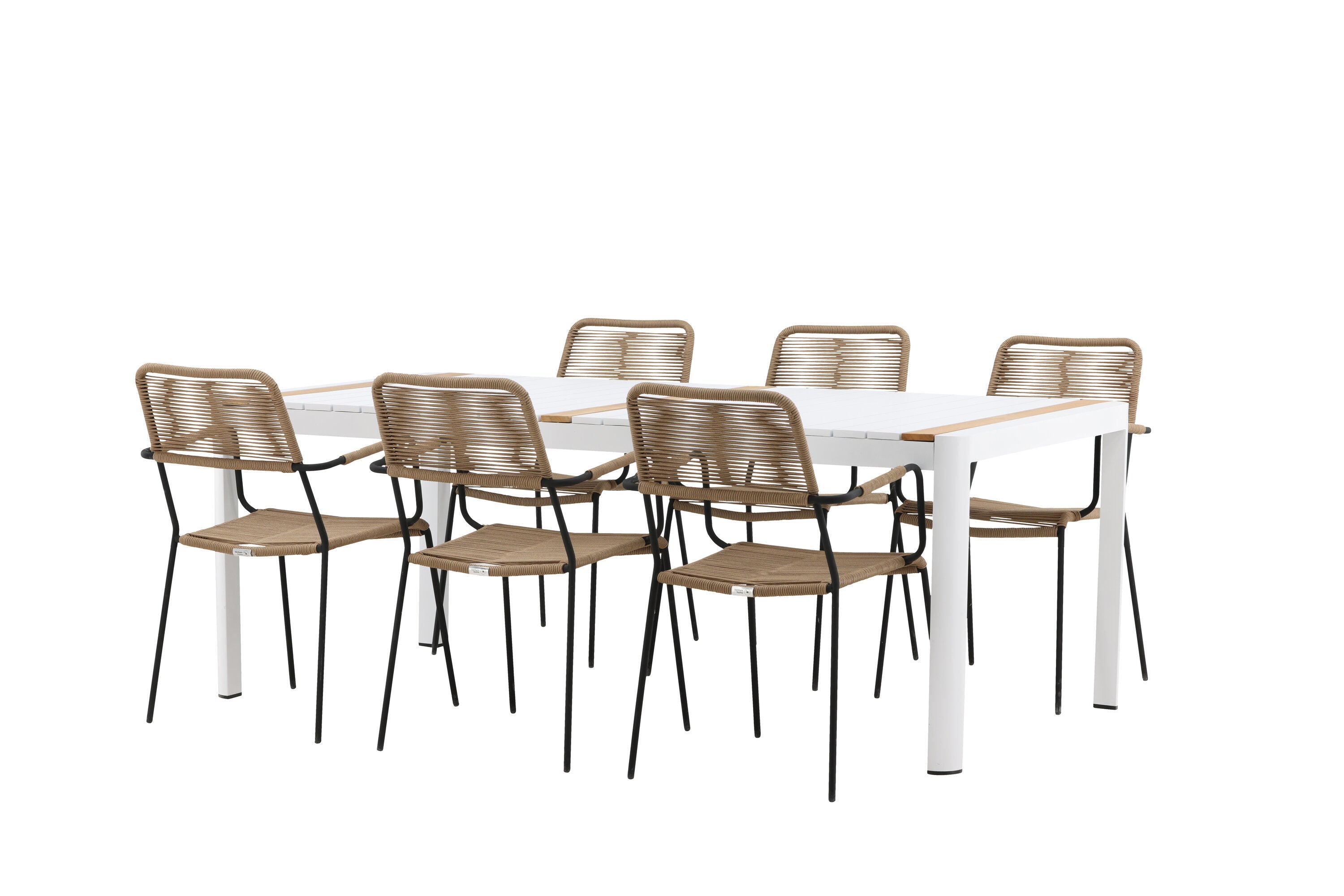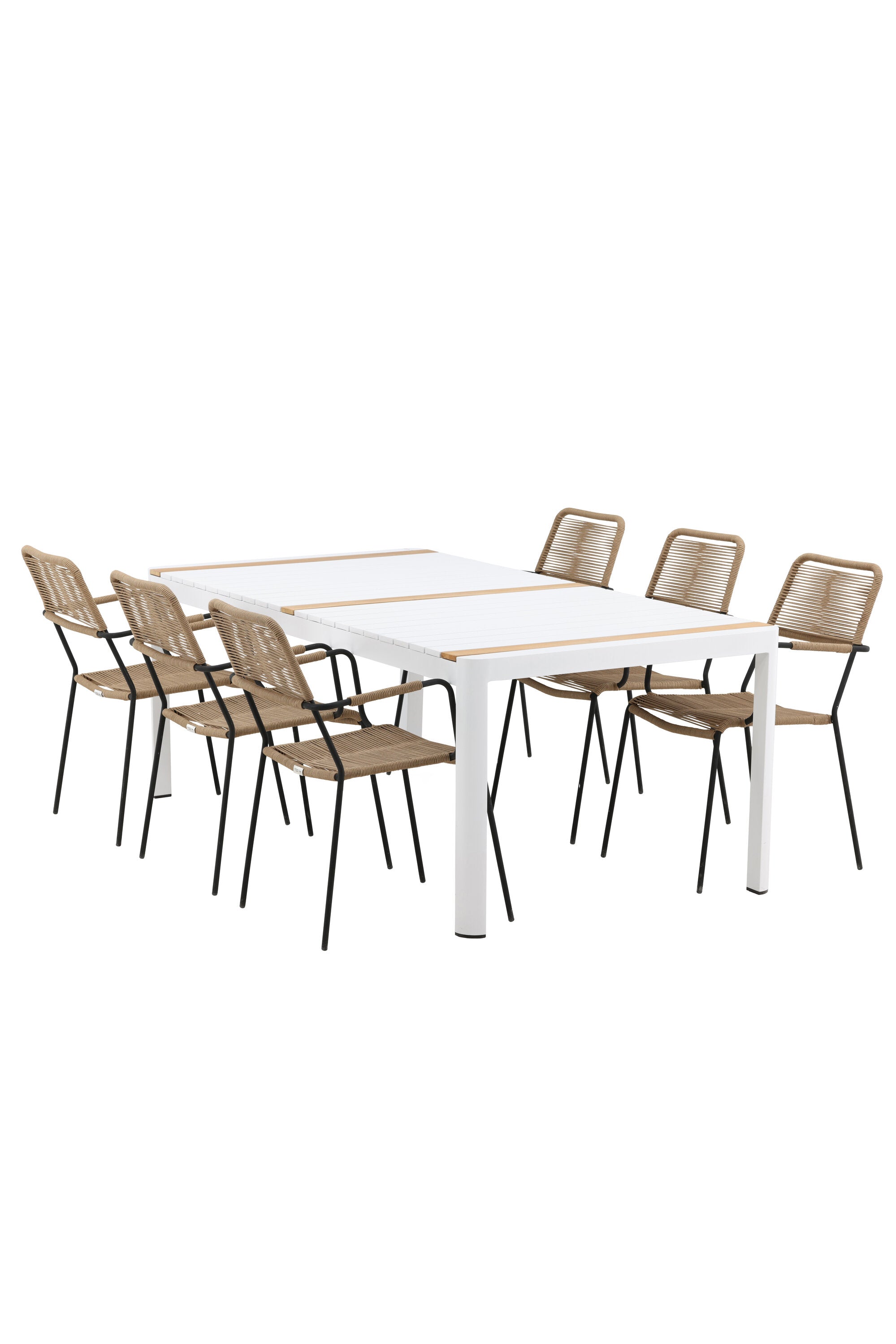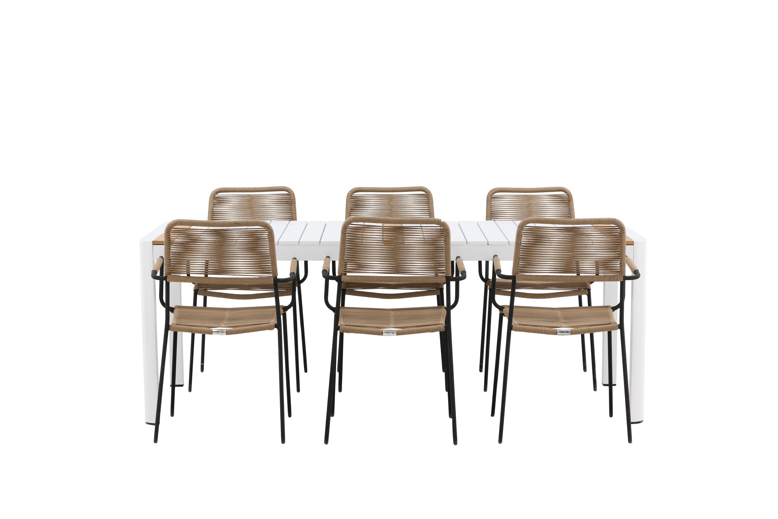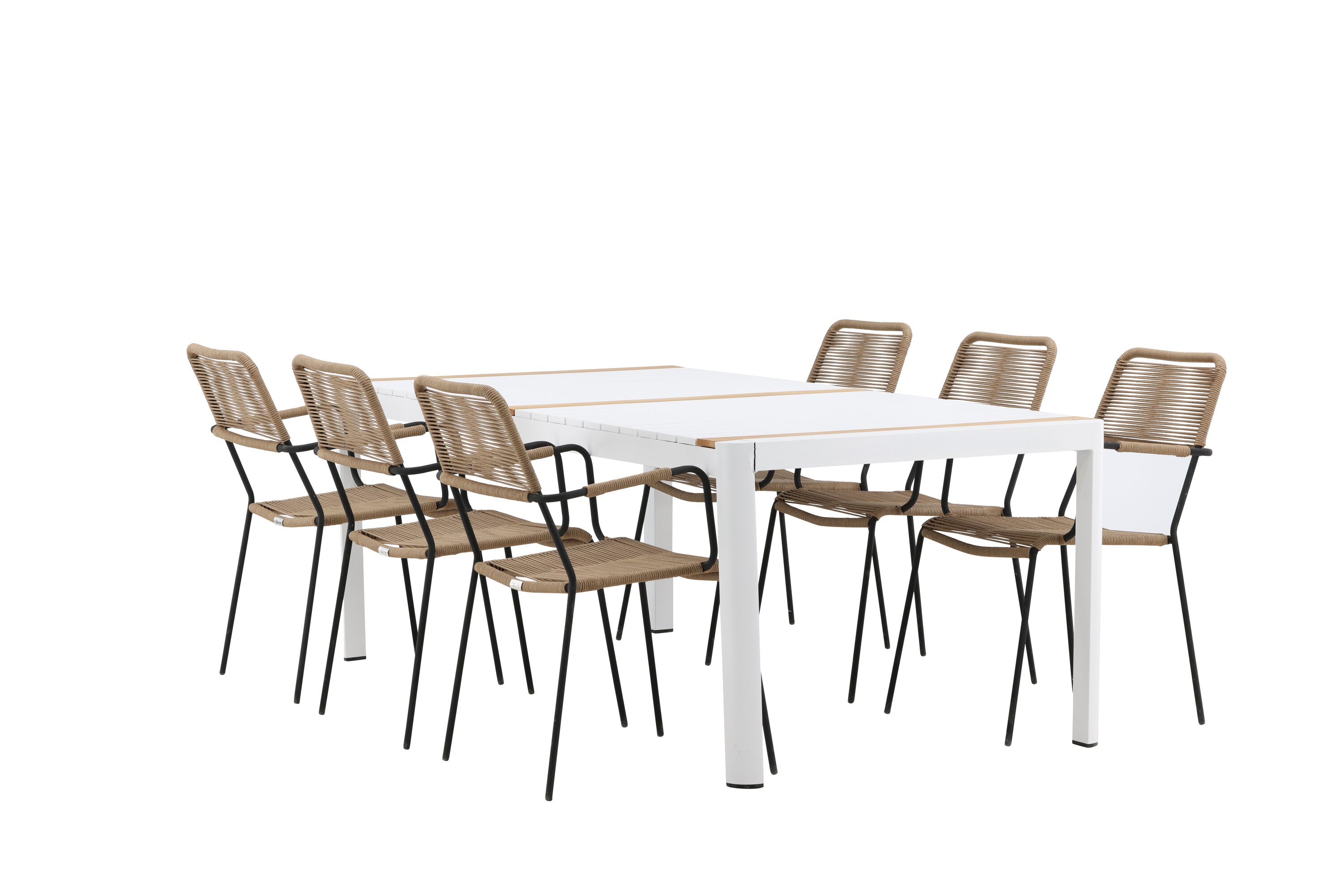Togo - Jídelní stůl - Bílá / Teak - Allu / Teak - 200*100 _1+ Lindos - Křeslo - Black Alu / Latte Latte _6