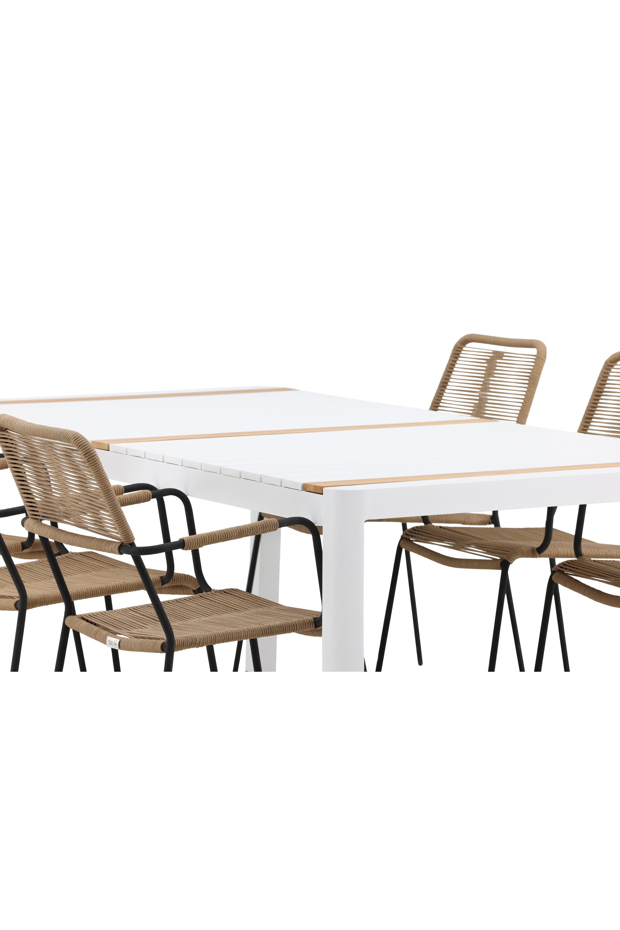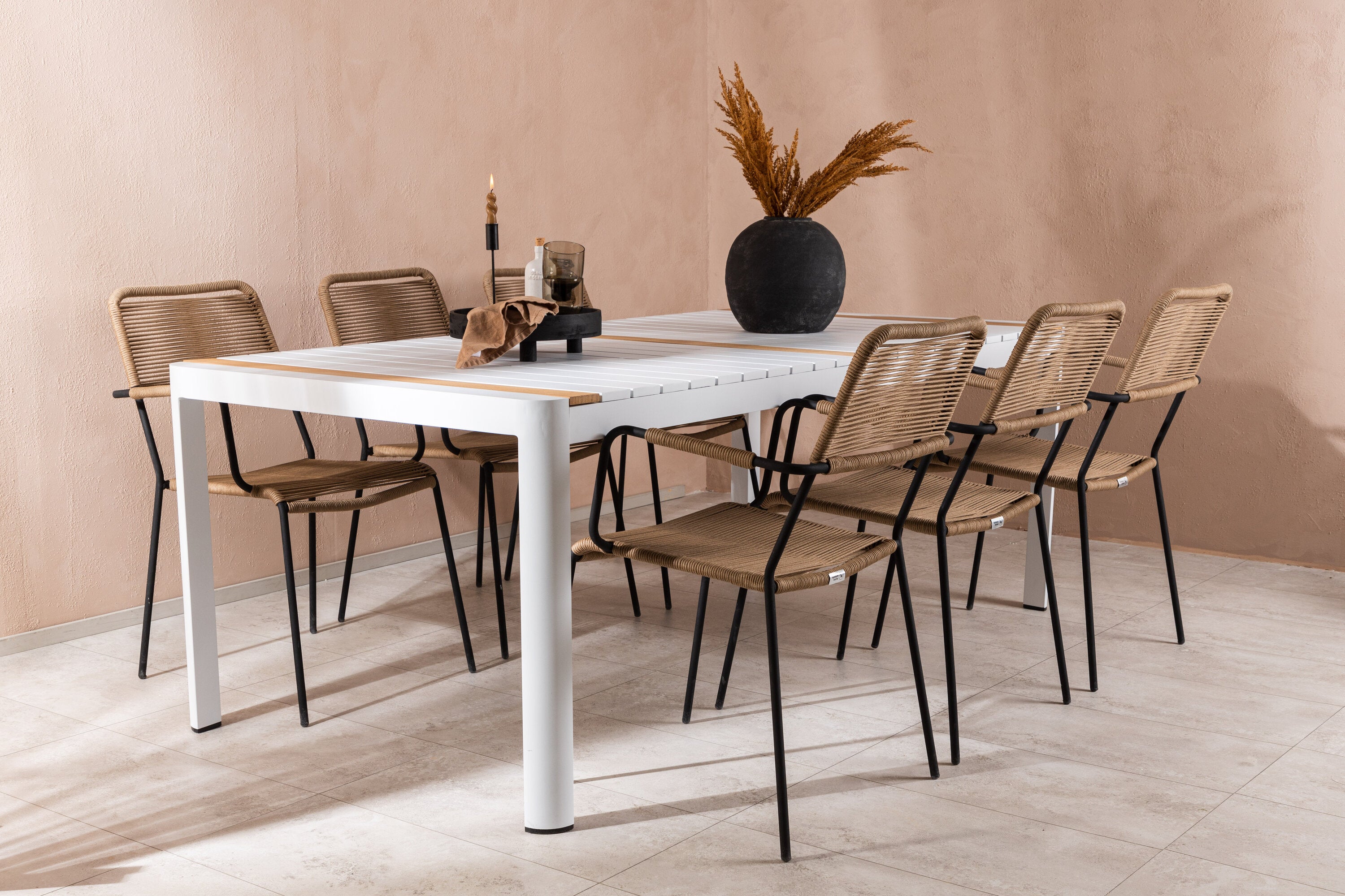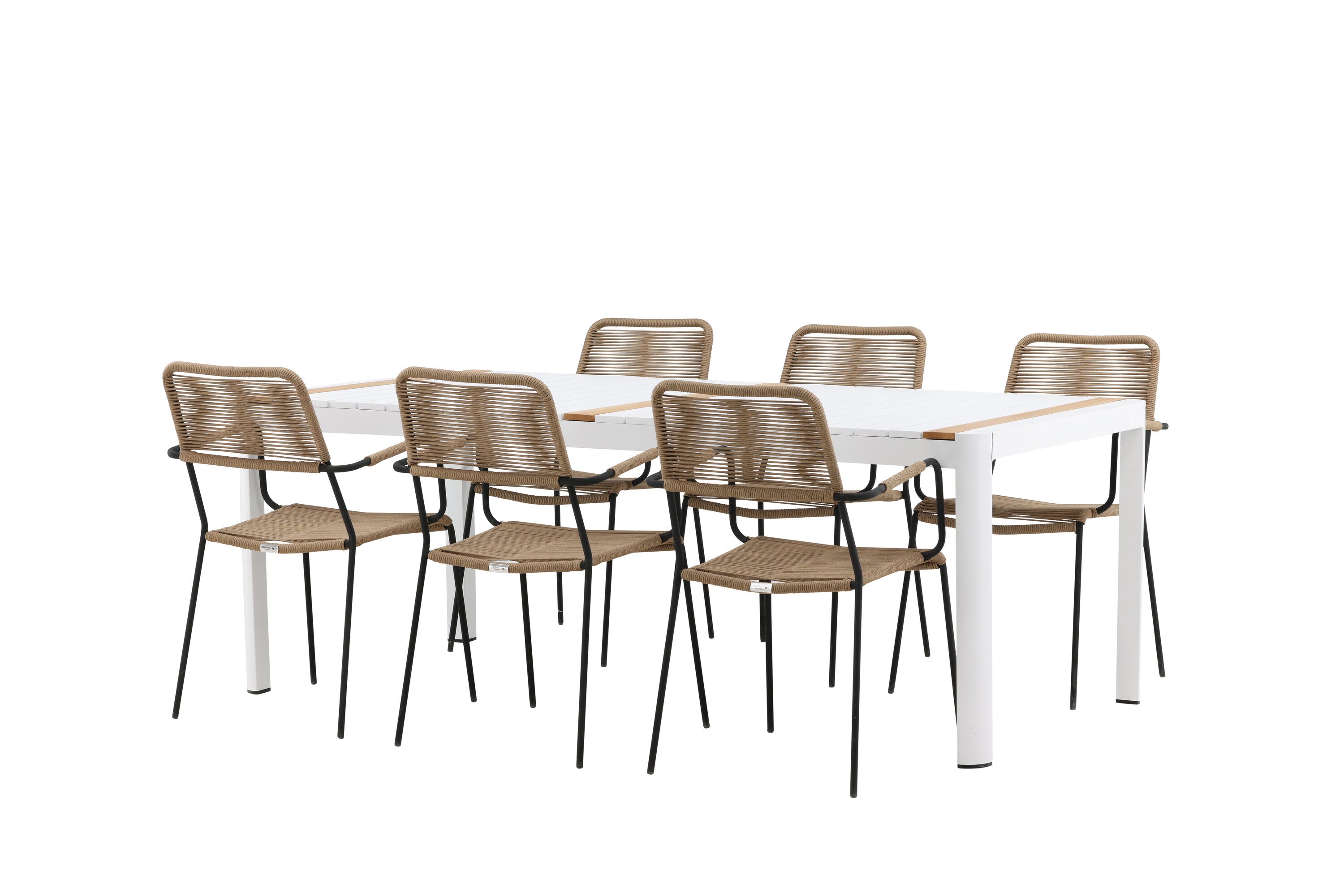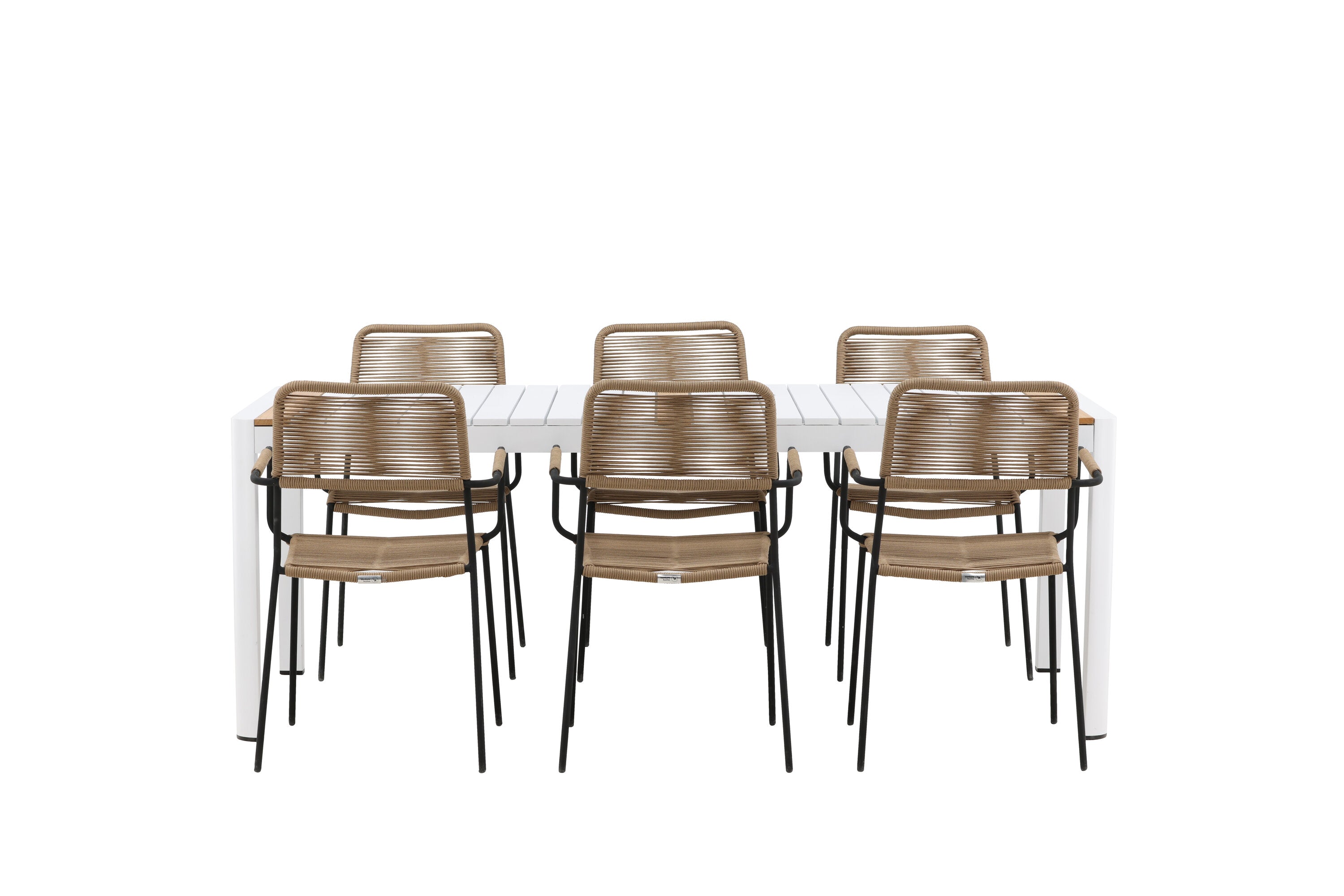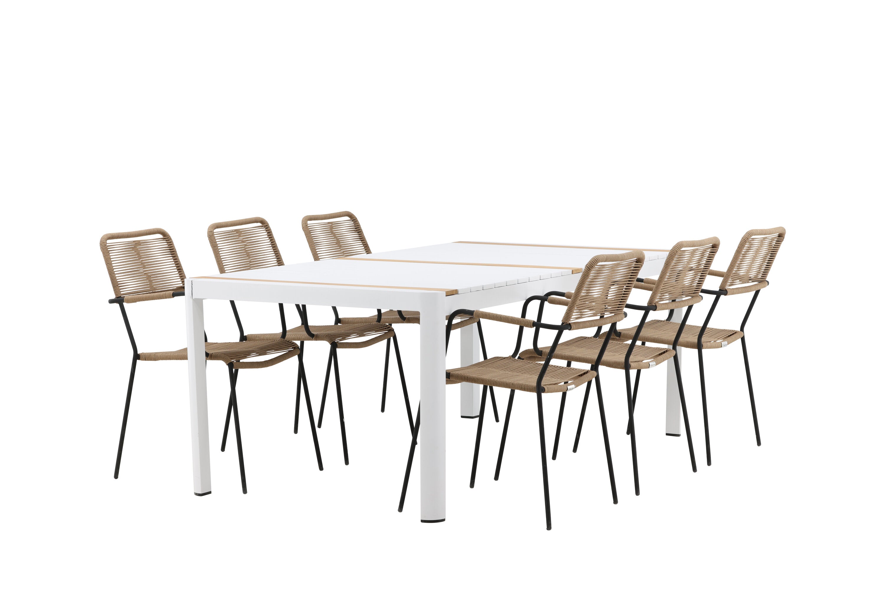 Togo - Jídelní stůl - Bílá / Teak - Allu / Teak - 200*100 _1+ Lindos - Křeslo - Black Alu / Latte Latte _6