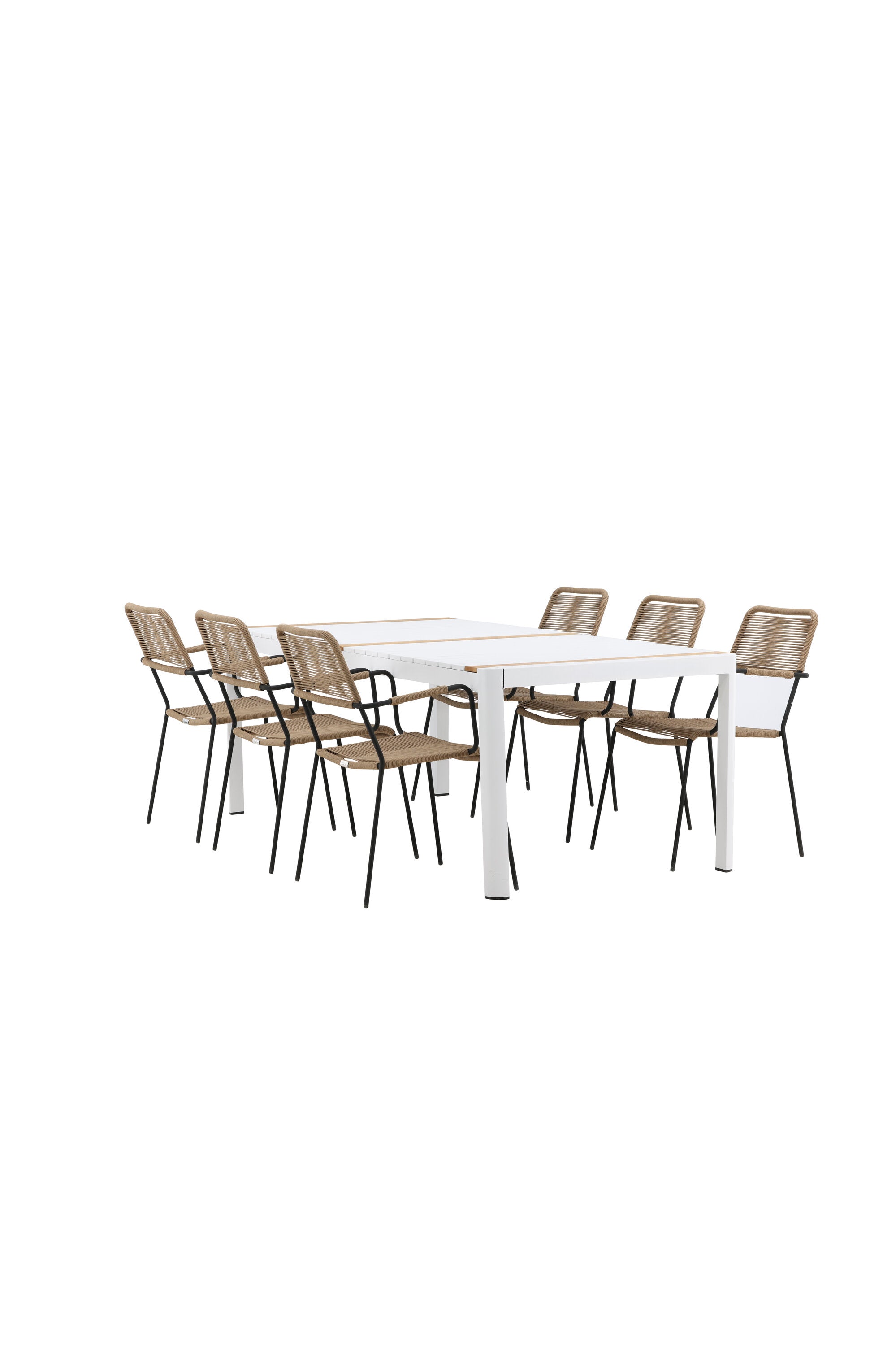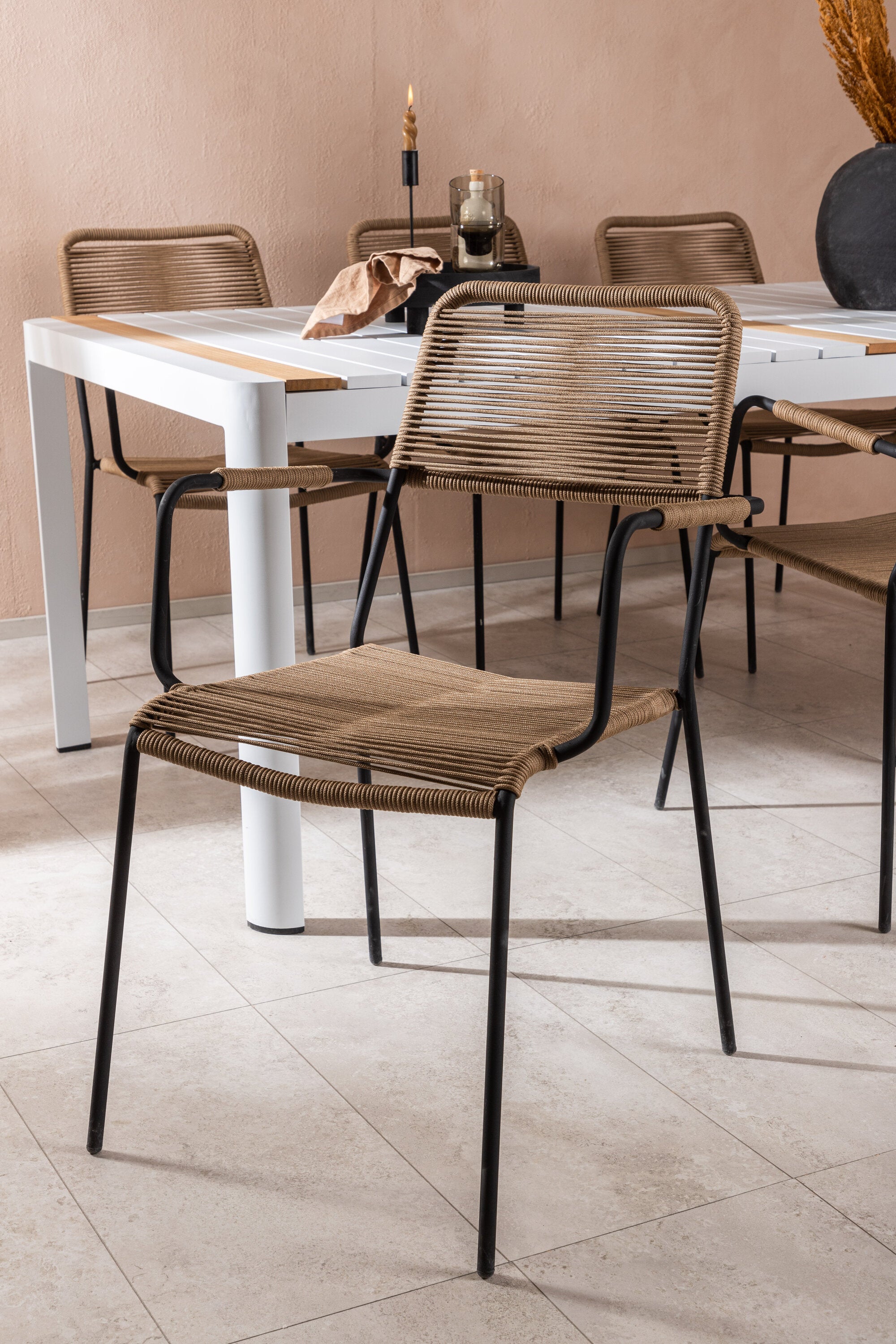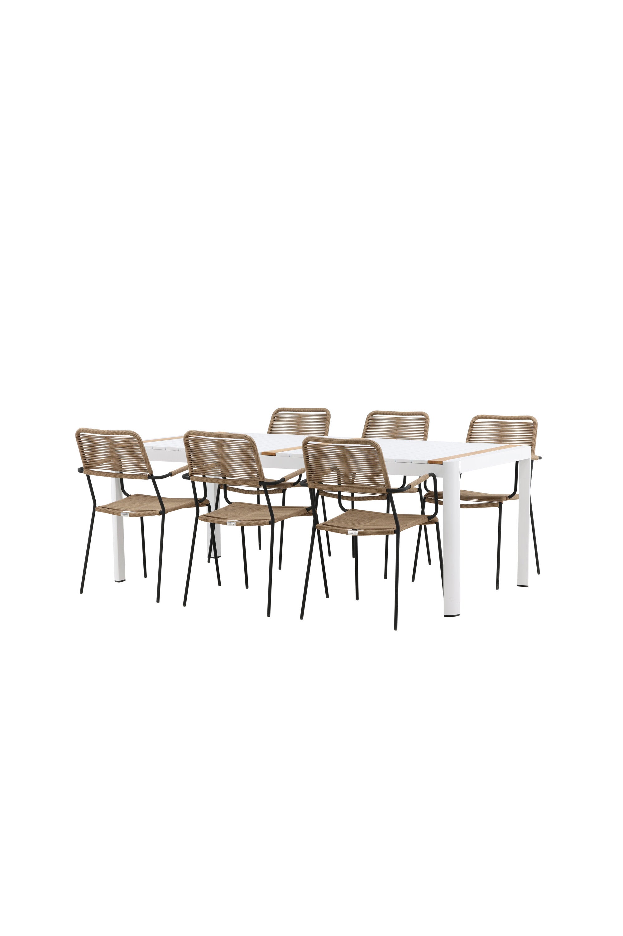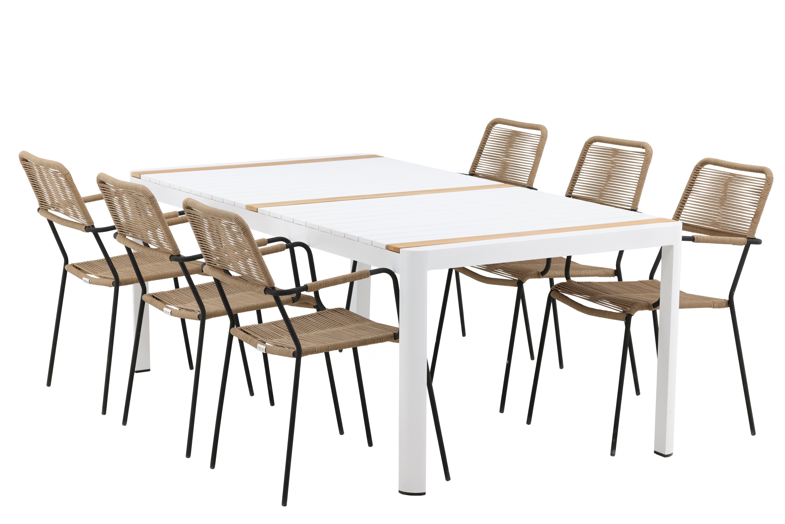 Togo - Jídelní stůl - Bílá / Teak - Allu / Teak - 200*100 _1+ Lindos - Křeslo - Black Alu / Latte Latte _6