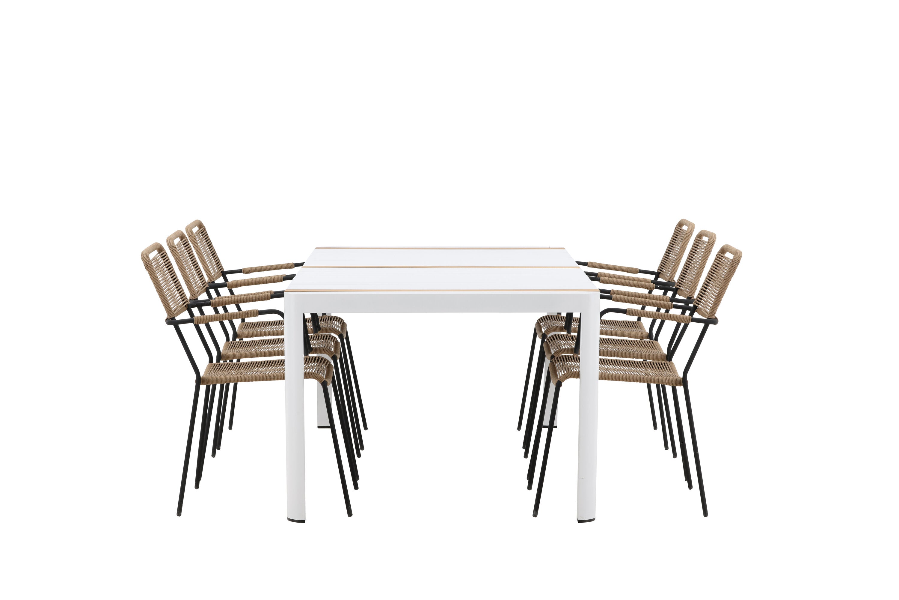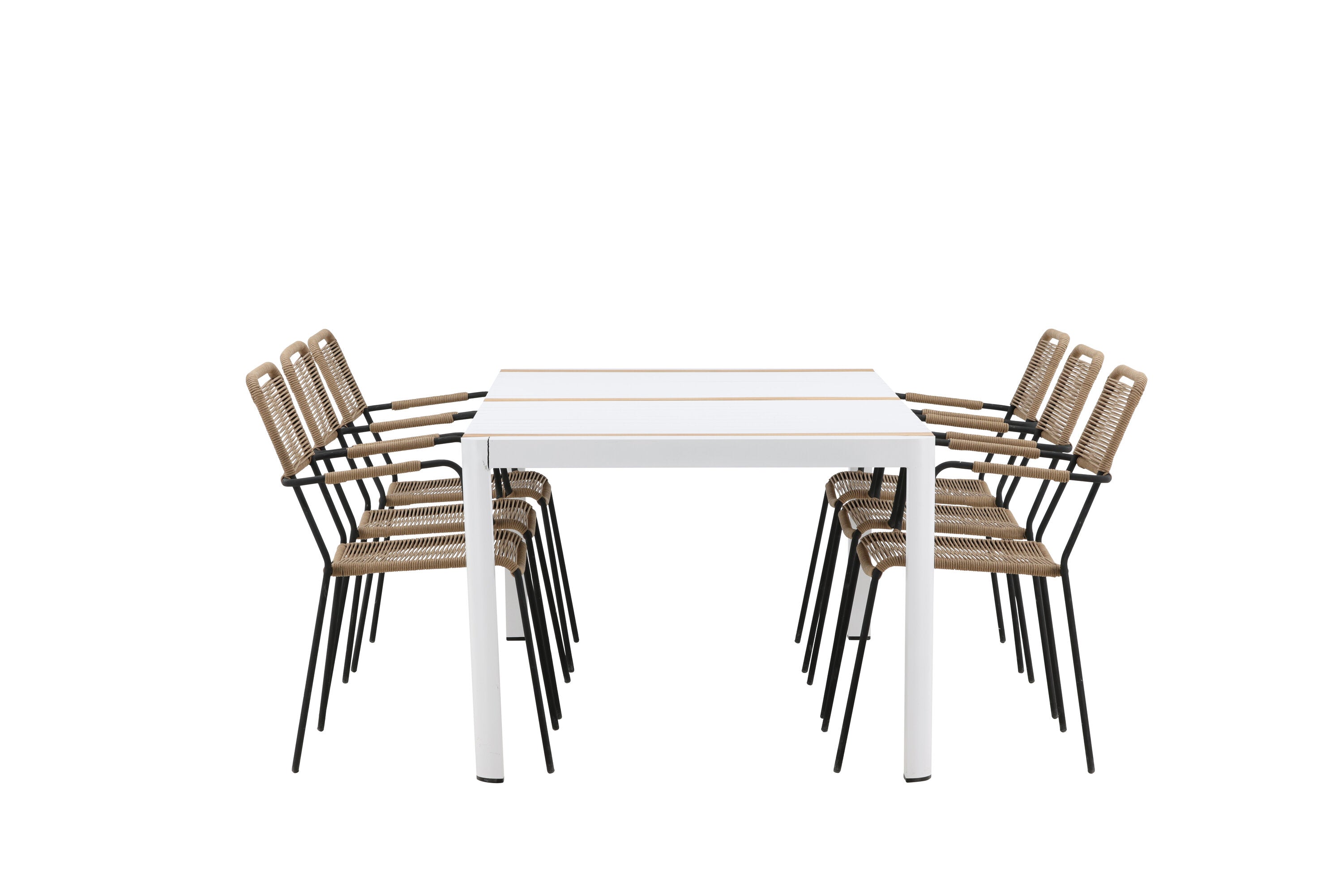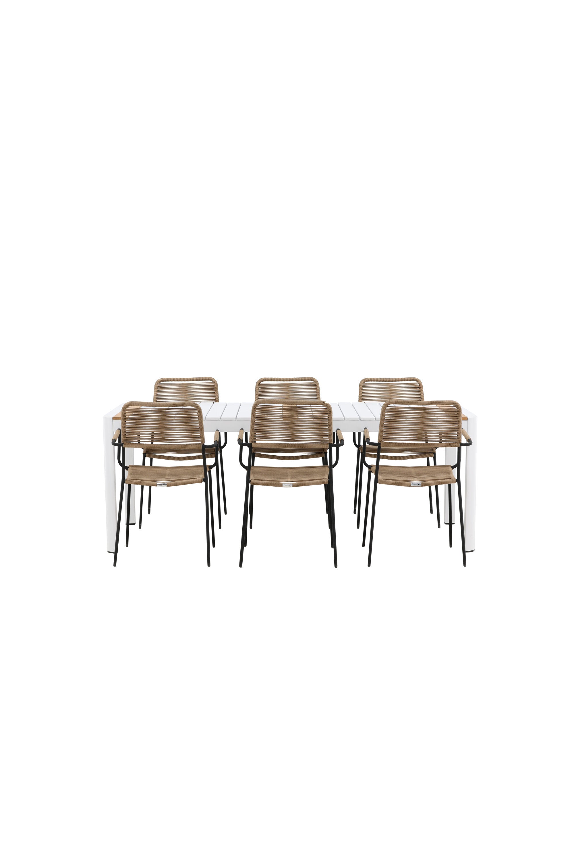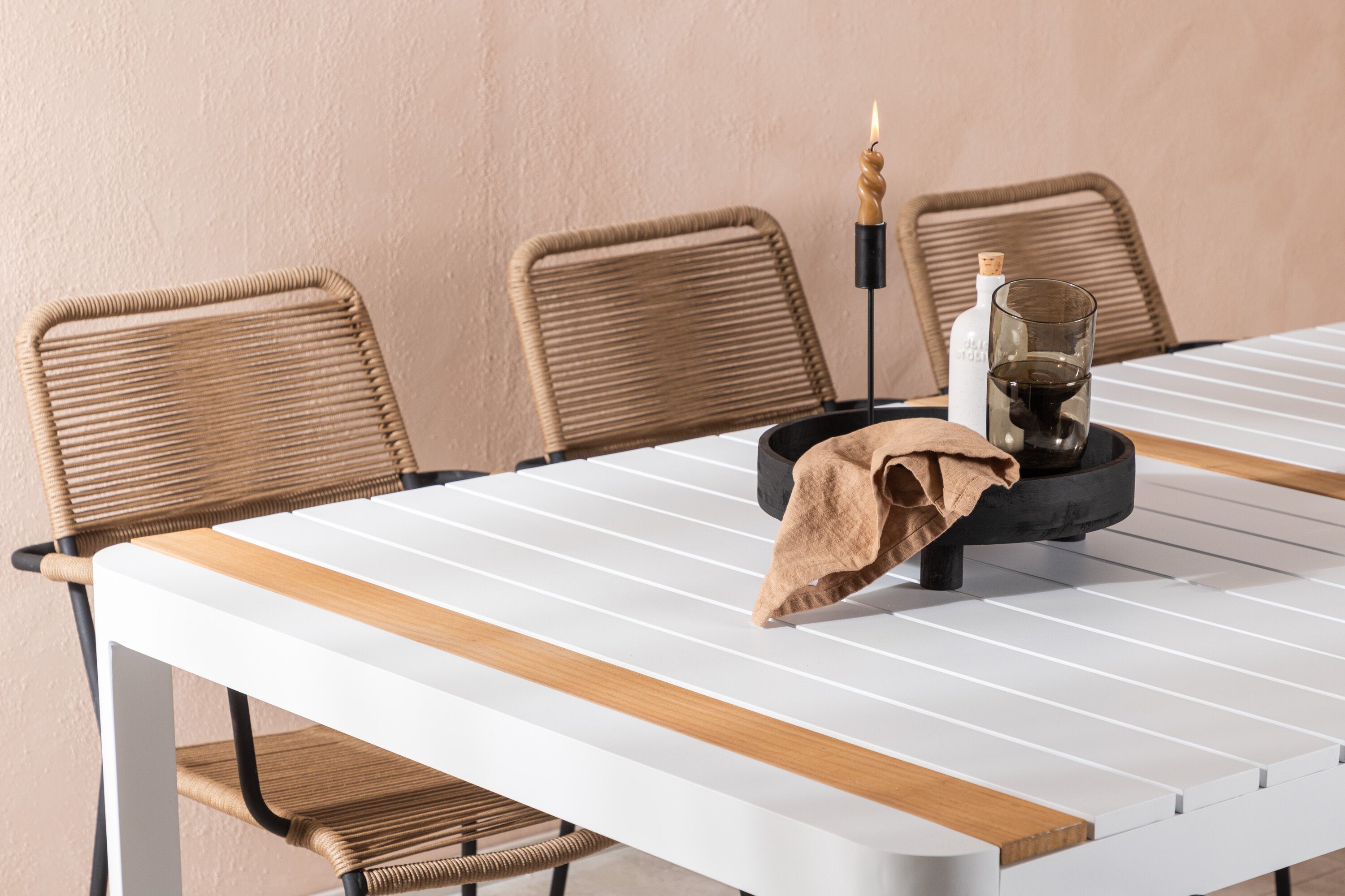 Togo - Jídelní stůl - Bílá / Teak - Allu / Teak - 200*100 _1+ Lindos - Křeslo - Black Alu / Latte Latte _6