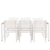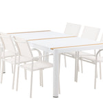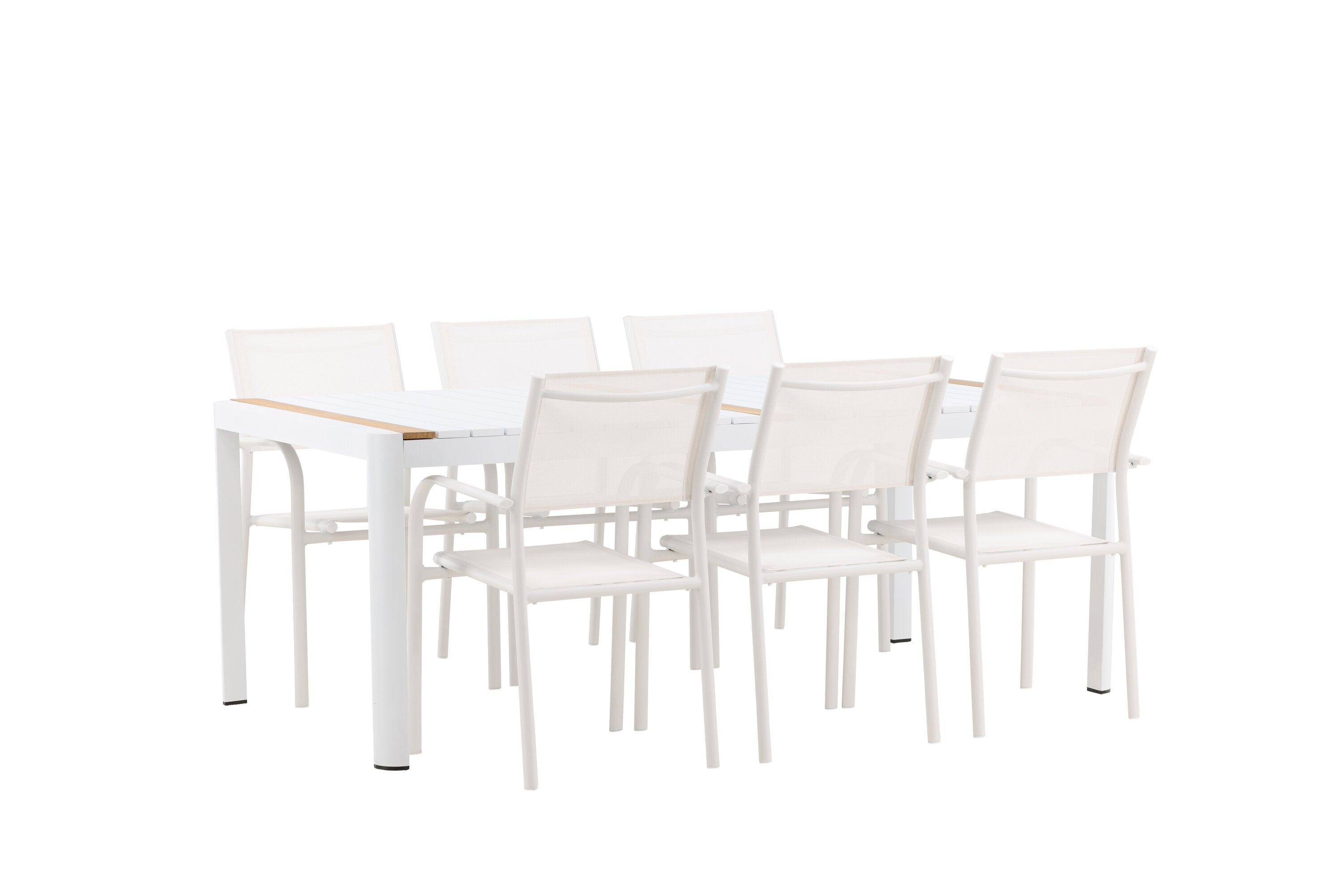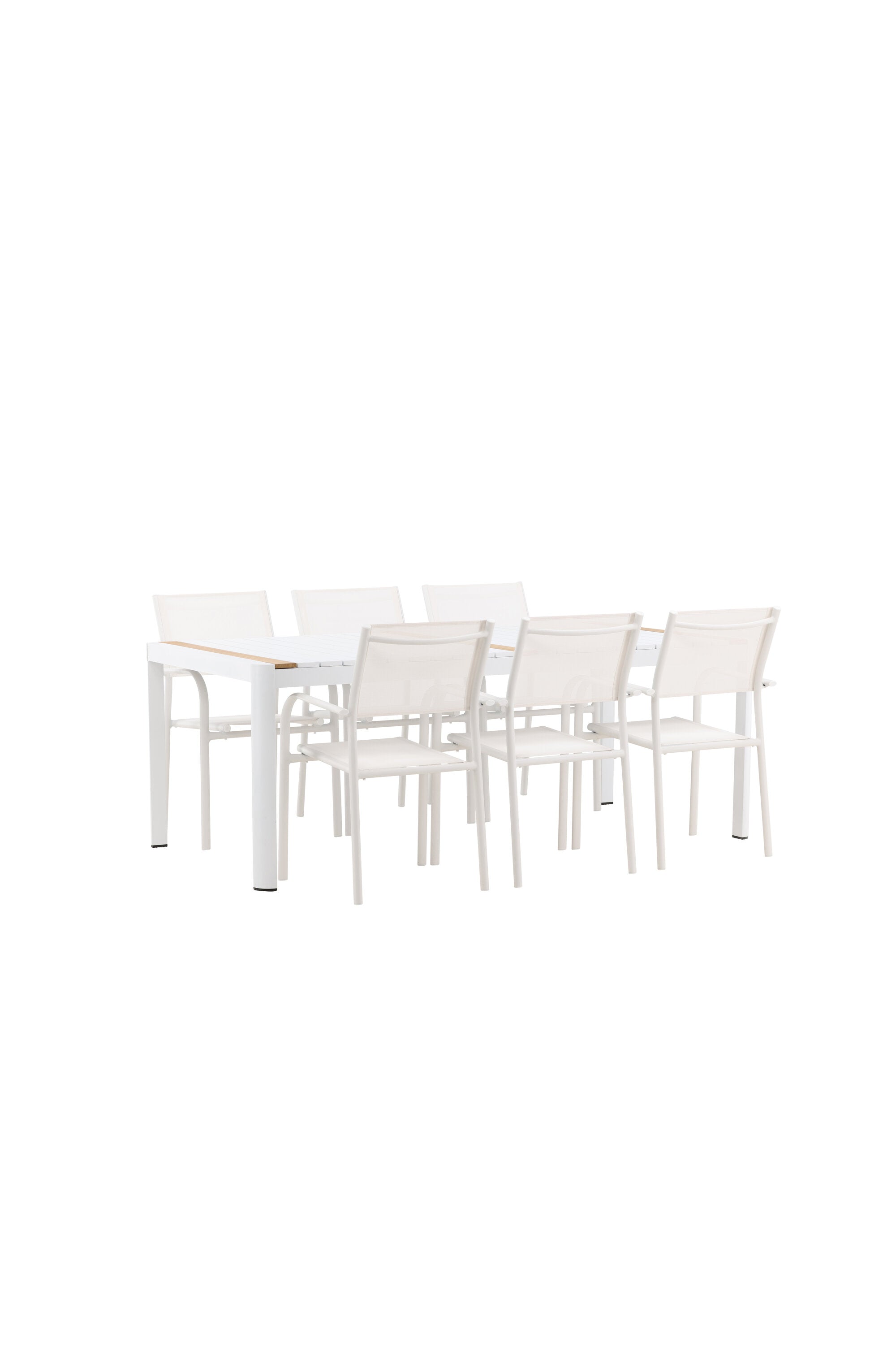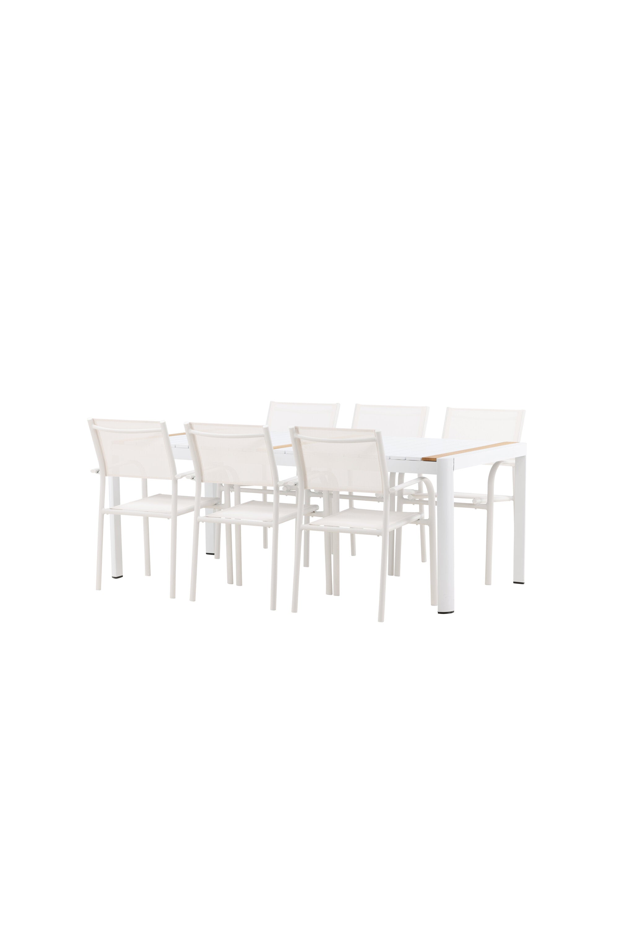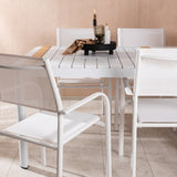 Togo - Jídelní stůl - Bílá / Teak - Allu / Teak - 200*100 + křeslo Santorini (stohovatelné) - Bílá Alu / Bílá textilie _6