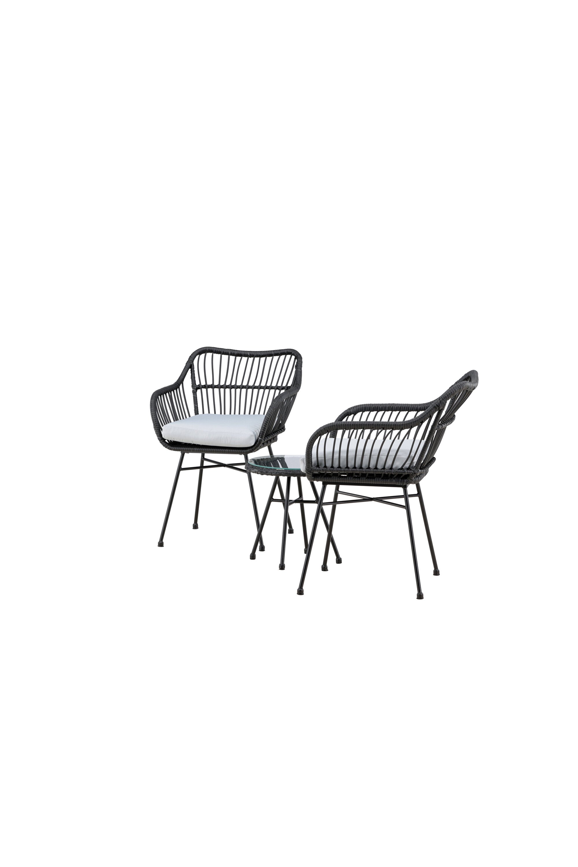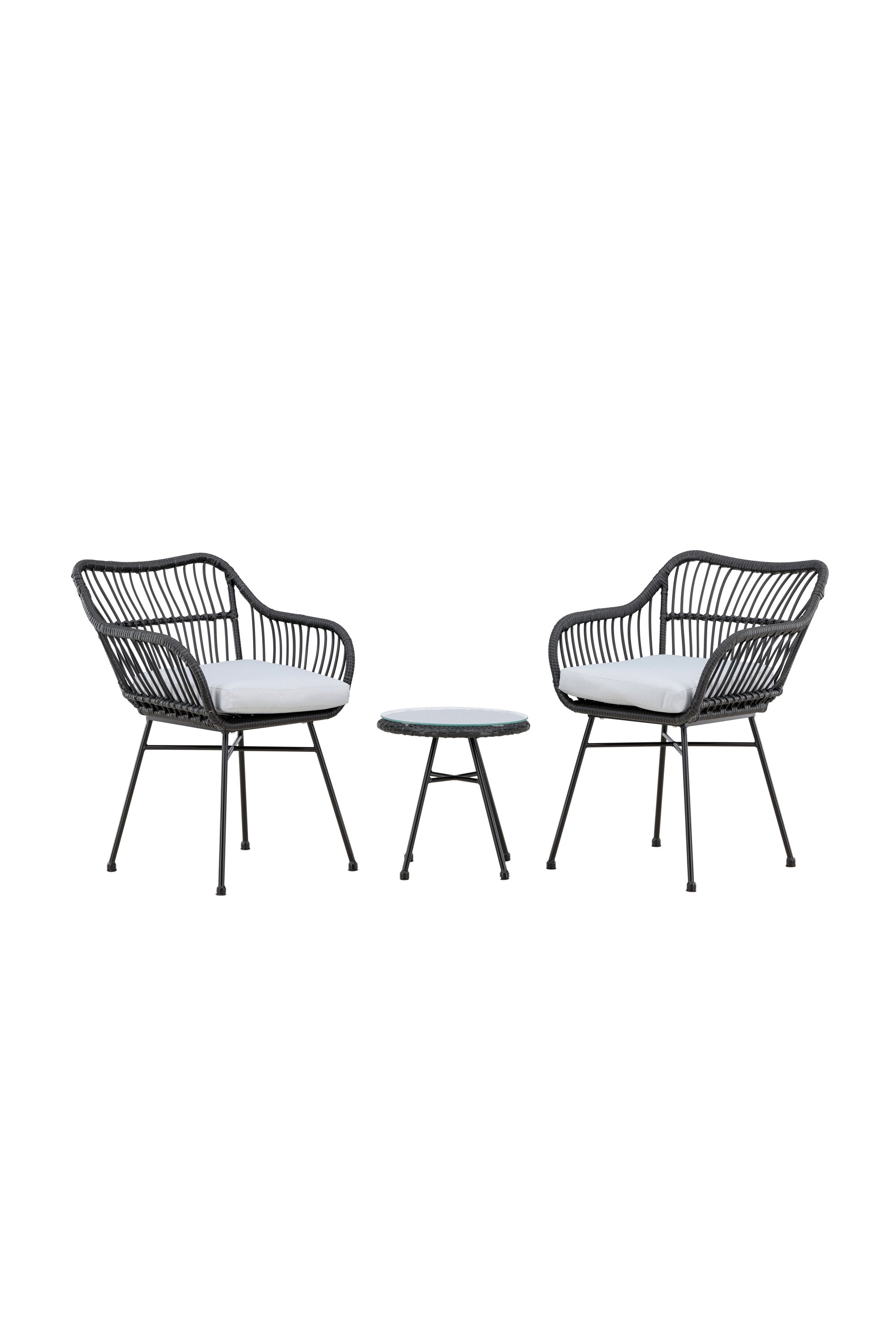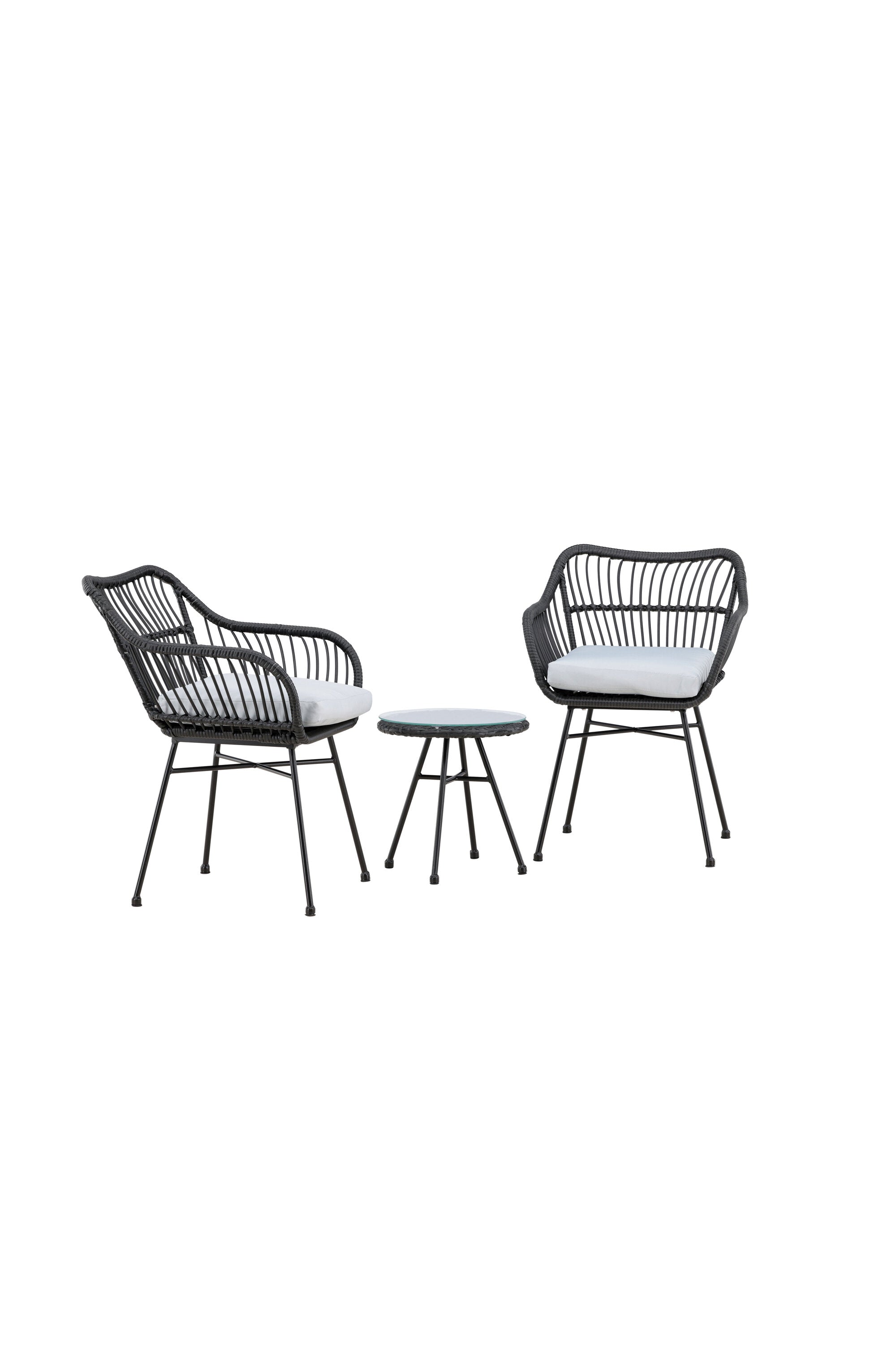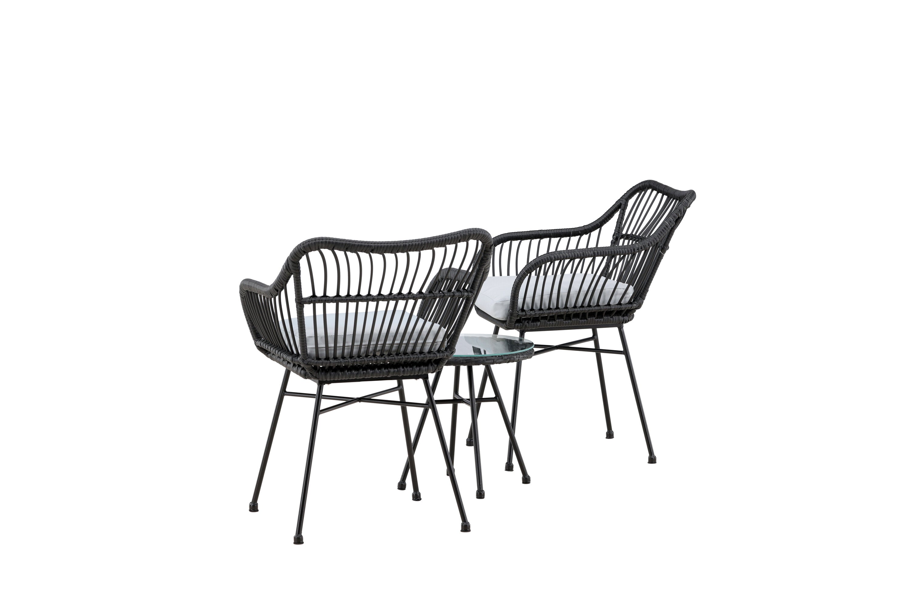 Viga, náš stylový balkonový set v moderním designu, který se perfektně hodí na zasklenou terasu. Sestava nábytku se skládá ze dvou rámových křesel s černým rámovým stojanem z práškově lakovaného kovu, stejně jako opěradlo a sedák navržené ve stylovém hezkém vzoru černé přírodní královny. Včetně bílých polštářů a konferenčního stolku s detaily v černé přírodní královně a skleněné desky stolu. Vybavte si terasu balkónovým setem, který zaručeně prodlouží pozdní letní večery s blízkými!