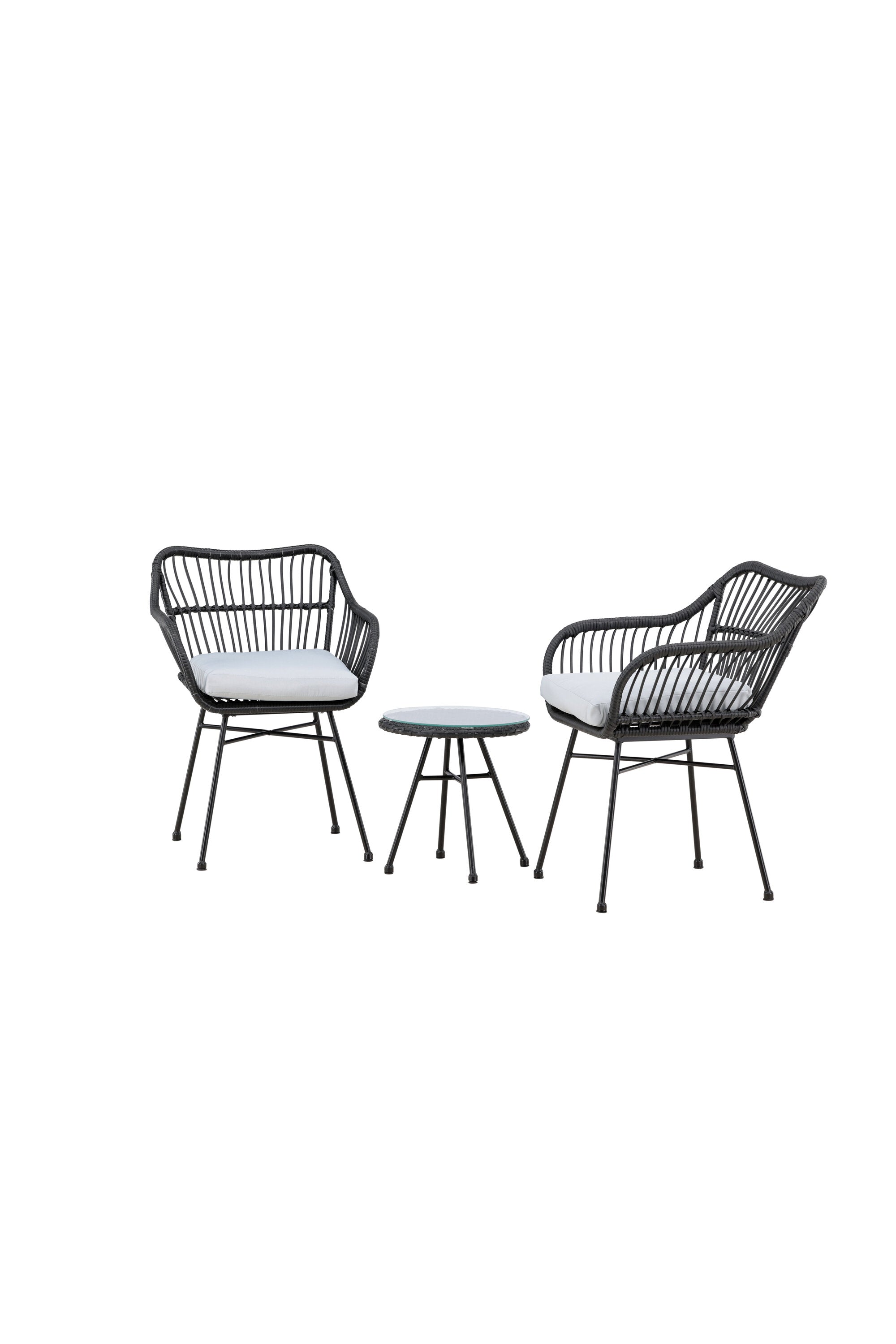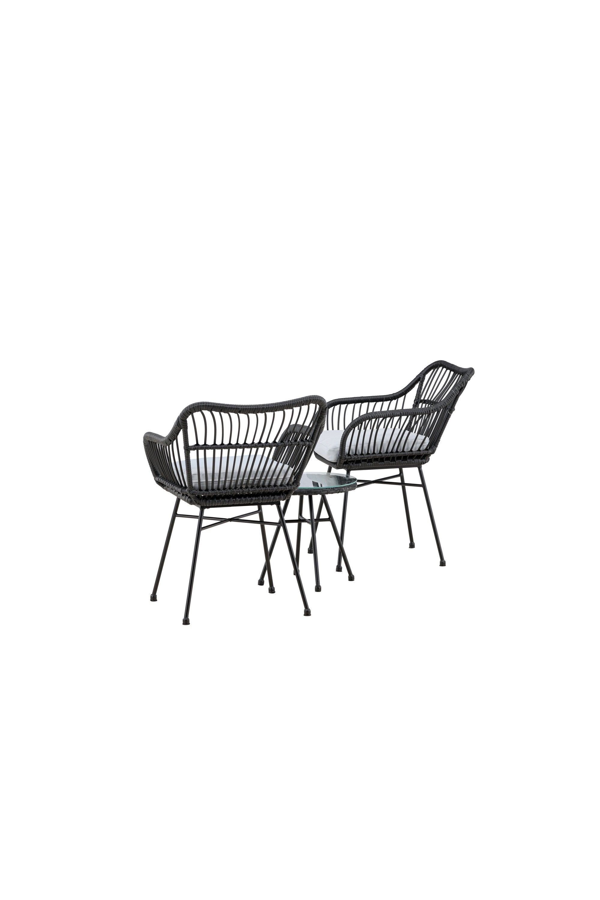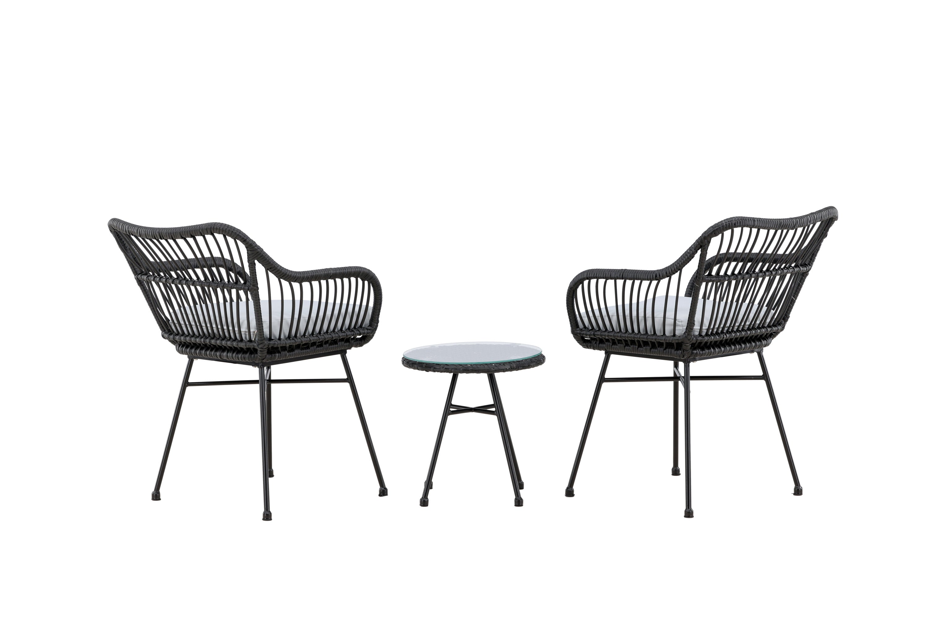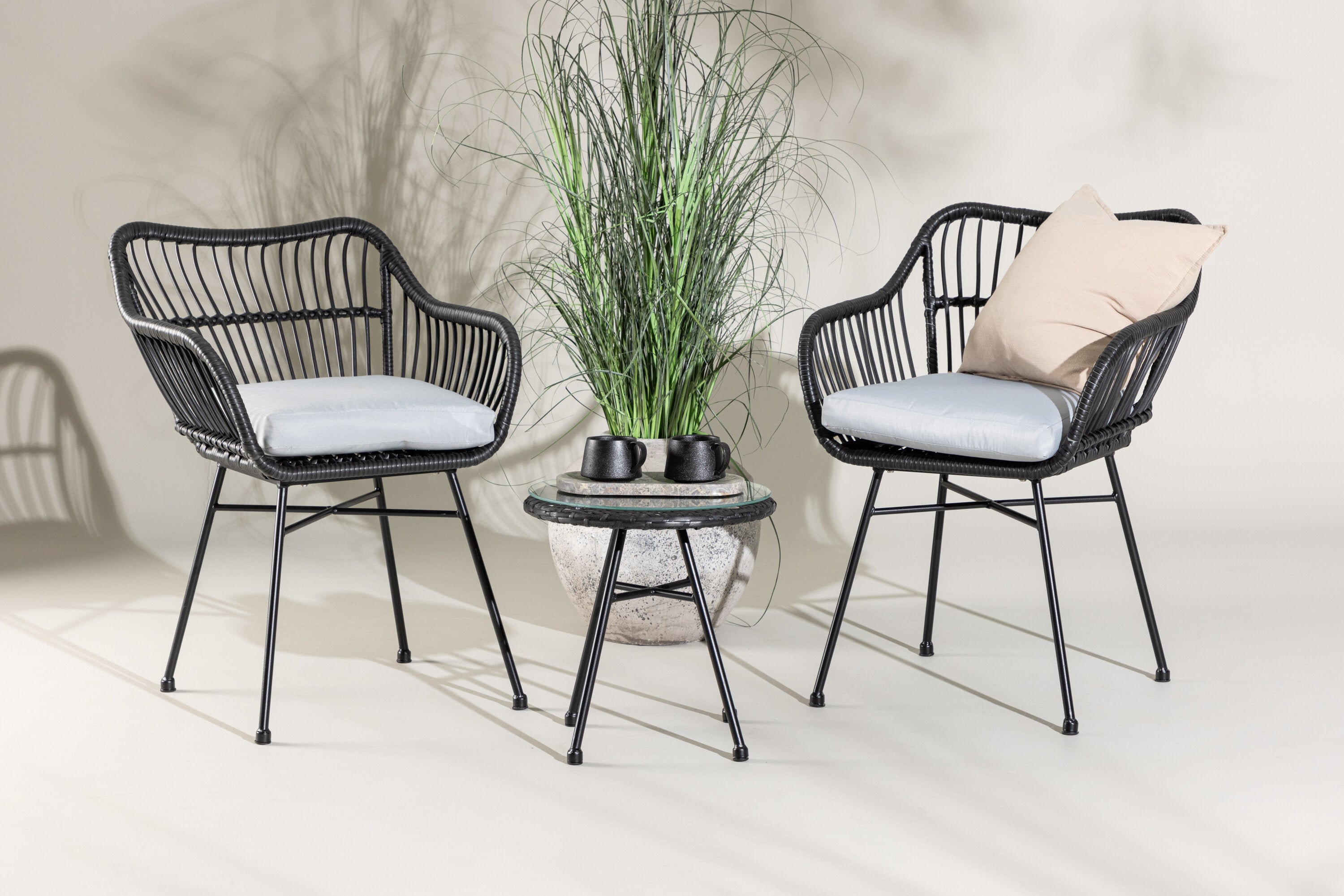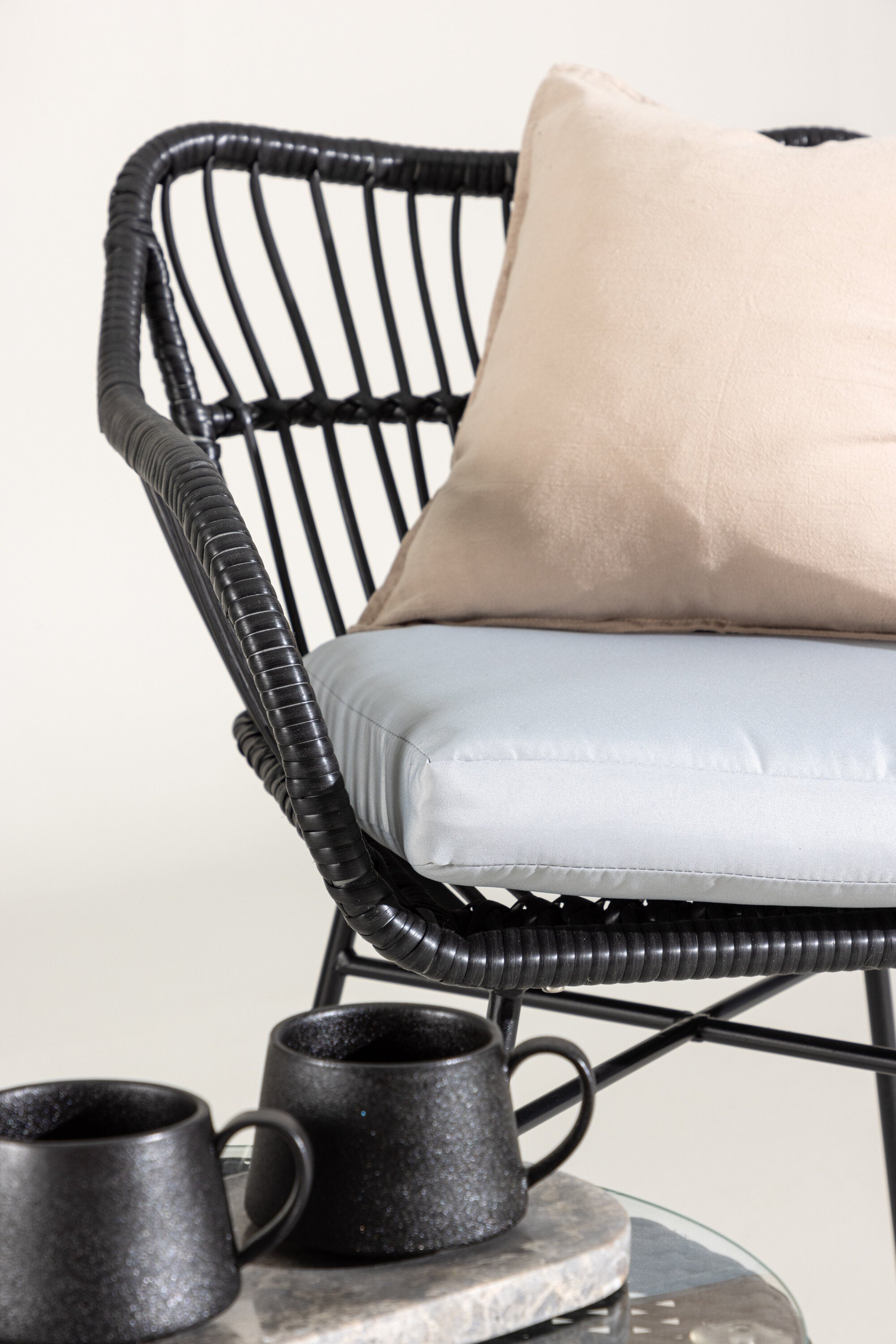 Viga, náš stylový balkonový set v moderním designu, který se perfektně hodí na zasklenou terasu. Sestava nábytku se skládá ze dvou rámových křesel s černým rámovým stojanem z práškově lakovaného kovu, stejně jako opěradlo a sedák navržené ve stylovém hezkém vzoru černé přírodní královny. Včetně bílých polštářů a konferenčního stolku s detaily v černé přírodní královně a skleněné desky stolu. Vybavte si terasu balkónovým setem, který zaručeně prodlouží pozdní letní večery s blízkými!