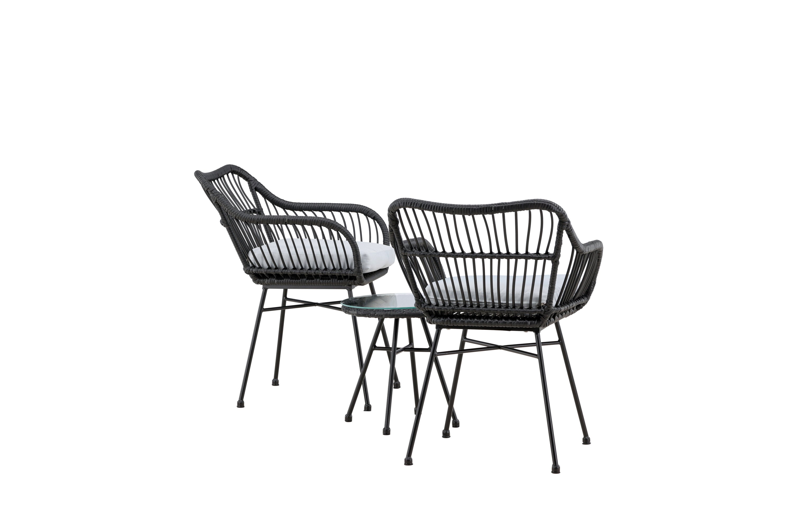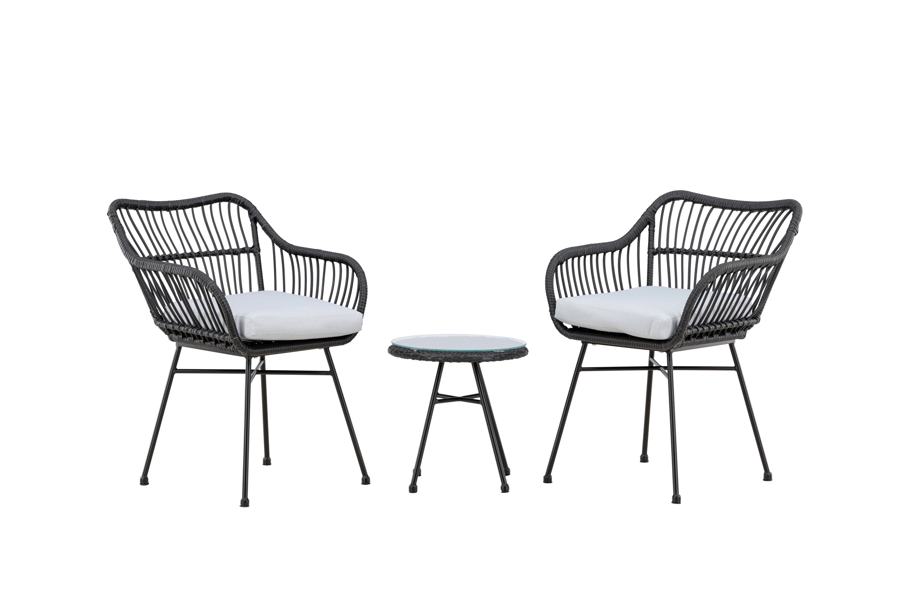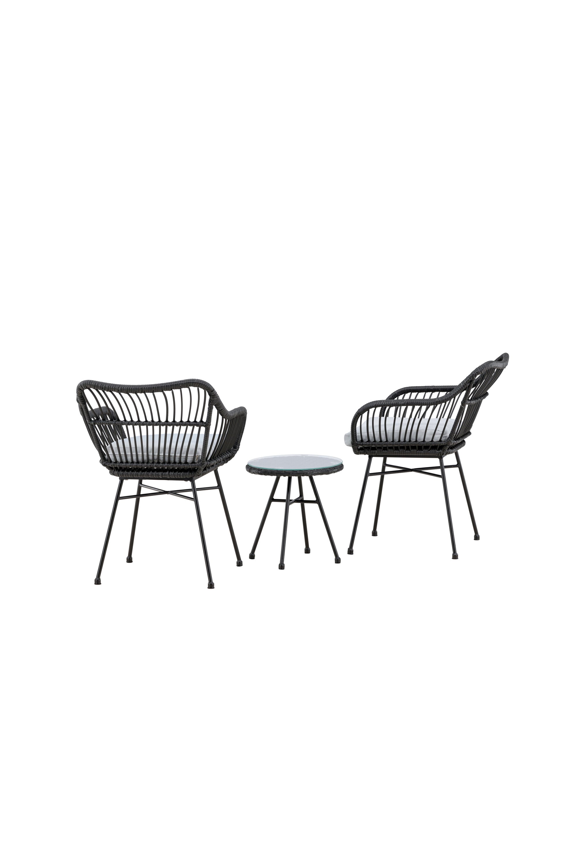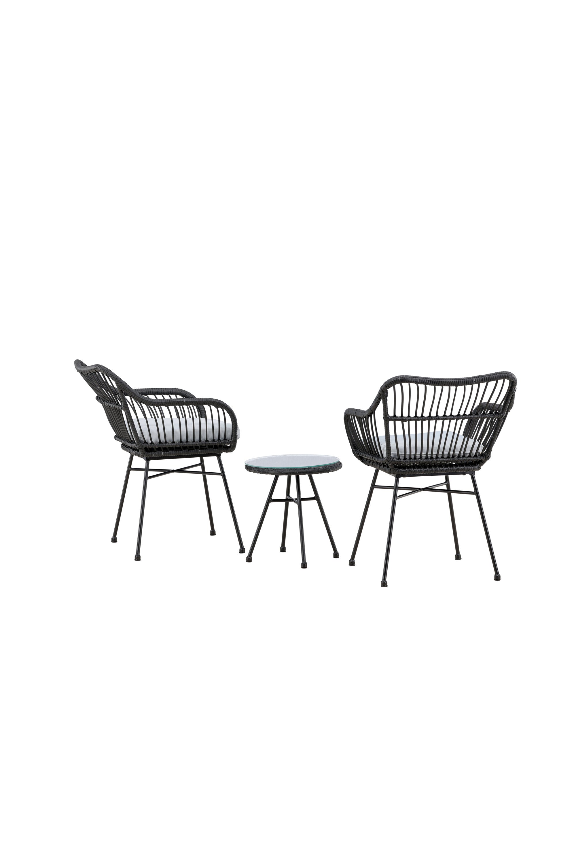 Viga, náš stylový balkonový set v moderním designu, který se perfektně hodí na zasklenou terasu. Sestava nábytku se skládá ze dvou rámových křesel s černým rámovým stojanem z práškově lakovaného kovu, stejně jako opěradlo a sedák navržené ve stylovém hezkém vzoru černé přírodní královny. Včetně bílých polštářů a konferenčního stolku s detaily v černé přírodní královně a skleněné desky stolu. Vybavte si terasu balkónovým setem, který zaručeně prodlouží pozdní letní večery s blízkými!