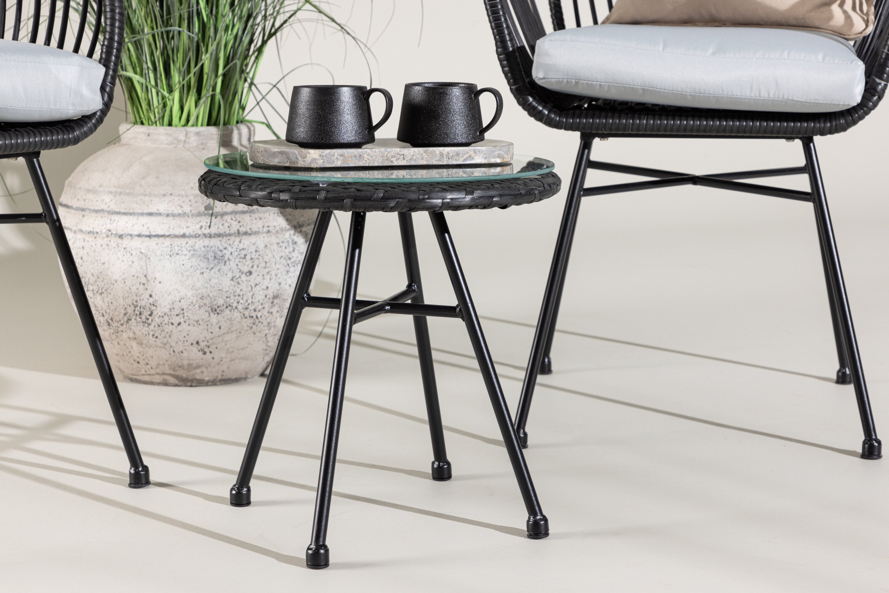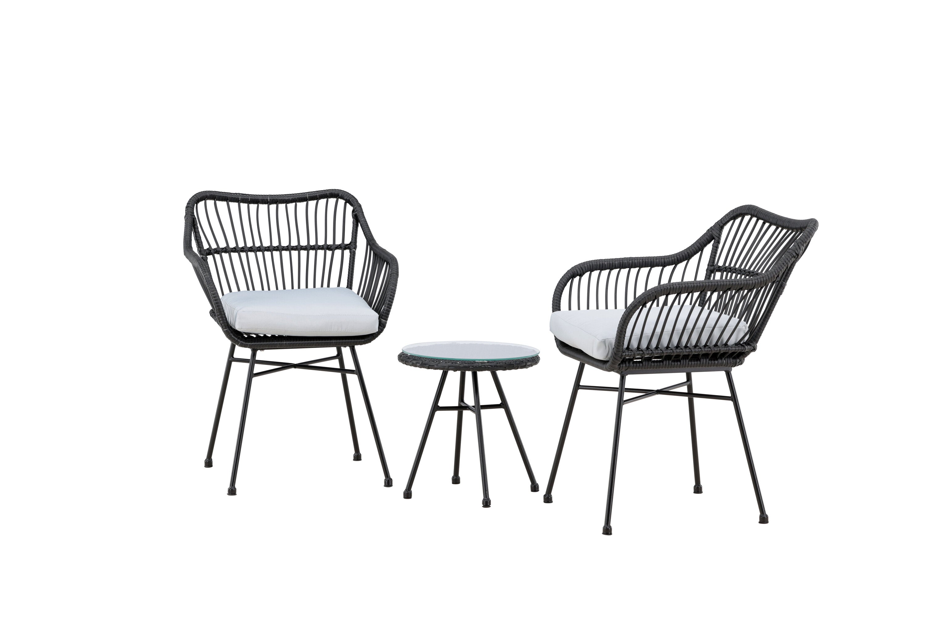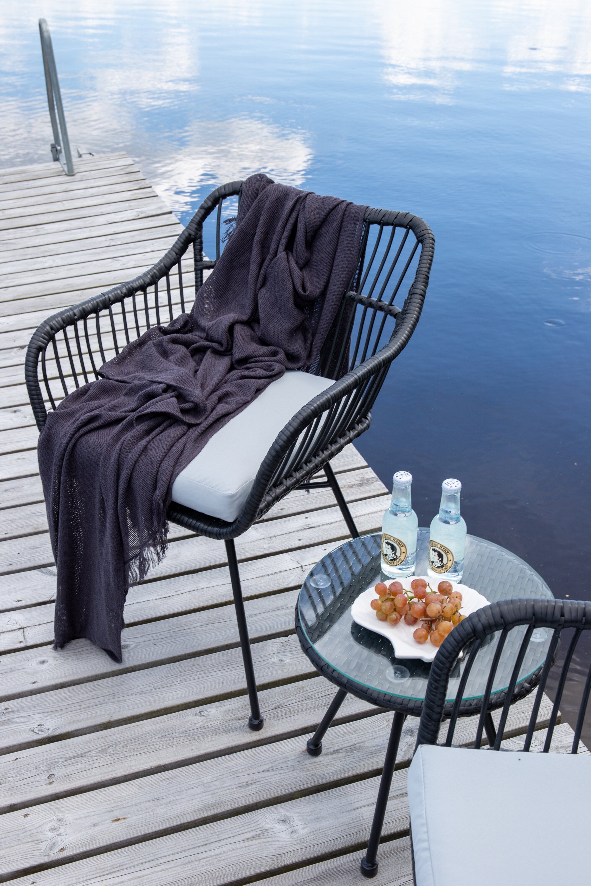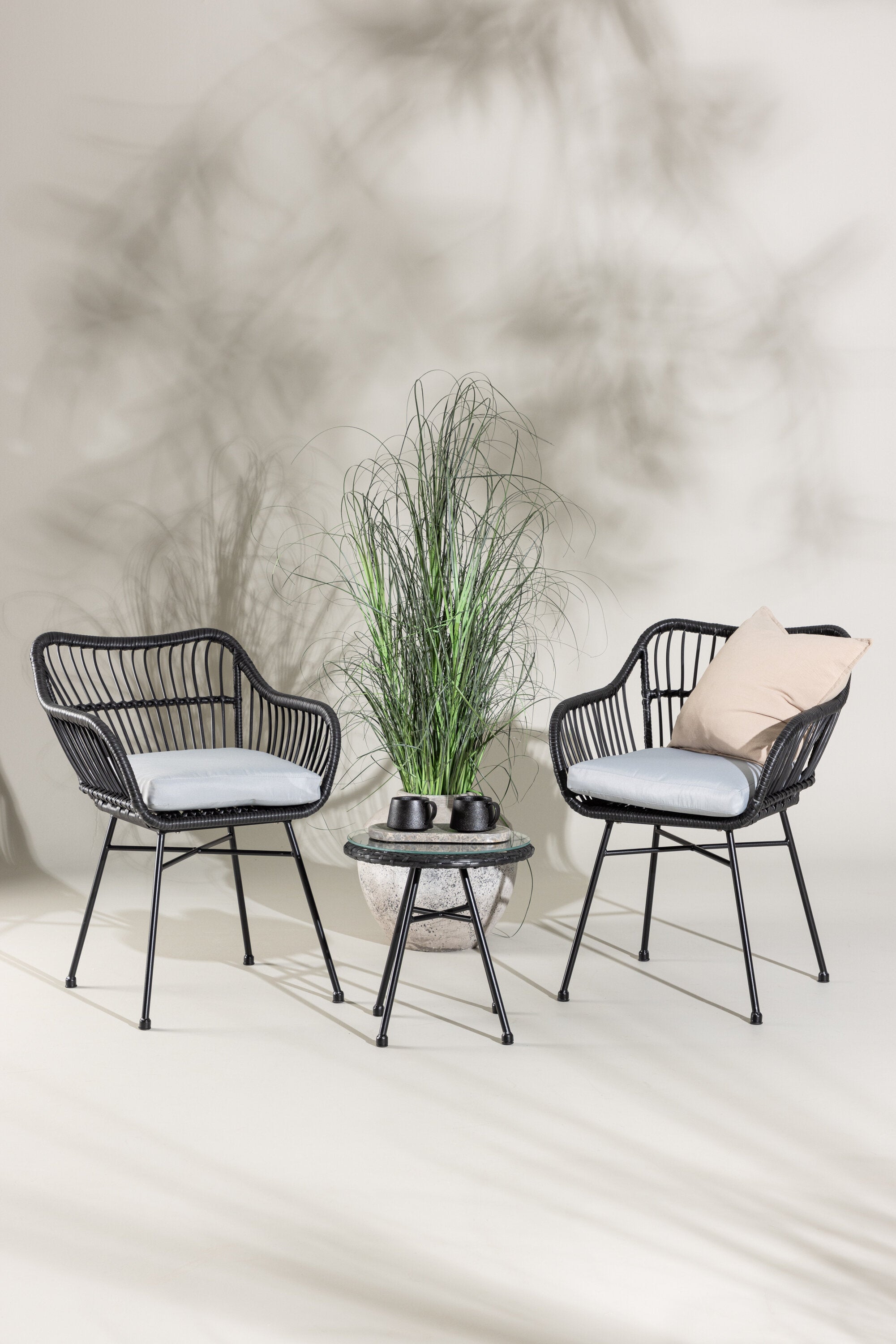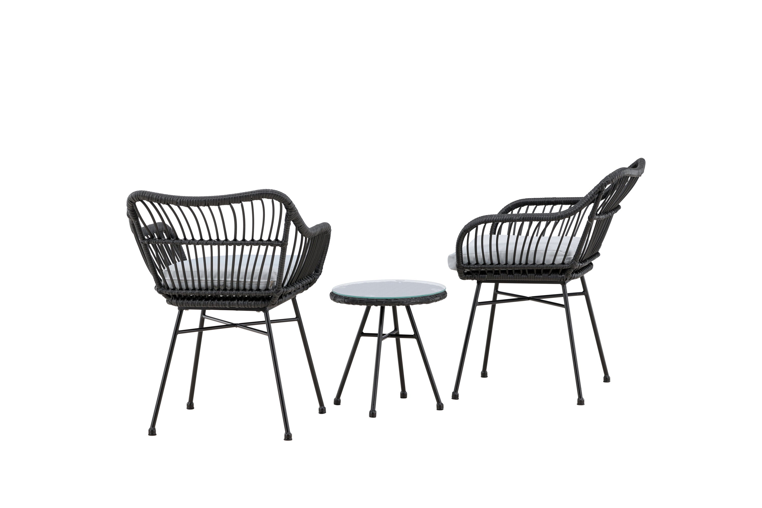 Viga, náš stylový balkonový set v moderním designu, který se perfektně hodí na zasklenou terasu. Sestava nábytku se skládá ze dvou rámových křesel s černým rámovým stojanem z práškově lakovaného kovu, stejně jako opěradlo a sedák navržené ve stylovém hezkém vzoru černé přírodní královny. Včetně bílých polštářů a konferenčního stolku s detaily v černé přírodní královně a skleněné desky stolu. Vybavte si terasu balkónovým setem, který zaručeně prodlouží pozdní letní večery s blízkými!
