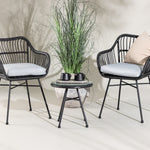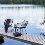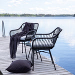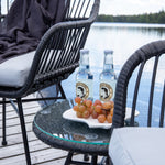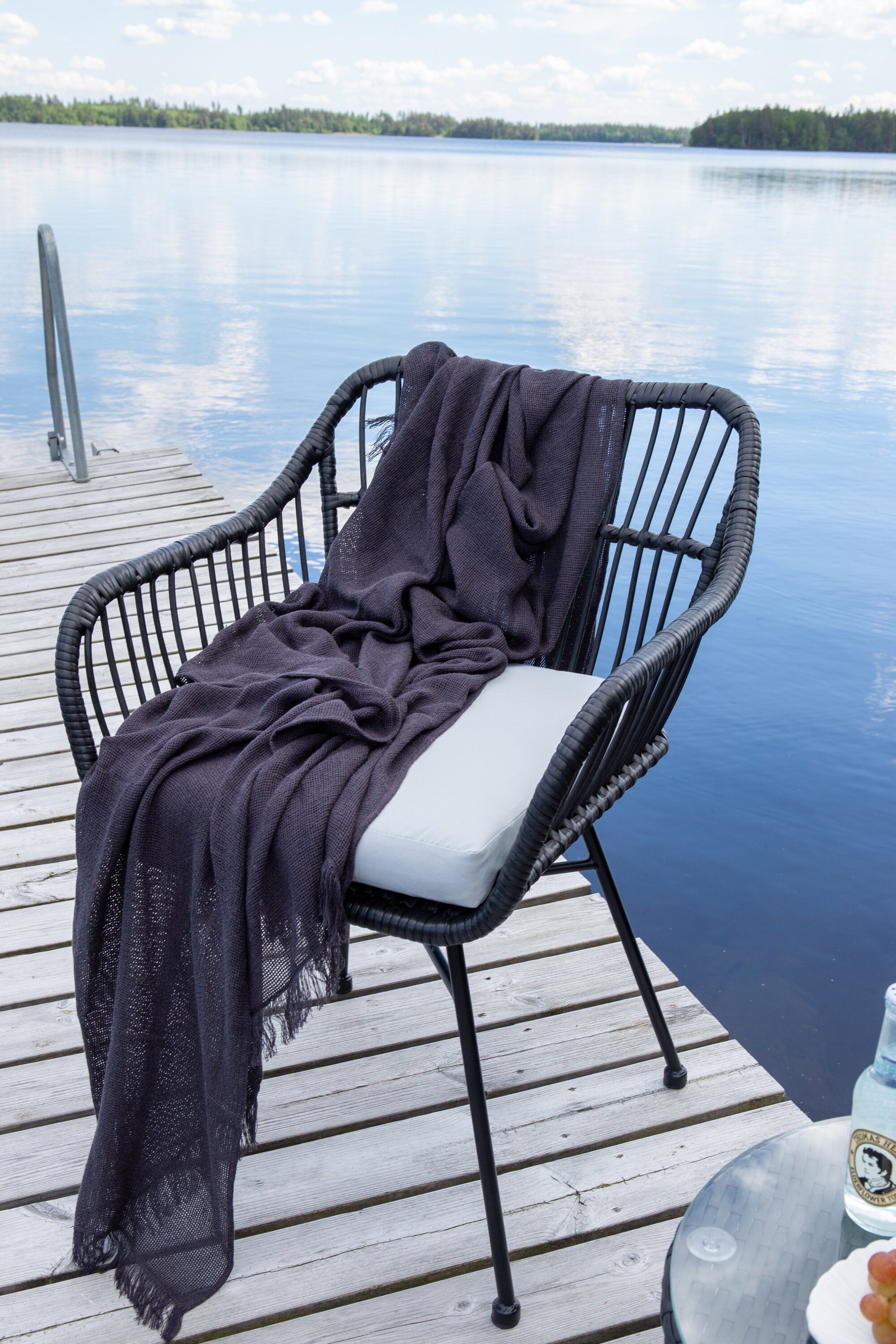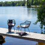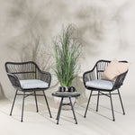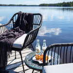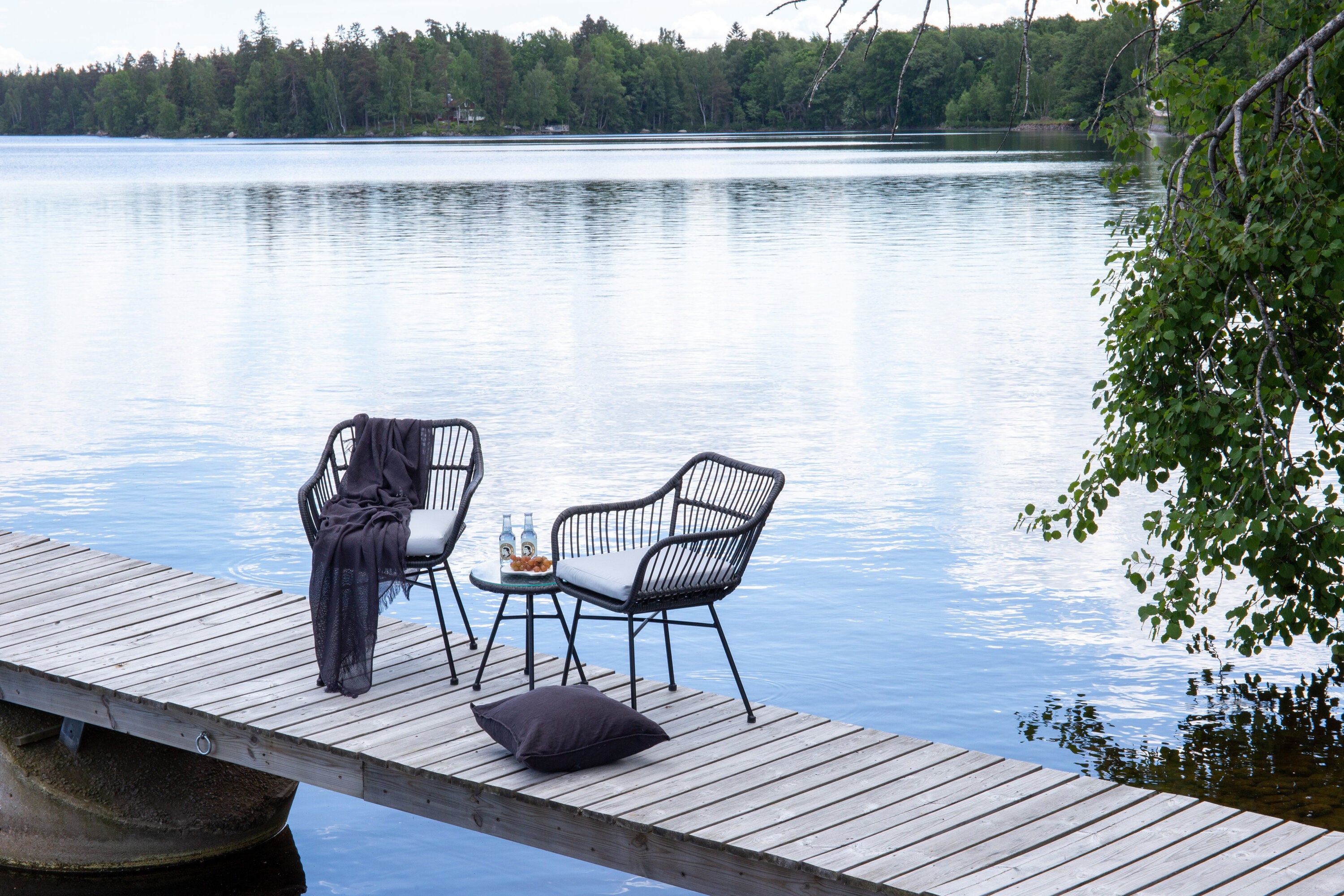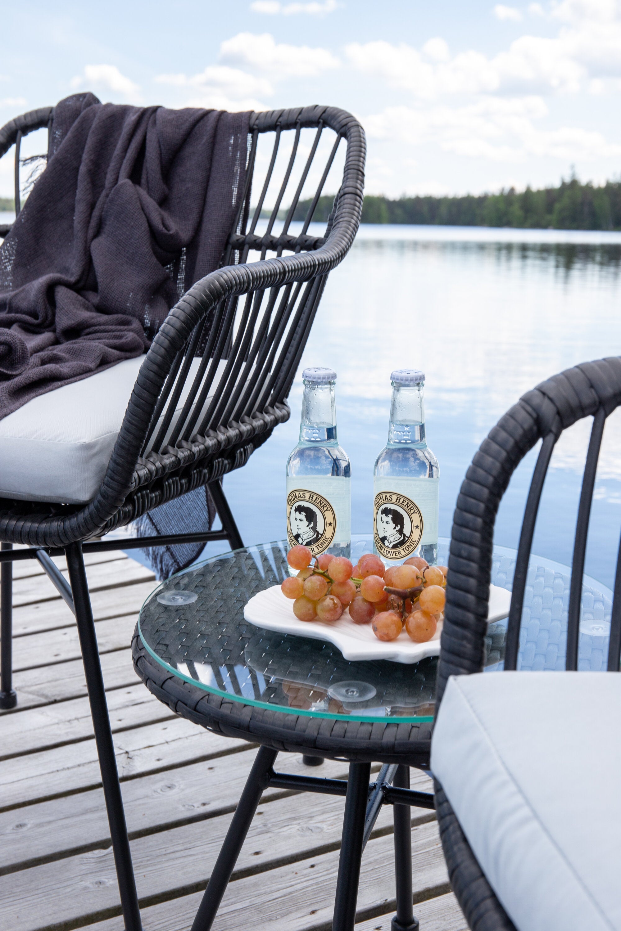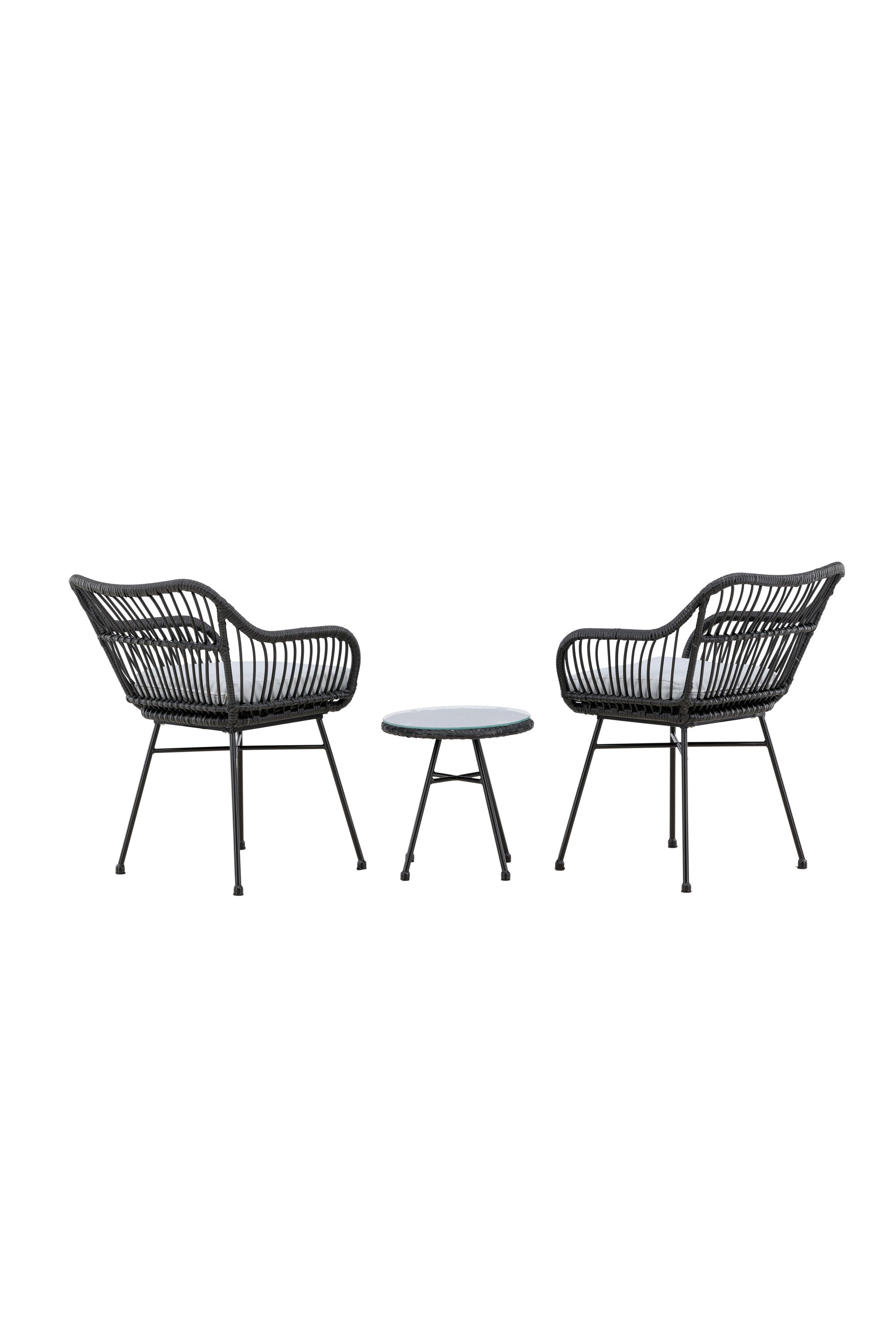 Viga, náš stylový balkonový set v moderním designu, který se perfektně hodí na zasklenou terasu. Sestava nábytku se skládá ze dvou rámových křesel s černým rámovým stojanem z práškově lakovaného kovu, stejně jako opěradlo a sedák navržené ve stylovém hezkém vzoru černé přírodní královny. Včetně bílých polštářů a konferenčního stolku s detaily v černé přírodní královně a skleněné desky stolu. Vybavte si terasu balkónovým setem, který zaručeně prodlouží pozdní letní večery s blízkými!