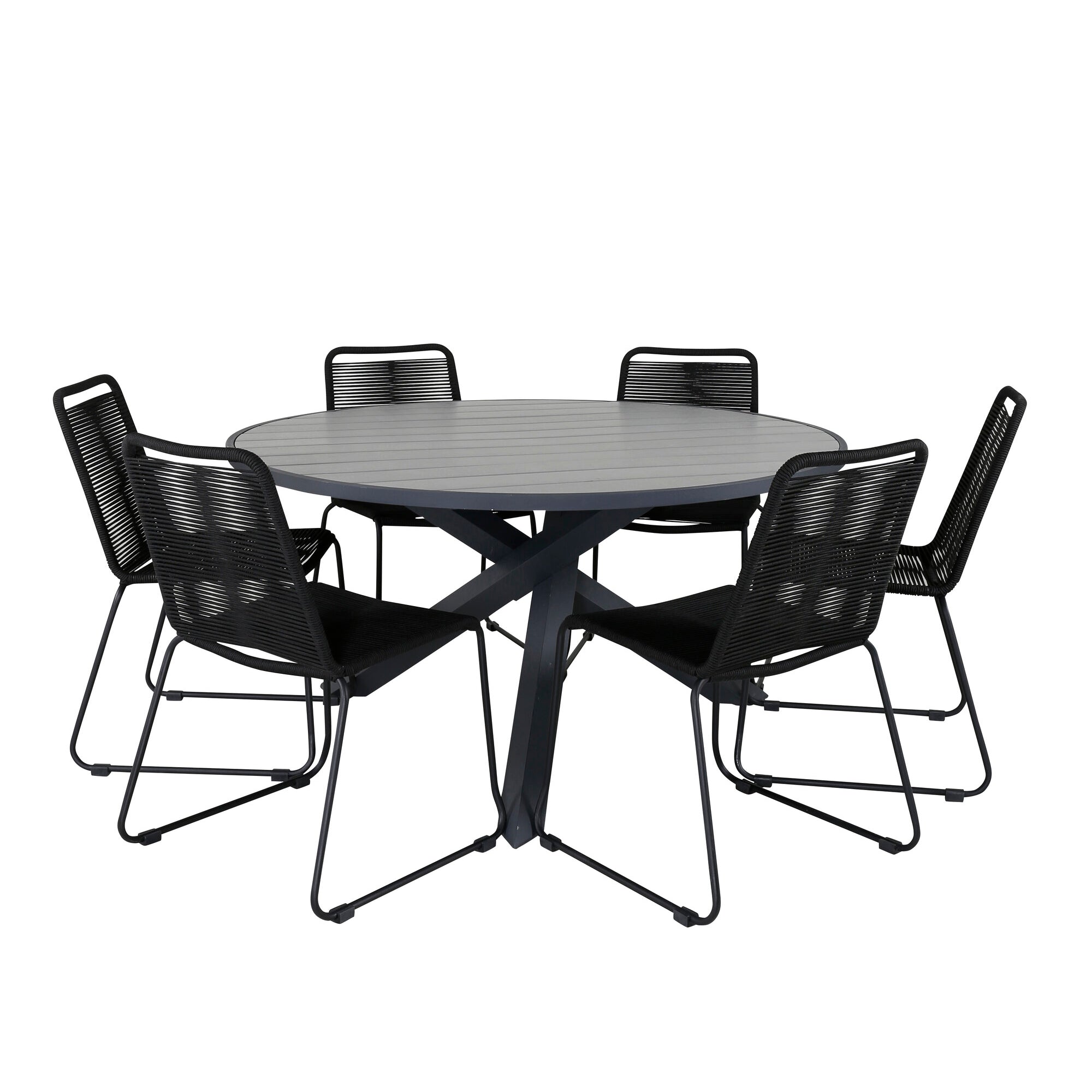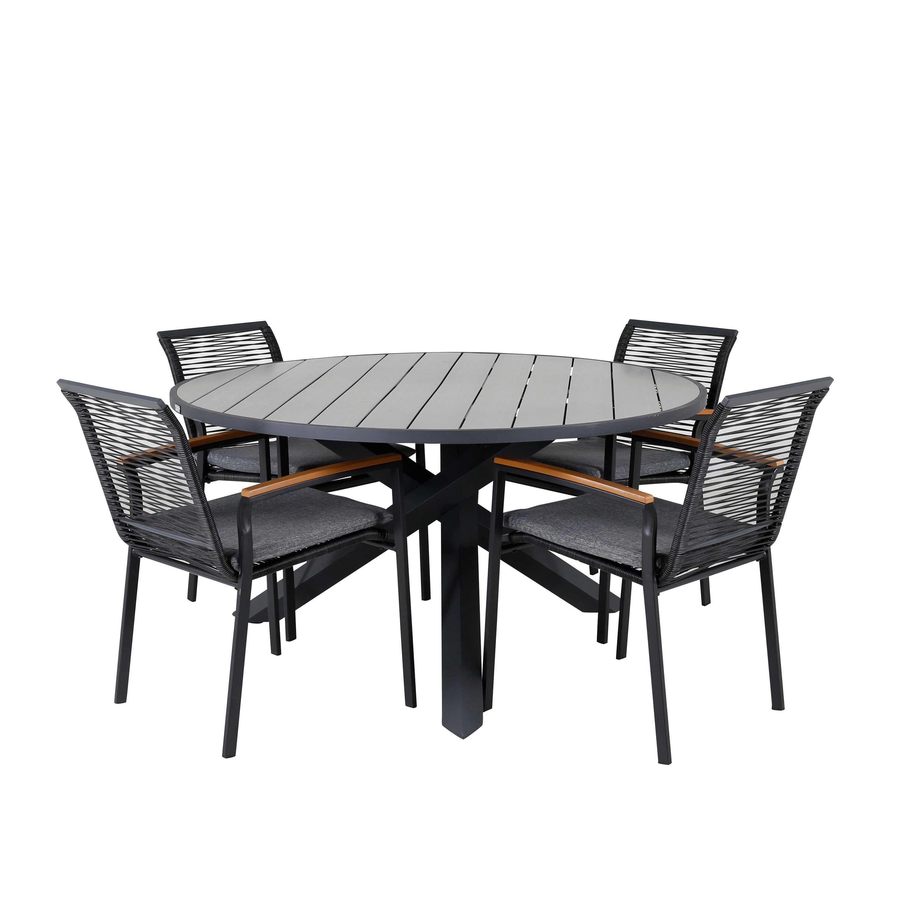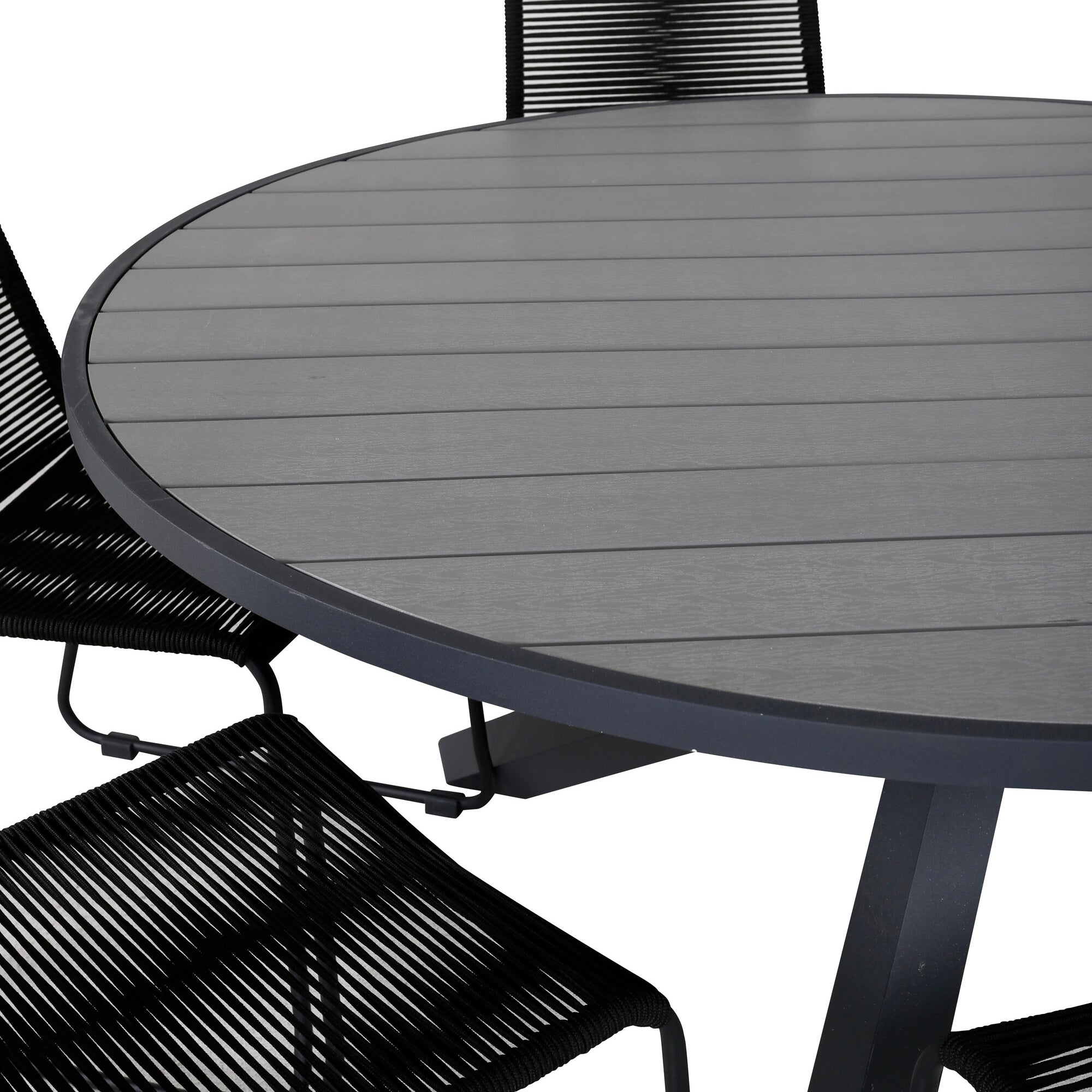 Parma - Stůl ø 140 - Black Alu / Grey Aintwood+Lindos Stohovací židle - Black Alu / Black Rope_6