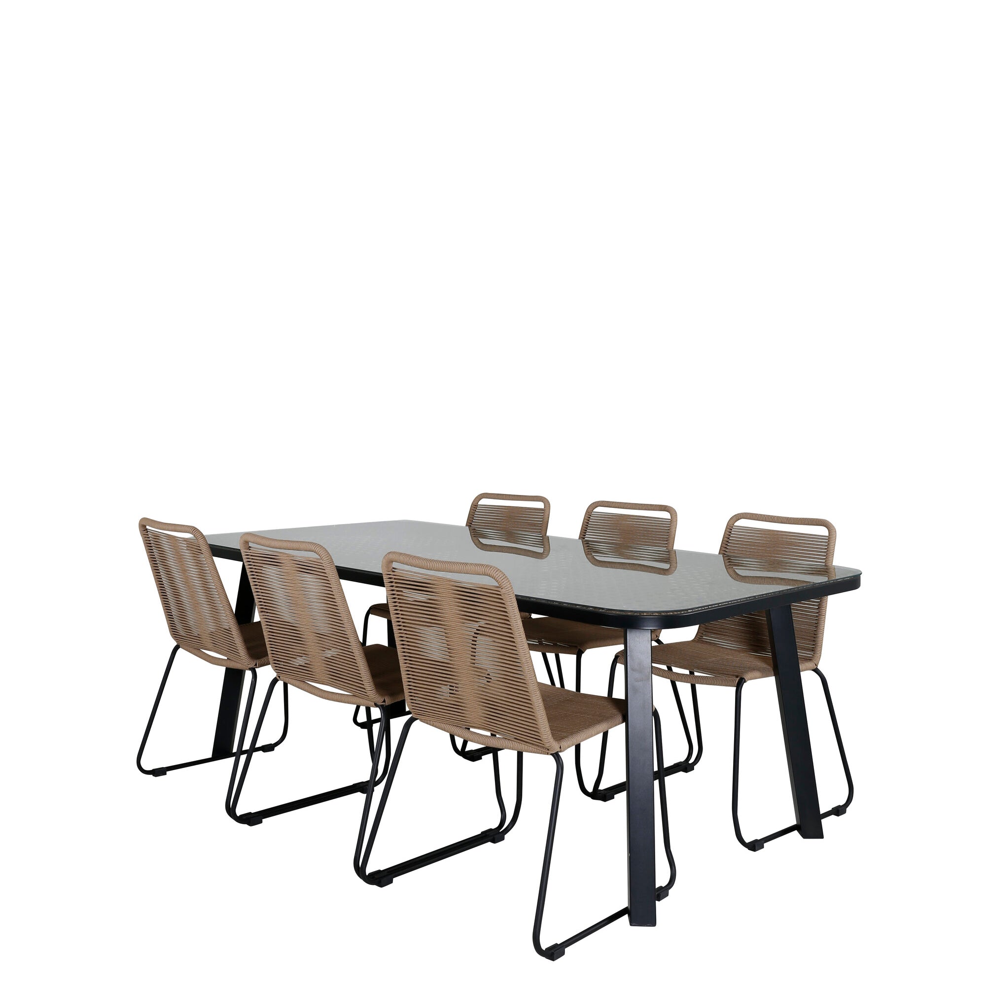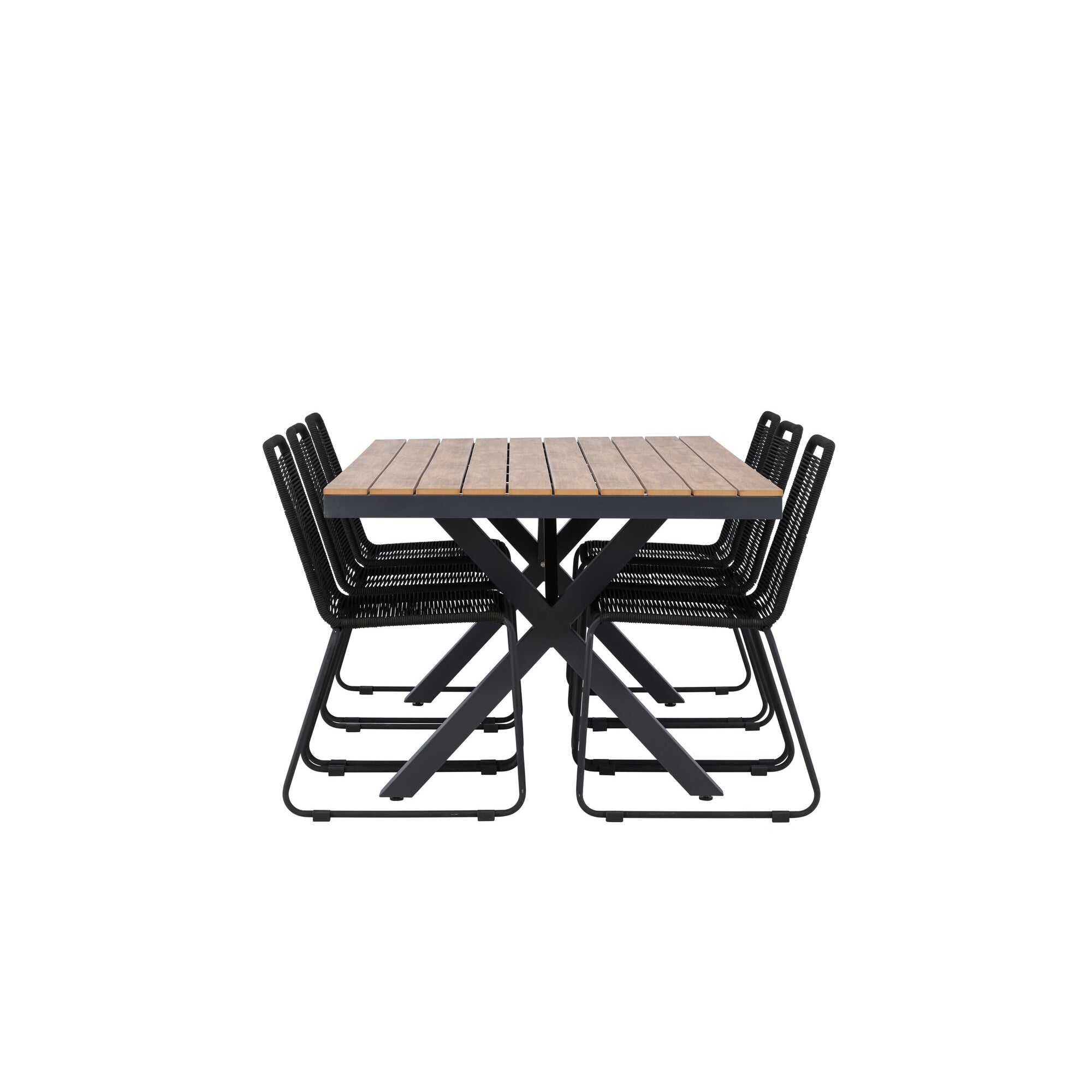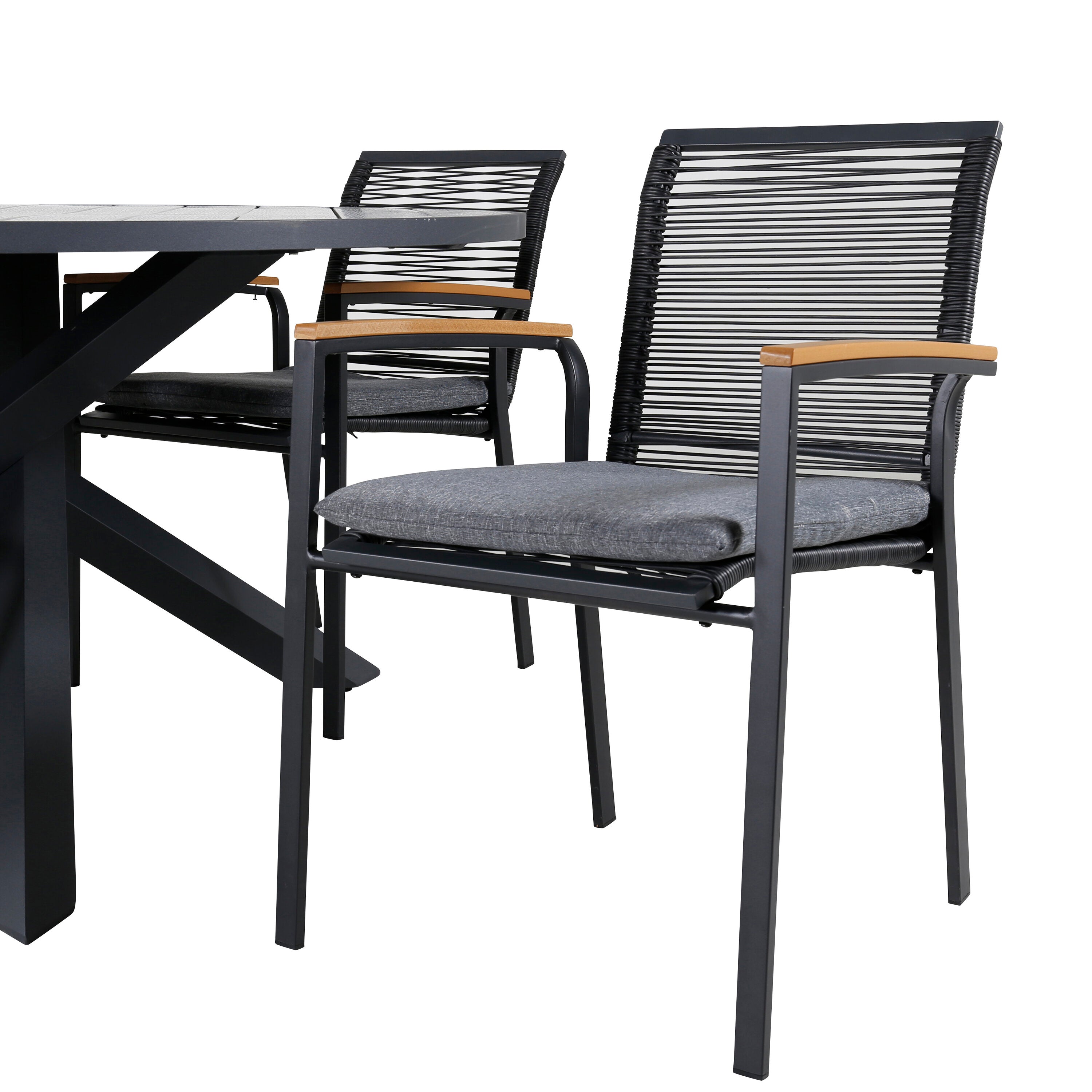 Albany Table - 224/324 - Black/Grey+Lindos Stohovací křeslo - Black Alu / Black Rope_6