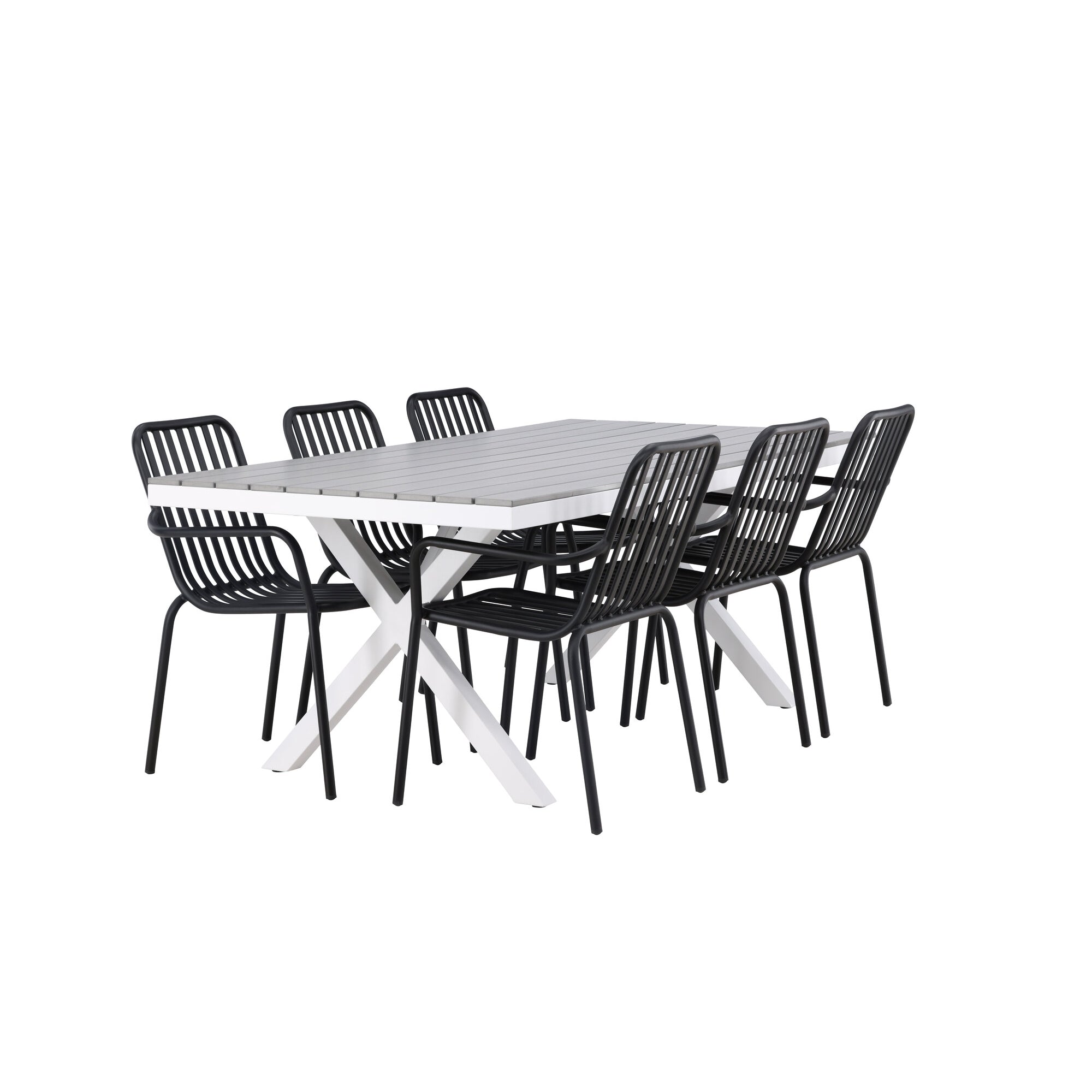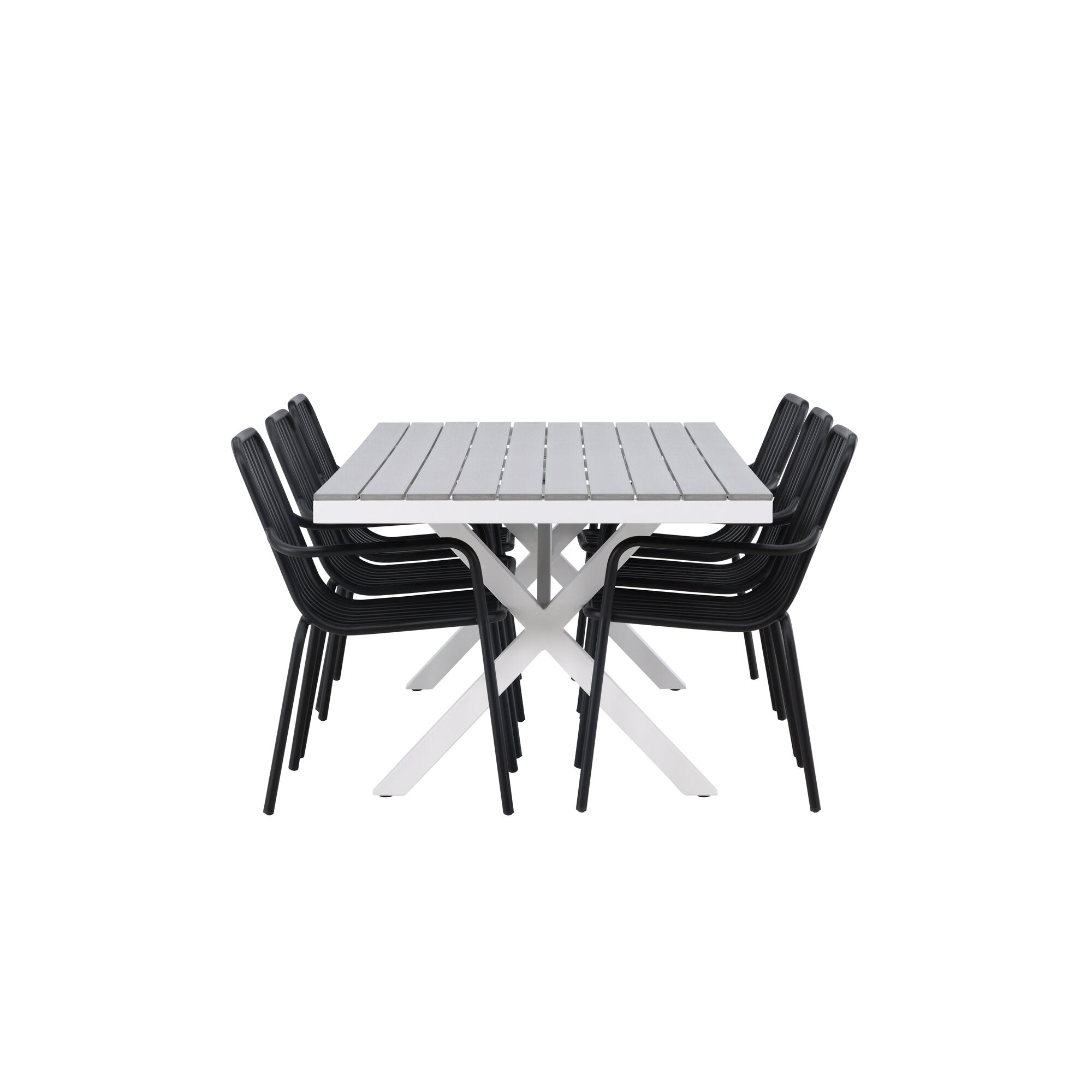 Albany Bord - Vit Alu/grå aintwood - 224/324*100+Lindos Matstol - Svart / grå_6