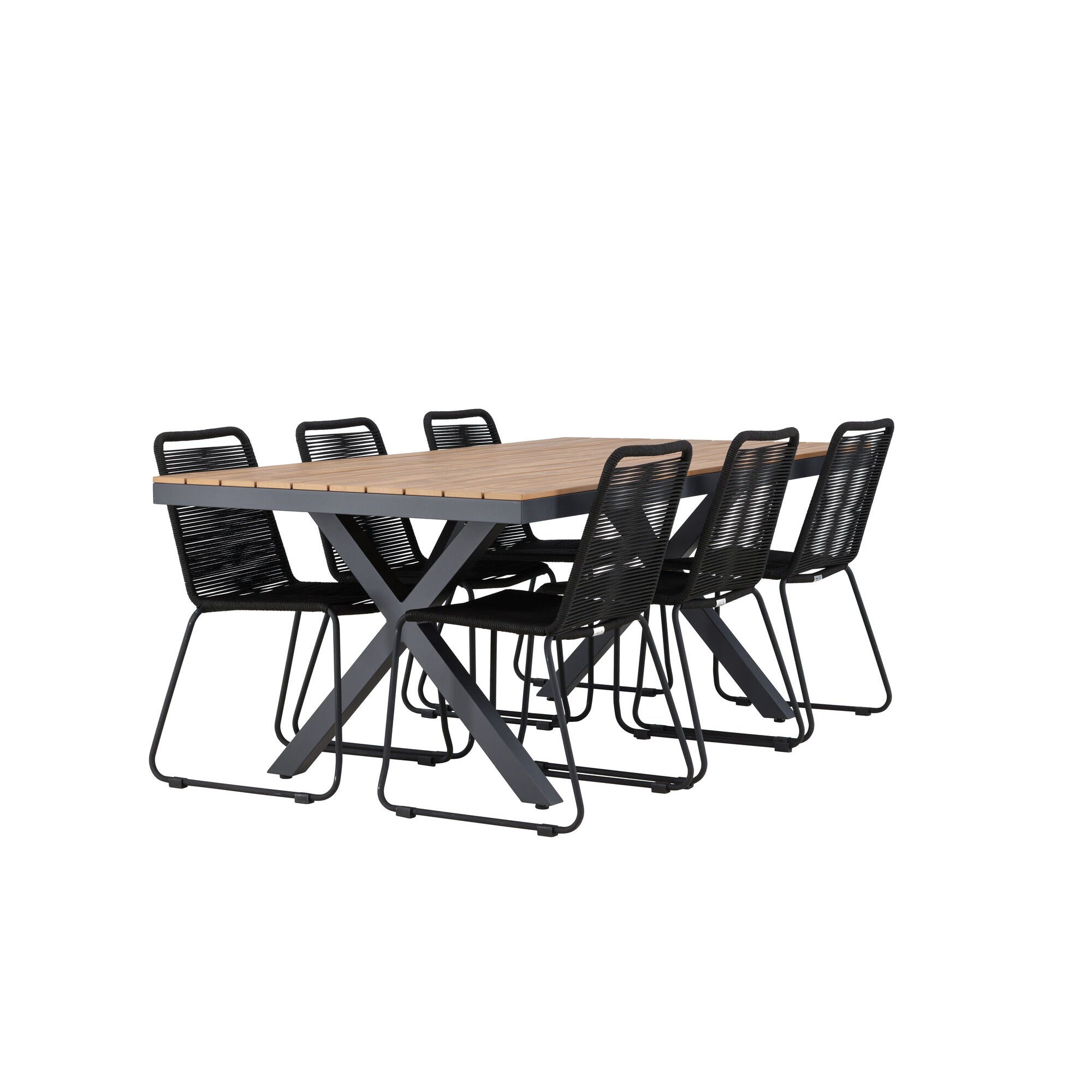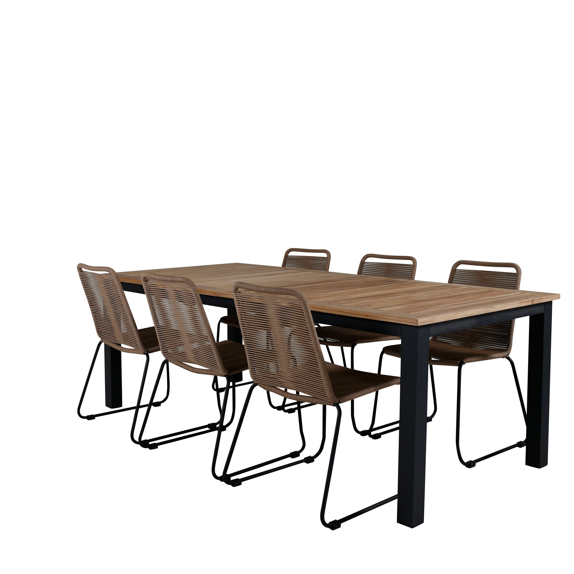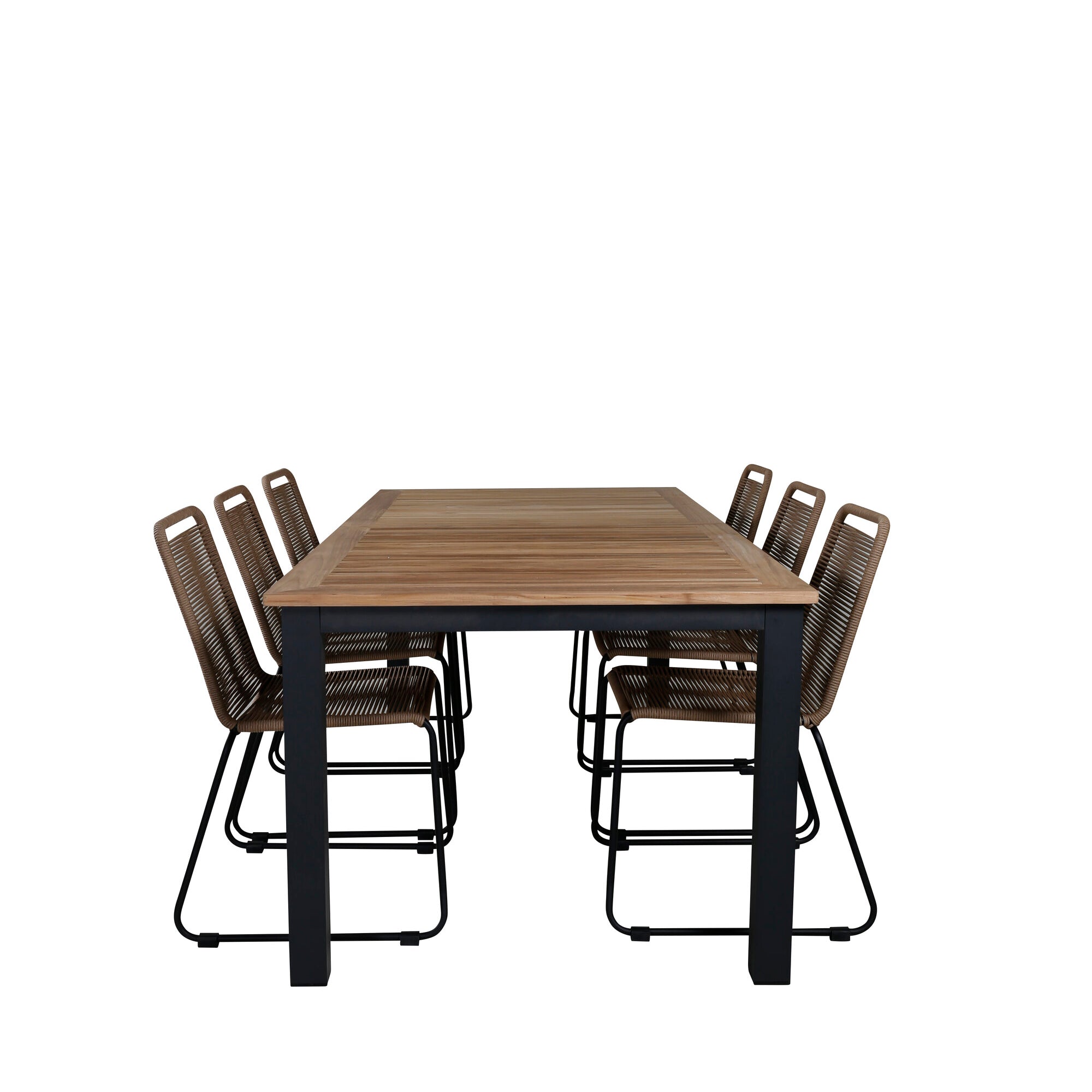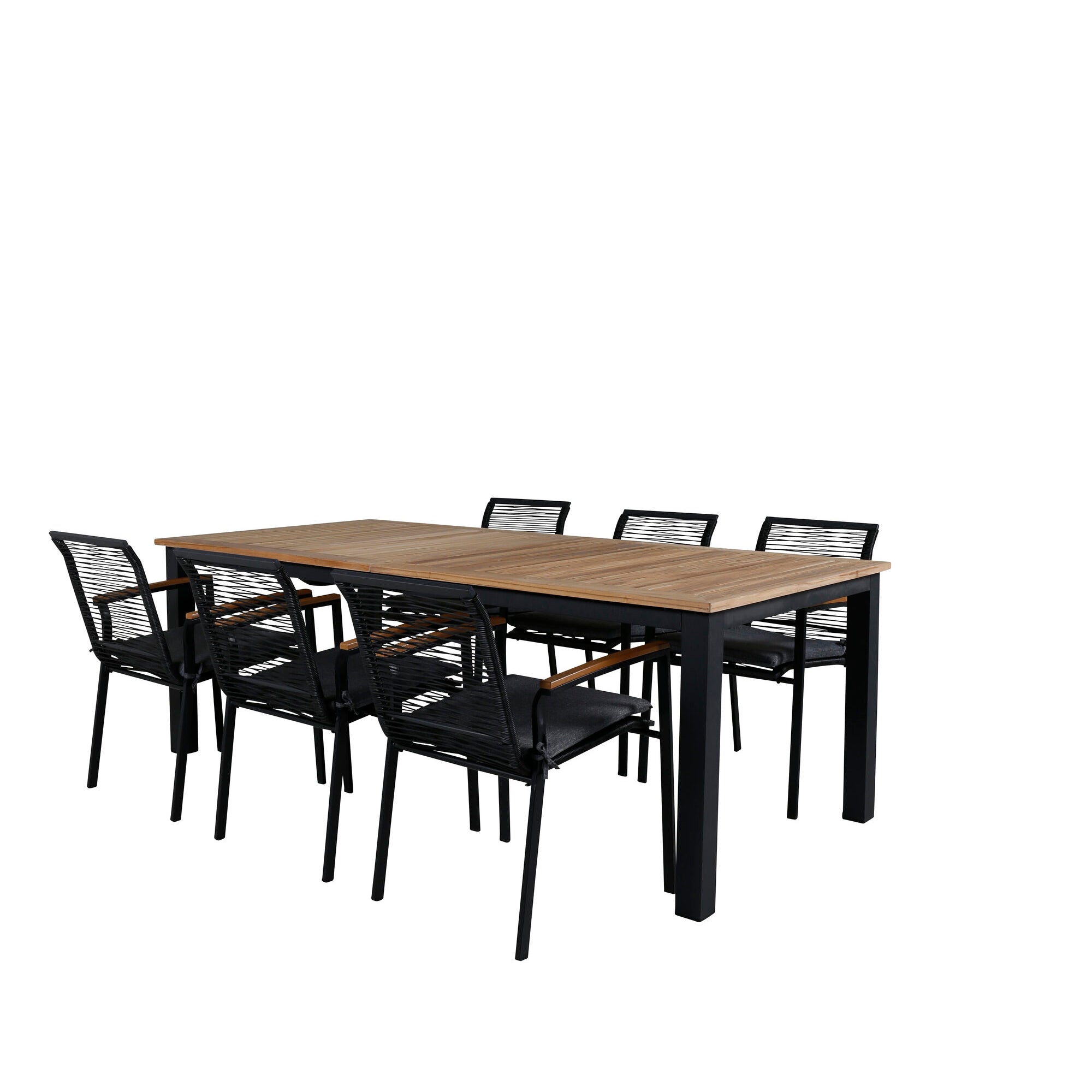 Panama - Stůl - 224/324*100 - svart Alu/Teak+Lindos Stohovací židle - Black Alu / Latte Rope_6
