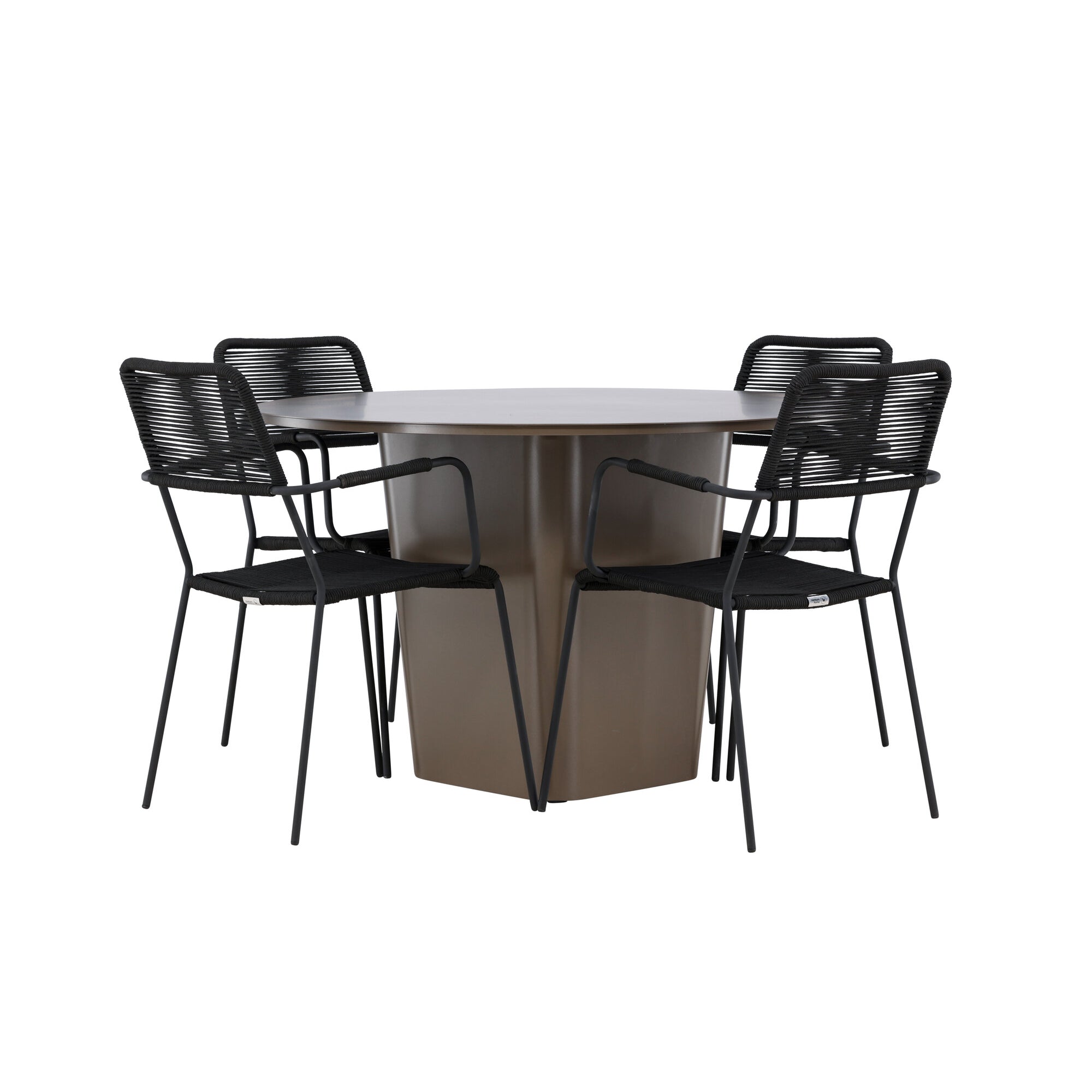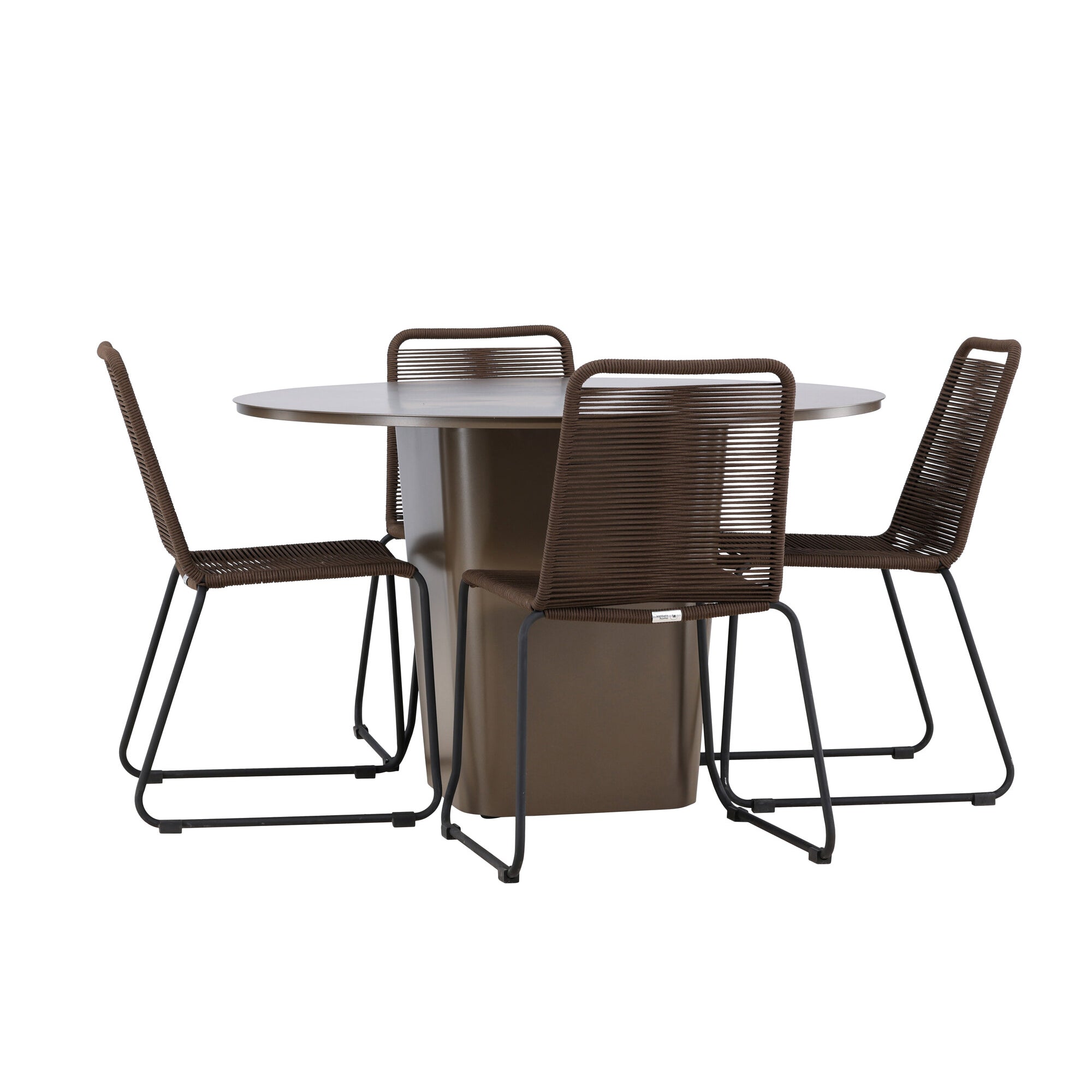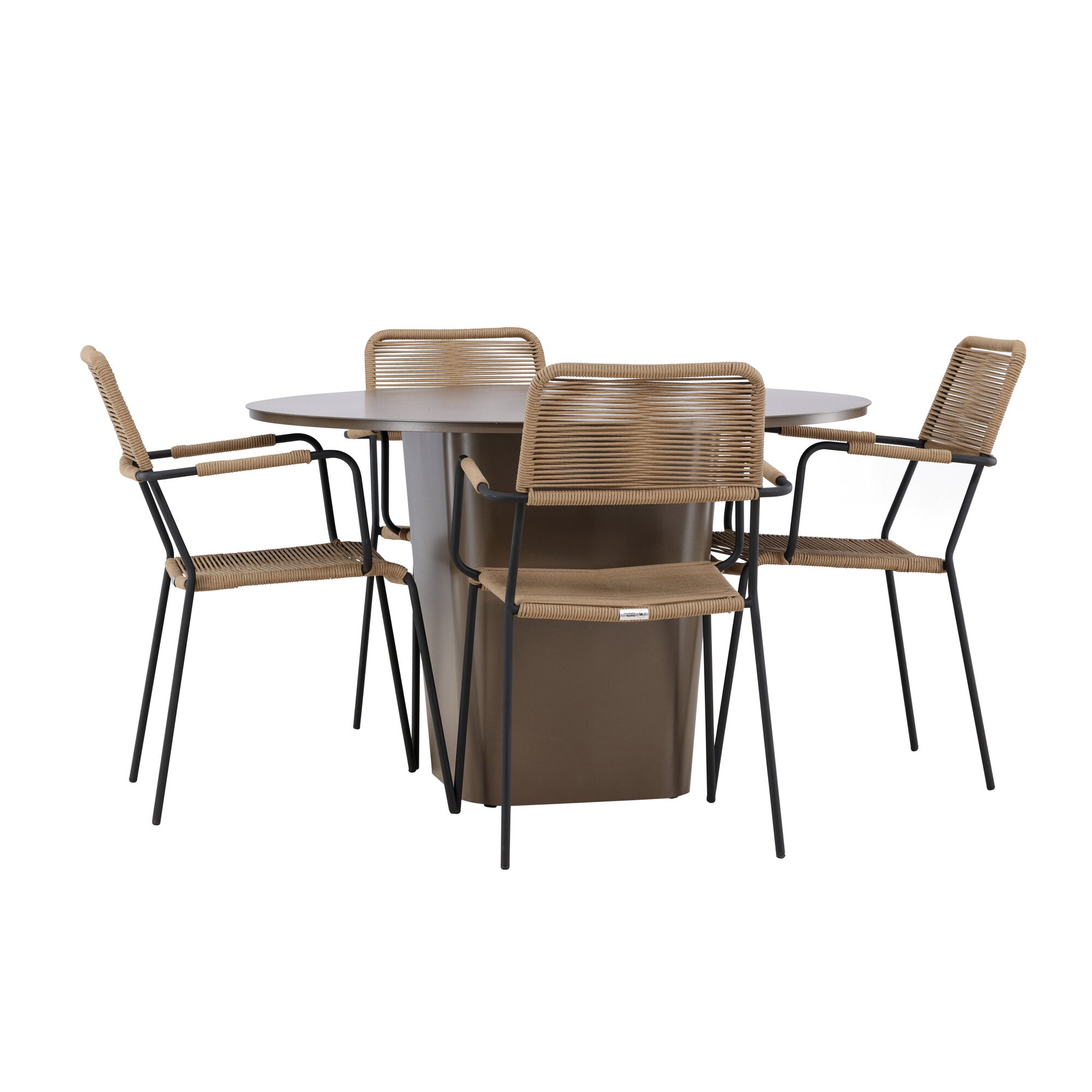 Jídelní stůl Santa Fe ø120 - Pečené +Lindos Křeslo - Černý Alu / Černý provaz _4