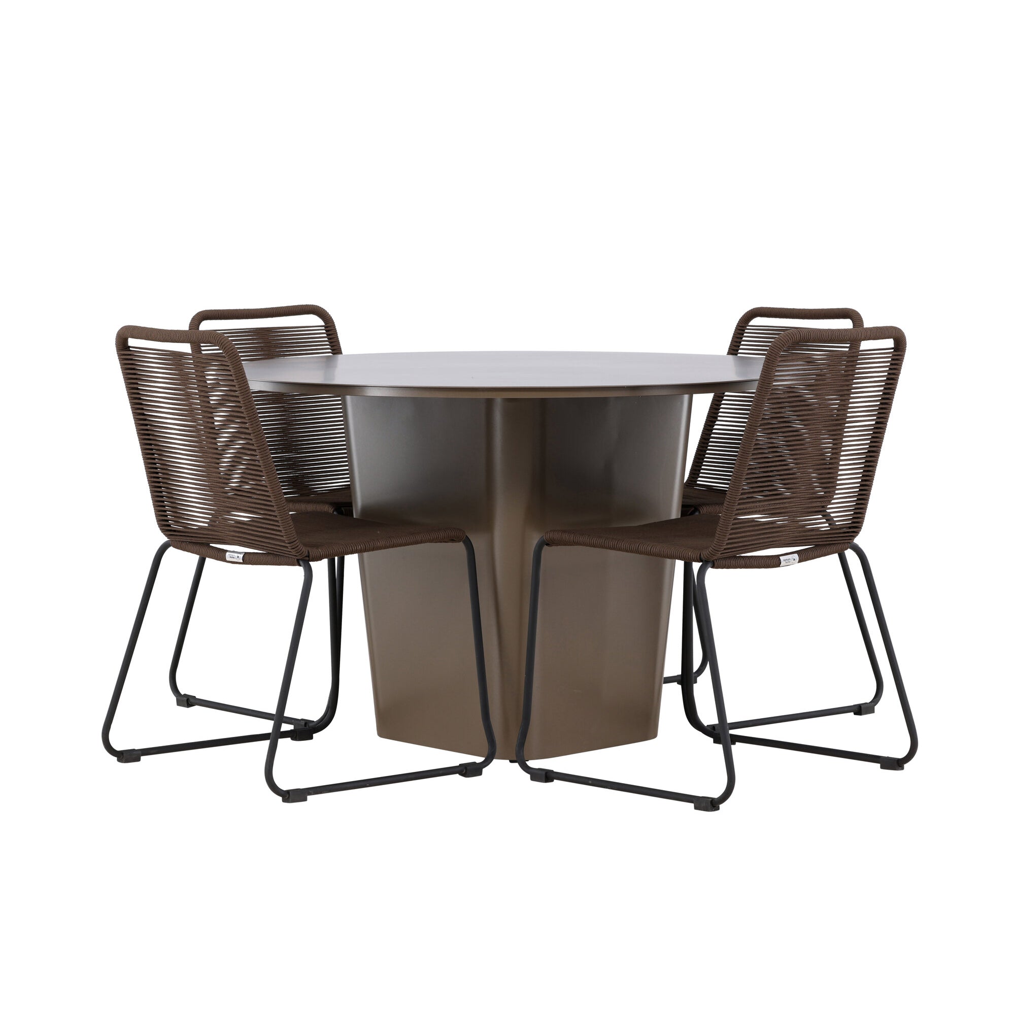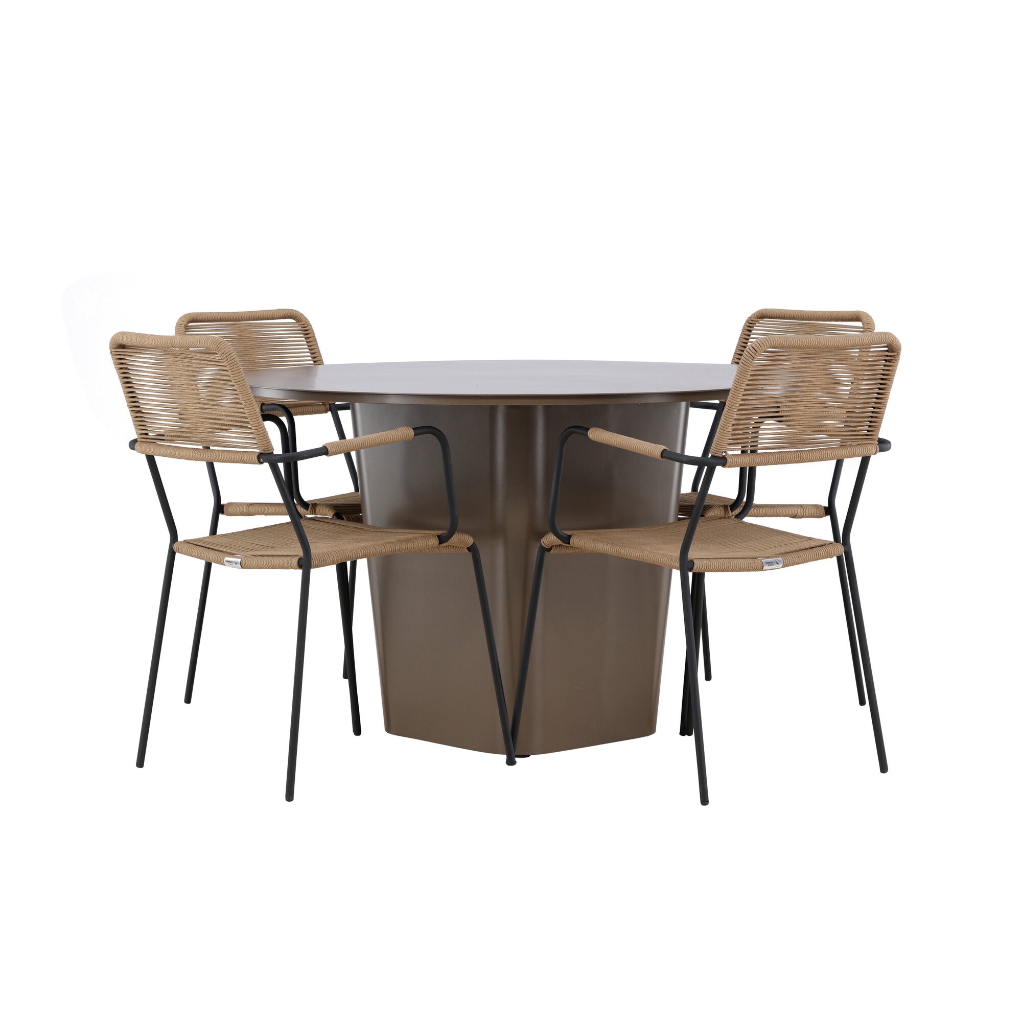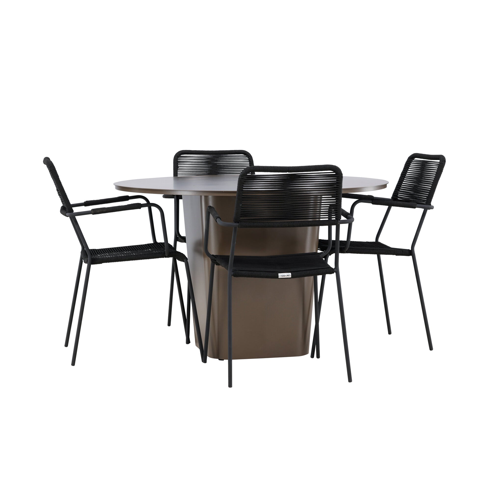 Jídelní stůl Santa Fe ø120 - Pečené +Lindos Křeslo - Černý Alu / Černý provaz _4