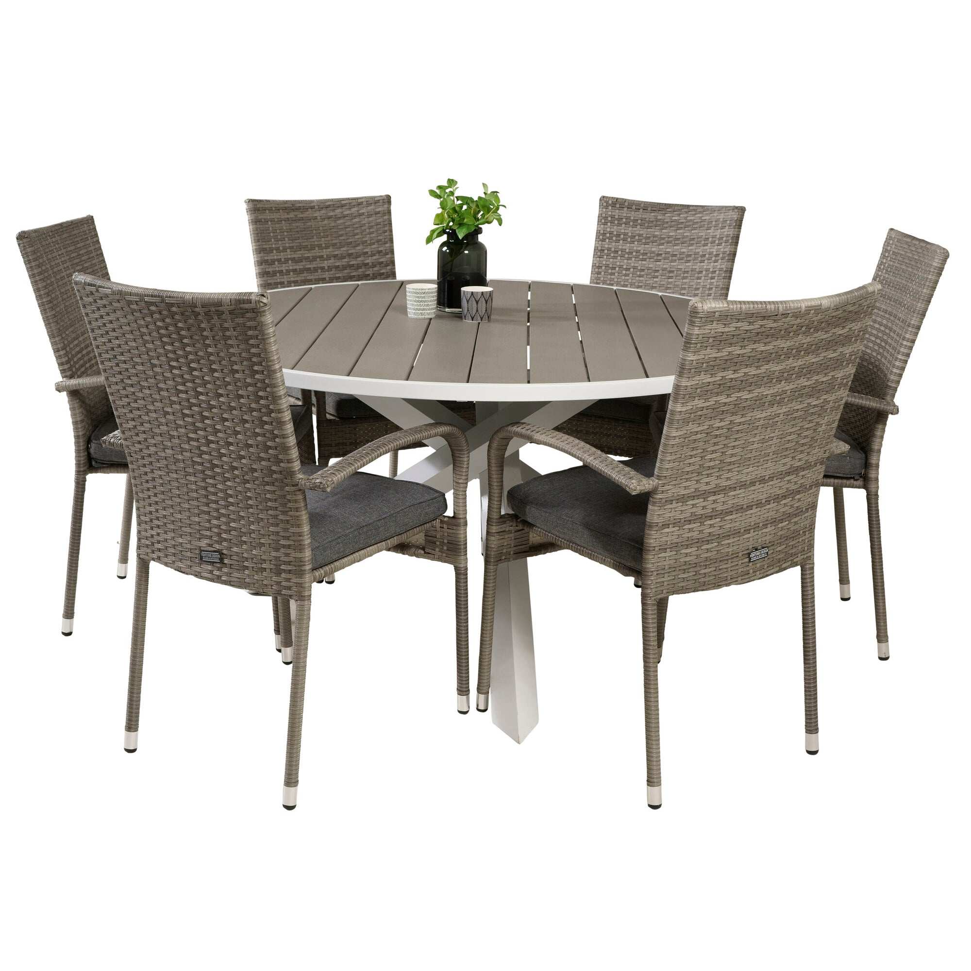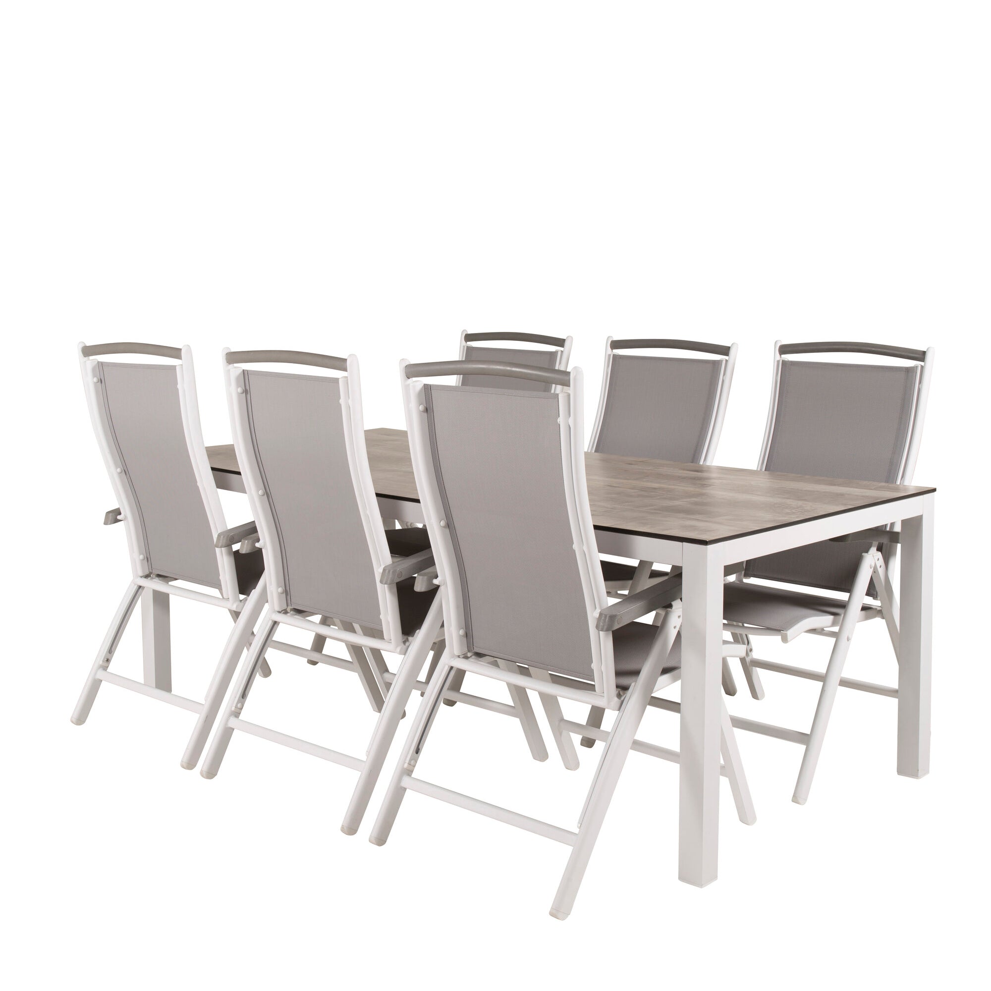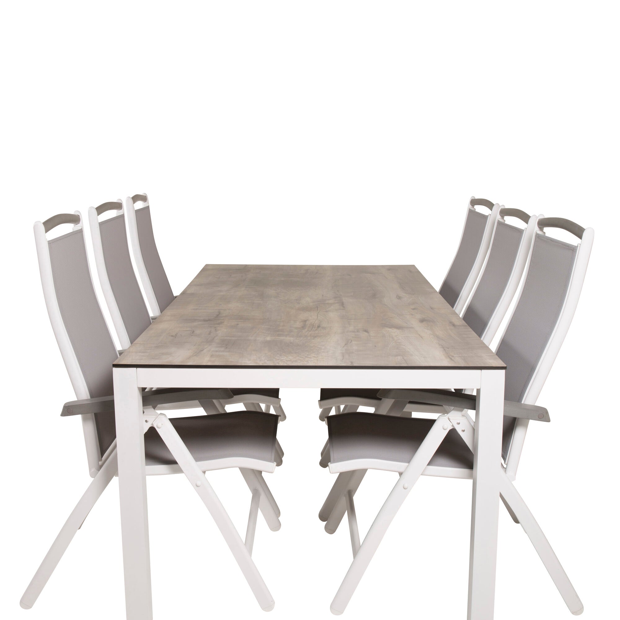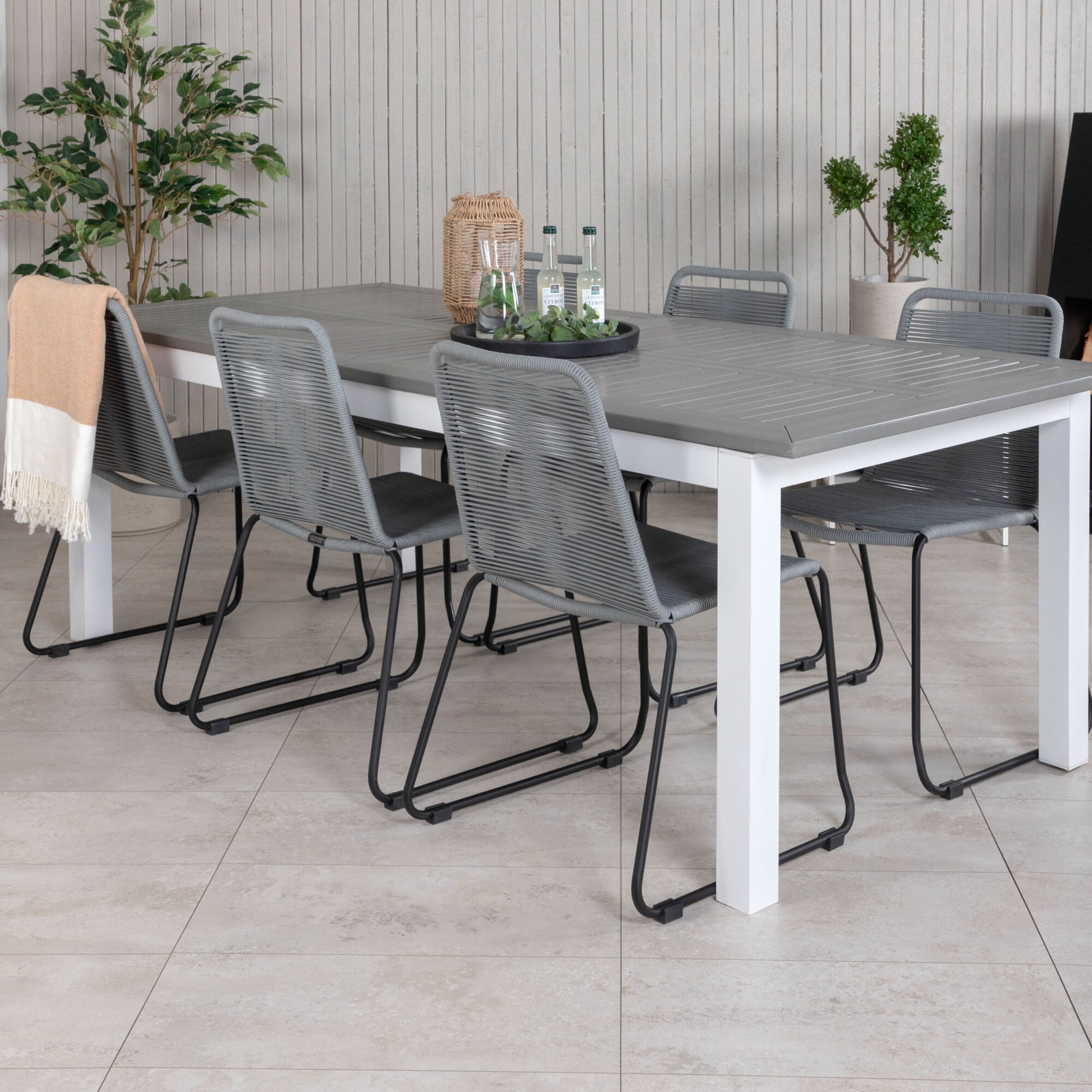 Albany Bord - Vit Alu/grå aintwood - 224/324*100+Albany 5:pos Stol - Vit Alu/grå