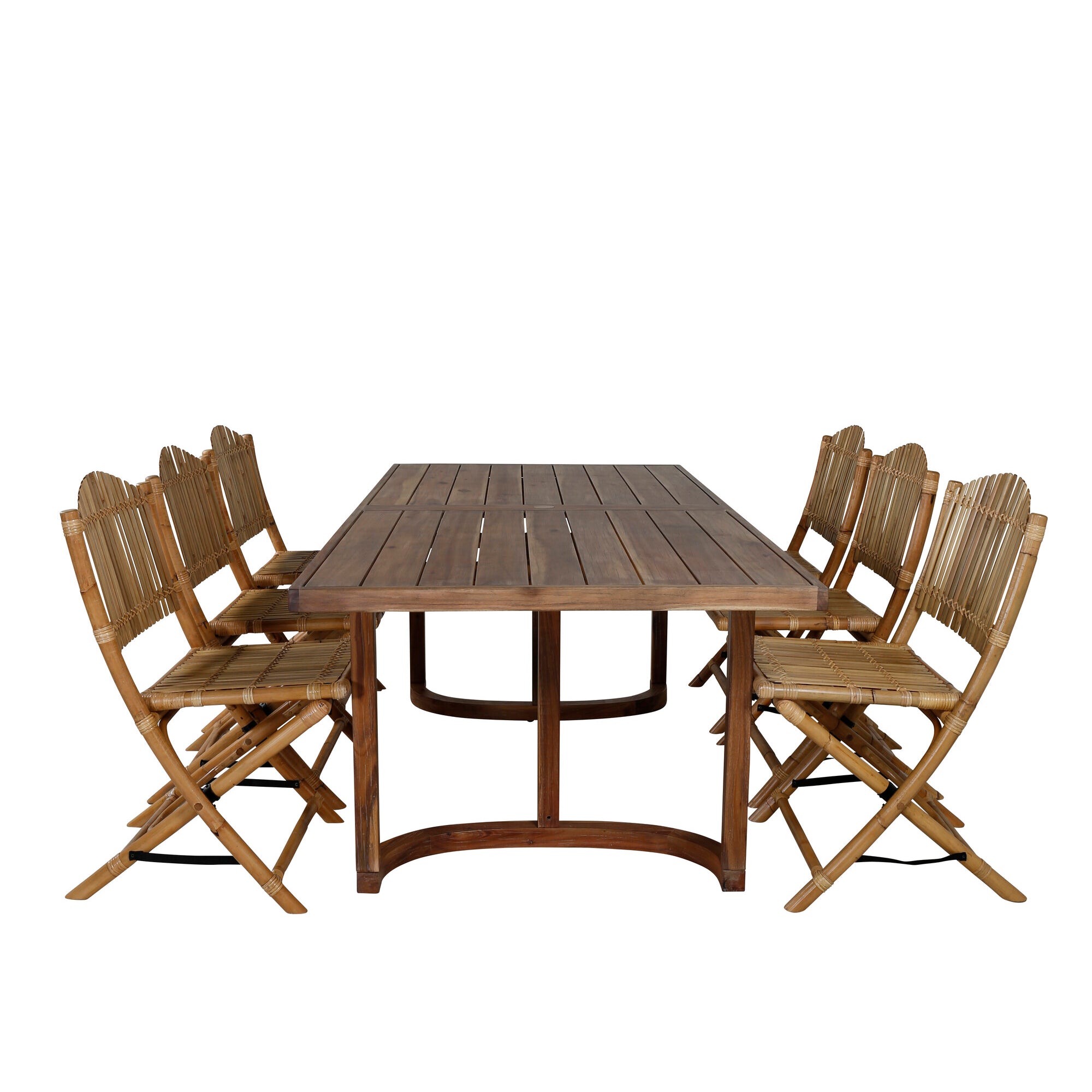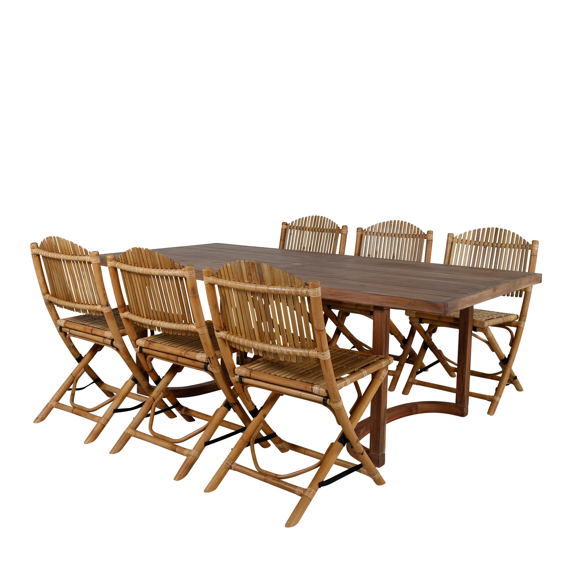Erica Jídelní stůl akáciová drátěná kartáčovaná 214*100+Cane Skládací jídelní židle - Bambus / šedá Cushion_6