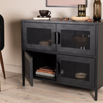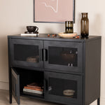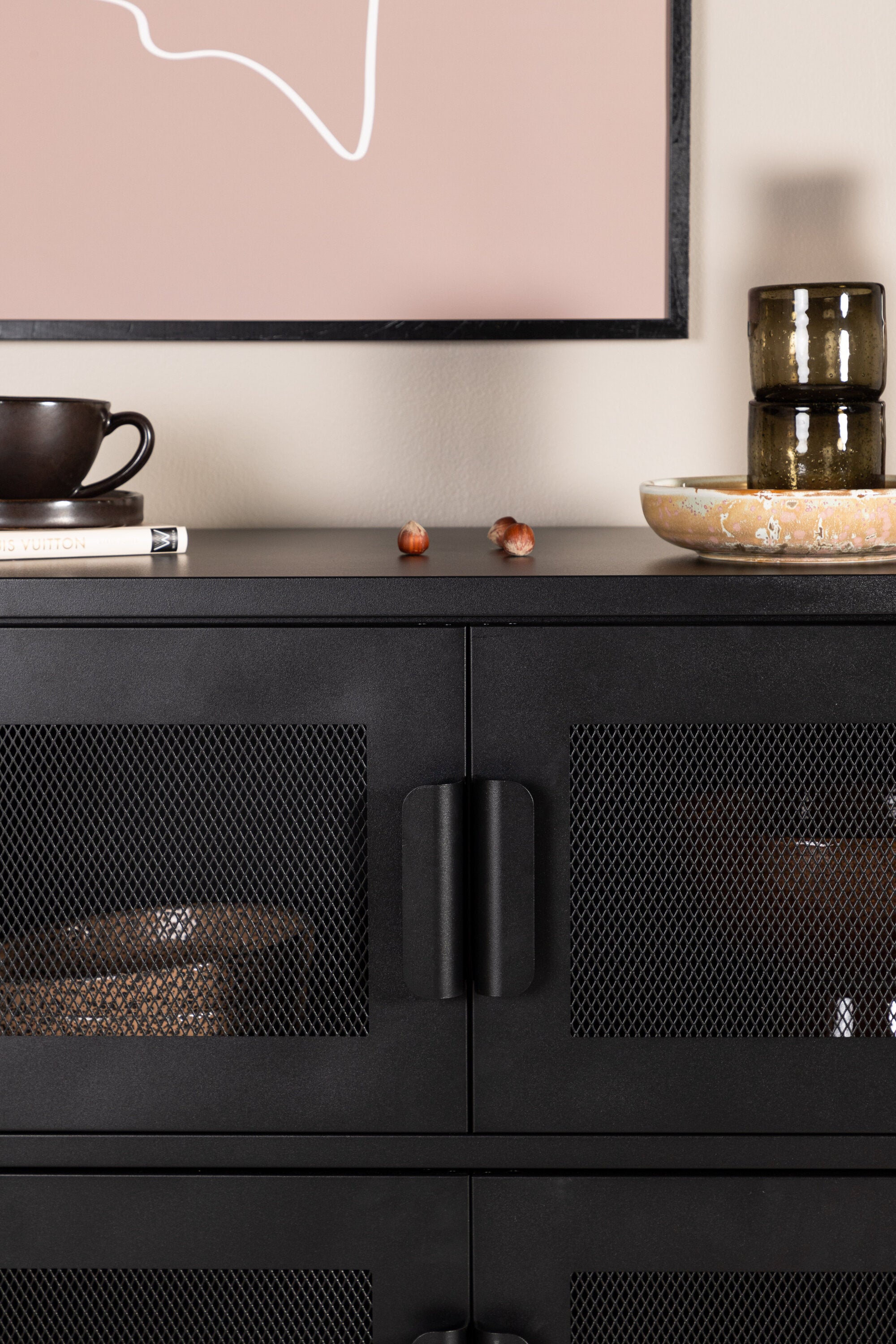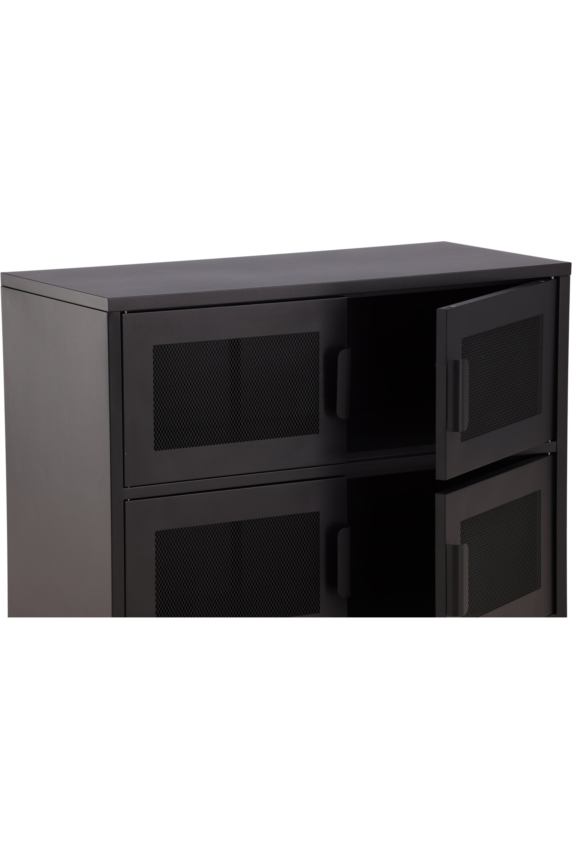 Zařiďte si svůj domov chytře a stylově s praktickou úložnou skříní z řady Nett v elegantním průmyslovém designu! Tato skříňka je vyrobena z bílé oceli se síťovanými dvířky, která jsou vkusným detailem. Skříňka má dvě police se čtyřmi dvířky, které vytvářejí dostatek prostoru pro poloskryté úložné prostory. Hloubka skříňky působí robustním dojmem a je ideální pro vykládání i na horní polici - ozdobte ji dekoracemi! Úzké, vysoké nožky, které skříňku zvedají, vytvářejí pocit vzdušnosti a také usnadňují práci vysavači.