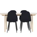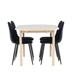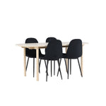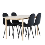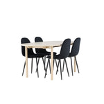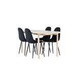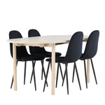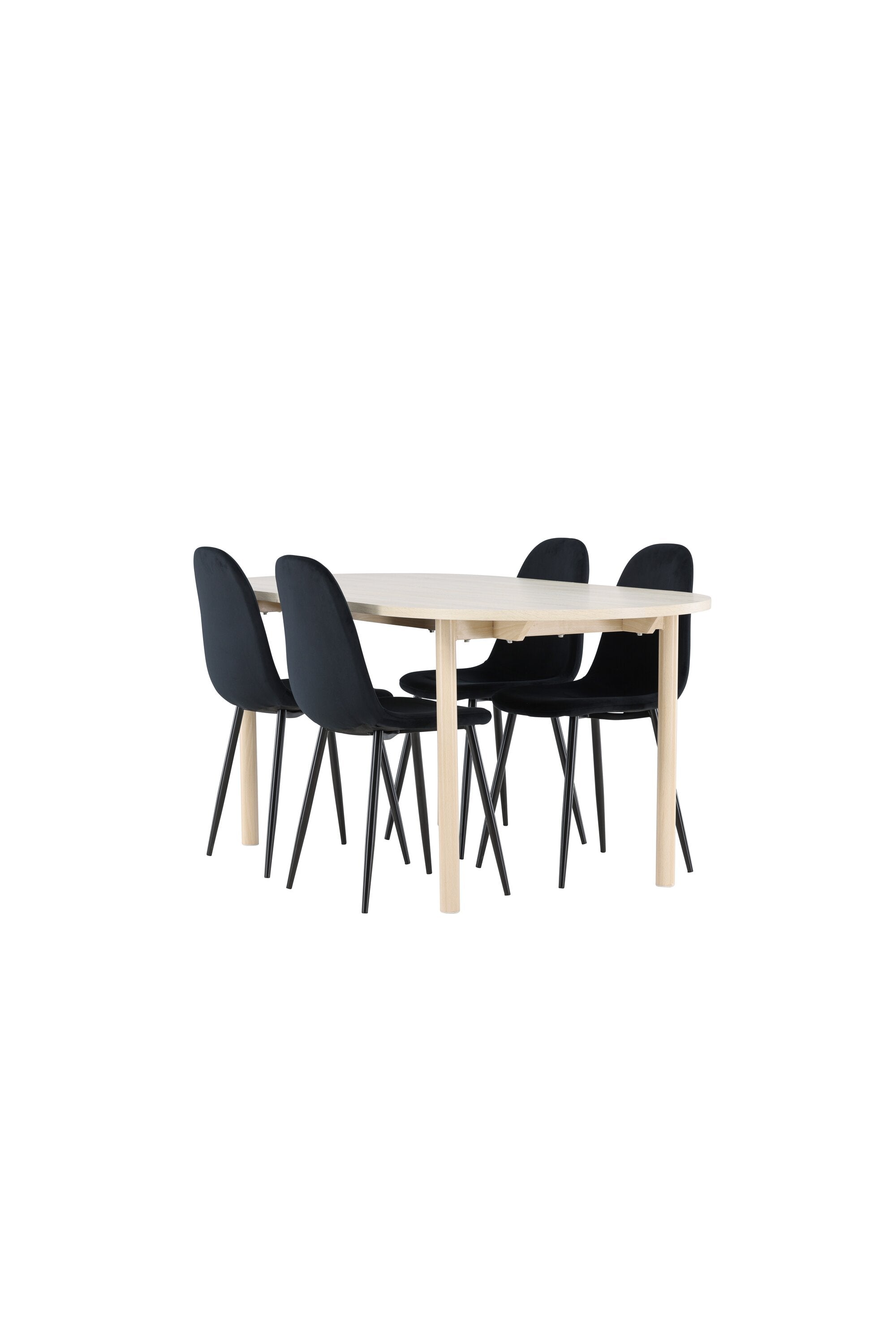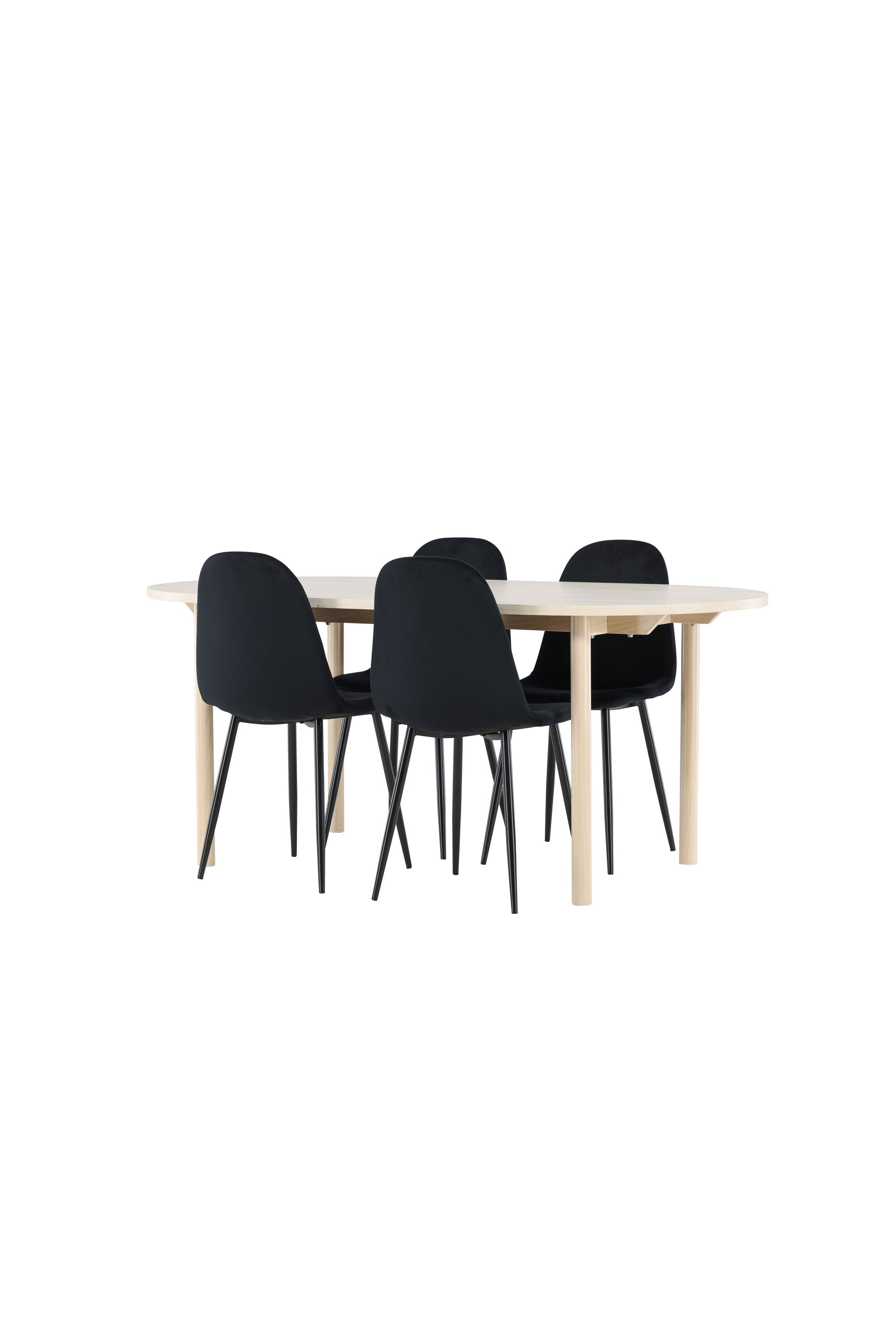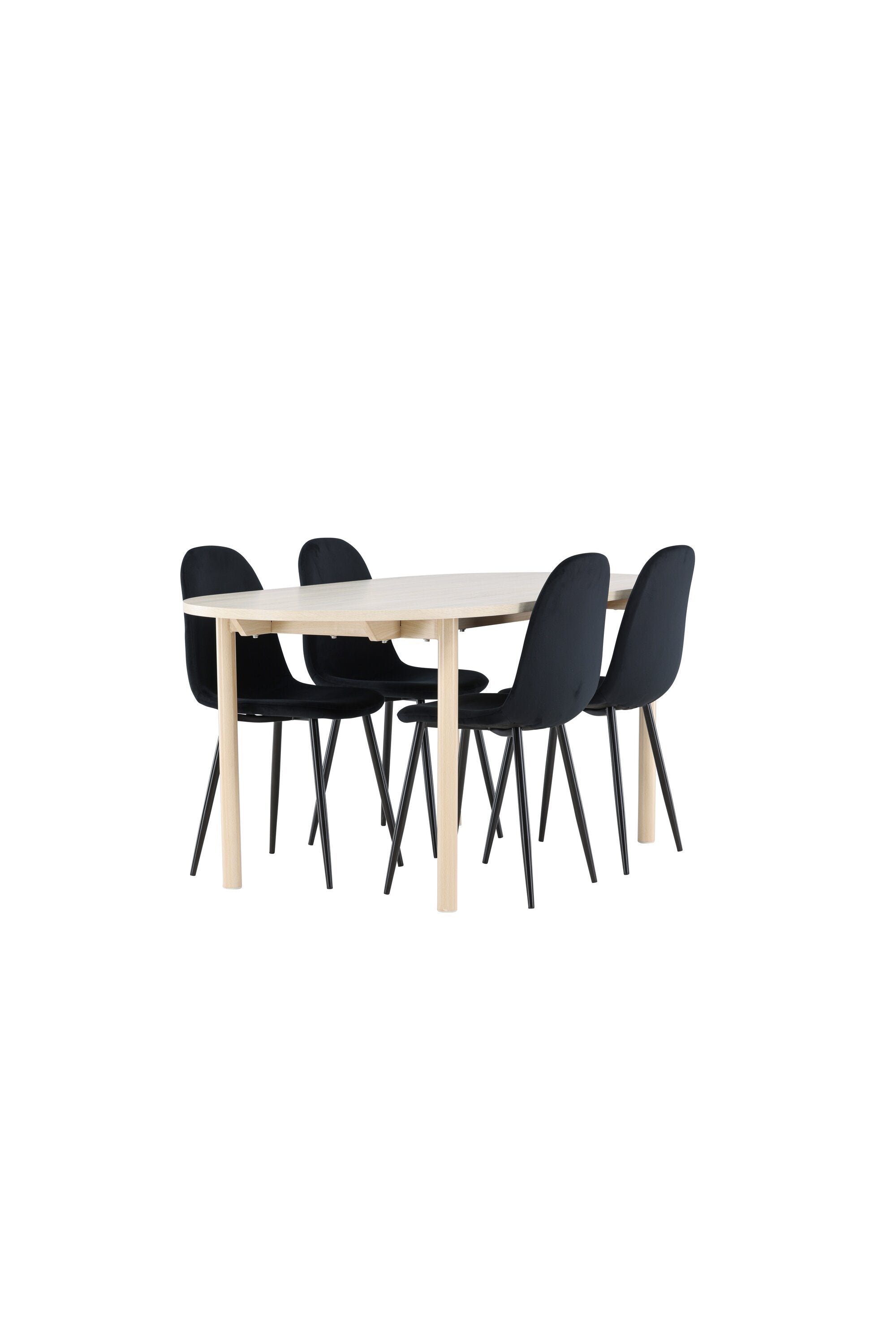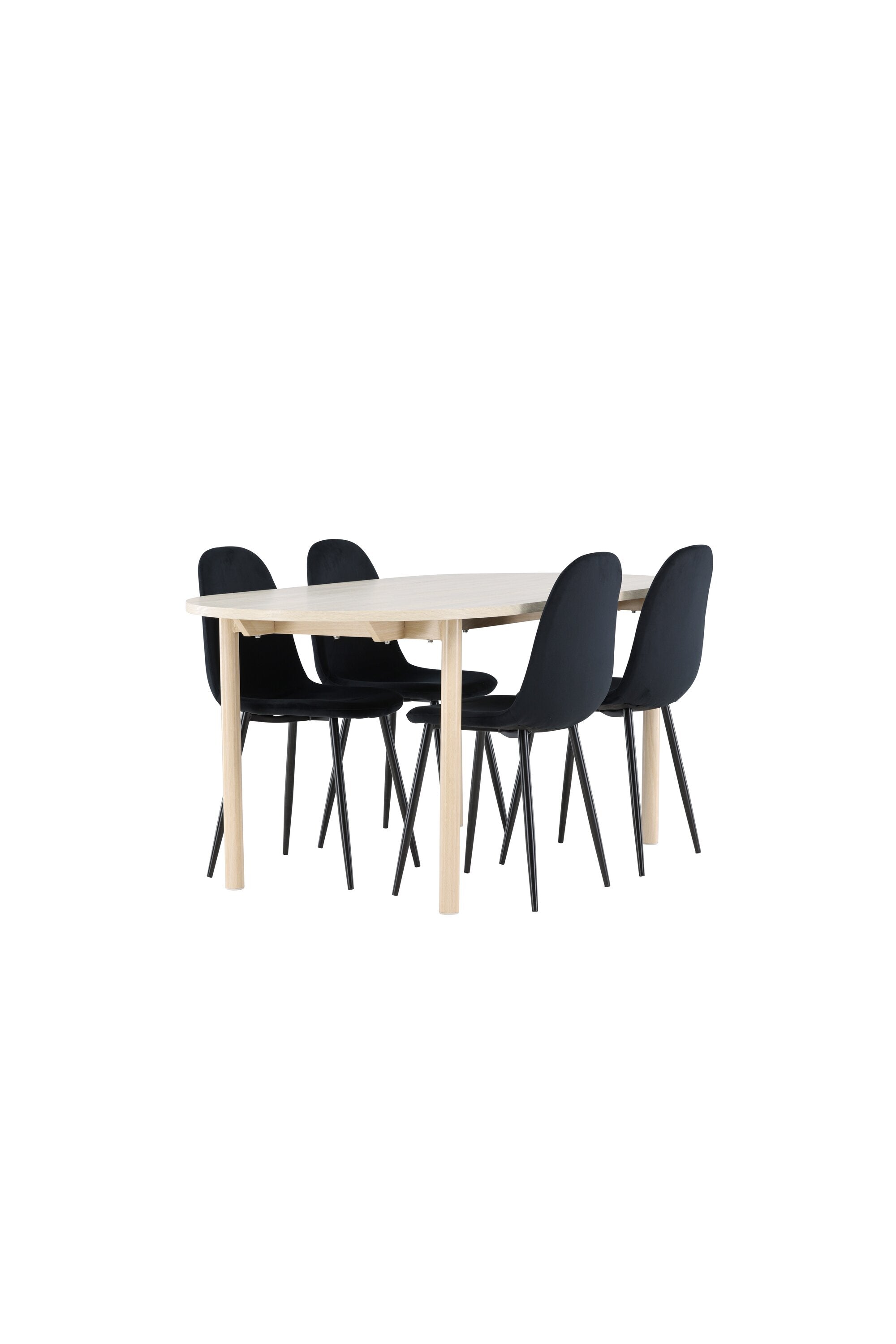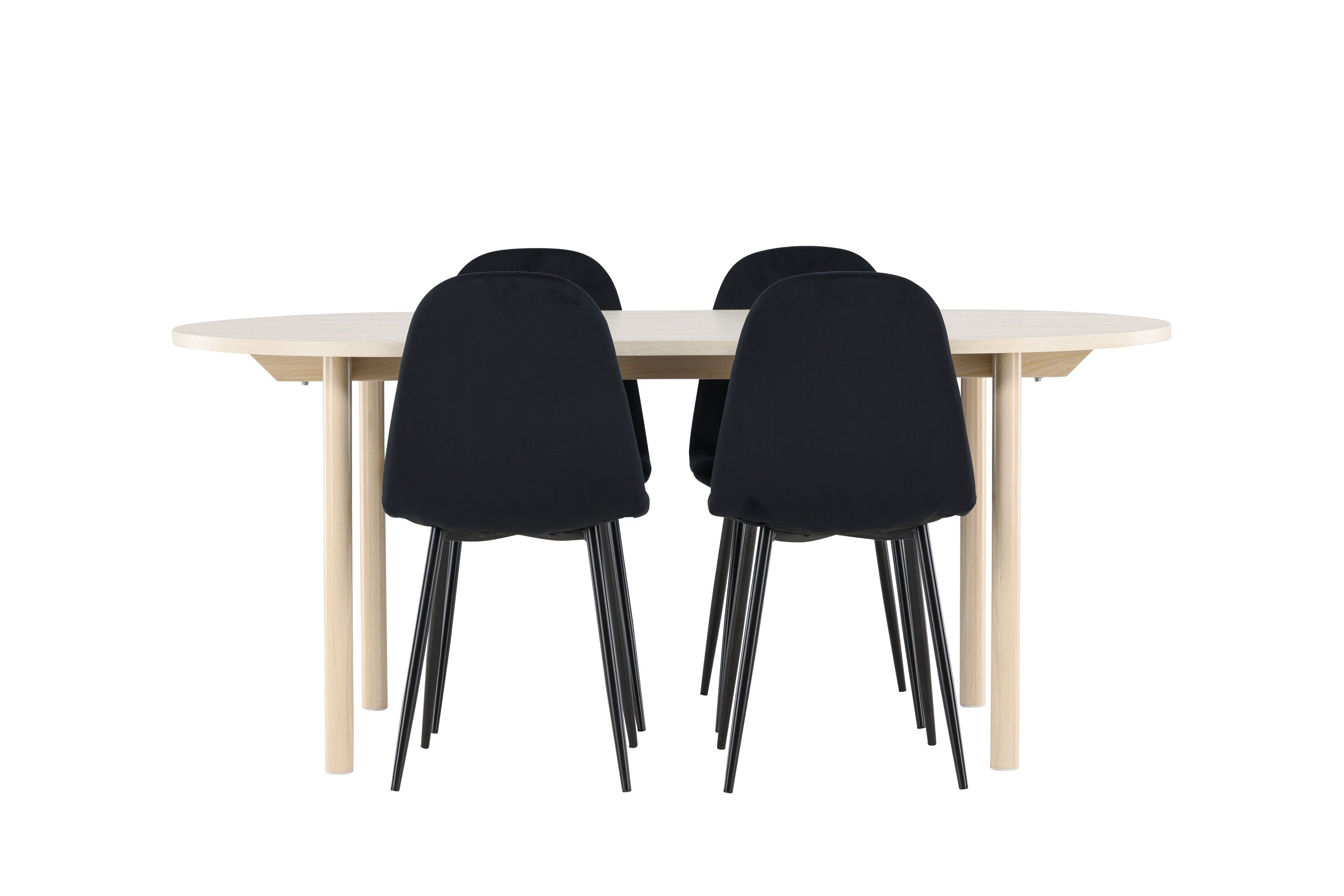Objevte perfektní jídelní set pro váš domov s jídelním stolem Andy a jídelními židlemi Polar. Jídelní stůl Andy je nadčasový kousek, který se stává dokonalým místem pro společenské stolování. Díky své bílé barvě dodává Andy vaší jídelně nebo kuchyni zemitý a neutrální nádech. Ocelové nohy stolu a deska stolu z MDF kombinují štíhlost s robustností, což z něj dělá spolehlivý kus nábytku na mnoho let. Díky velkorysým rozměrům 180x90 cm je spousta místa pro rodinu a přátele, aby se sešli u stolu a vychutnali si dobré jídlo a dobrou společnost. Andy vytváří klidnou a uvolněnou atmosféru, která se perfektně hodí do různých stylů interiéru. Doplňte svůj jídelní stůl jídelními židlemi Polar, které nabízejí elegantní design v celočerné barvě. Polar má celočalouněný design s nohami z černého kovu s práškovým nástřikem a zaobleným opěradlem a sedákem z černé sametové látky s měkkým polstrováním. Tyto židle vám umožní vyhnout se kompromisům mezi pohodlím a designem. S jídelními židlemi Polar vytvoříte ve své jídelně moderní a elegantní atmosféru. Všimněte si, že samet má tendenci vytvářet otlaky, když se zdřímne položí, což může způsobit, že látka bude vypadat opotřebovaně. To je u tohoto typu materiálu zcela běžné a podle toho, jak dopadá světlo, se látka může posouvat v různých odstínech. Dodejte svému domovu nádech jednoduché elegance s jídelním stolem Andy a jídelními židlemi Polar – dokonalá kombinace pro vytvoření útulné atmosféry a příjemného prostředí pro všechna vaše jídla, ať už jde o každodenní jídlo nebo slavnostní příležitosti.