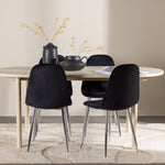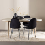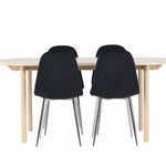 Elegantní jídelní židle v luxusním stylu! Polar má celočalouněný design s chromovanými kovovými nohami, lehce zaobleným opěradlem a sedákem z elegantního černého sametu s měkkým polstrováním pro extra pohodlí. Zde nemusíte dělat kompromisy mezi pohodlím a designem. Slaďte s jedním z našich stylových jídelních stolů a máte kompletní jídelní sestavu pro srdce vašeho domova! Prozkoumejte Andy – nadčasový jídelní stůl, který se stane dokonalým místem pro společenské stolování. Díky své bílé barvě dodává Andy vaší jídelně nebo kuchyni zemitý a neutrální nádech. Ocelové nohy a deska stolu z MDF spojují eleganci s robustností, díky čemuž je spolehlivým kusem nábytku na mnoho let. Díky velkorysým rozměrům 180x90 cm je spousta místa pro rodinu a přátele, aby se sešli u stolu a vychutnali si dobré jídlo a dobrou společnost. Andy má elegantní design, který se perfektně hodí do různých stylů interiéru a vytváří v místnosti klidnou a uvolněnou atmosféru. Ať už jej využijete pro každodenní jídlo nebo slavnostní příležitosti, Andy bude nadčasovým a stylovým doplňkem vašeho domova. Dodejte svému dekoru nádech jednoduché elegance s jídelním stolem Andy.
