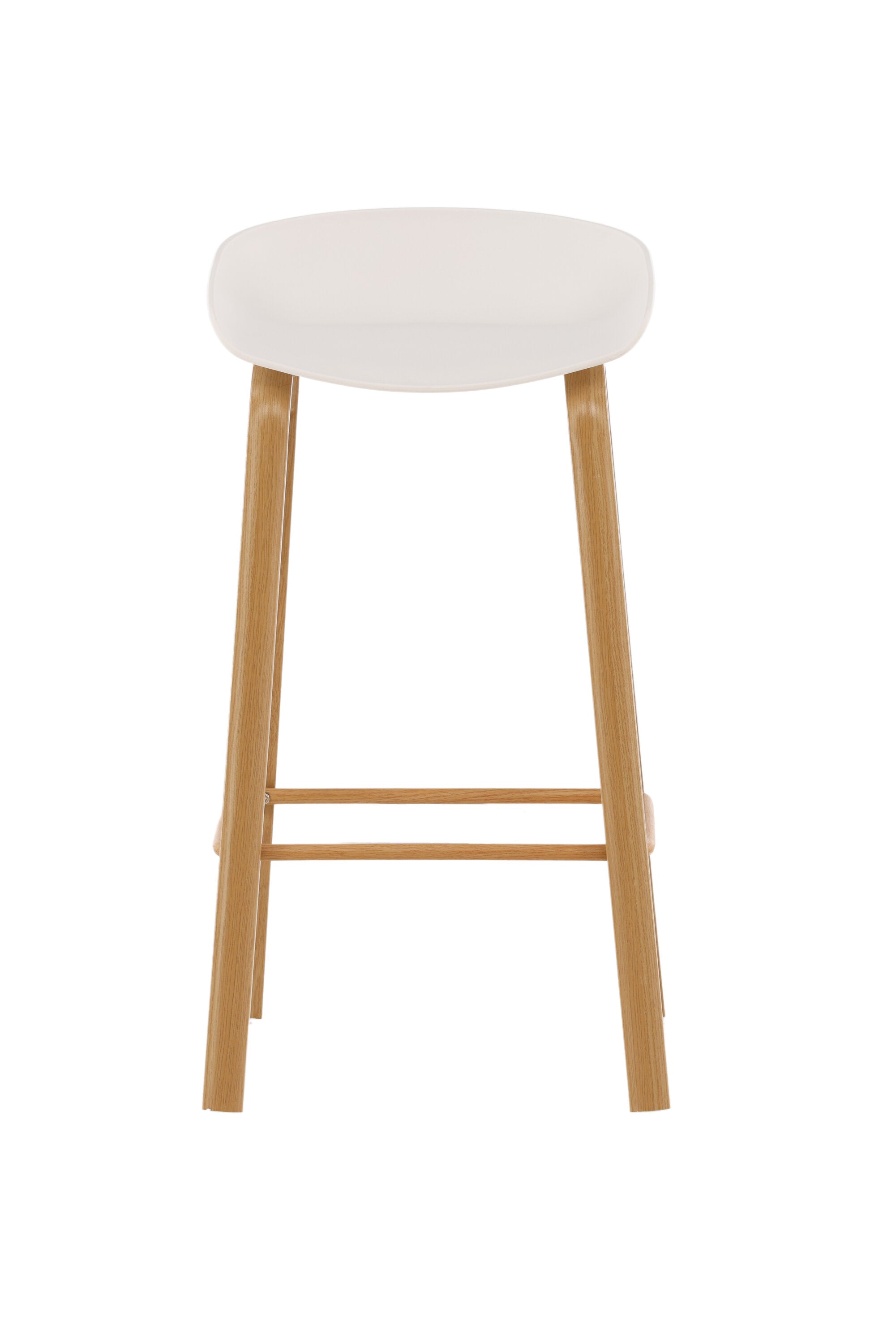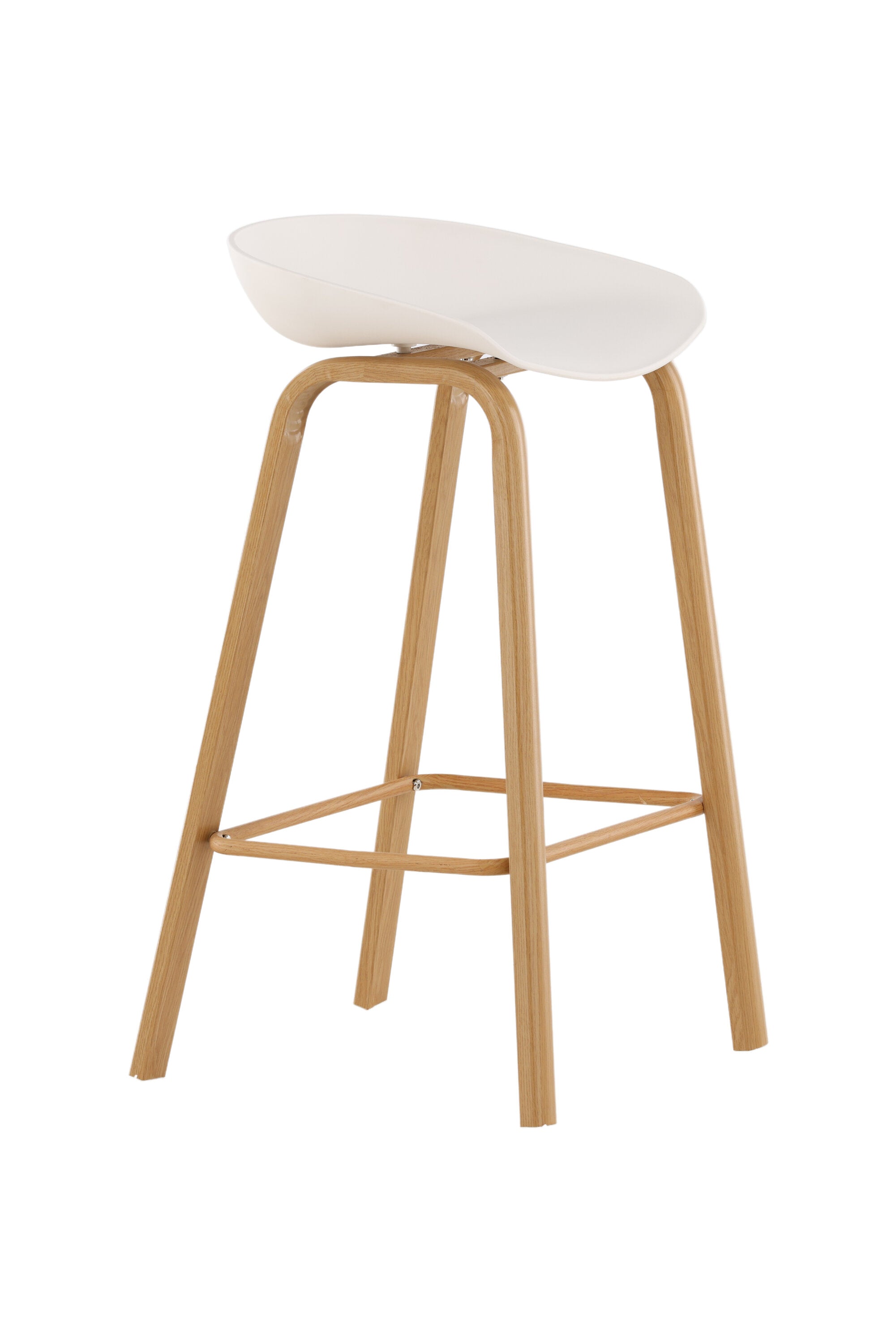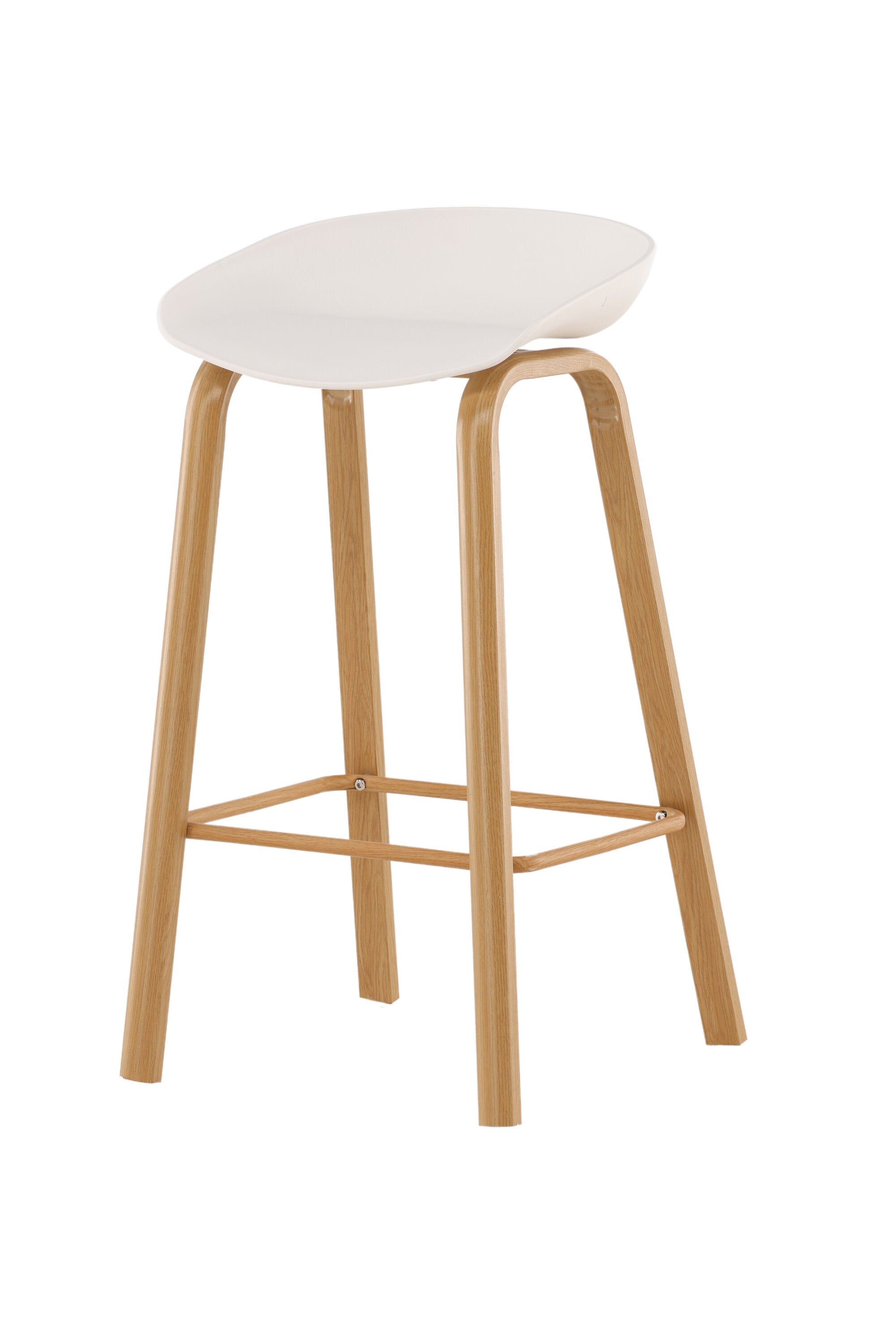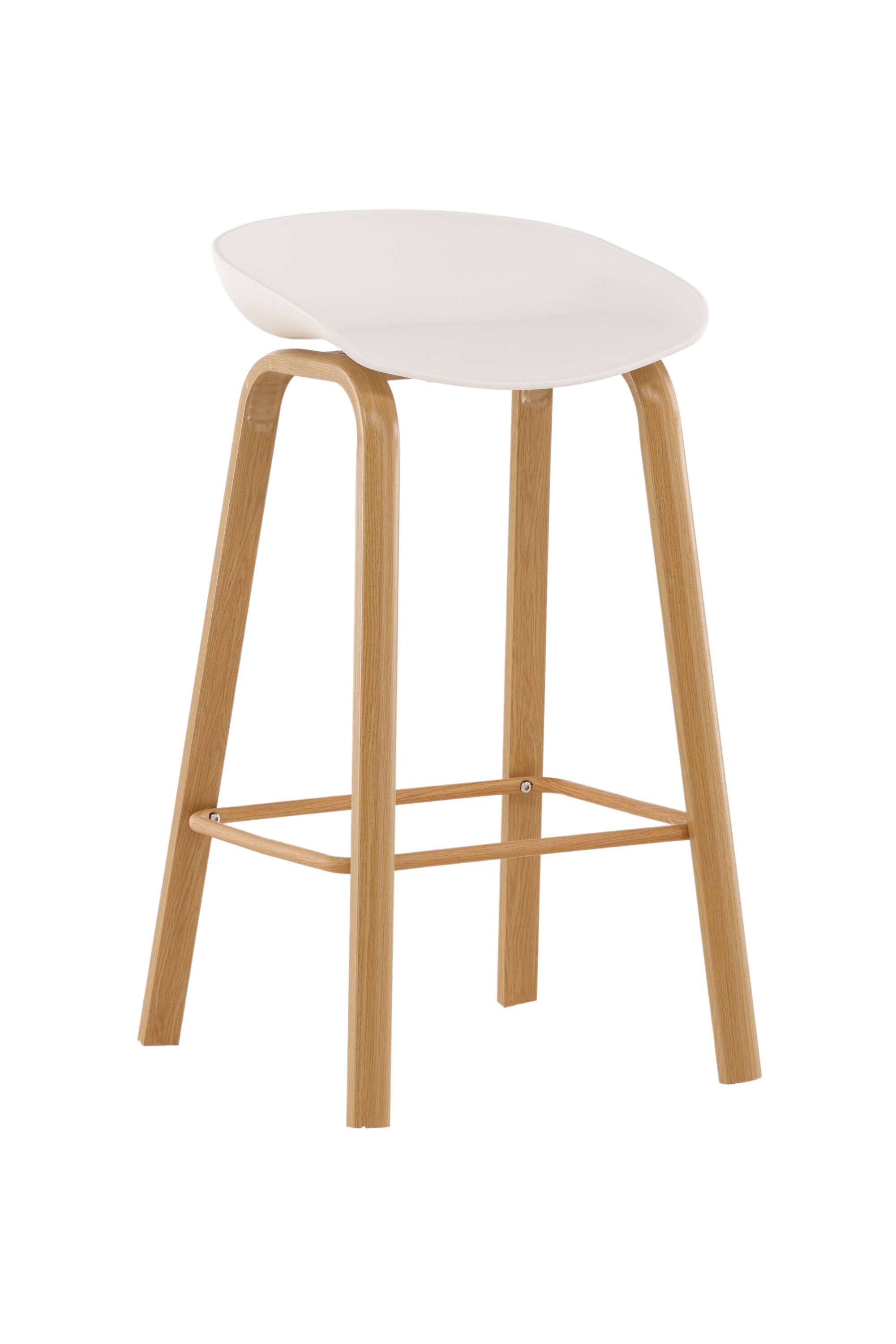 Barová židle Decatur od Venture Home má stylový design s rovnými nohami ze dřeva v barvě dubu a jednoduchým sedákem z bílého PP. Má také integrovanou opěrku na nohy pro větší pohodlí.