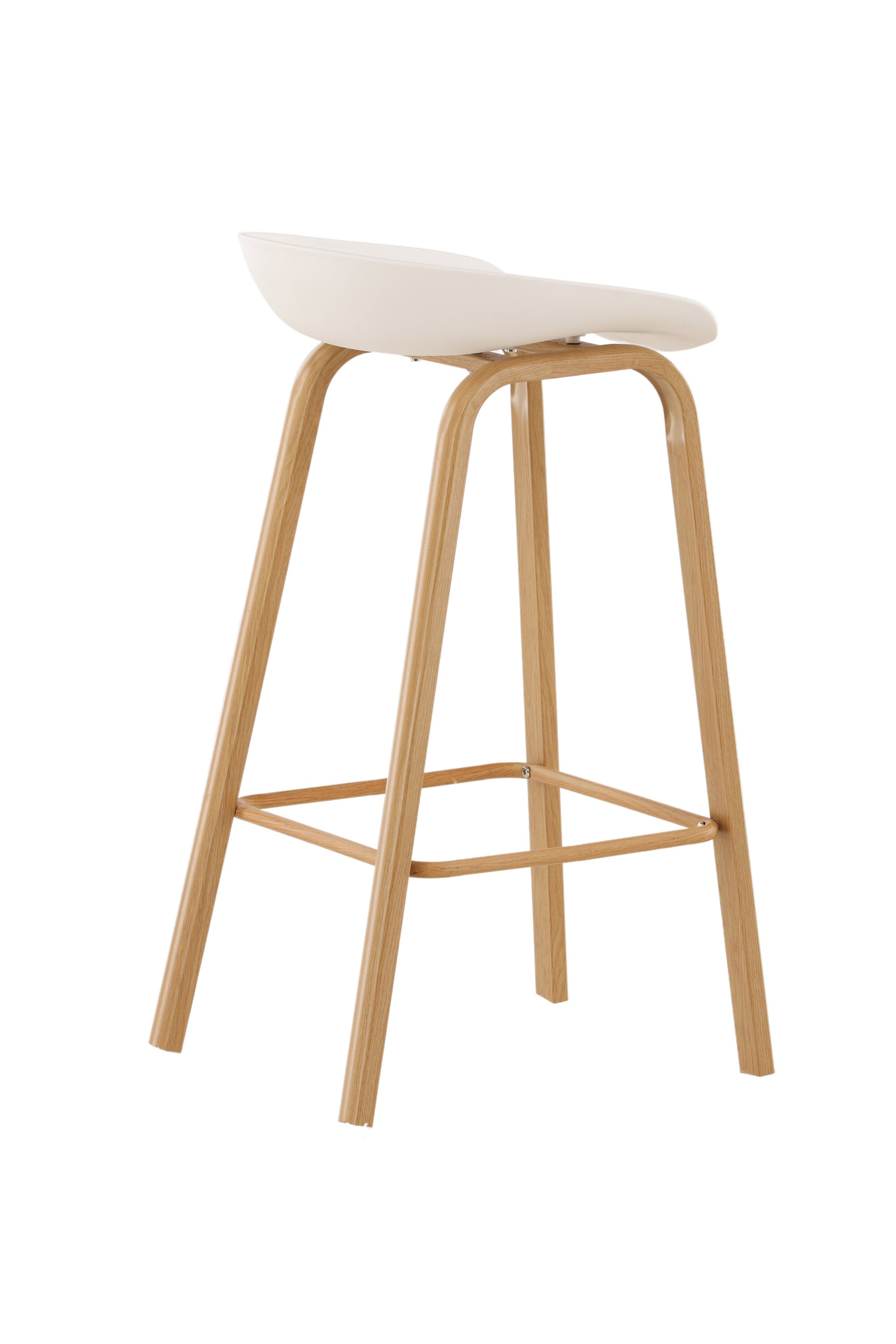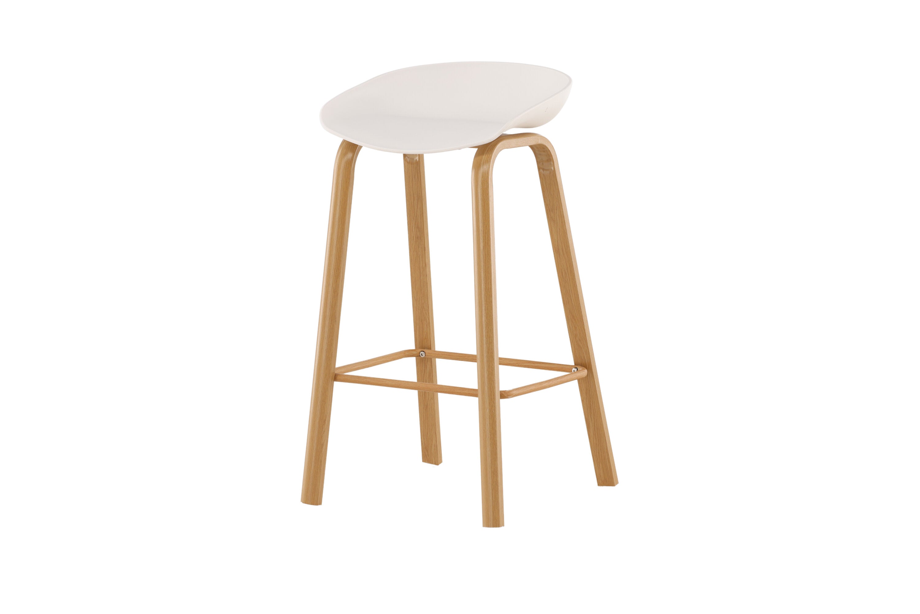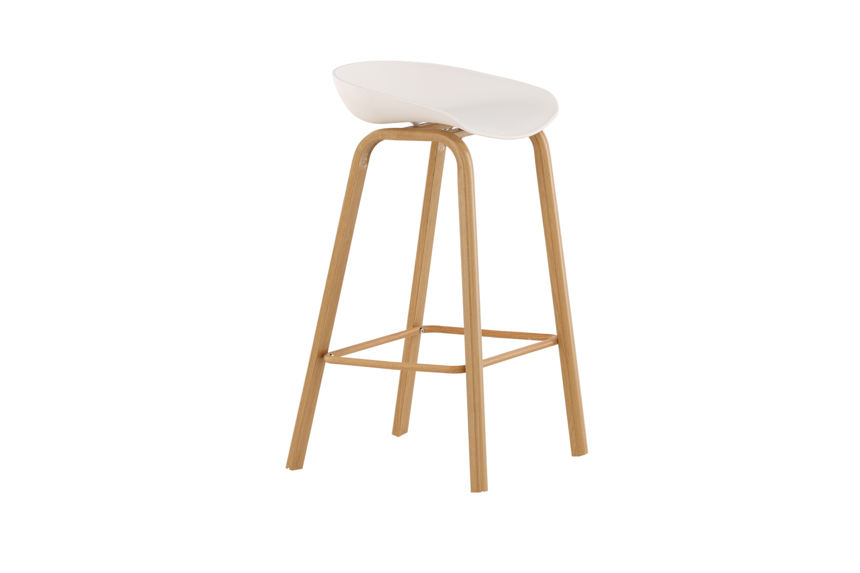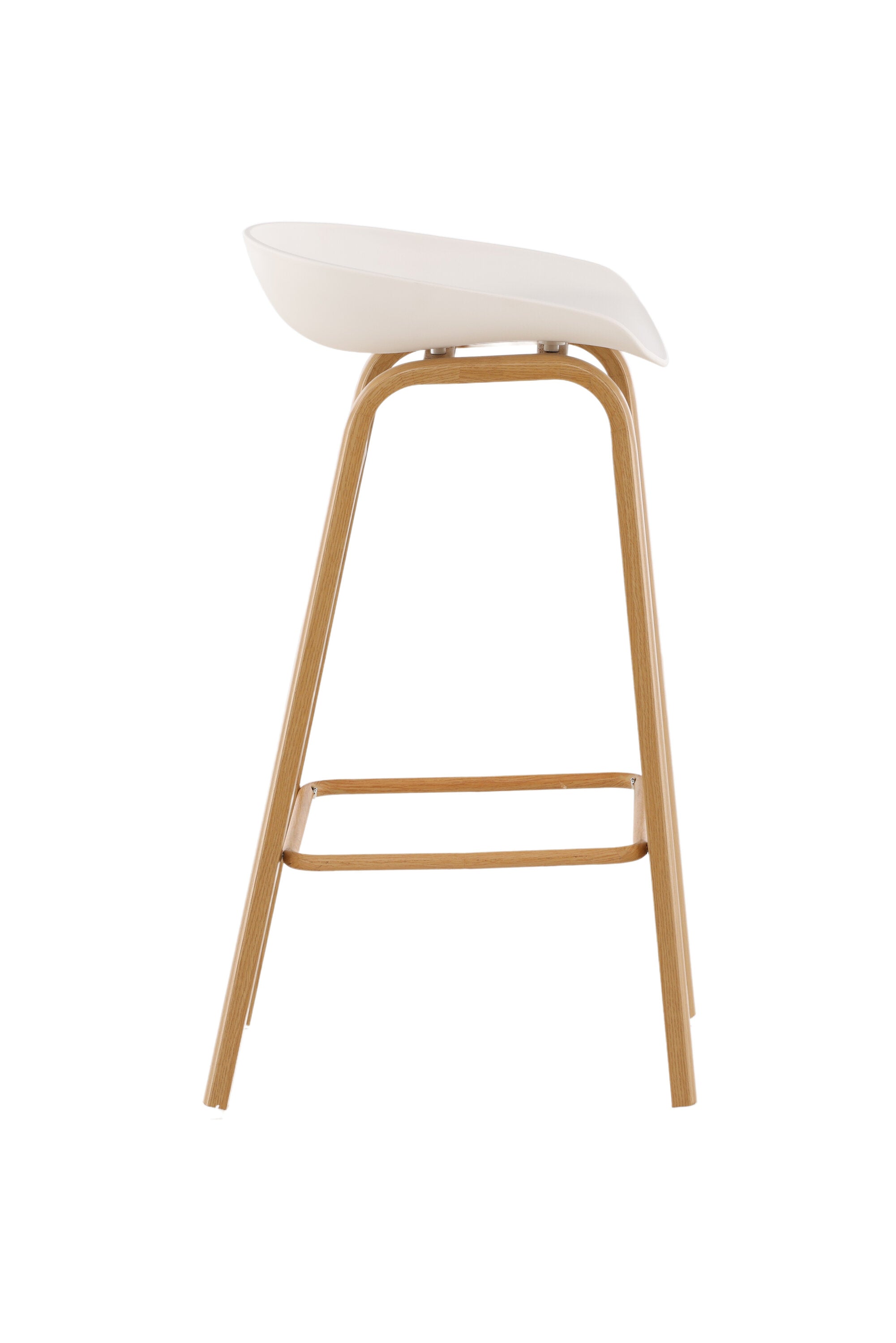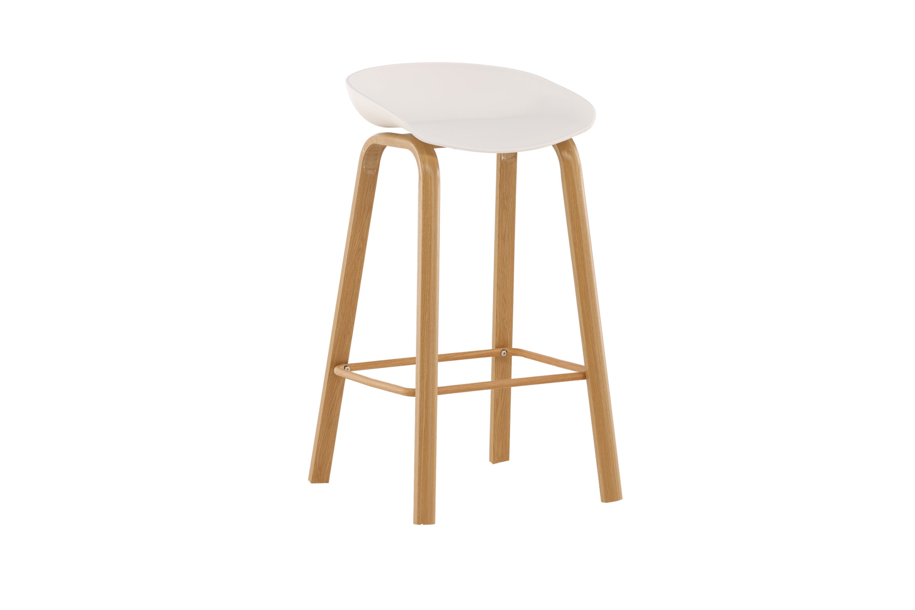 Barová židle Decatur od Venture Home má stylový design s rovnými nohami ze dřeva v barvě dubu a jednoduchým sedákem z bílého PP. Má také integrovanou opěrku na nohy pro větší pohodlí.