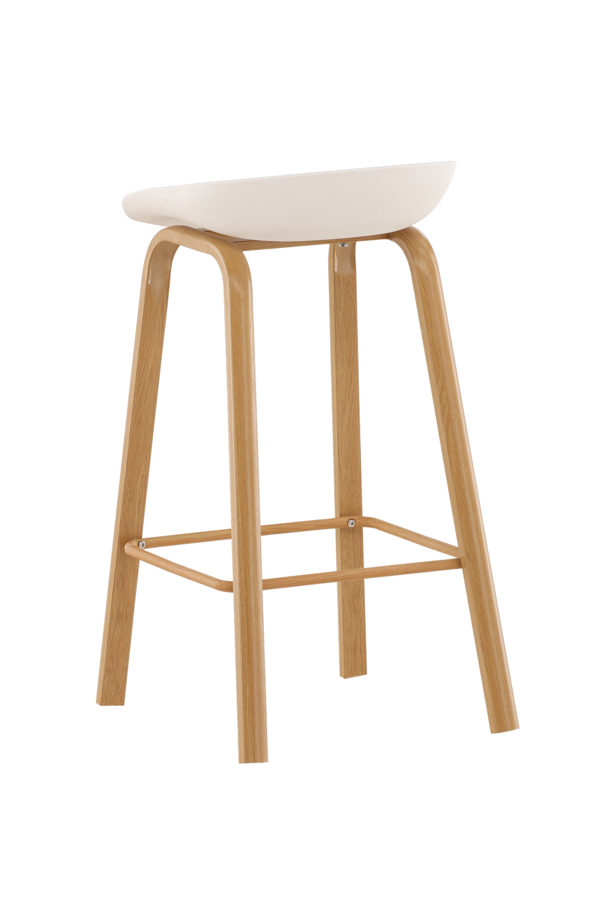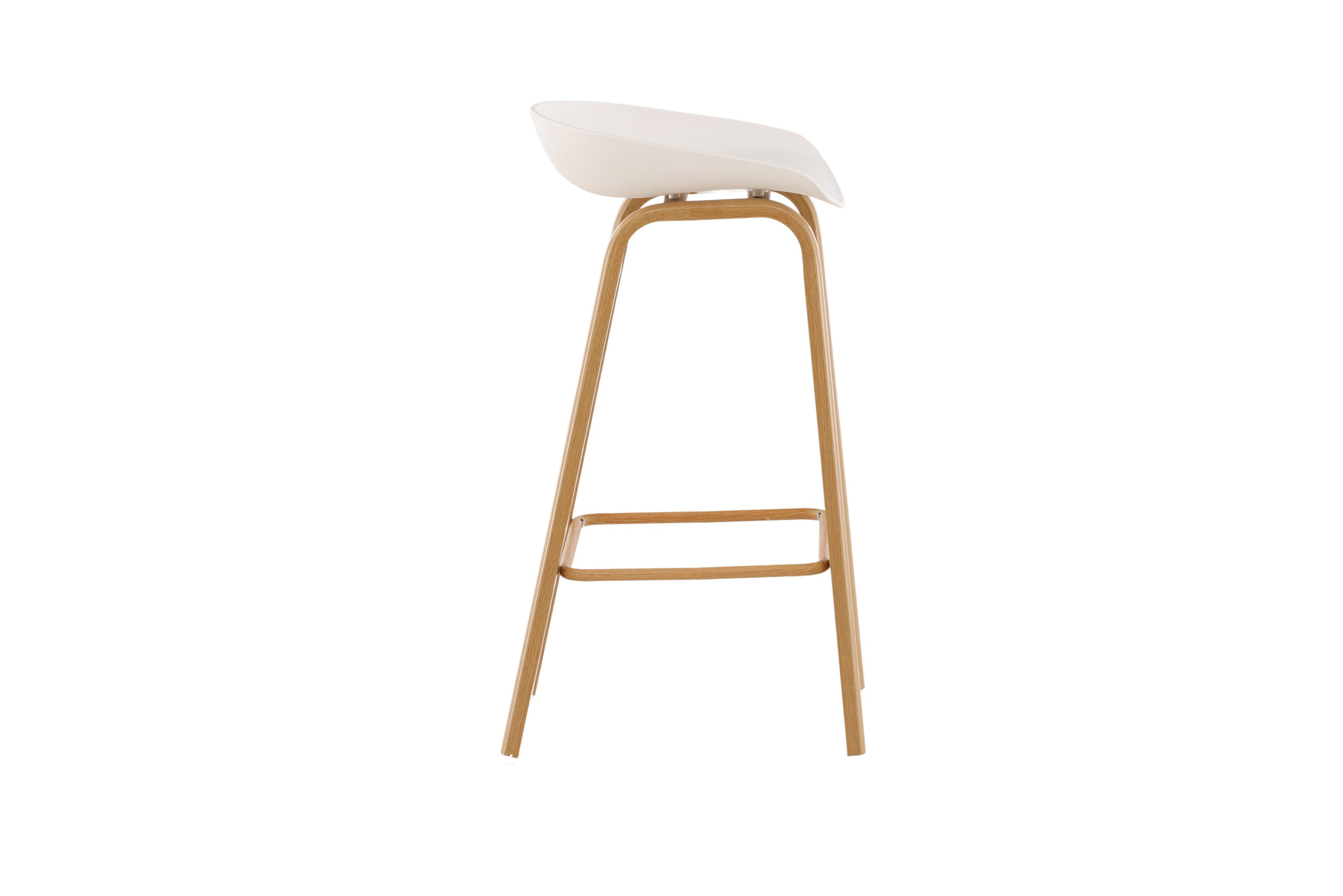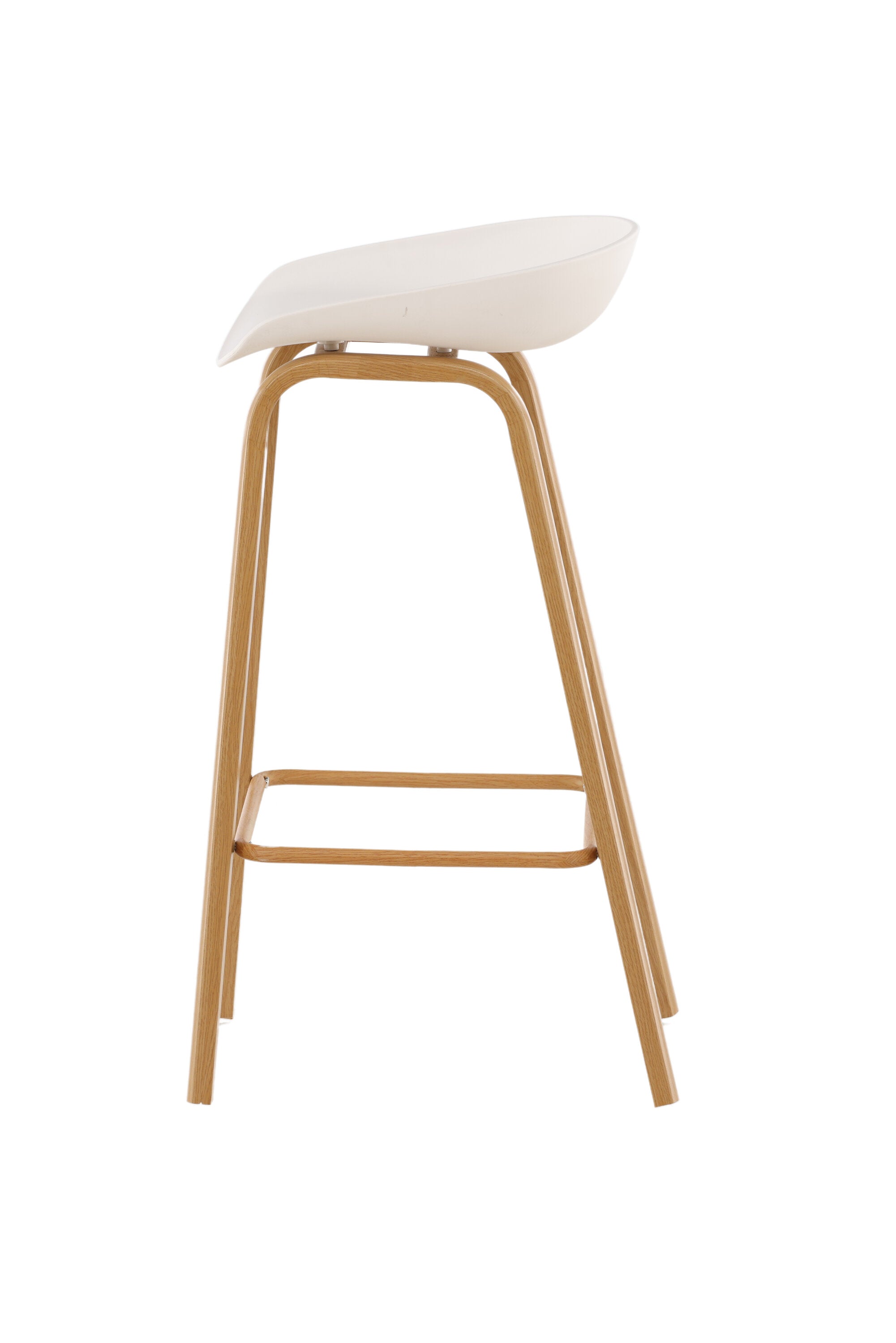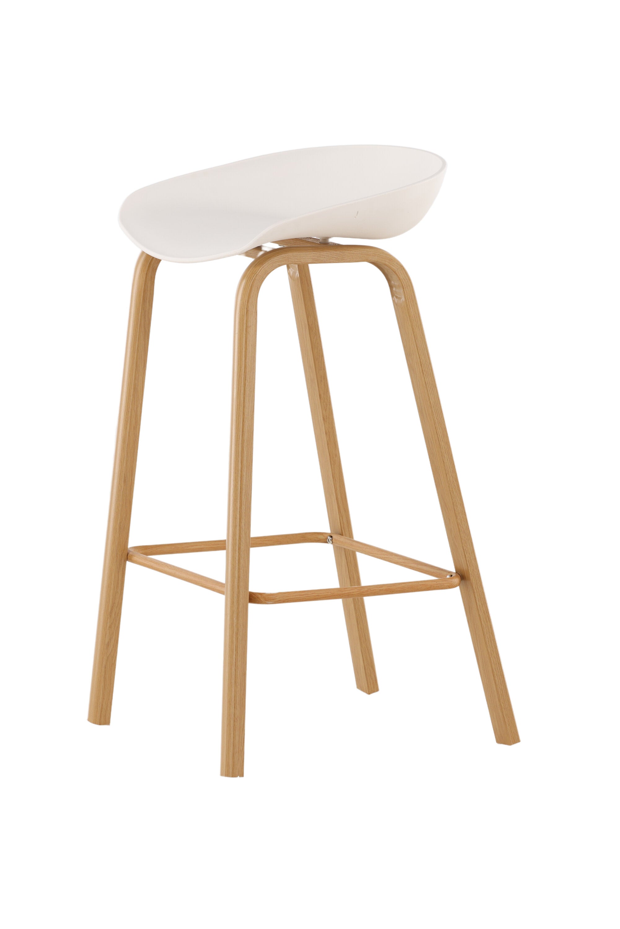 Barová židle Decatur od Venture Home má stylový design s rovnými nohami ze dřeva v barvě dubu a jednoduchým sedákem z bílého PP. Má také integrovanou opěrku na nohy pro větší pohodlí.