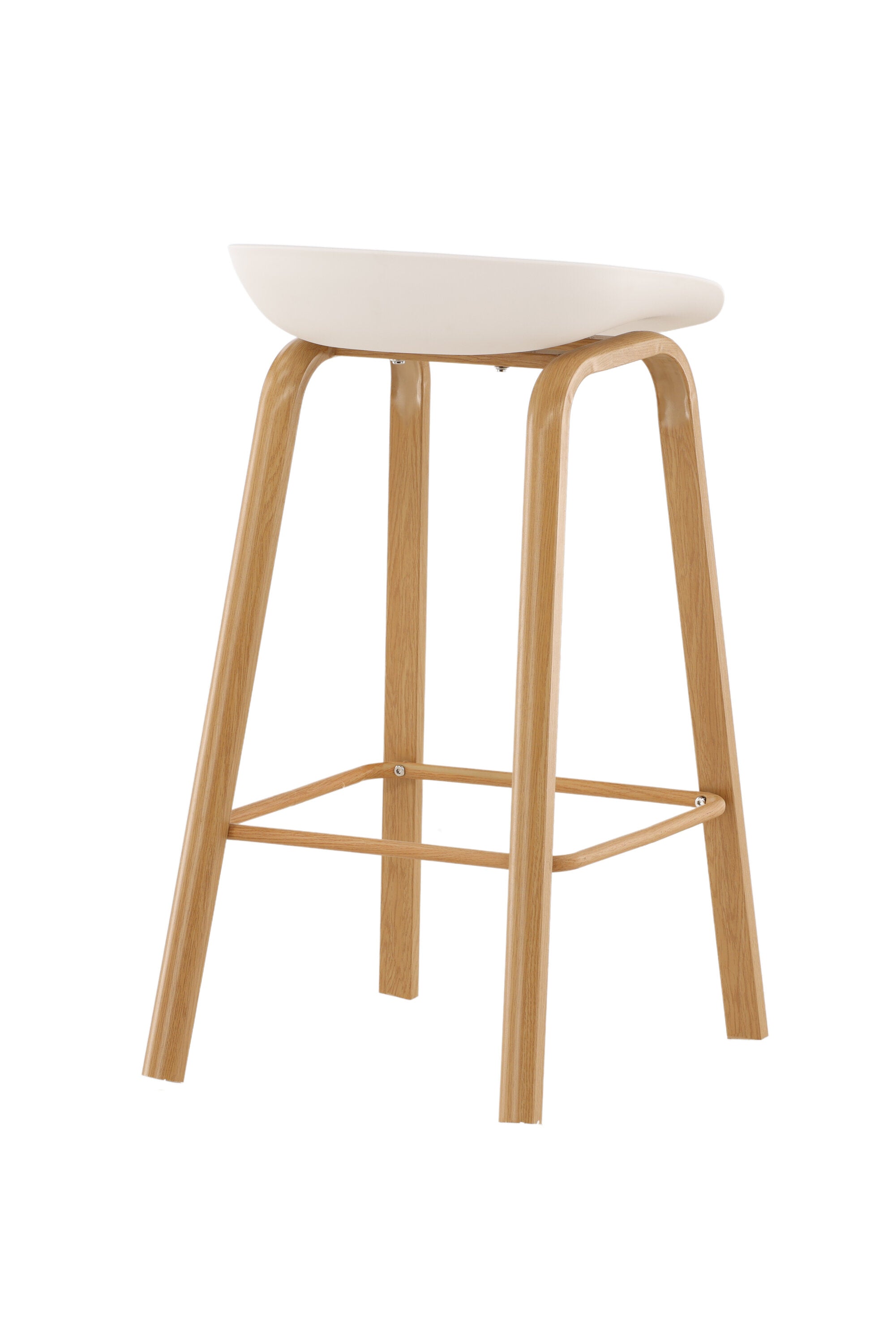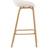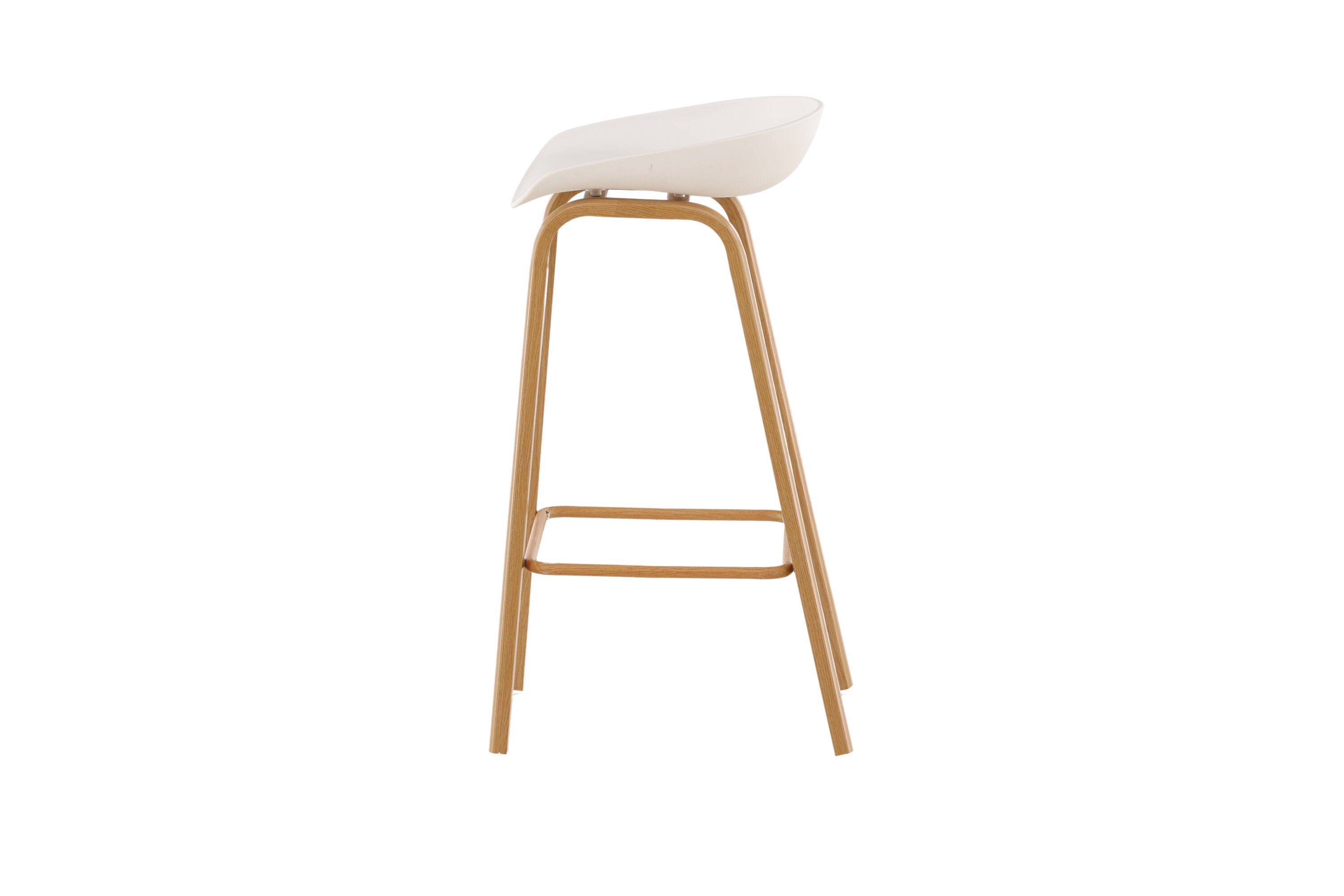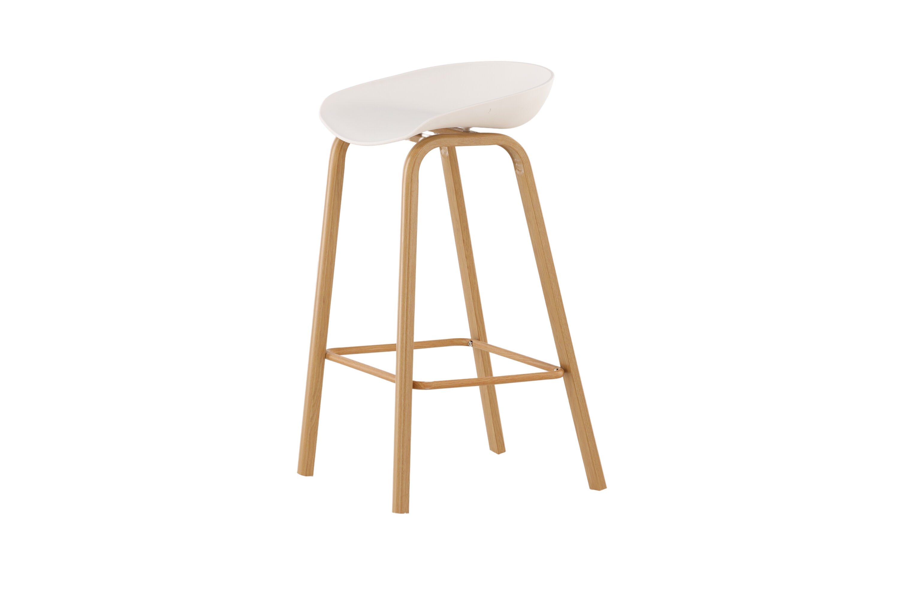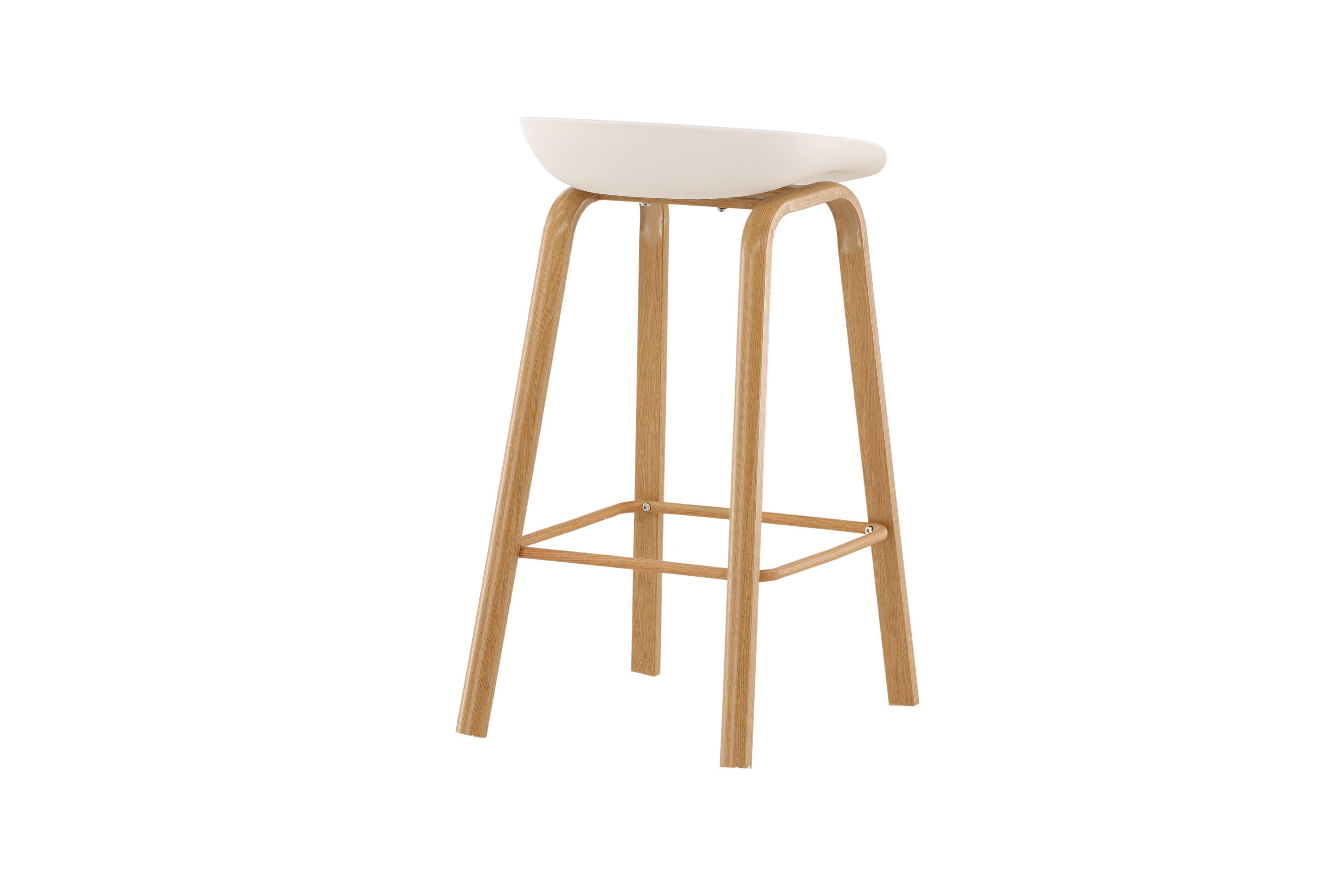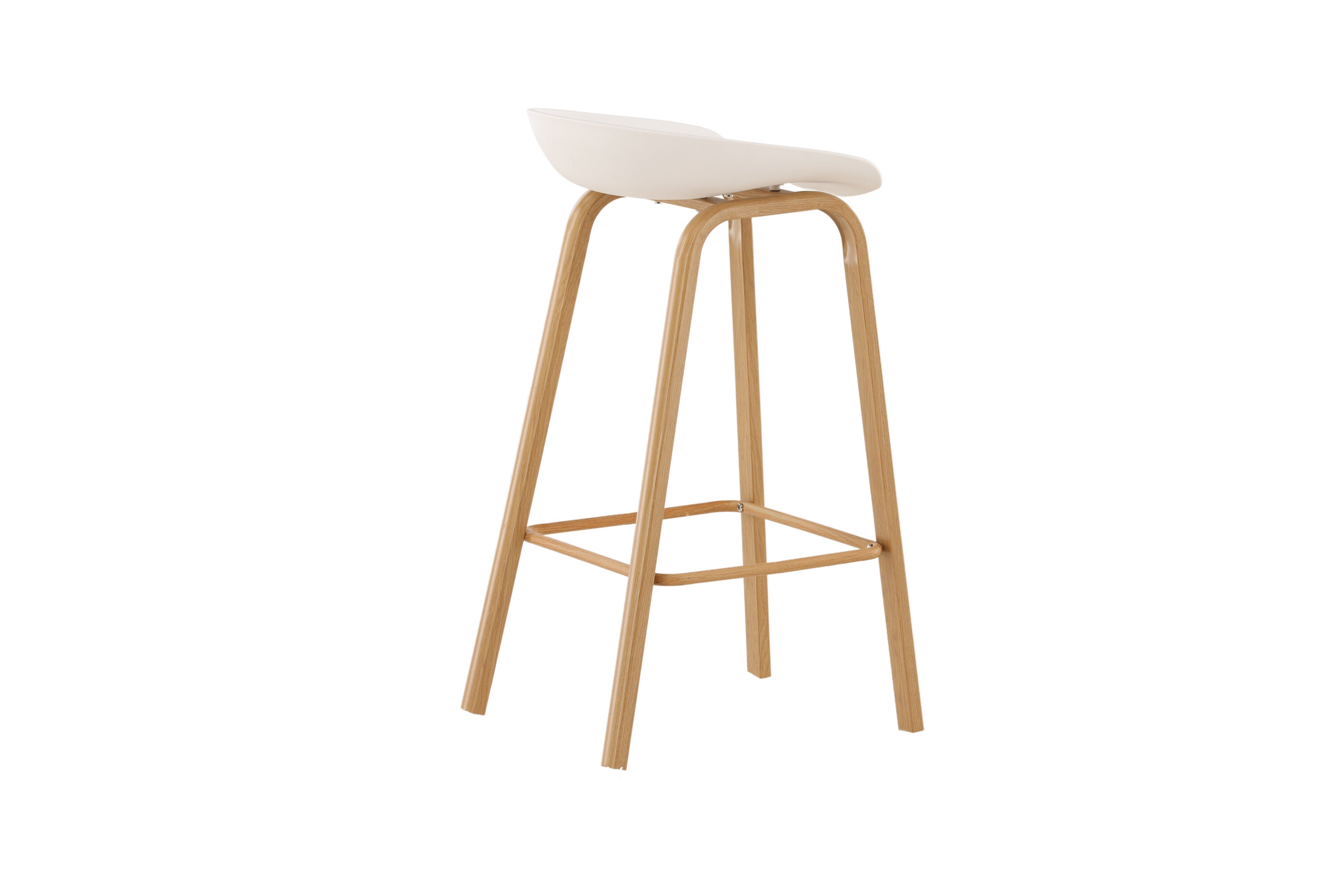 Barová židle Decatur od Venture Home má stylový design s rovnými nohami ze dřeva v barvě dubu a jednoduchým sedákem z bílého PP. Má také integrovanou opěrku na nohy pro větší pohodlí.