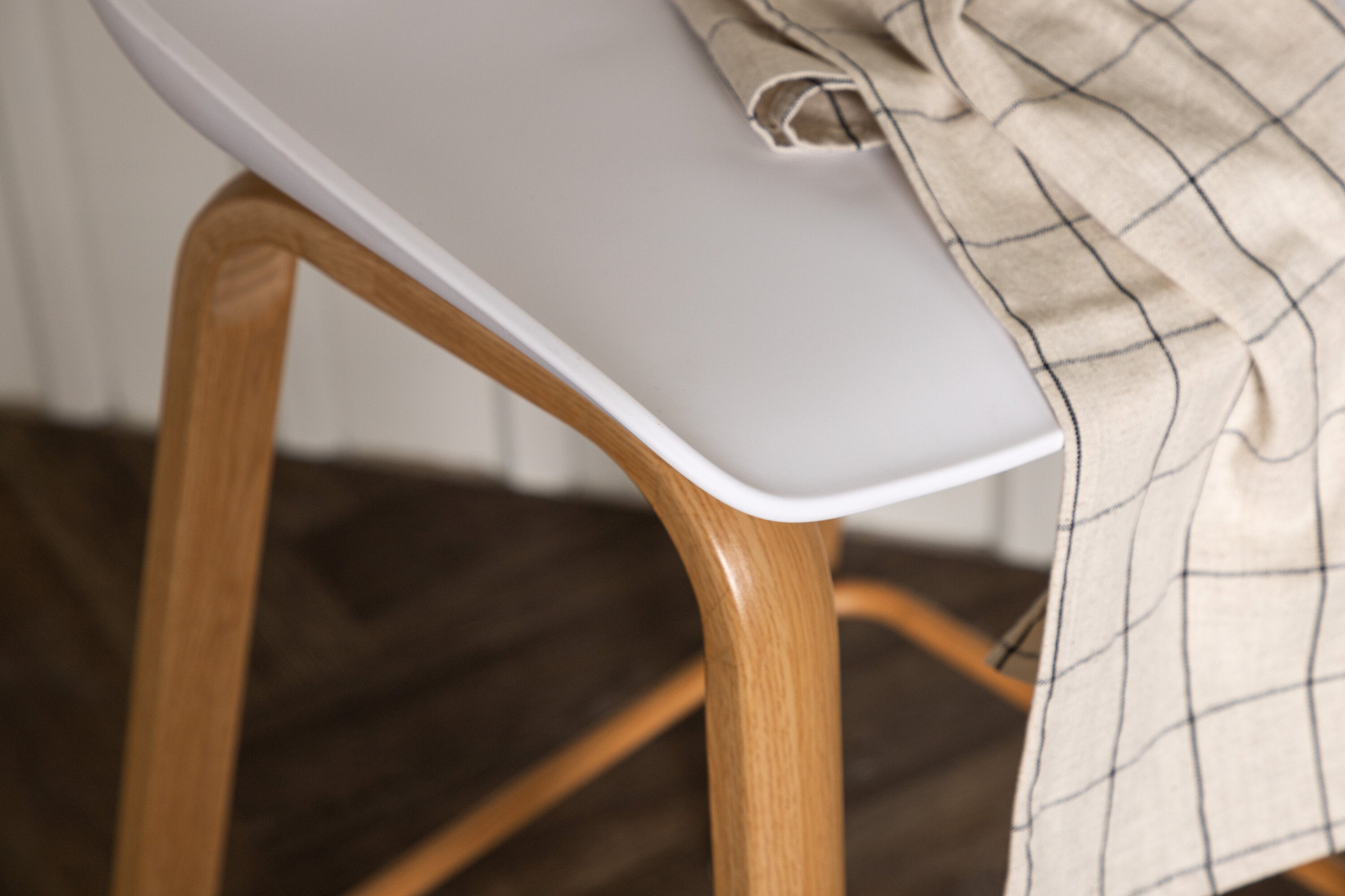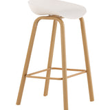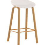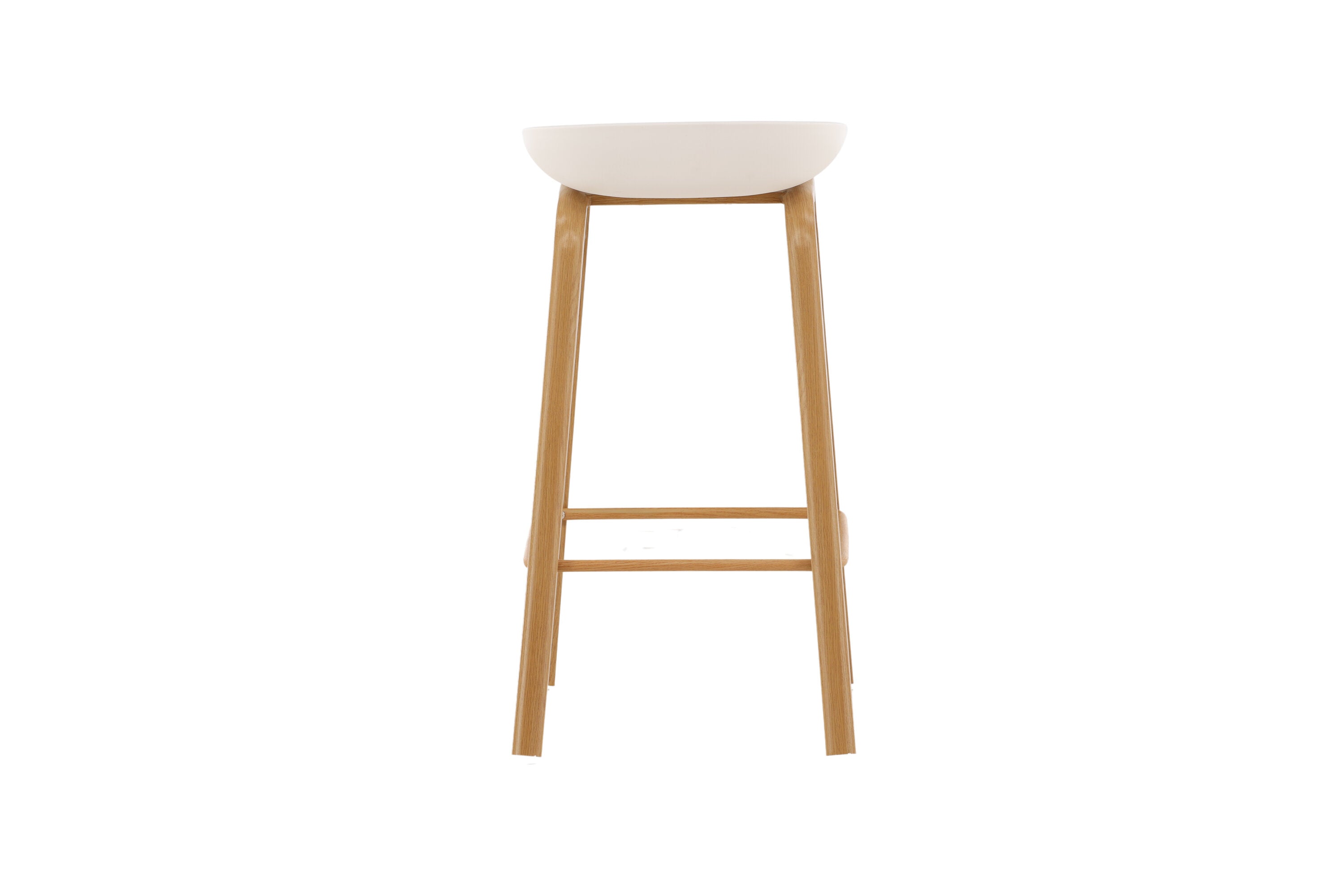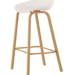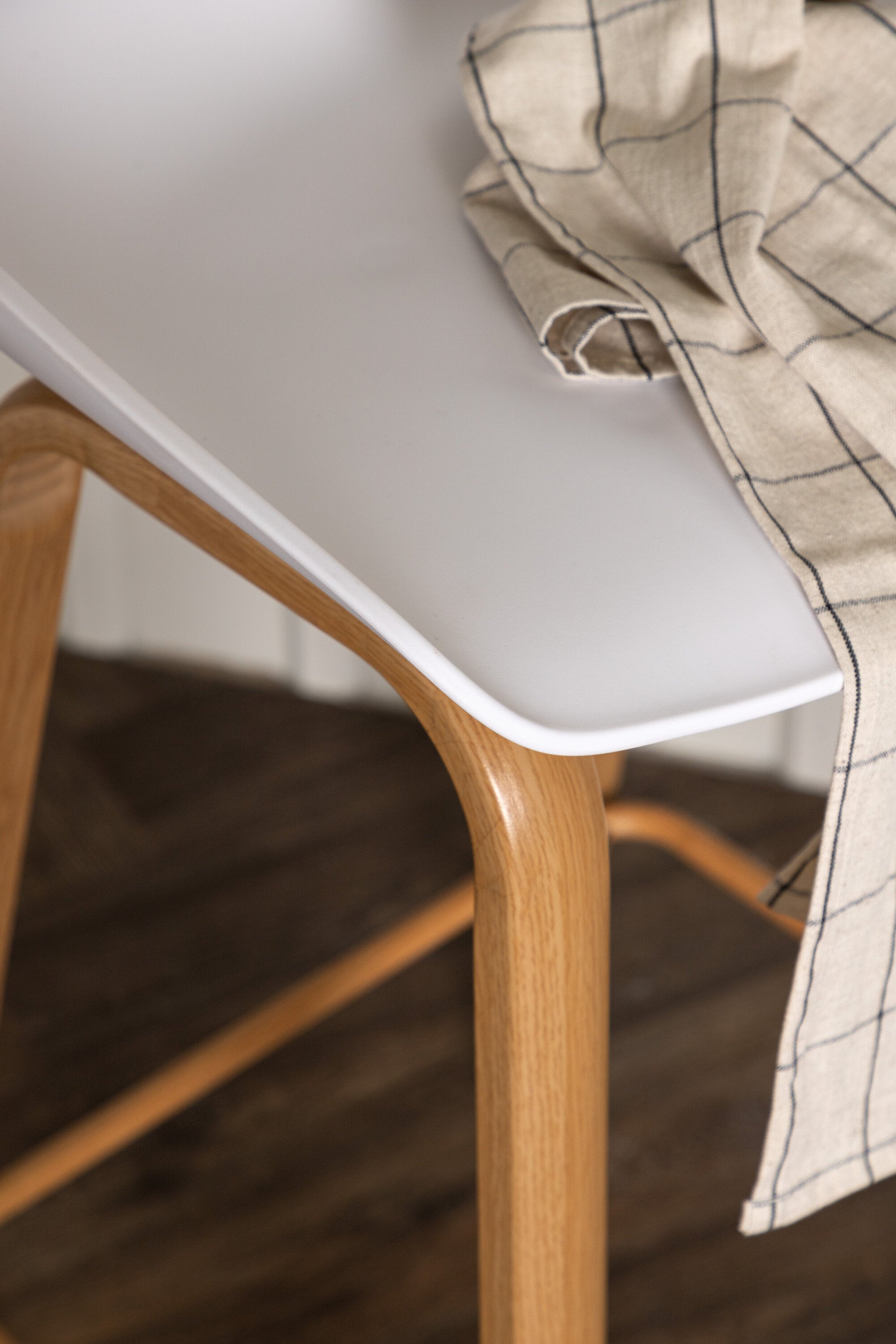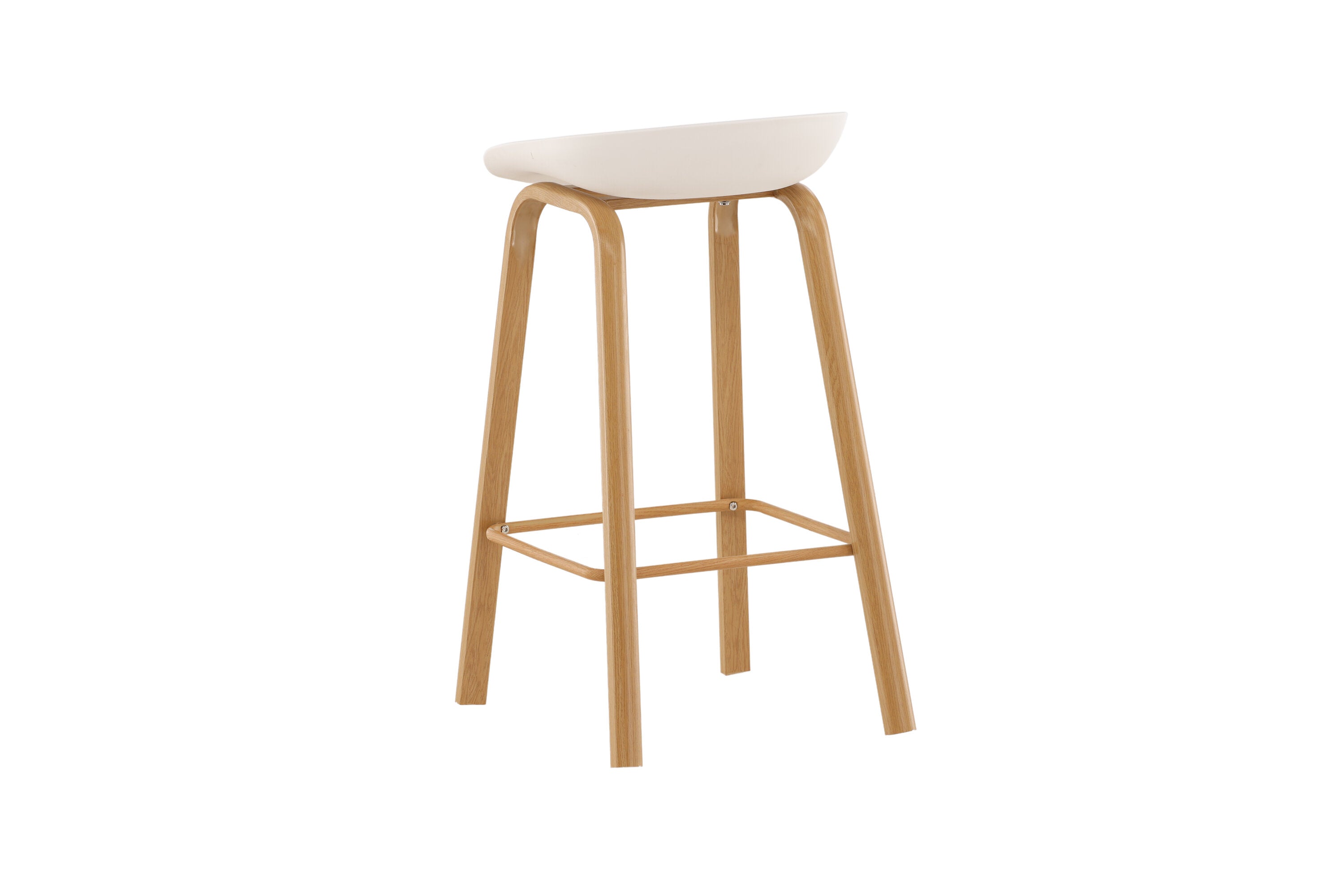 Barová židle Decatur od Venture Home má stylový design s rovnými nohami ze dřeva v barvě dubu a jednoduchým sedákem z bílého PP. Má také integrovanou opěrku na nohy pro větší pohodlí.