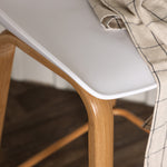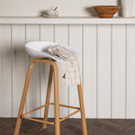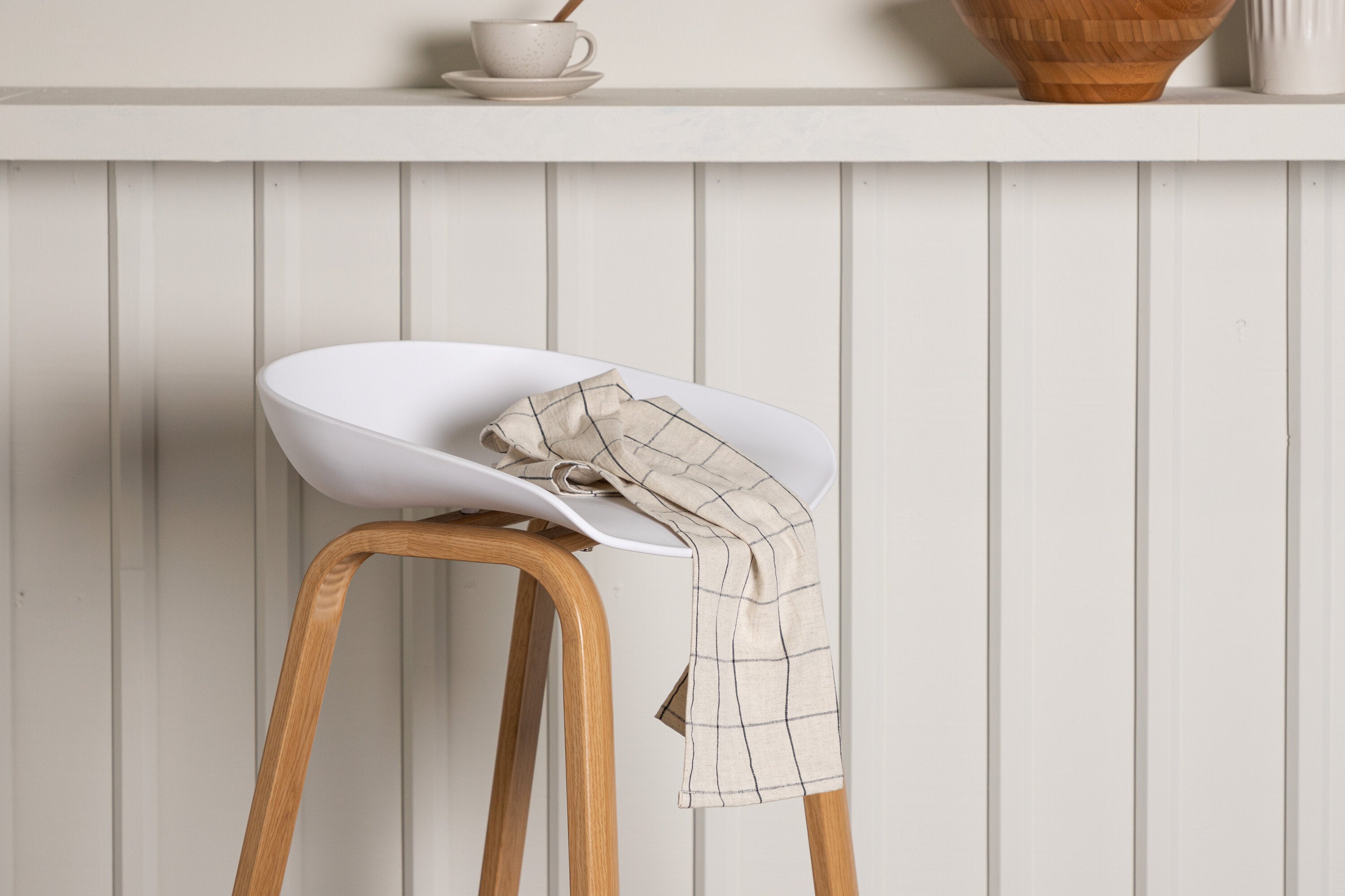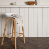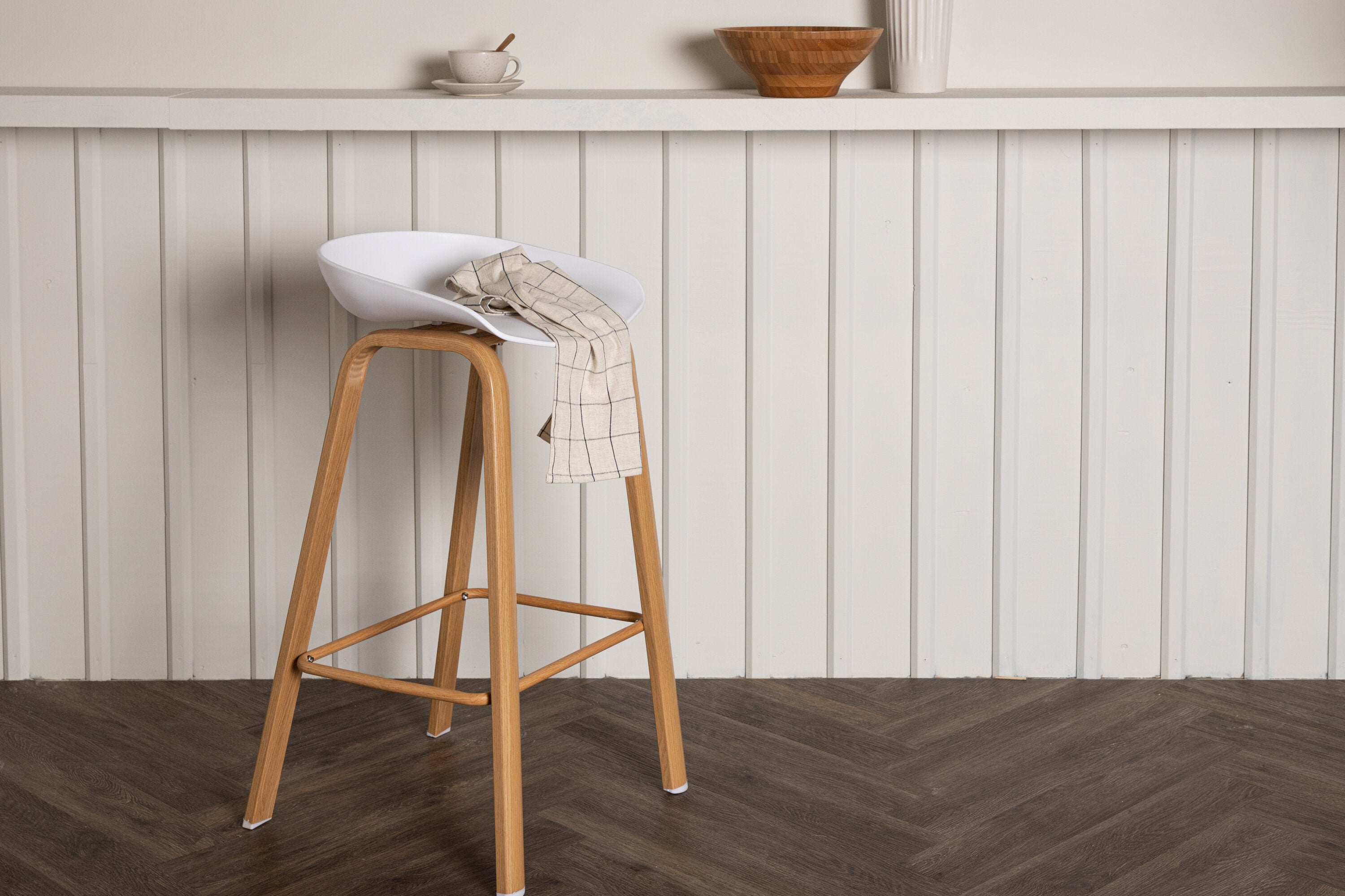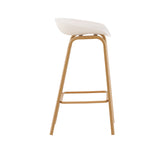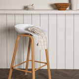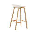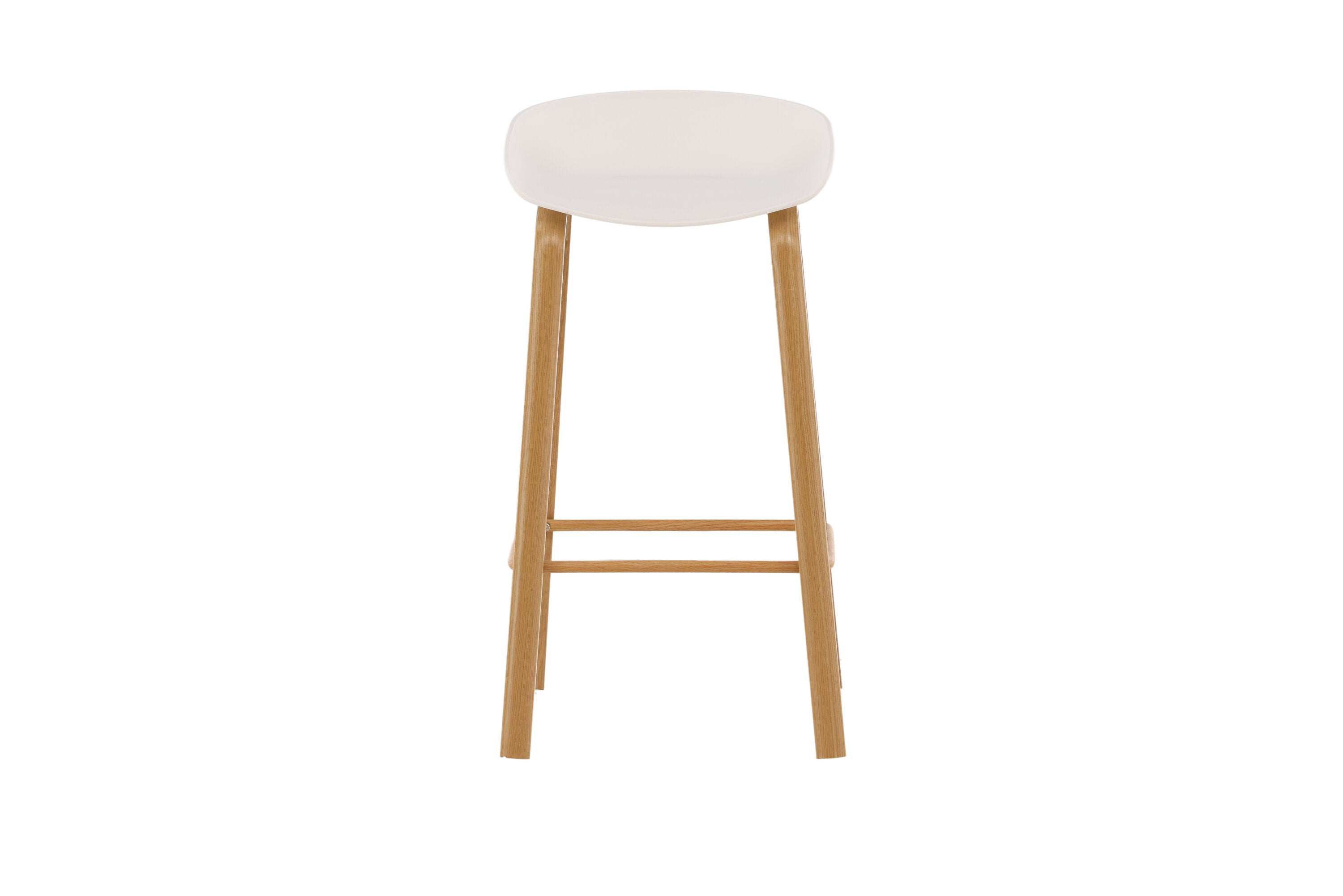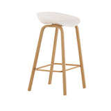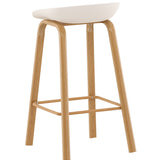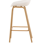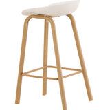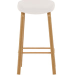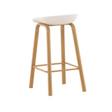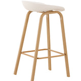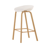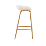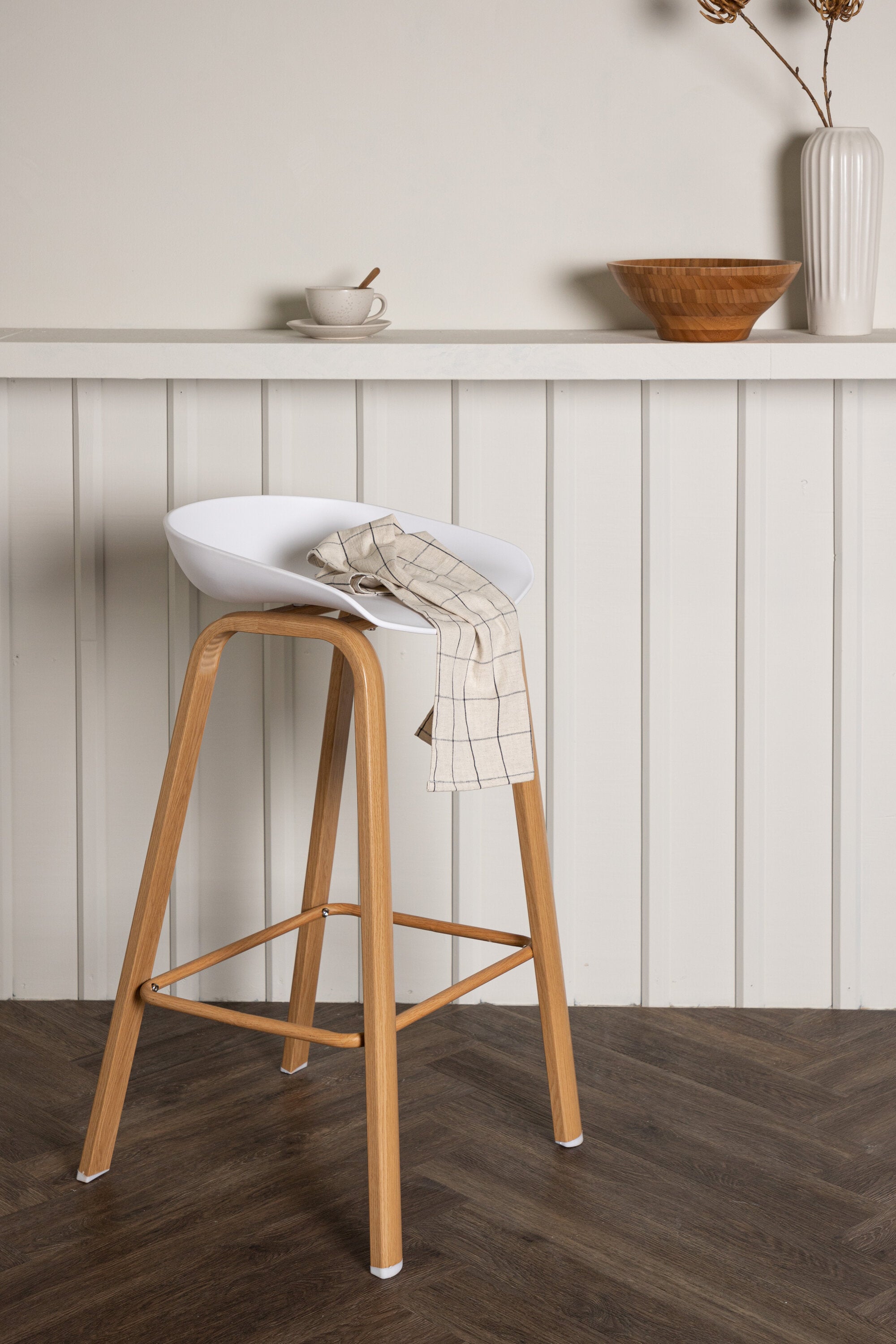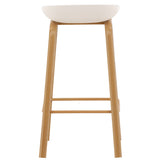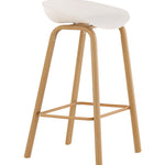 Barová židle Decatur od Venture Home má stylový design s rovnými nohami ze dřeva v barvě dubu a jednoduchým sedákem z bílého PP. Má také integrovanou opěrku na nohy pro větší pohodlí.