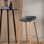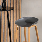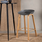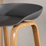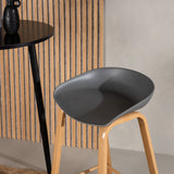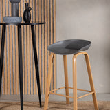 Barová židle Decatur od Venture Home má stylový design s rovnými nohami ze dřeva v barvě dubu a jednoduchým sedákem z černého PP. Má také integrovanou opěrku na nohy pro větší pohodlí.