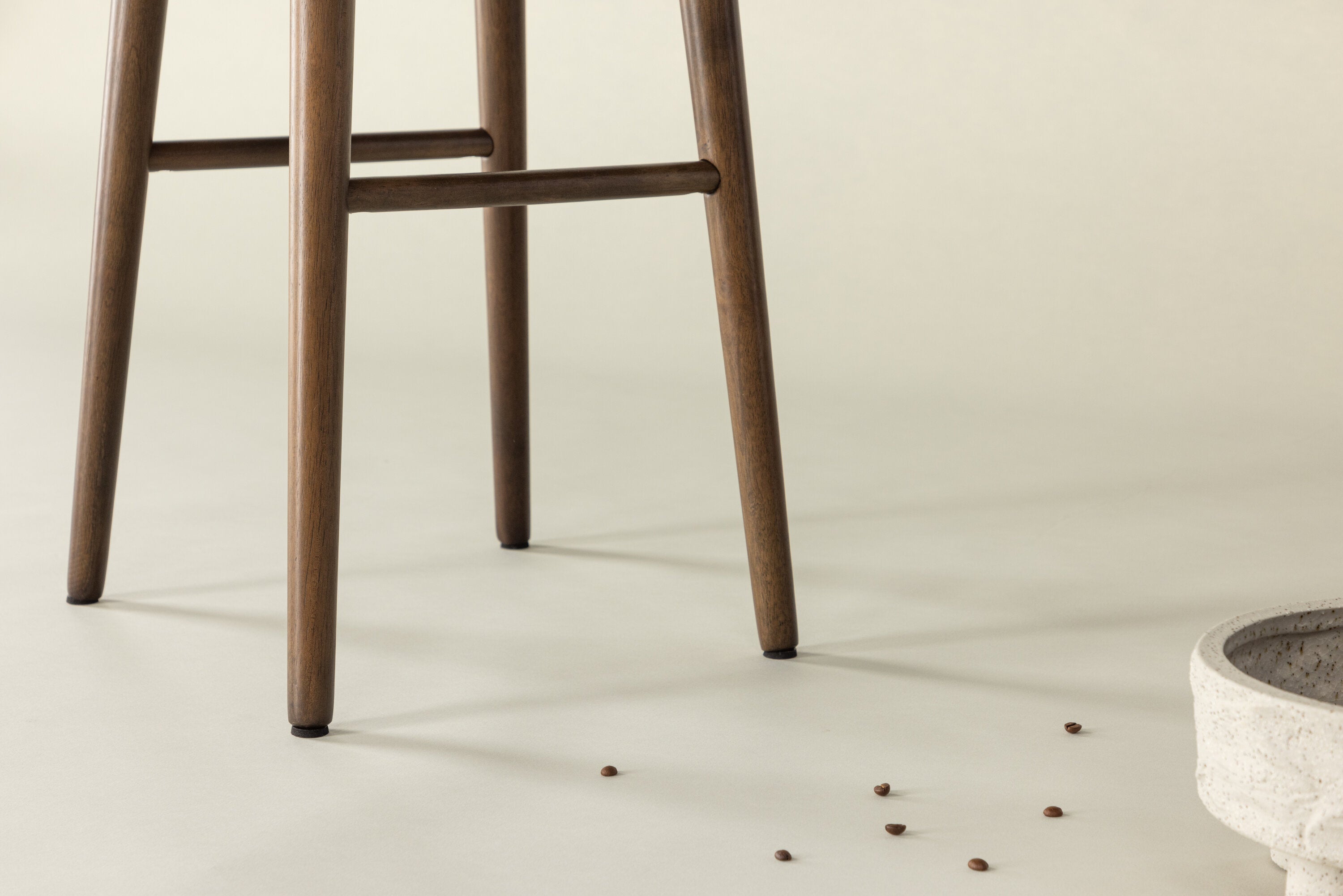 Barová židle Mollöström je vyrobena z kaučukového dřeva a má moka barvu, která jí dodává moderní a sofistikovaný vzhled.