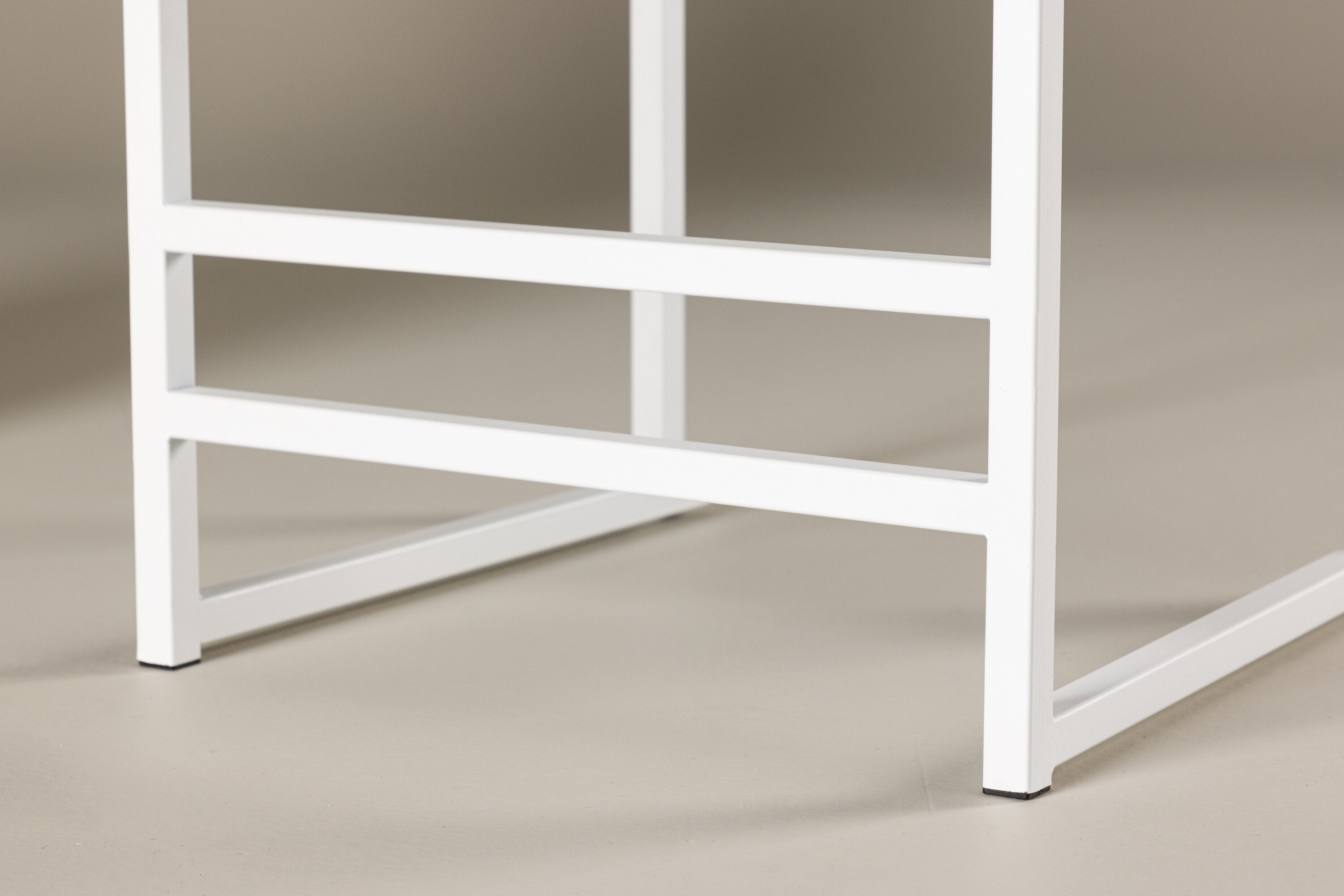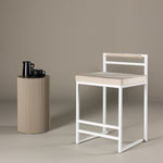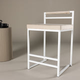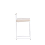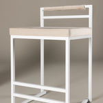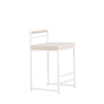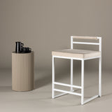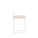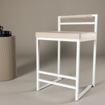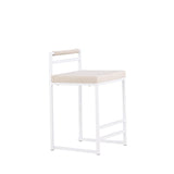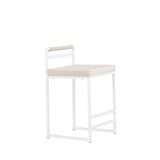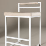 Barová židle Opelika v béžové barvě s bílýma nohama vyrobena z polyesterového sametu pro měkké a pohodlné sezení. Ocelové nohy zajišťují stabilitu, takže jsou ideální pro použití v barovém prostoru vaší domácnosti nebo v kuchyni.