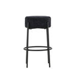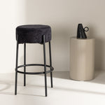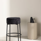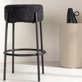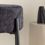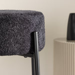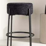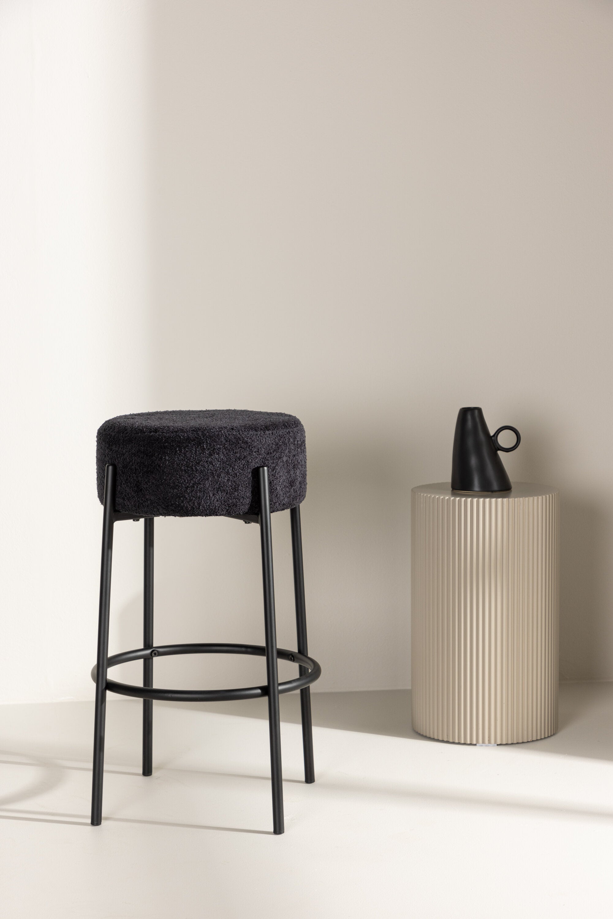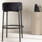 Tucson - barová židle černé barvy. Sedák z materiálu bouclé dodává stoličce Tucson nádech luxusu a pohodlí, takže je ideální pro dlouhé chvíle u baru nebo kuchyňského ostrůvku. Jeho rám vyrobený z oceli zajišťuje stabilitu a odolnost a zároveň dodává designu moderní nádech.